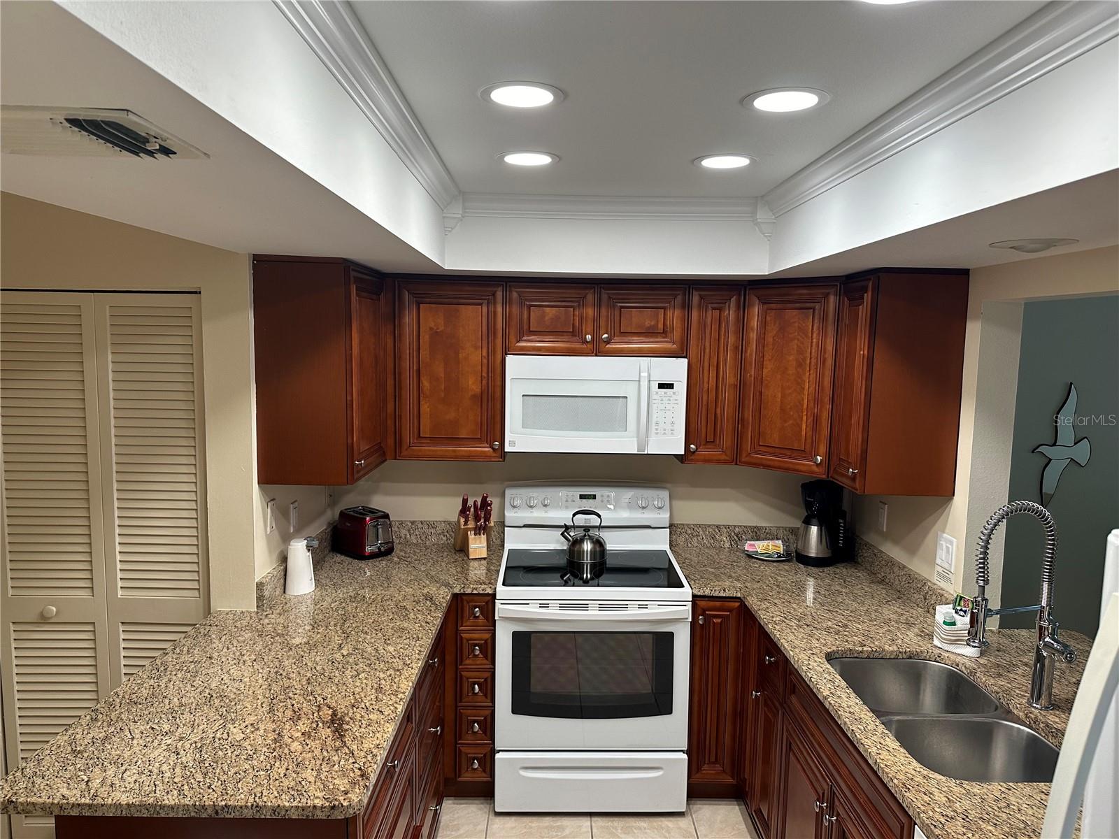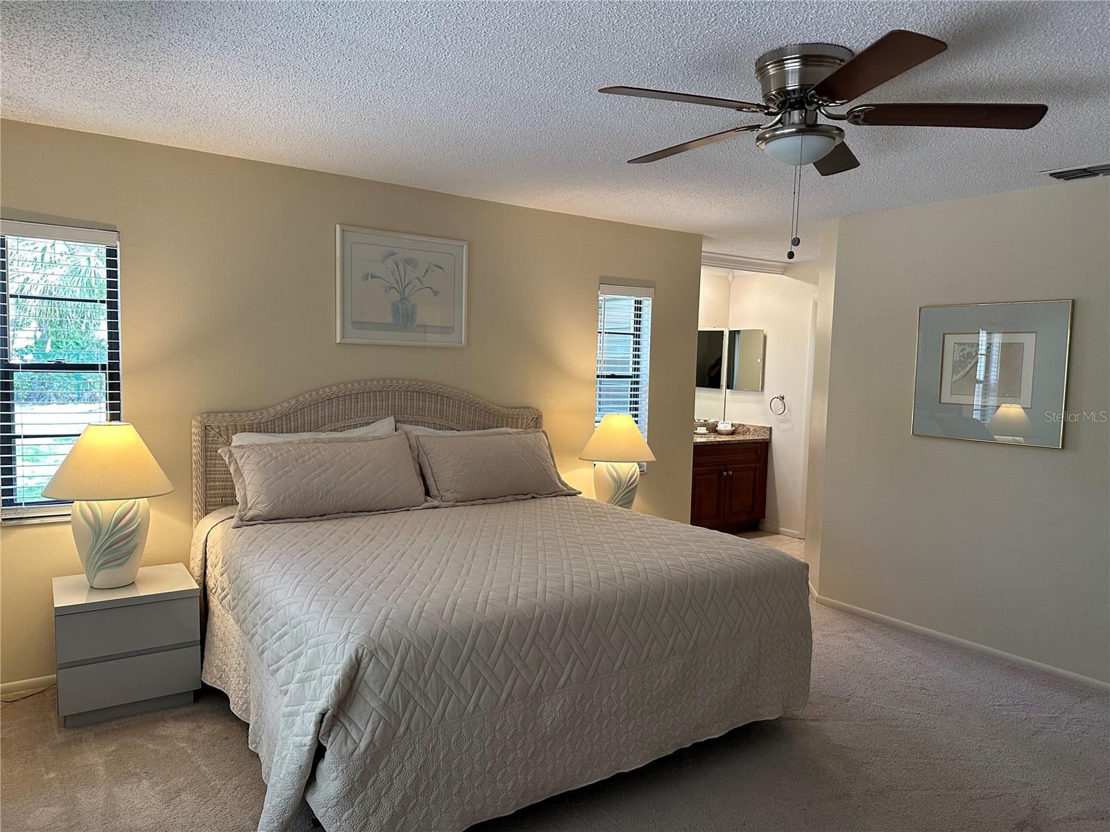 Sought after private cul de sac location that is short walk to the large Resort Style Community Pool. Rare opportunity to own in a community that is allowed weekly rentals! There is a waiting list for Seasonal multi month rentals. This villa has been completely updated with neutral flowing colors throughout. All furnishings are included. Eat in kitchen has plenty of storage space in the easy close cabinets and drawers. Beautiful granite counter tops, lots of recessed lighting encased in crown molding. Spacious living room overlooks the private rear view. Three new flat screen TV's are included. Multiple ceiling fans. Vertical blinds over the windows plus decorative valences. Master bedroom has a king size bed also with a private outside view. Ensuite dressing room/bathroom with a huge walk in closet. Split bedroom plan for added privacy. Super private tiled lanai overlooking an expansive grassy treed area. Garage has an owners closet. This is a great community for outdoor enthusiasts. Dedicated pickle ball court and separate tennis court. Putting green, shuffle board, billiards or walk around the circle admiring the tropical paradise. World Famous Siesta Key Beach is 15 minutes away plus multiple beaches to choose from. Make this your Sarasota home away from home plus rental income. Room Feature: Linen Closet In Bath (Primary Bedroom).