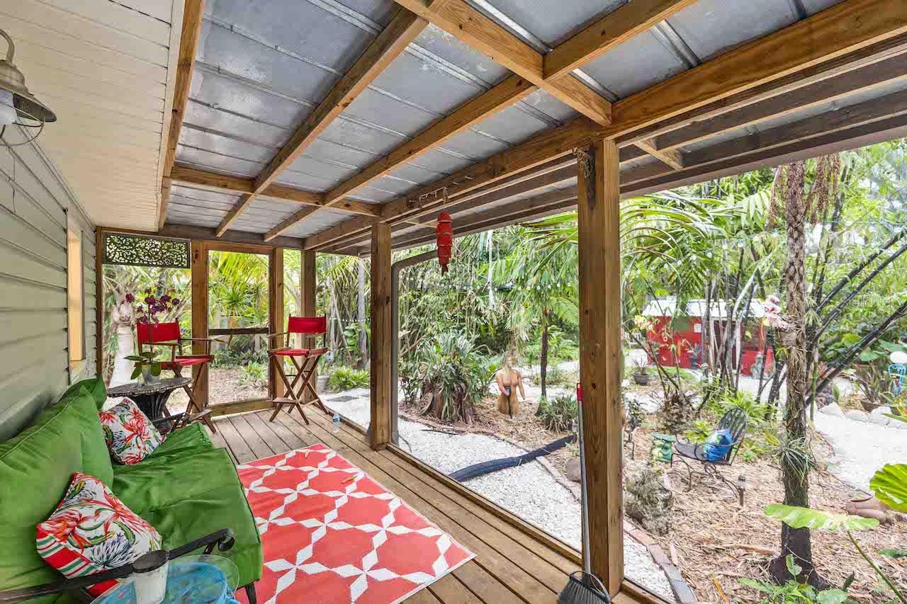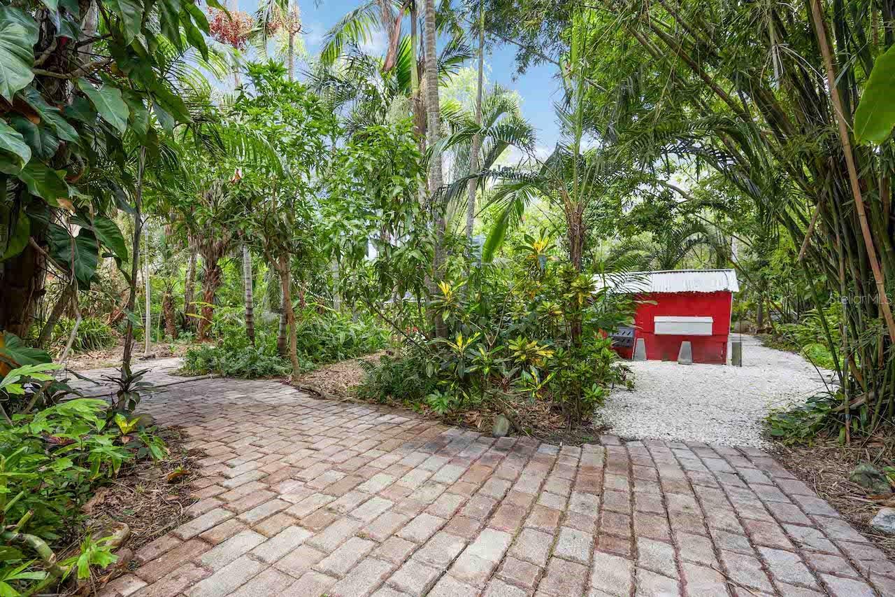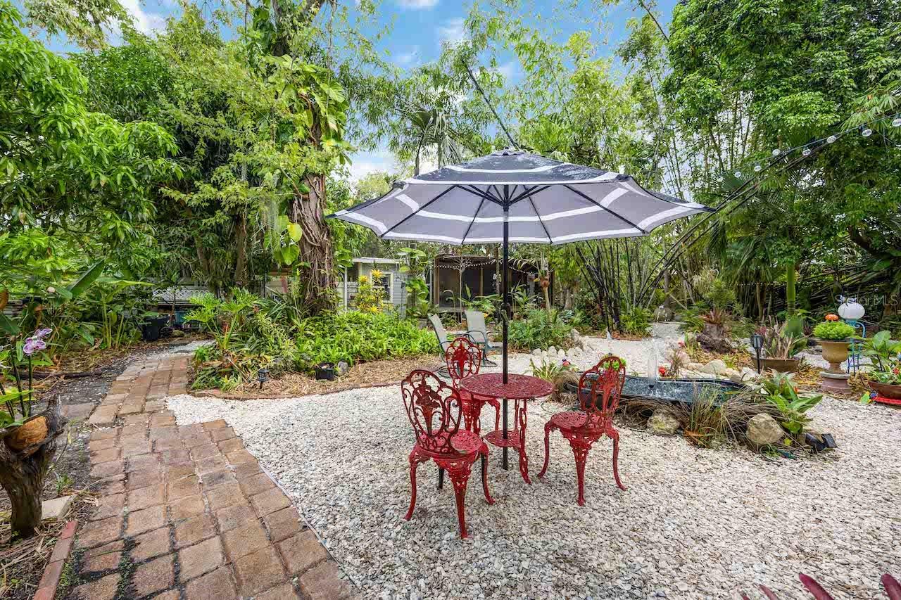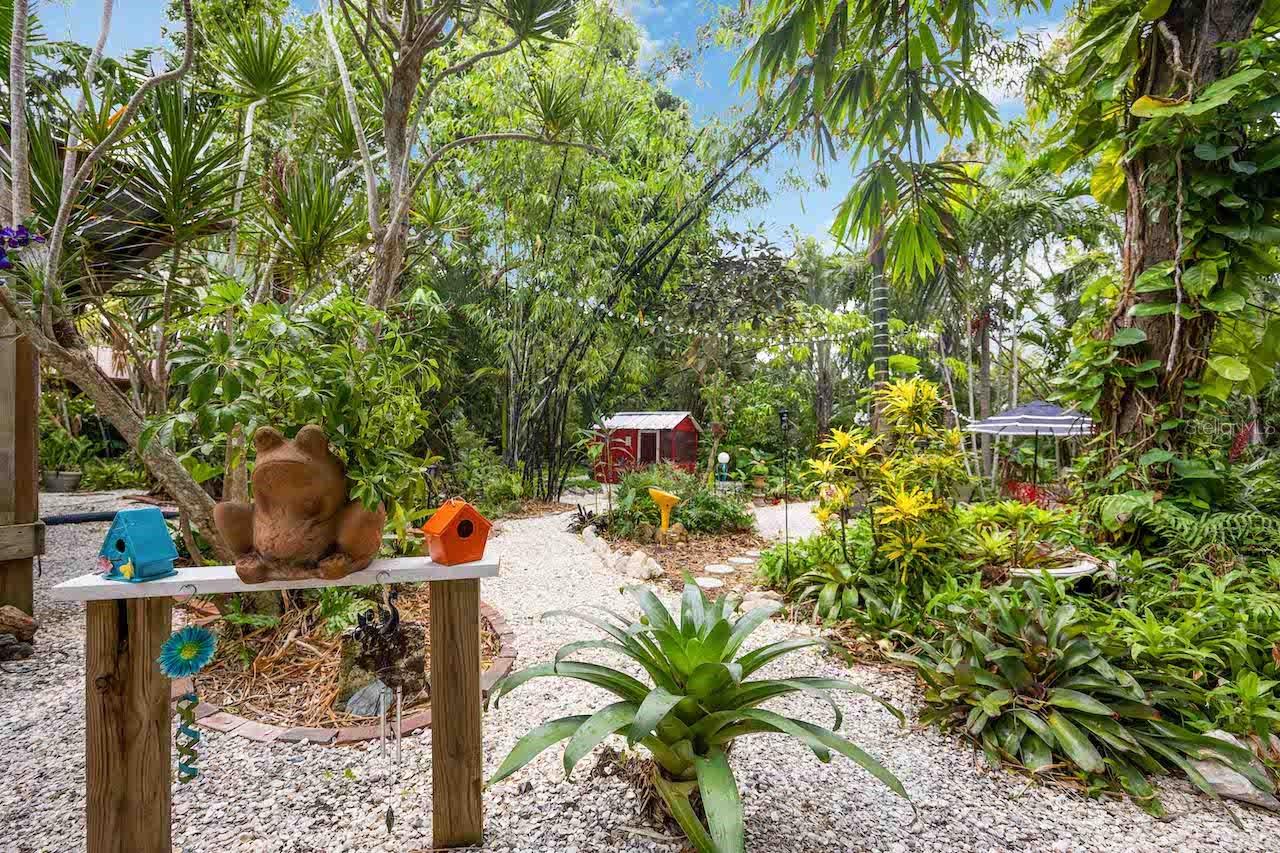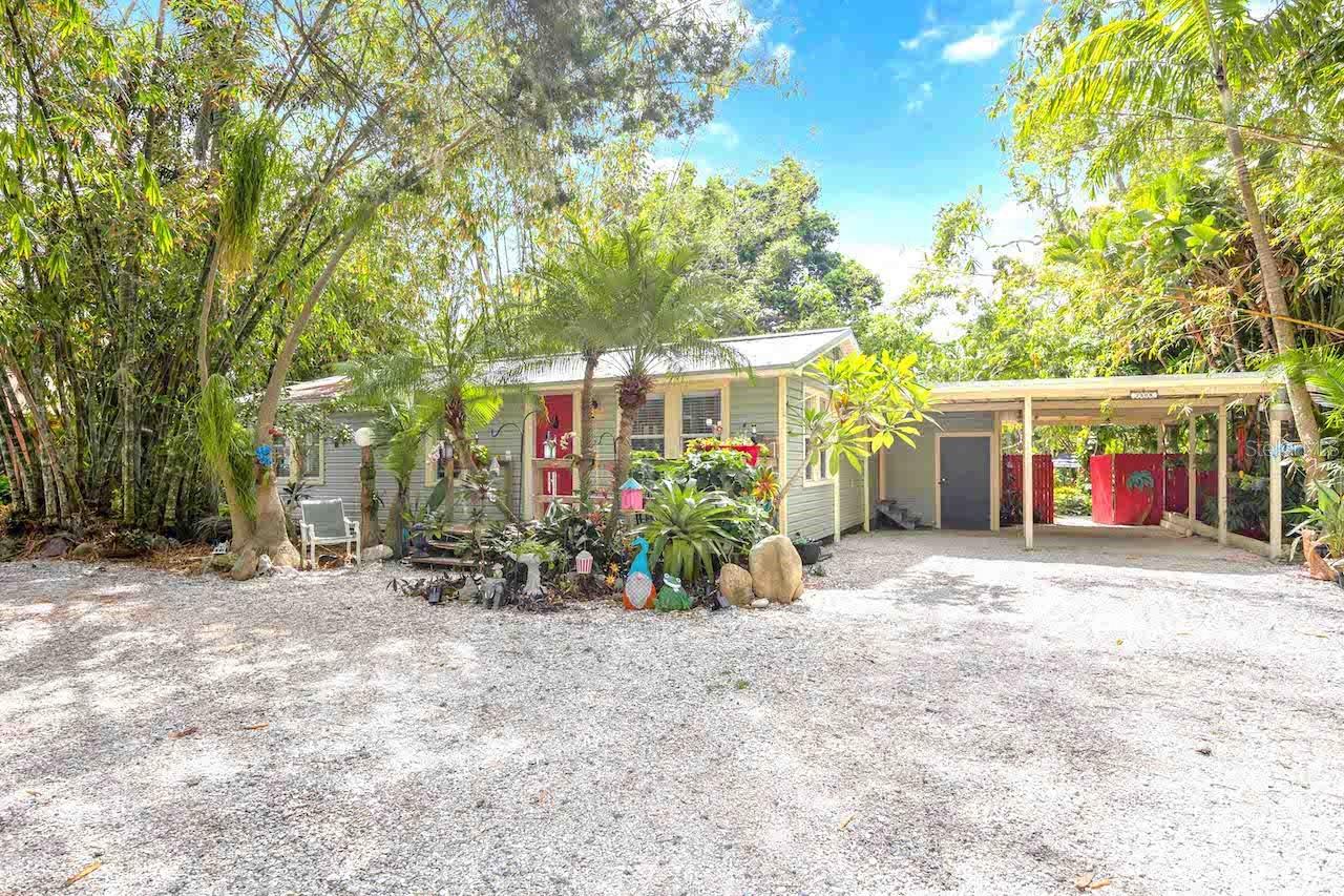 Priced to SELL! ALREADY inspected- Buyer got cold feet last minute! Great opportunity to develop multi-family or enjoy the enchanting 1/2 Acre lot! NEW Metal ROOF installed in 2019. Most of the plumbing has been re-plumbed to PVC. Welcome to the "Jungle House"- a beautifully maintained home located on a 1/2 acre (zoned multi-family), full of exotic palms, bamboo and bromeliads. All surrounded by a collectors dream of stunning orchids, worthy of Selby Garden’s attention. A gardener’s dream, with endless potential! Located within minutes to downtown Sarasota attractions and beaches! Zoned RMF-1 which allows Multi Family development if you choose to add any additional homes on the lot. Originally built in 1955 with multiple upgrades and renovations. Fresh eggs? No problem with your state of the art chicken coop, complete with nesting boxes and an automatic chicken door. (or it could be converted back to a shed) Perhaps the most enticing aspect of this lush oasis is the shelled courtyard featuring a brand new pond with a waterfall fountain and cafe seating all around! Coolest outdoor shower is awaiting your vision. The magical Orchid house in the back is in need of TLC, but VERY worthy! Mango, papaya, sugarcane, dragon fruit, and loquat trees- along with the fresh egg shall feed your family just fine. All of the backyard has electricity. Located two blocks to Ed Smith Stadium, it’s a great investment opportunity as an Airbnb! Originally a 4 bedroom home, the home was converted to a 2 bedroom and updated with laminate flooring and tile. The split floorplan is ideal for privacy with all the common areas located in the center of the home. Large kitchen countertop will make any chef excited will tons of room for prep work and entertaining. Pull up a stool or dine in the dining area. A built in book-nook for the reader in the house is located just off the living room and allows space for a small desk or office area. The main bedroom located towards the back of the home has an attached full bathroom and access to the screened lanai. The second bedroom is quite large, with additional space ideal for a sitting/workout area, or another queen bed. The second full bathroom is located in the main hallway just off the living room. Washer and Dryer are stackable and located just off the kitchen. The kitchen has an entrance to a wooden deck perfect for grilling and outdoor entertaining. The 2 car carport is oversized and has a large storage closet. A majority of the backyard is fenced. You will love the privacy this home and lot provide, you will never want to leave home.