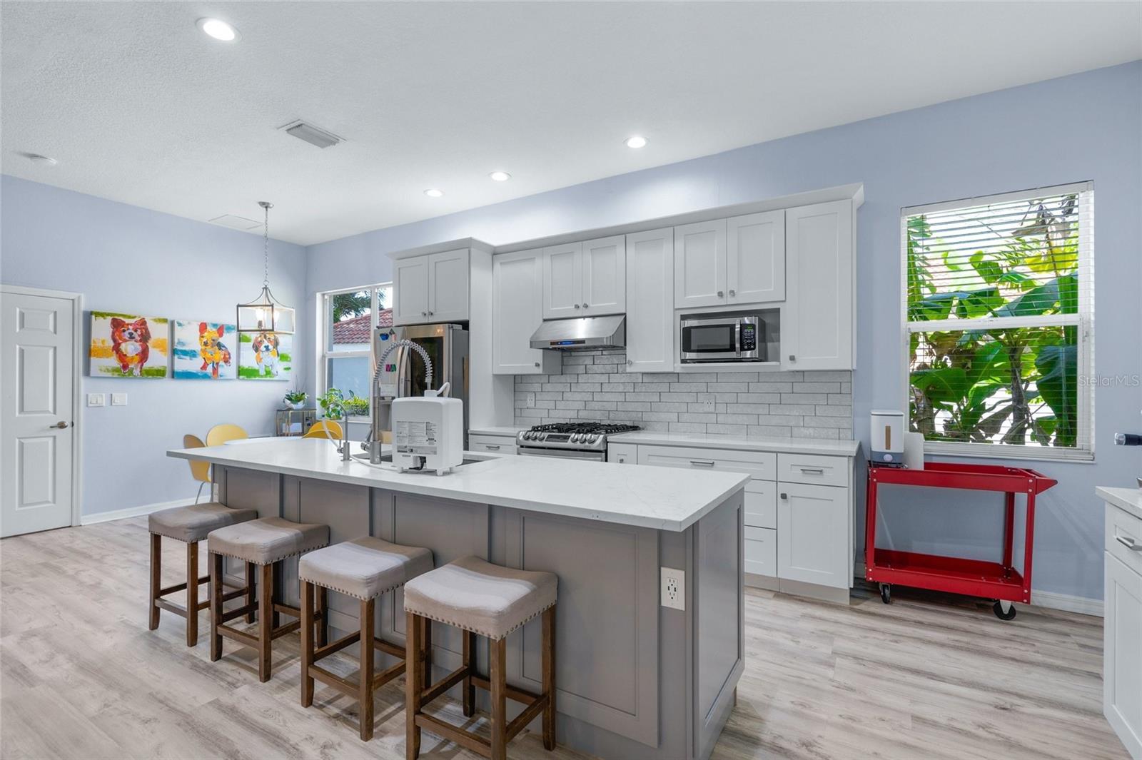 Welcome to this charming home in the sought-after Palmer Ranch community, where modern living meets comfort and convenience. This inviting home features a seamless open floor plan that includes a contemporary kitchen equipped with quartz countertops, stainless steel appliances, and a gas stove, all designed for the ultimate cooking and socializing experience. Smart lighting throughout the home adds a touch to the three spacious bedrooms and an office, including a master suite with a generous walk-in closet. The home has also been upgraded with a hurricane impact sliding door, 3 panes wide, enhancing both the aesthetic appeal and safety of the property. Upgrades like new plumbing and a three-year-old washer and dryer set are practical additions to the beautifully maintained outdoor space, complete with a patio and expansive backyard perfect for leisure and entertainment. Living in Palmer Ranch means enjoying a maintenance-free lifestyle with affordable HOA fees and no CDD fees, plus access to community amenities like a heated pool and lawn care with reclaimed water. The community’s prime location offers proximity to Siesta Key Beach, The Legacy Bike Trail, shopping, dining, The YMCA, and top-rated schools. This home is not just a residence; it’s a gateway to a fulfilling lifestyle in a vibrant community, making it an ideal place to call home.