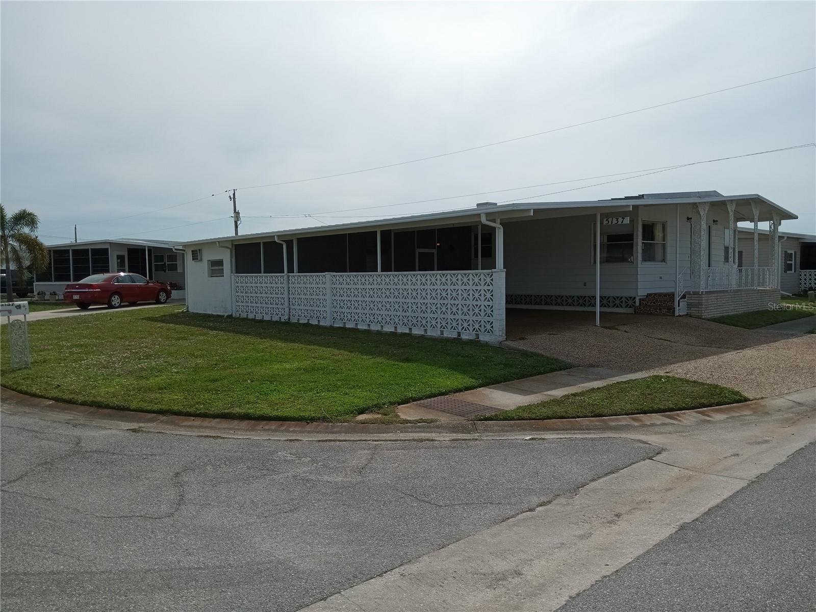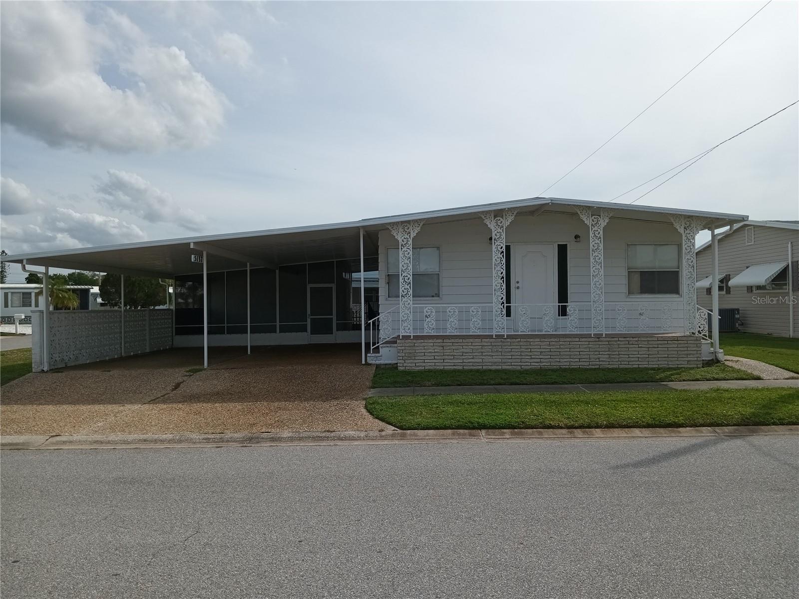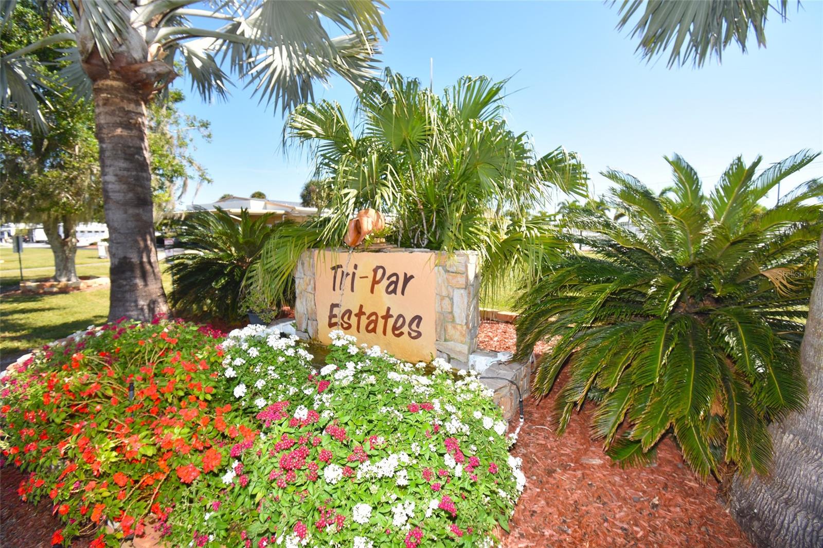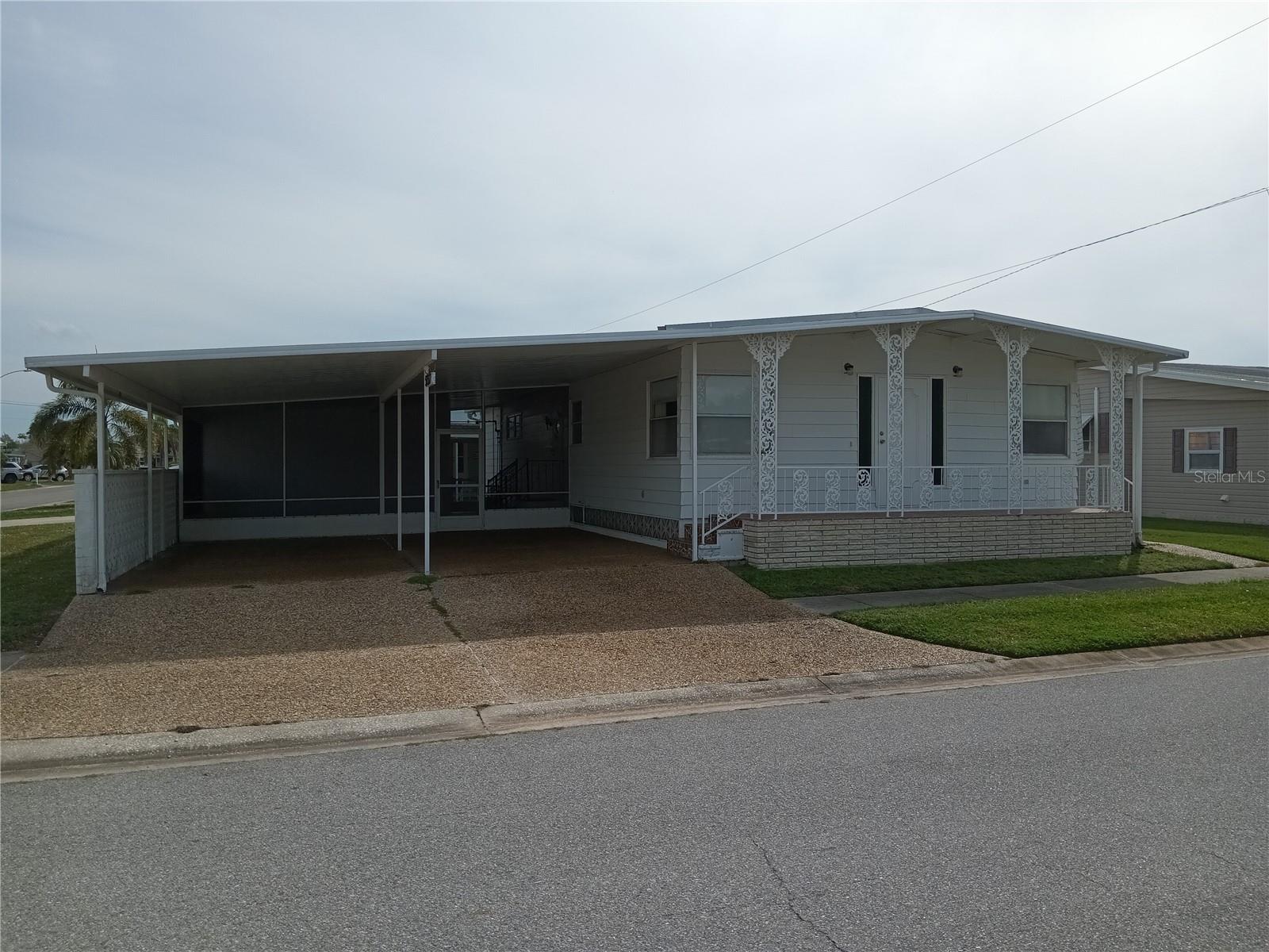 Corner lot, open concept spacious home is offered turnkey furnished. Double parking lot on a beautiful pebble stone driveway/lot. Concrete shed with updated laundry machines and storage. Screened outdoor living space, and 20' front porch with mosaic broken tile look. The kitchen has updated appliances and the living room/dining combo boasts an electric fireplace and 3 ceiling fans. The primary bedroom has a walk-in closet and both bedrooms have large updated ensuite bathrooms with large closets. Very well-maintained home with updates such as new electrical boxes inside and outside. Tri-par Estates is an active 55+ community where each property is individually owned with a deed and title to the home. We have many amenities here such as a large pool, spa, palapa tiki hut, pickleball courts, fitness center, shuffleboard, miniature golf, horseshoes, game rooms for billiards, ping-pong, and other activities such as sewing and painting classes, and card games. The large clubhouse is host to events such as dinners, dances, meetings, church services, and more. Located close to downtown Sarasota, marinas, hospitals, shopping, dining, Sarasota airport, cultural centers such as museums, performing arts, opera house, and of course Florida’s famous beaches! You own your own land in this special park and recreation district, and pay no “HOA” fee to Tri-par directly; the annual fee of $1,584.00 is included in your property taxes. We are a very golf-cart and motorcycle-friendly community and have optional storage for your R/V and boat.