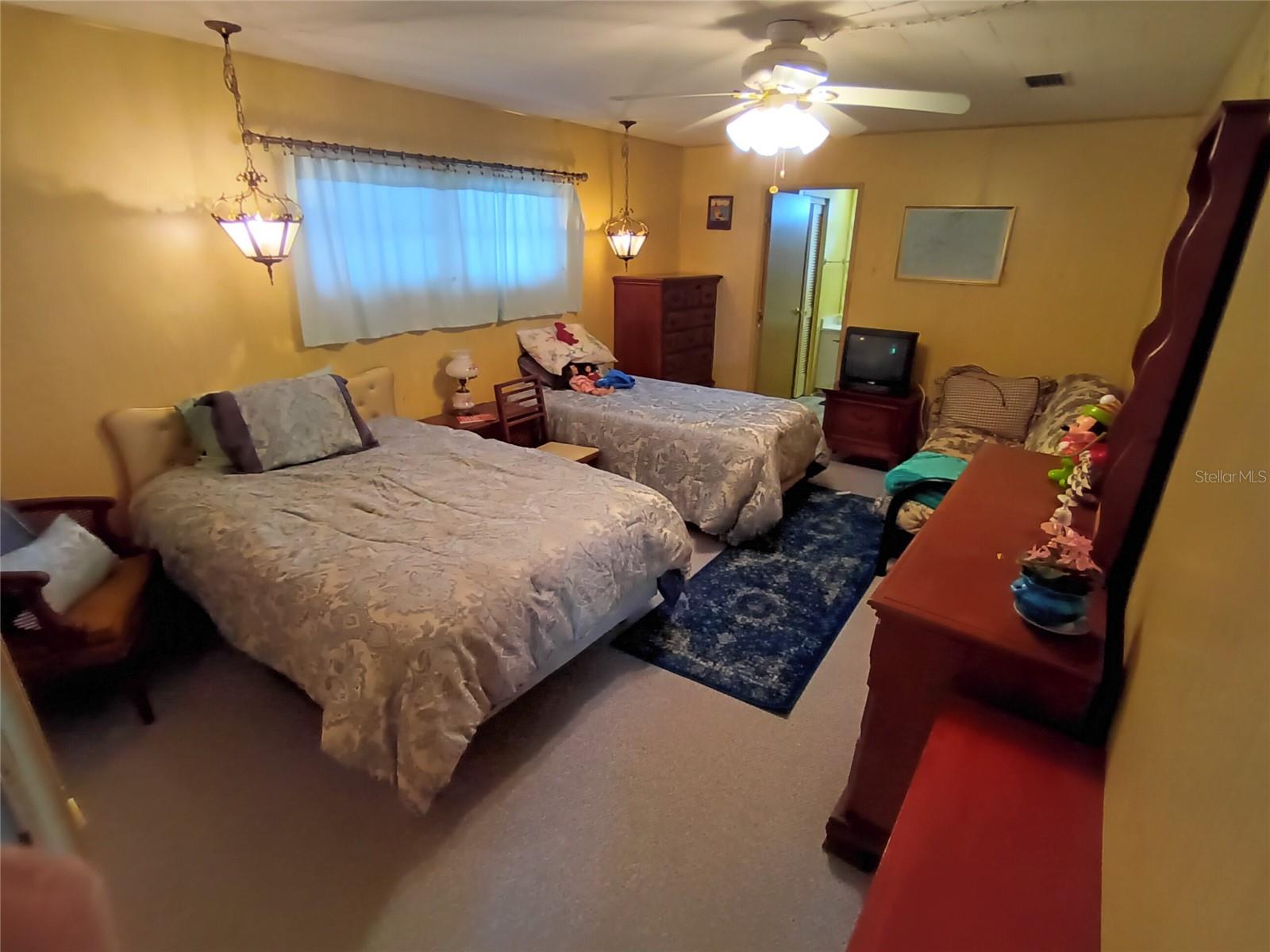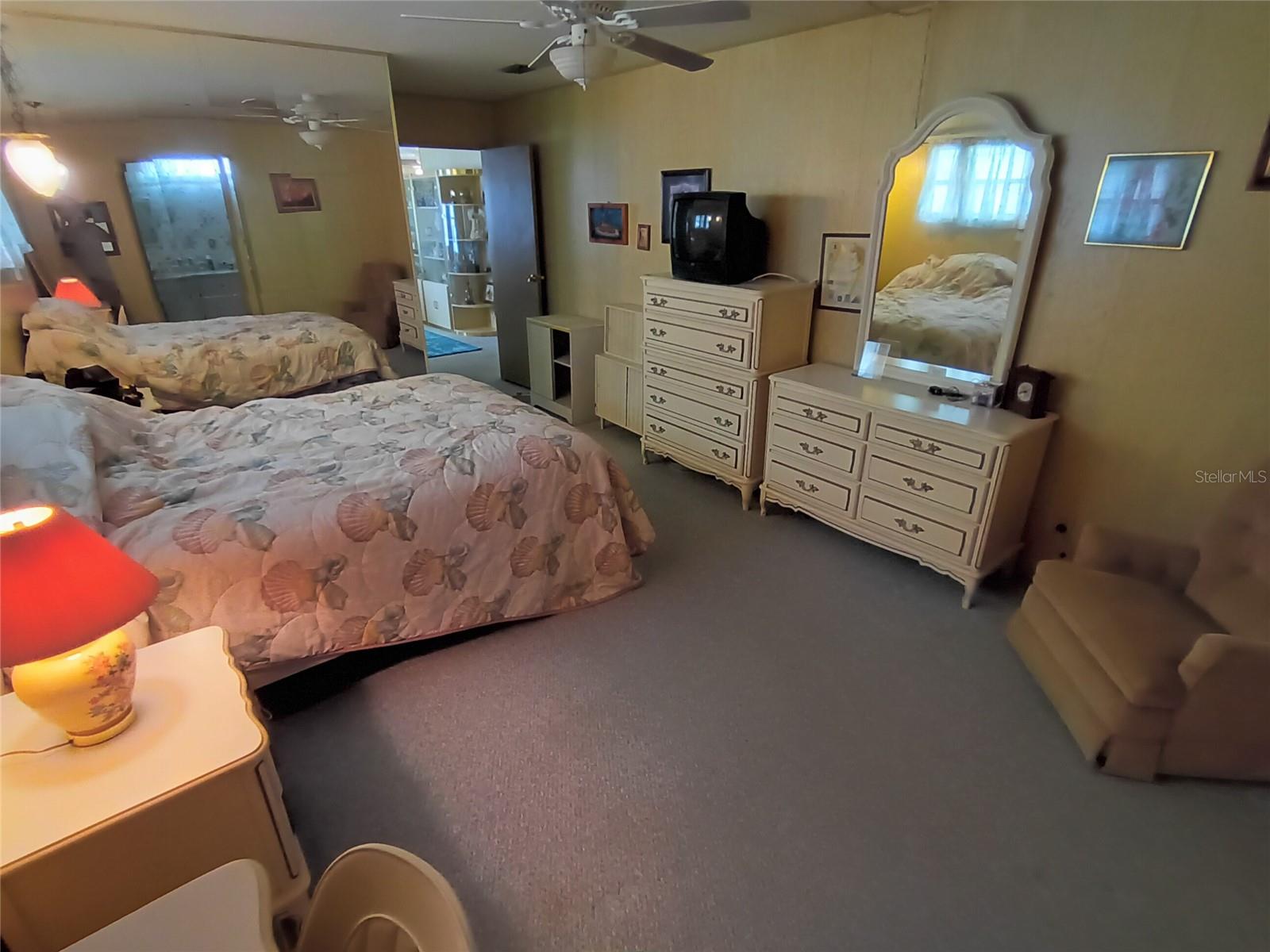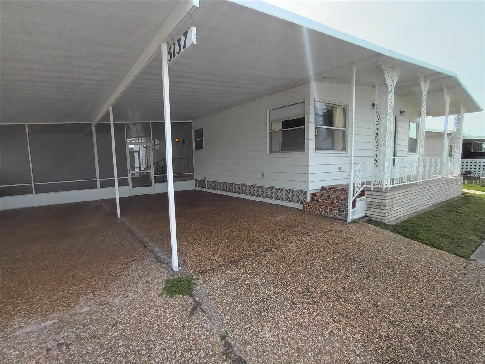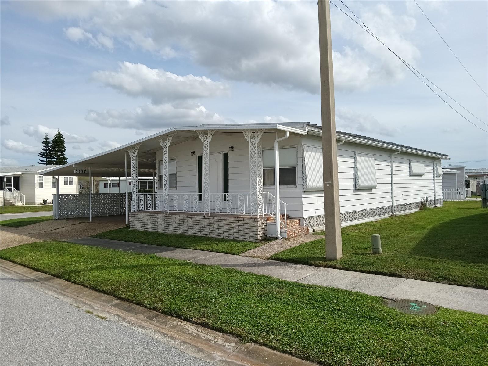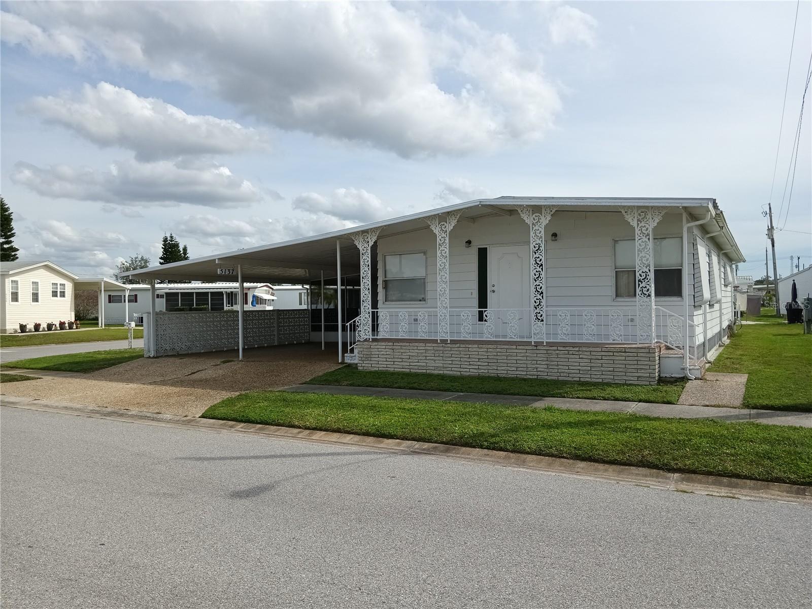Corner lot, open concept spacious home is offered turnkey furnished. Double parking lot on a beautiful pebble stone driveway/lot. Concrete shed with updated laundry machines and storage. Screened outdoor living space, and 20' front porch with mosaic broken tile look. The kitchen has updated appliances and the living room/dining combo boasts an electric fireplace and 3 ceiling fans. The primary bedroom has a walk-in closet and both bedrooms have large updated ensuite bathrooms with large closets. Very well-maintained home with updates such as new electrical boxes inside and outside. Tri-par Estates is an active 55+ community where each property is individually owned with a deed and title to the home. We have many amenities here such as a large pool, spa, palapa tiki hut, pickleball courts, fitness center, shuffleboard, miniature golf, horseshoes, game rooms for billiards, ping-pong, and other activities such as sewing and painting classes, and card games. The large clubhouse is host to events such as dinners, dances, meetings, church services, and more. Located close to downtown Sarasota, marinas, hospitals, shopping, dining, Sarasota airport, cultural centers such as museums, performing arts, opera house, and of course Florida’s famous beaches! You own your own land in this special park and recreation district, and pay no “HOA” fee to Tri-par directly; the annual fee of $1,584.00 is included in your property taxes. We are a very golf-cart and motorcycle-friendly community and have optional storage for your R/V and boat.
