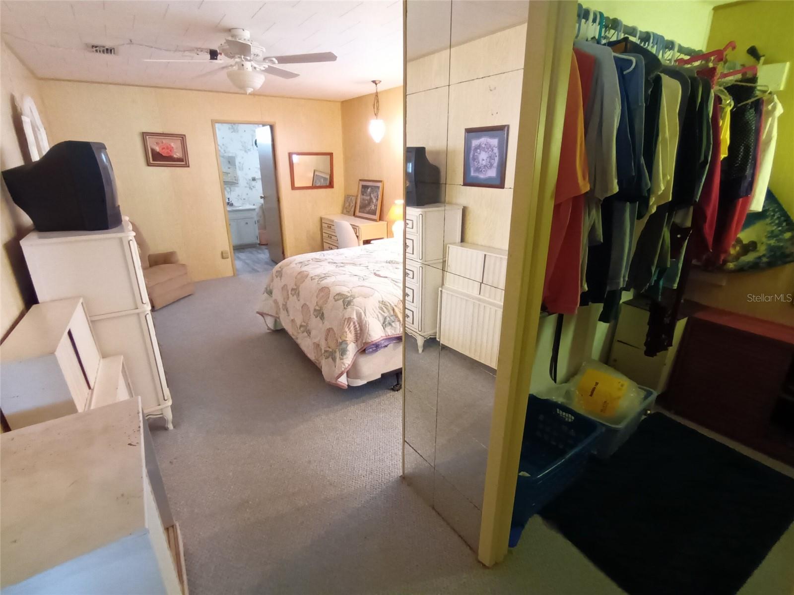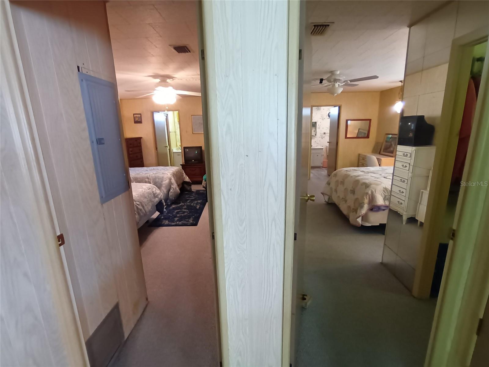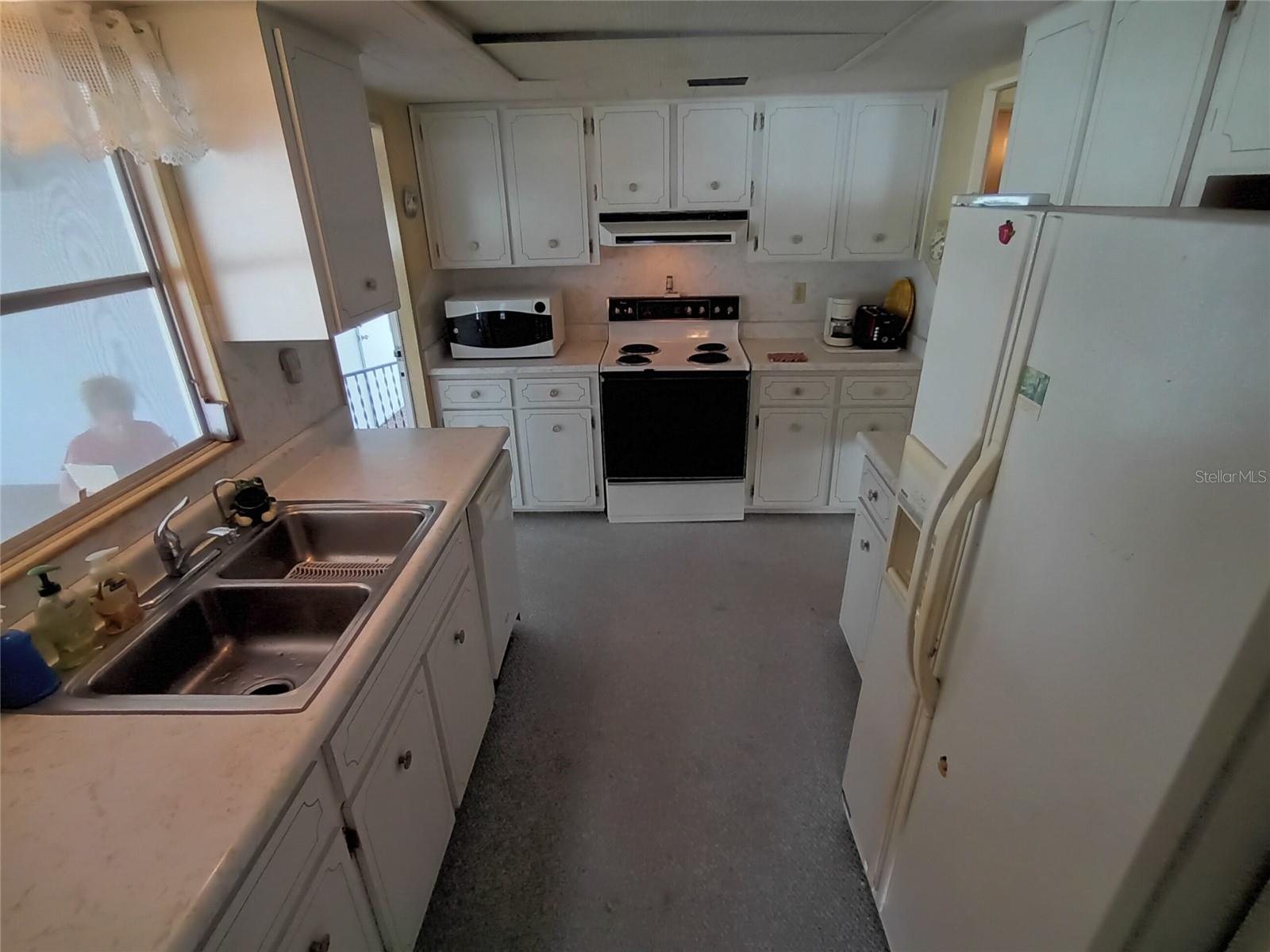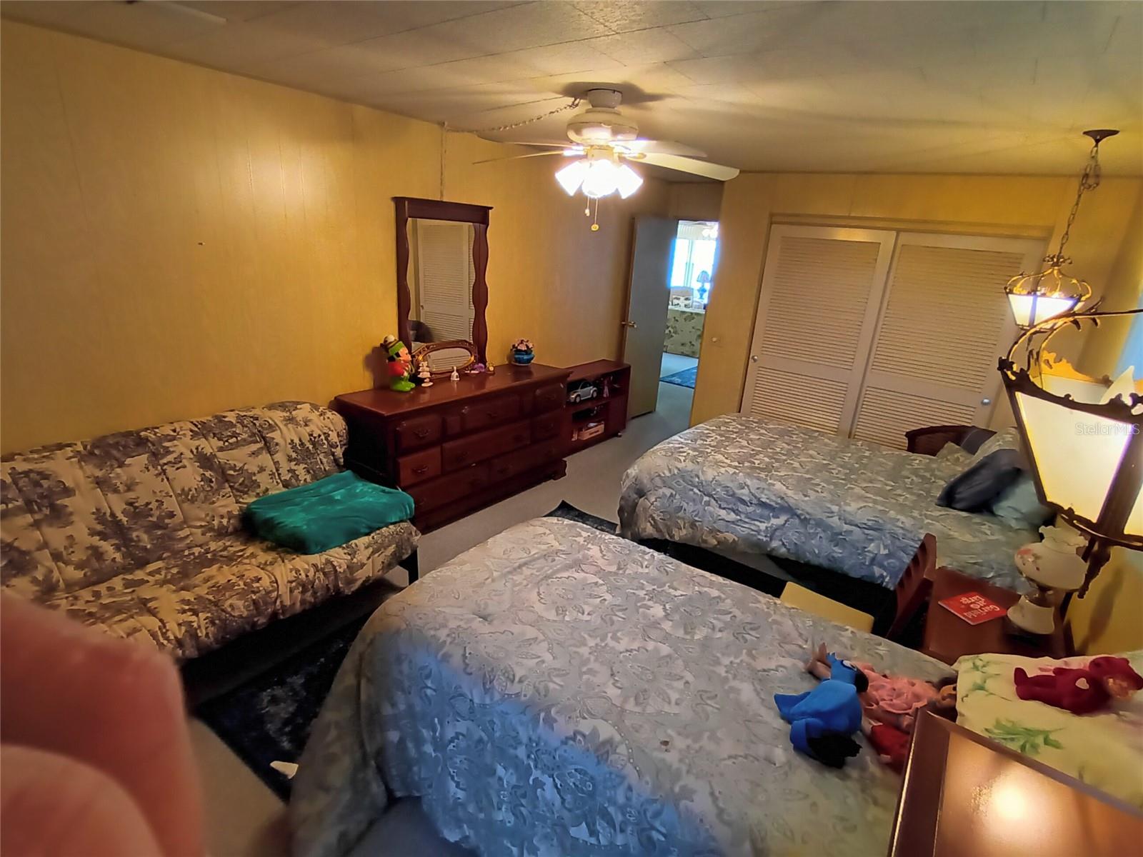 Corner lot, open concept spacious home is offered turnkey furnished. Double parking lot on a beautiful pebble stone driveway/lot. Concrete shed with updated laundry machines and storage. Screened outdoor living space, and 20' front porch with mosaic broken tile look. The kitchen has updated appliances and the living room/dining combo boasts an electric fireplace and 3 ceiling fans. The primary bedroom has a walk-in closet and both bedrooms have large updated ensuite bathrooms with large closets. Very well-maintained home with updates such as new electrical boxes inside and outside. Tri-par Estates is an active 55+ community where each property is individually owned with a deed and title to the home. We have many amenities here such as a large pool, spa, palapa tiki hut, pickleball courts, fitness center, shuffleboard, miniature golf, horseshoes, game rooms for billiards, ping-pong, and other activities such as sewing and painting classes, and card games. The large clubhouse is host to events such as dinners, dances, meetings, church services, and more. Located close to downtown Sarasota, marinas, hospitals, shopping, dining, Sarasota airport, cultural centers such as museums, performing arts, opera house, and of course Florida’s famous beaches! You own your own land in this special park and recreation district, and pay no “HOA” fee to Tri-par directly; the annual fee of $1,584.00 is included in your property taxes. We are a very golf-cart and motorcycle-friendly community and have optional storage for your R/V and boat.