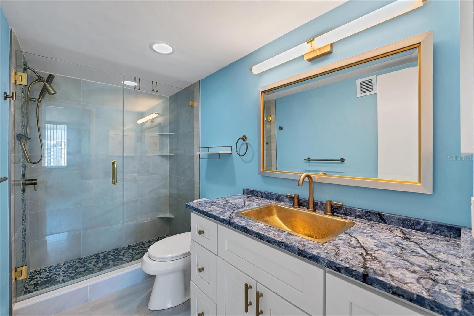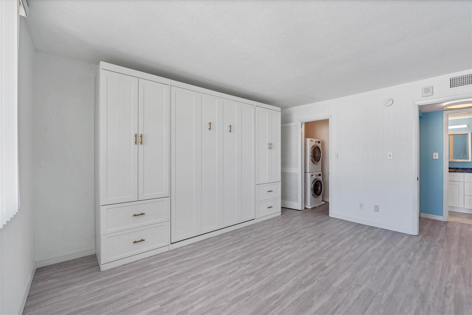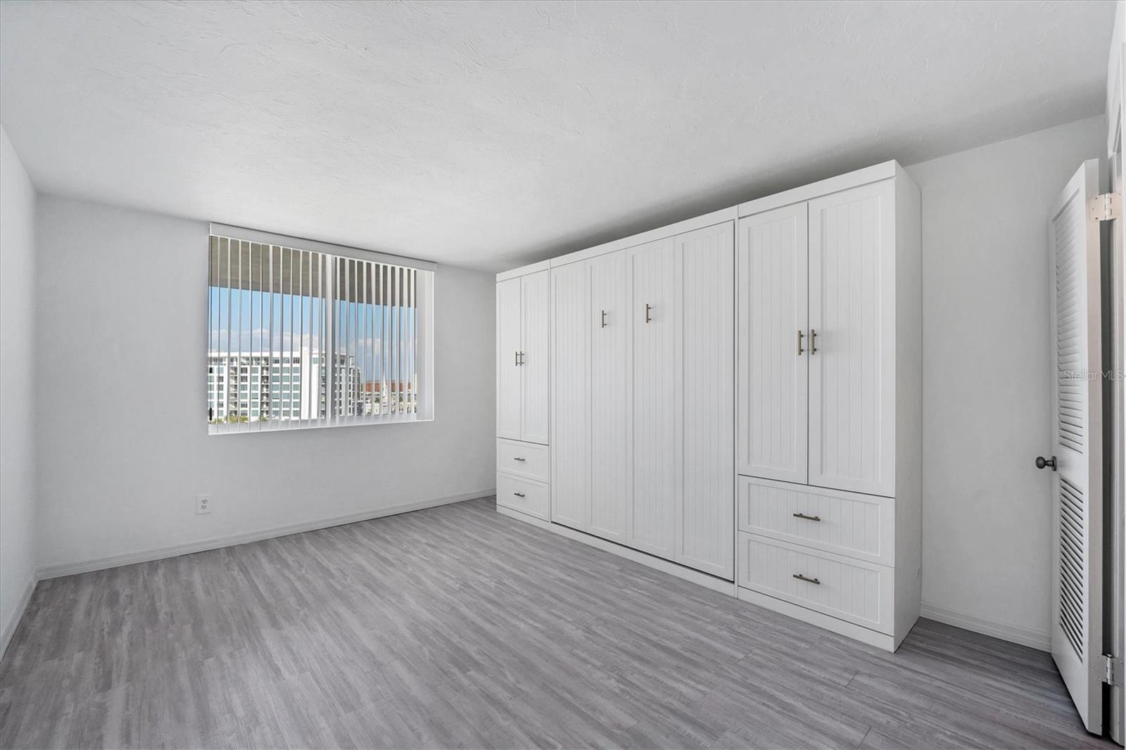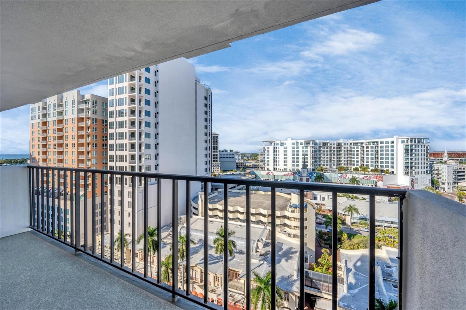 This 15th-floor condominium unit offers a prime location overlooking the city marina and Bayfront Park, nestled amidst a vibrant array of upscale restaurants, boutiques, and art galleries. Situated conveniently near the Opera House and Cinema Arts Theater, with trendy St. Armand's Circle and the picturesque Lido Beach just a five-minute drive away. This 2-bedroom, 2-bathroom unit boasts abundant natural light, greeting you with a scenic balcony vista. The kitchen features stunning stone countertops, matching those in the bathrooms, along with a stylish hammered brass sink, stainless steel appliances, and gold-accented cabinetry with convenient pull-out shelves and a lazy susan. The primary bedroom offers a spacious retreat, complete with a large window, an ensuite bath featuring a pebbled shower floor and hammered brass sink, and a thoughtful addition of a toilet with an attached bidet. A walk-in closet features a customized organization system. The second bedroom includes a Murphy bed with an attached wardrobe. Additionally, the walk-in closet houses a laundry area with a stackable washer and dryer. The second bath features a sizable vanity with a hammered brass sink and a walk-in shower with a pebbled floor. The unit also includes two additional storage closets, along with one parking space and a storage cage in the attached parking garage. For added security, the lobby is staffed, and after-hours access is granted with a fob. Currently undergoing extensive renovations, the condominiums will soon offer enhanced amenities, including a heated pool, a fully equipped fitness center, and a versatile studio room for various fitness activities such as dance and yoga.