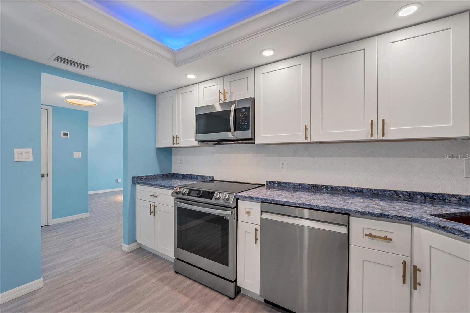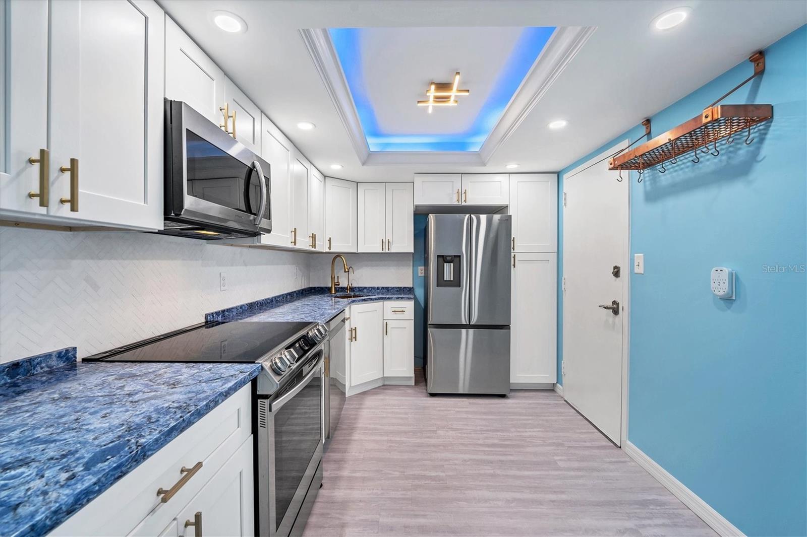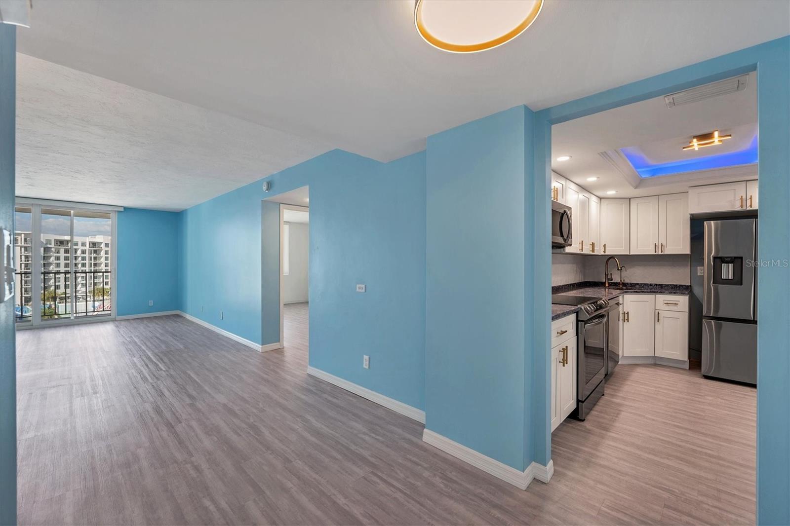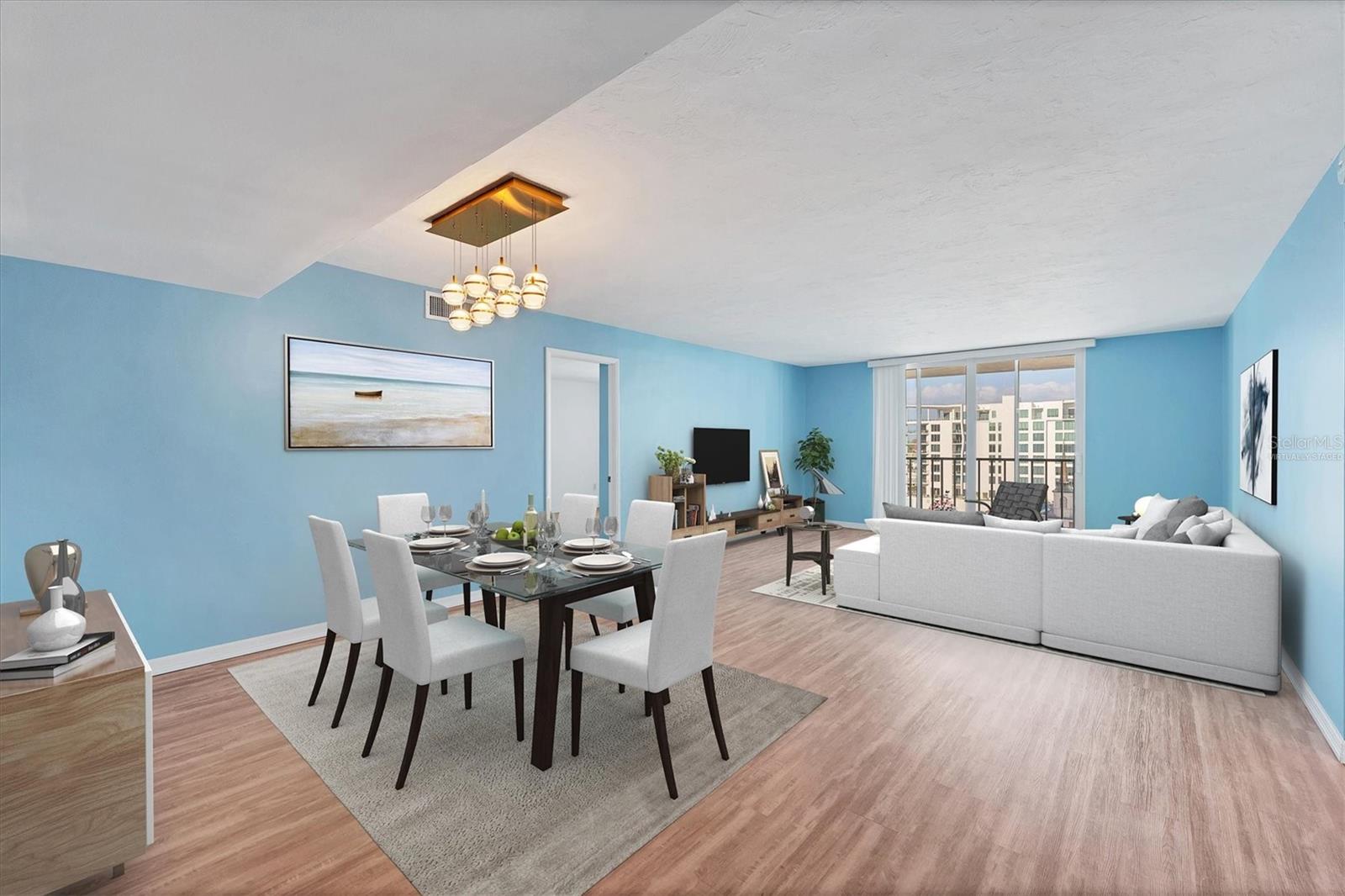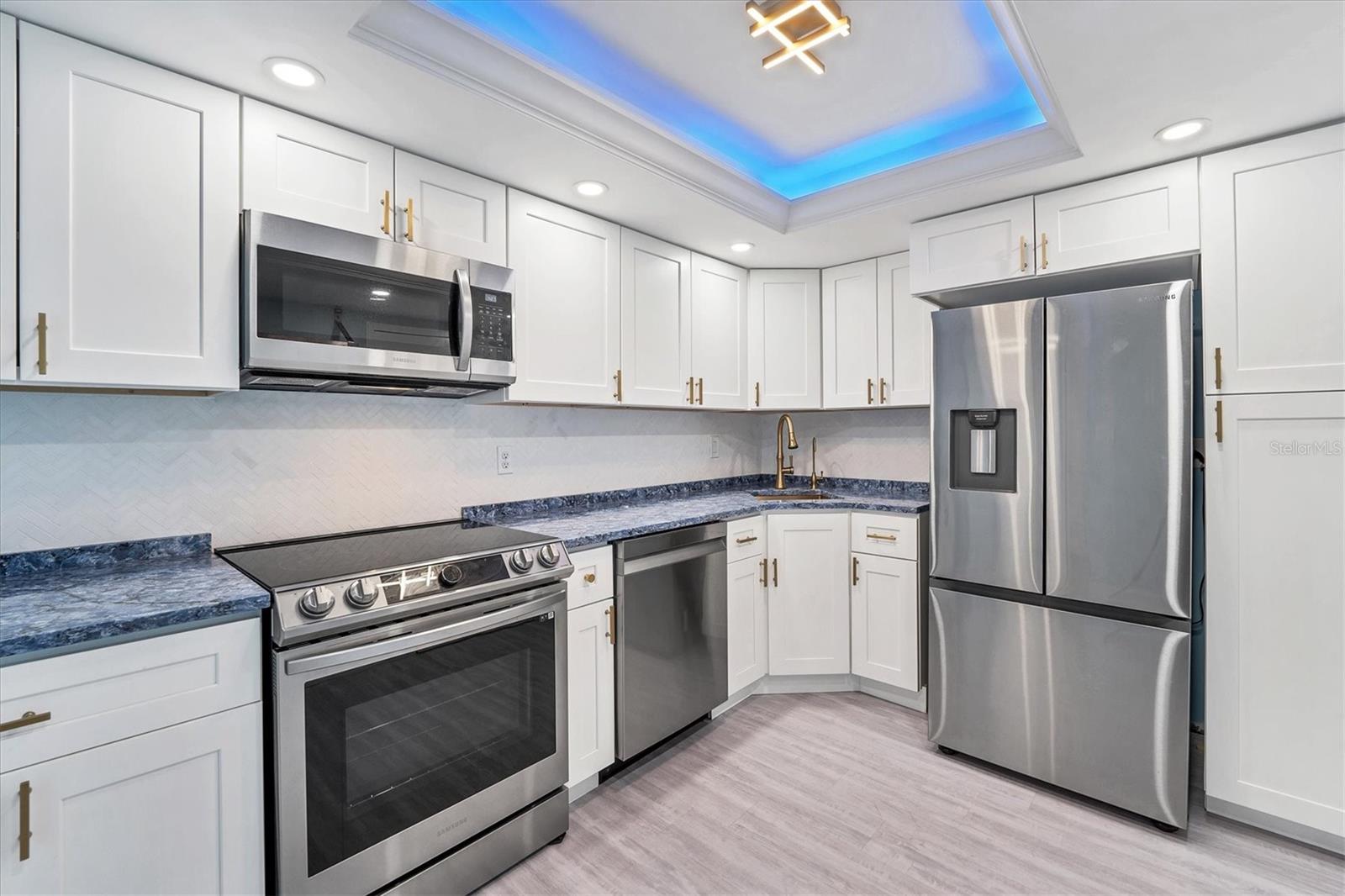 This 15th-floor condominium unit offers a prime location overlooking the city marina and Bayfront Park, nestled amidst a vibrant array of upscale restaurants, boutiques, and art galleries. Situated conveniently near the Opera House and Cinema Arts Theater, with trendy St. Armand's Circle and the picturesque Lido Beach just a five-minute drive away. This 2-bedroom, 2-bathroom unit boasts abundant natural light, greeting you with a scenic balcony vista. The kitchen features stunning stone countertops, matching those in the bathrooms, along with a stylish hammered brass sink, stainless steel appliances, and gold-accented cabinetry with convenient pull-out shelves and a lazy susan. The primary bedroom offers a spacious retreat, complete with a large window, an ensuite bath featuring a pebbled shower floor and hammered brass sink, and a thoughtful addition of a toilet with an attached bidet. A walk-in closet features a customized organization system. The second bedroom includes a Murphy bed with an attached wardrobe. Additionally, the walk-in closet houses a laundry area with a stackable washer and dryer. The second bath features a sizable vanity with a hammered brass sink and a walk-in shower with a pebbled floor. The unit also includes two additional storage closets, along with one parking space and a storage cage in the attached parking garage. For added security, the lobby is staffed, and after-hours access is granted with a fob. Currently undergoing extensive renovations, the condominiums will soon offer enhanced amenities, including a heated pool, a fully equipped fitness center, and a versatile studio room for various fitness activities such as dance and yoga.