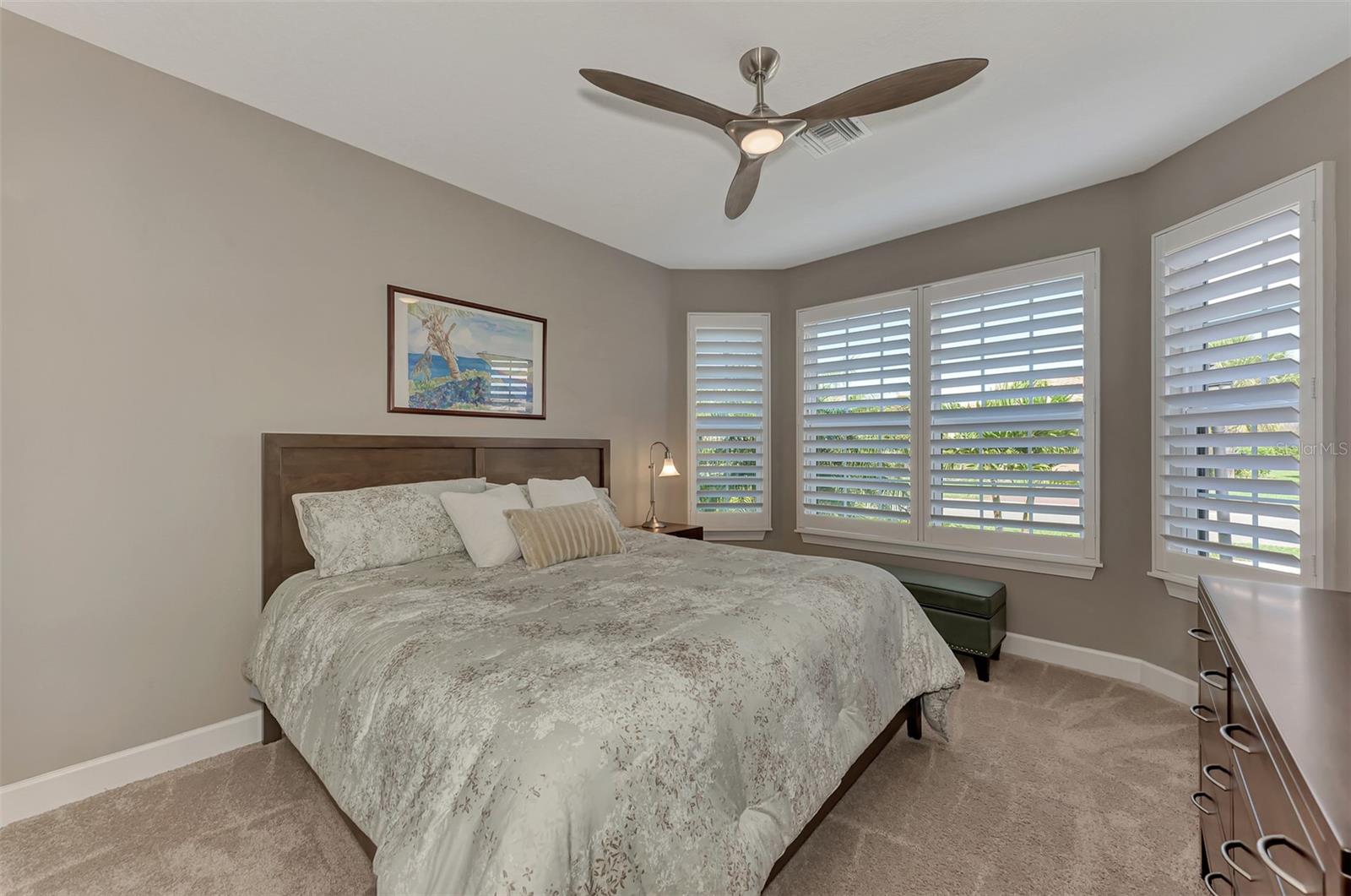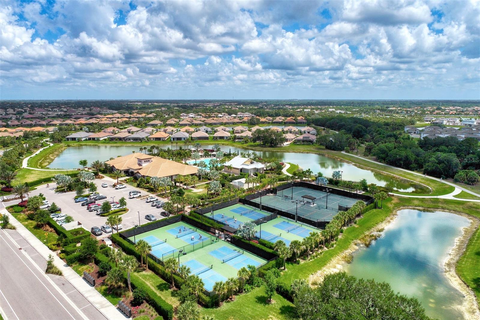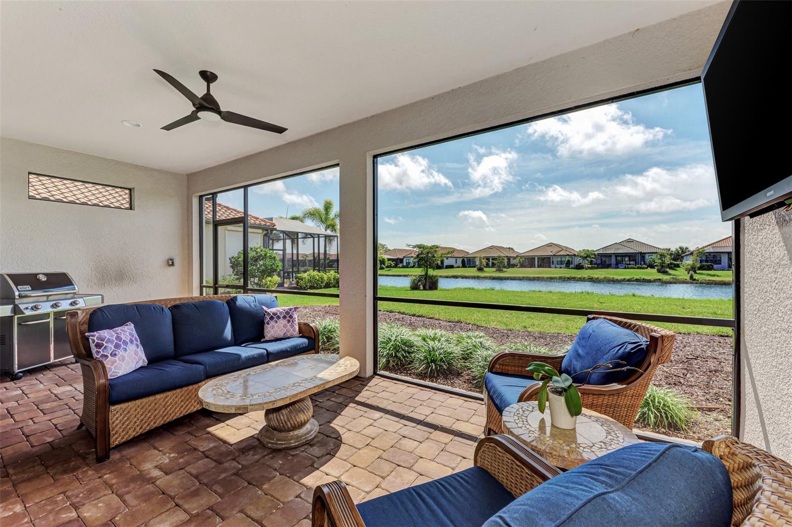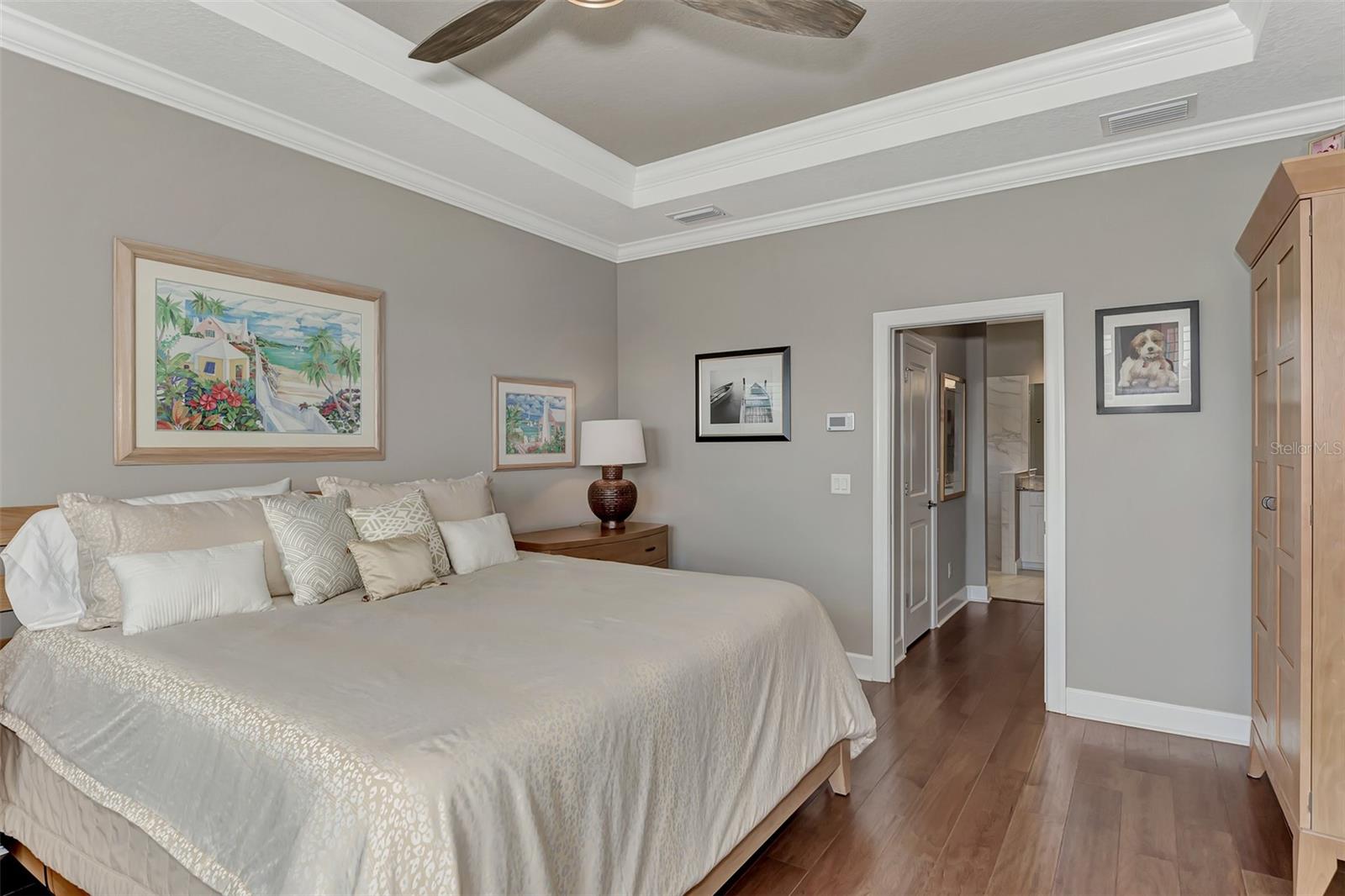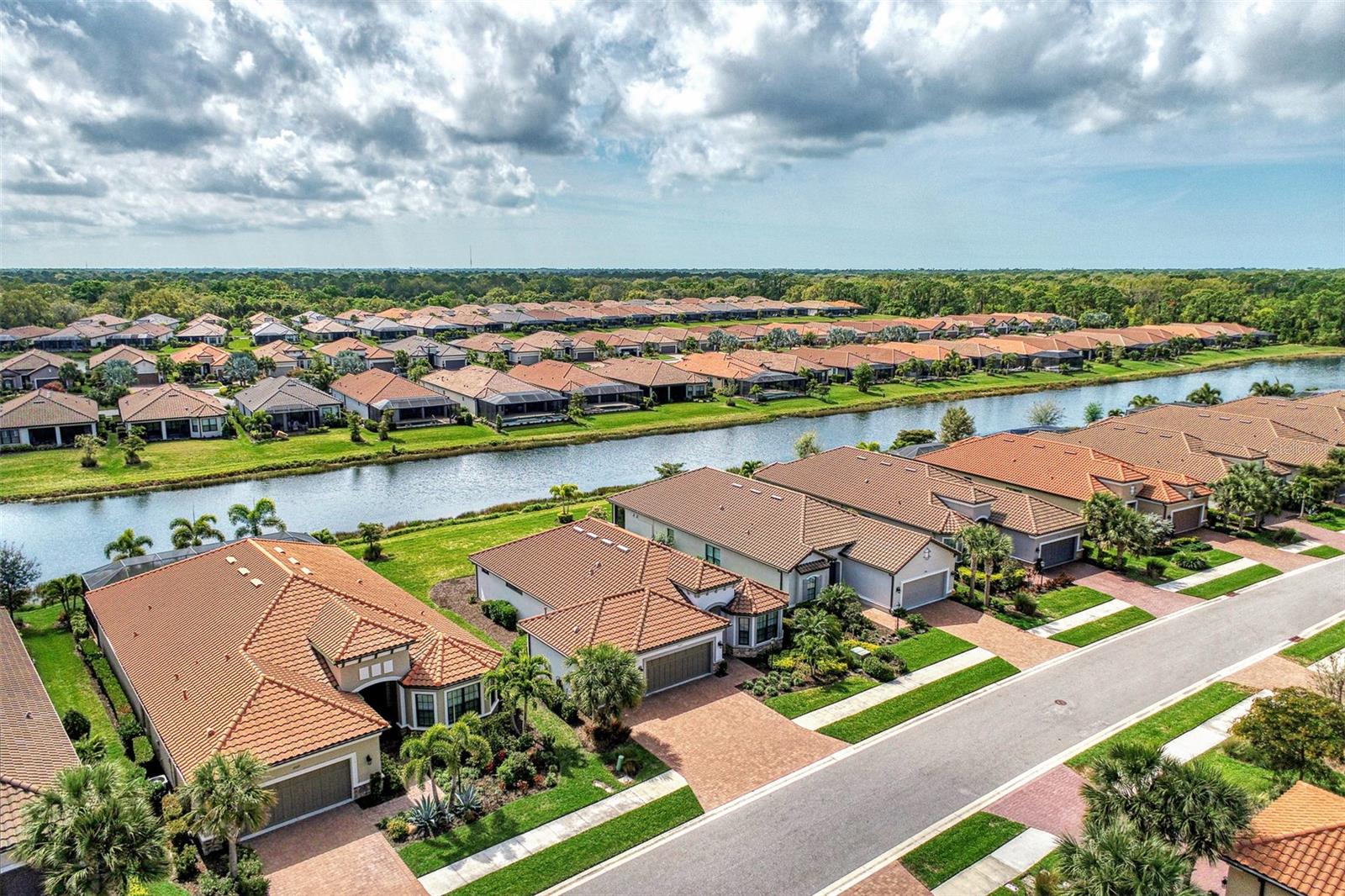 Esplanade on Palmer Ranch, a gated community! This stunning lake view rarely available Piceno Model by Taylor Morrison is light and bright with a south rear facing exposure that is spacious, open and has a modern floor plan for today’s lifestyle. This home offers a full 3 car garage, 2 bedroom en-suites, an office that could easily be converted to a 3rd bedroom, a large living area that is great for entertaining, the entire house has hurricane impact resistant windows and sliders, tray ceilings, highest upgraded flooring which includes tile and engineered hardwood flooring, an oversized backyard to fit your custom designed pool, outdoor kitchen rough in, custom designed closets throughout, custom made office wall unit with desk, garage shelving with racks and workbench, flatscreen tv’s installed in every room and on the lanai. The kitchen is perfect for a Chef! It's equipped with an oversized quartz Island with lots of storage underneath, stainless steel appliances, quartz countertops, soft close drawers, under cabinet lighting, beautiful wood cabinets with pull outs and large drawers for your kitchen needs. Gas Cooking! This Taylor Morrison signature neighborhood offers endless amenities, it feels like being on a cruise ship! The neighborhood provides lawn maintenance which makes it extra special if you want to lock and go! These amenities are a Lifestyle director, elegant amenity center with wellness services, catering kitchen, lounge areas, fitness center & activity rooms, Resort style pool & spa, fire pit, walking trails, private entrance to the Legacy Bike Trail, tennis, pickle ball, bocce, dog parks and its own neighborhood Bahama bar that includes restaurant and full bar. This neighborhood is a fun place to live. Don't miss out in the opportunity to live in a Resort Style community. Golf Carts Welcome! Bedroom Closet Type: Walk-in Closet (Primary Bedroom).