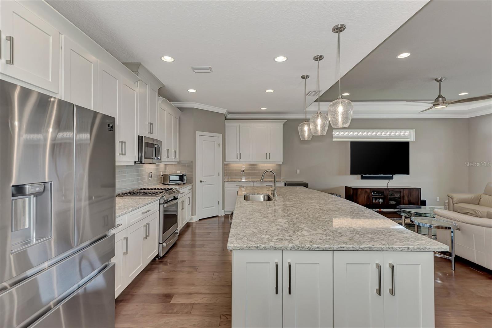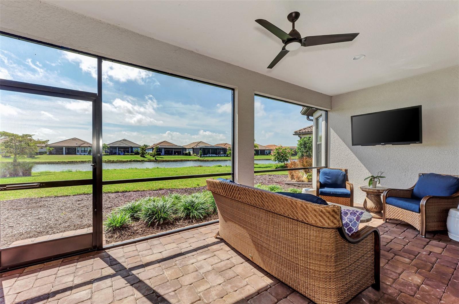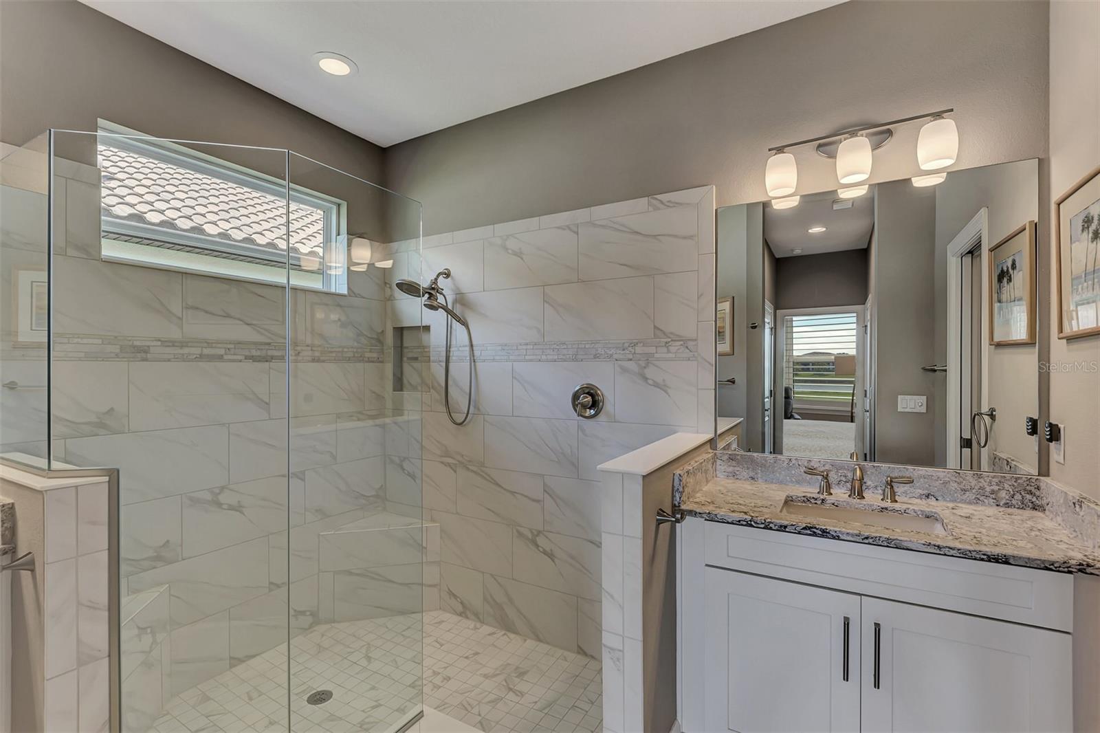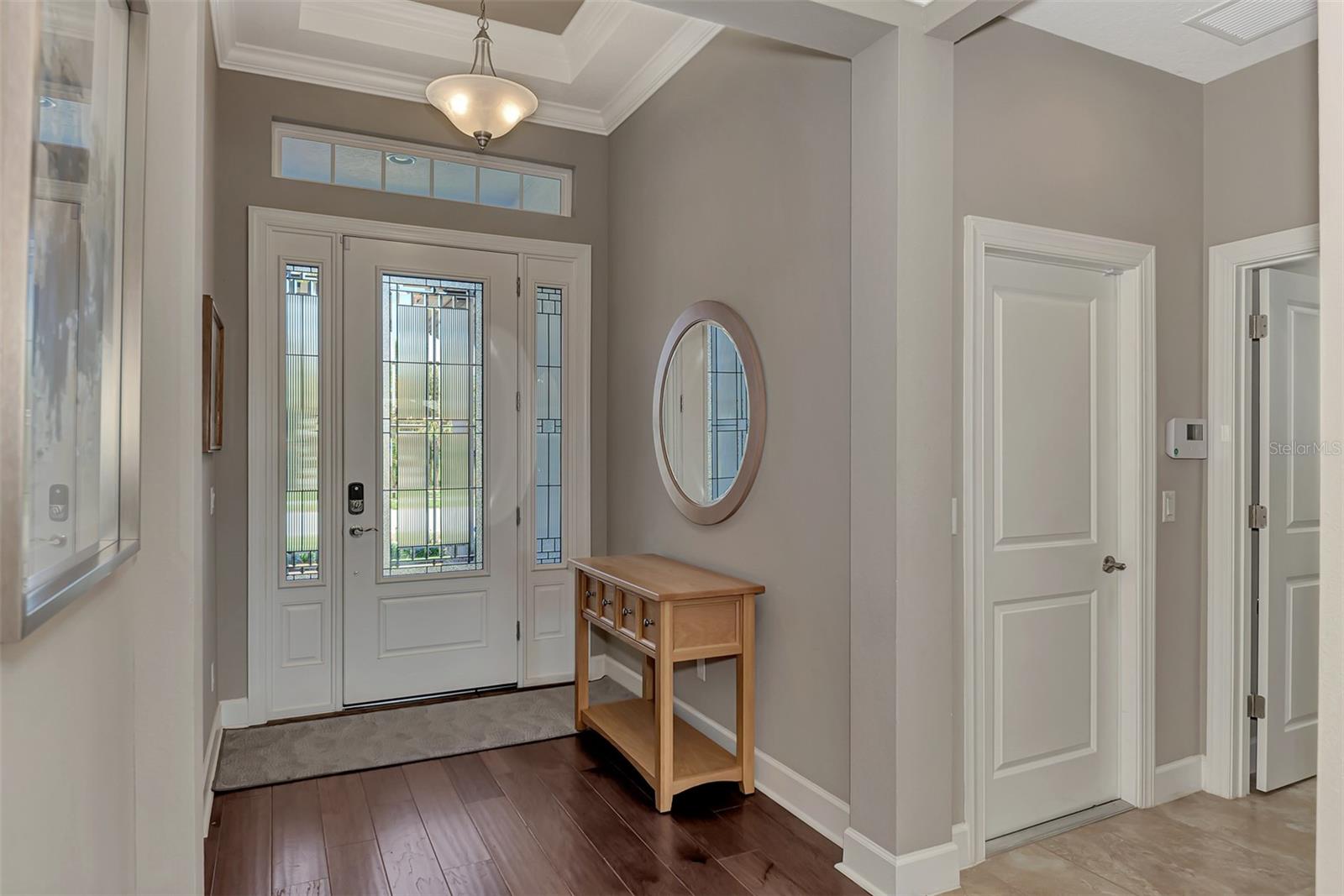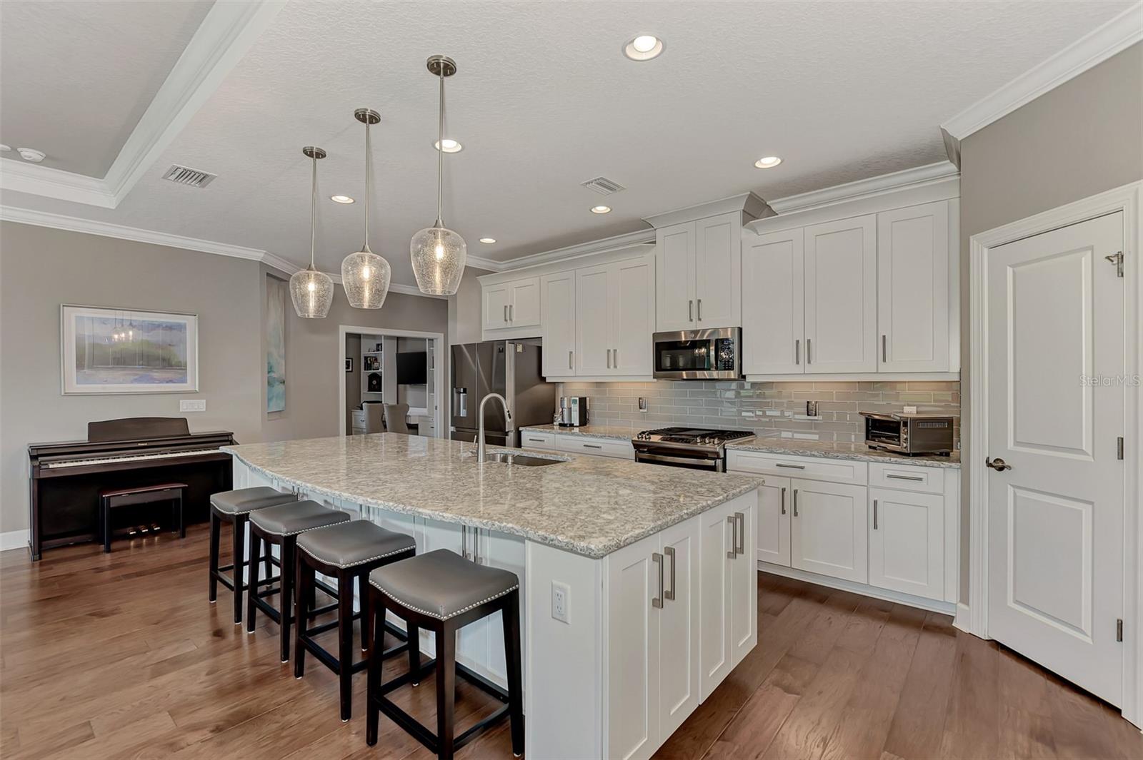Esplanade on Palmer Ranch, a gated community! This stunning lake view rarely available Piceno Model by Taylor Morrison is light and bright with a south rear facing exposure that is spacious, open and has a modern floor plan for today’s lifestyle. This home offers a full 3 car garage, 2 bedroom en-suites, an office that could easily be converted to a 3rd bedroom, a large living area that is great for entertaining, the entire house has hurricane impact resistant windows and sliders, tray ceilings, highest upgraded flooring which includes tile and engineered hardwood flooring, an oversized backyard to fit your custom designed pool, outdoor kitchen rough in, custom designed closets throughout, custom made office wall unit with desk, garage shelving with racks and workbench, flatscreen tv’s installed in every room and on the lanai. The kitchen is perfect for a Chef! It's equipped with an oversized quartz Island with lots of storage underneath, stainless steel appliances, quartz countertops, soft close drawers, under cabinet lighting, beautiful wood cabinets with pull outs and large drawers for your kitchen needs. Gas Cooking! This Taylor Morrison signature neighborhood offers endless amenities, it feels like being on a cruise ship! The neighborhood provides lawn maintenance which makes it extra special if you want to lock and go! These amenities are a Lifestyle director, elegant amenity center with wellness services, catering kitchen, lounge areas, fitness center & activity rooms, Resort style pool & spa, fire pit, walking trails, private entrance to the Legacy Bike Trail, tennis, pickle ball, bocce, dog parks and its own neighborhood Bahama bar that includes restaurant and full bar. This neighborhood is a fun place to live. Don't miss out in the opportunity to live in a Resort Style community. Golf Carts Welcome! Bedroom Closet Type: Walk-in Closet (Primary Bedroom).