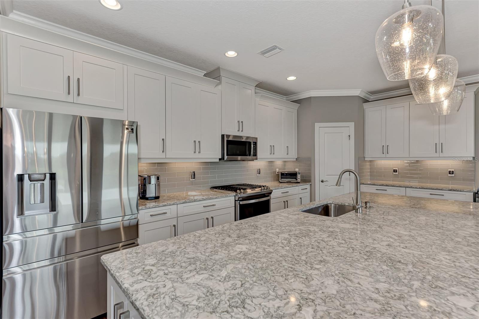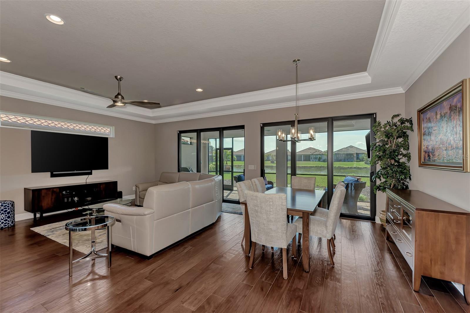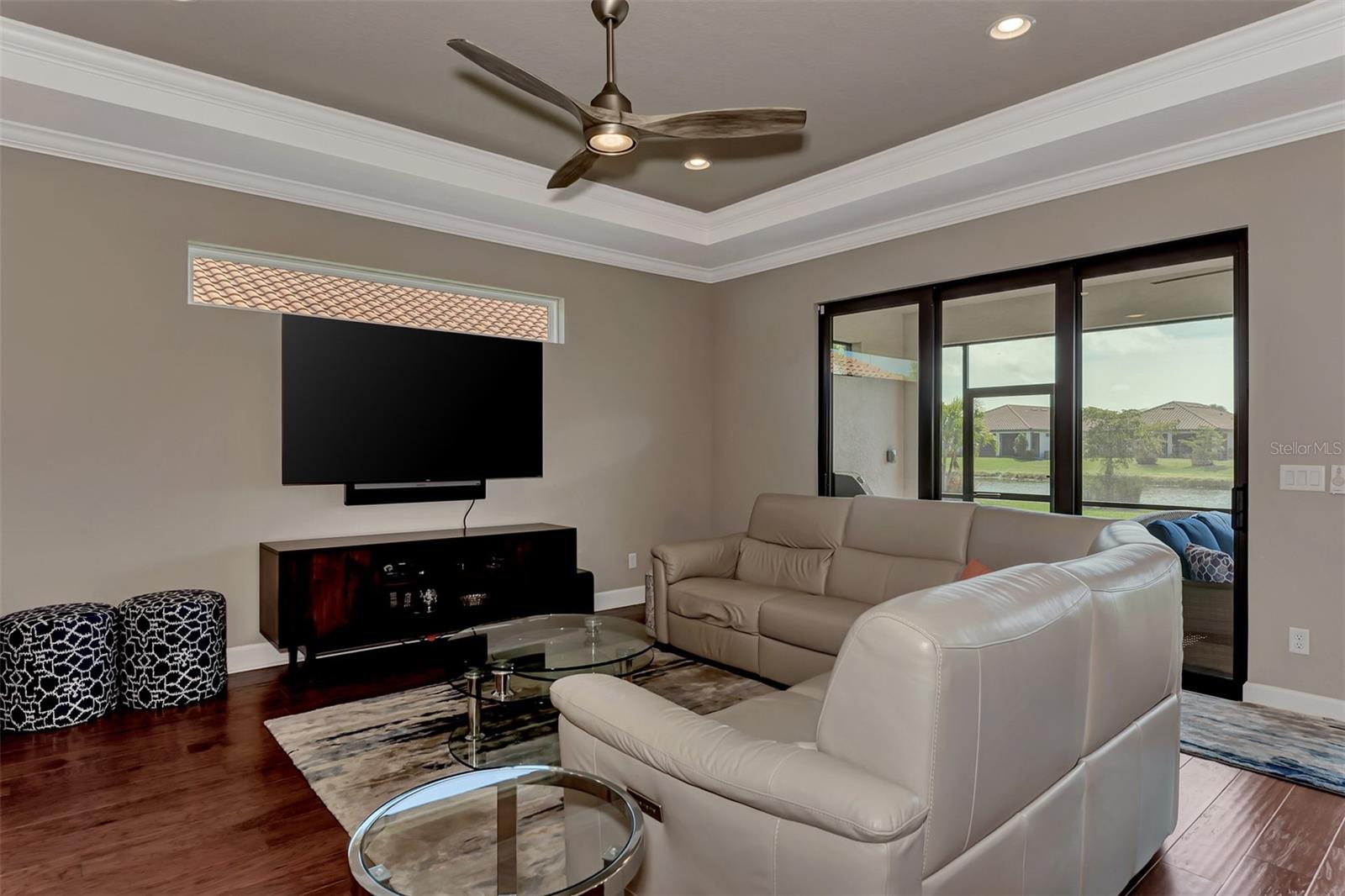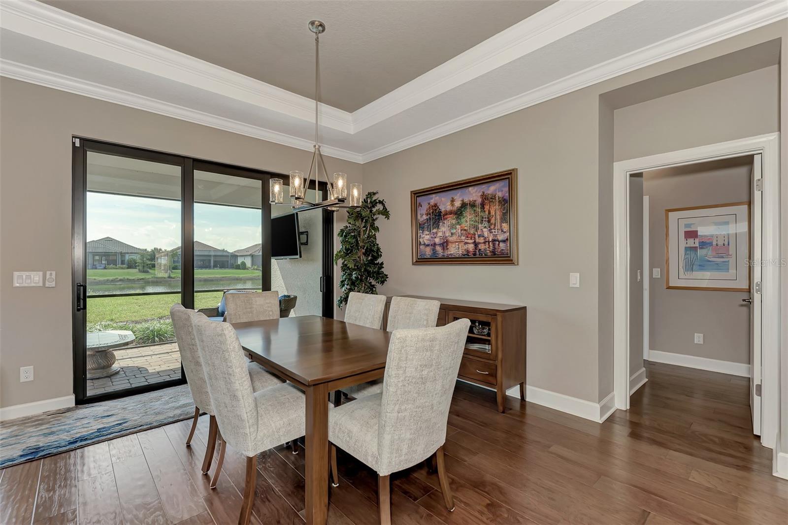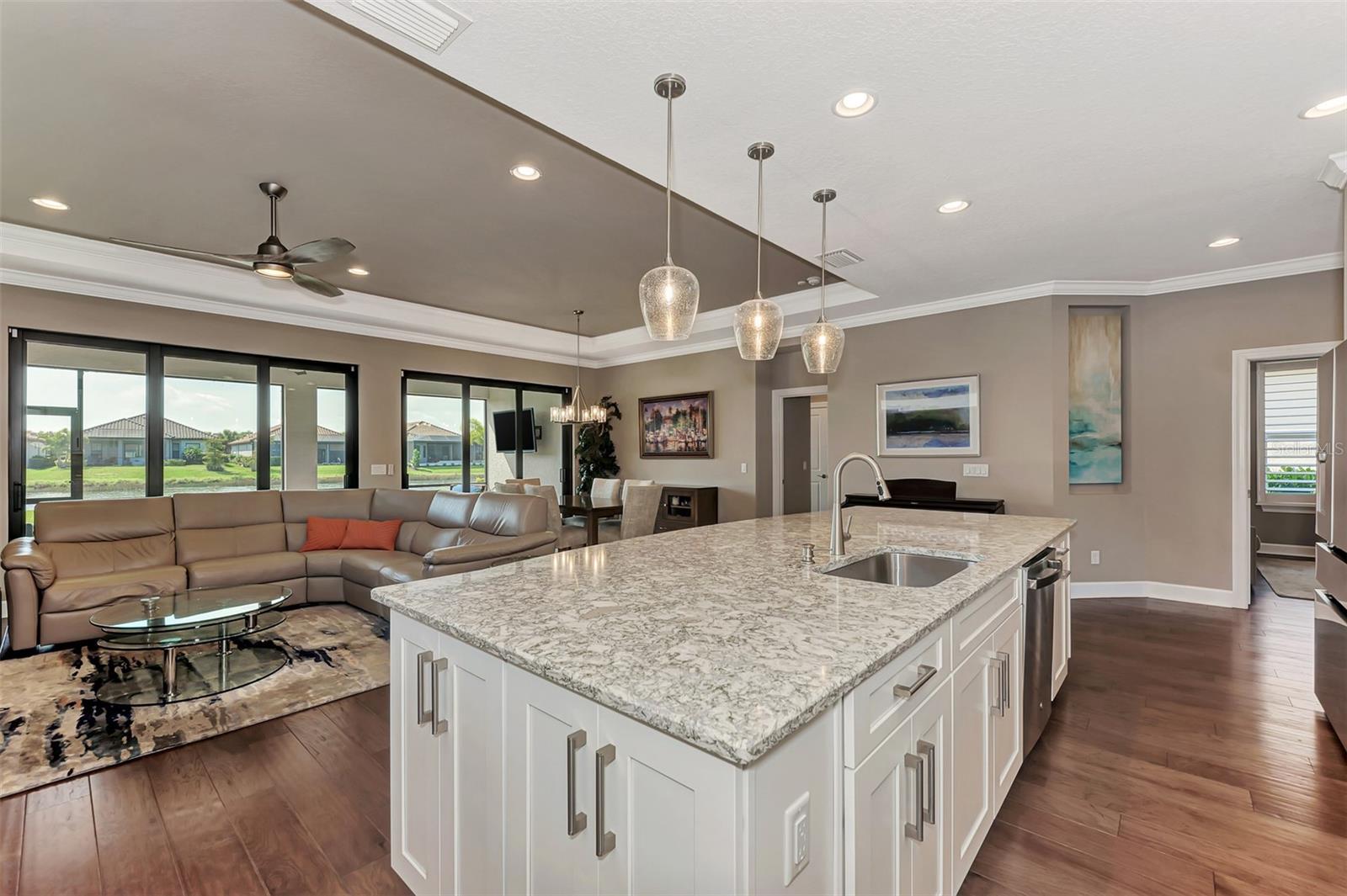 Esplanade on Palmer Ranch, a gated community! This stunning lake view rarely available Piceno Model by Taylor Morrison is light and bright with a south rear facing exposure that is spacious, open and has a modern floor plan for today’s lifestyle. This home offers a full 3 car garage, 2 bedroom en-suites, an office that could easily be converted to a 3rd bedroom, a large living area that is great for entertaining, the entire house has hurricane impact resistant windows and sliders, tray ceilings, highest upgraded flooring which includes tile and engineered hardwood flooring, an oversized backyard to fit your custom designed pool, outdoor kitchen rough in, custom designed closets throughout, custom made office wall unit with desk, garage shelving with racks and workbench, flatscreen tv’s installed in every room and on the lanai. The kitchen is perfect for a Chef! It's equipped with an oversized quartz Island with lots of storage underneath, stainless steel appliances, quartz countertops, soft close drawers, under cabinet lighting, beautiful wood cabinets with pull outs and large drawers for your kitchen needs. Gas Cooking! This Taylor Morrison signature neighborhood offers endless amenities, it feels like being on a cruise ship! The neighborhood provides lawn maintenance which makes it extra special if you want to lock and go! These amenities are a Lifestyle director, elegant amenity center with wellness services, catering kitchen, lounge areas, fitness center & activity rooms, Resort style pool & spa, fire pit, walking trails, private entrance to the Legacy Bike Trail, tennis, pickle ball, bocce, dog parks and its own neighborhood Bahama bar that includes restaurant and full bar. This neighborhood is a fun place to live. Don't miss out in the opportunity to live in a Resort Style community. Golf Carts Welcome! Bedroom Closet Type: Walk-in Closet (Primary Bedroom).