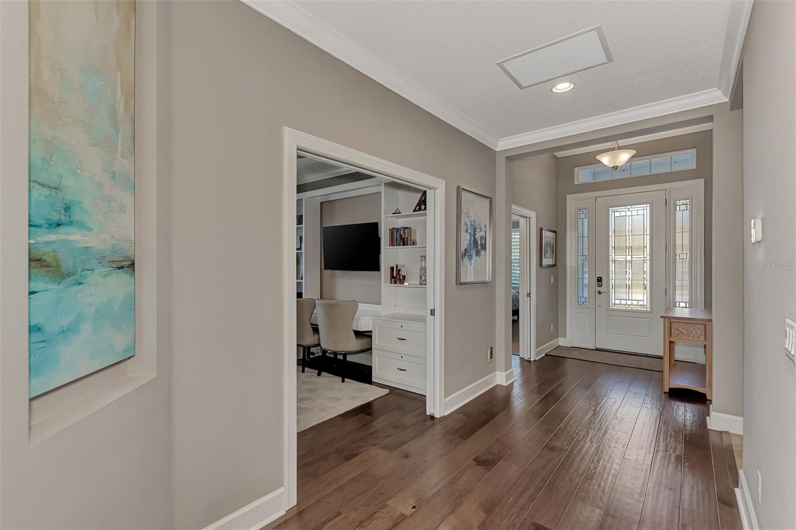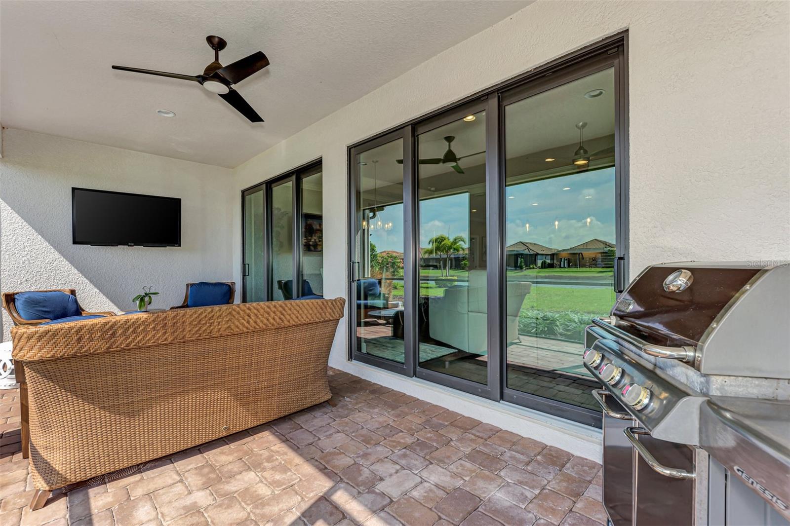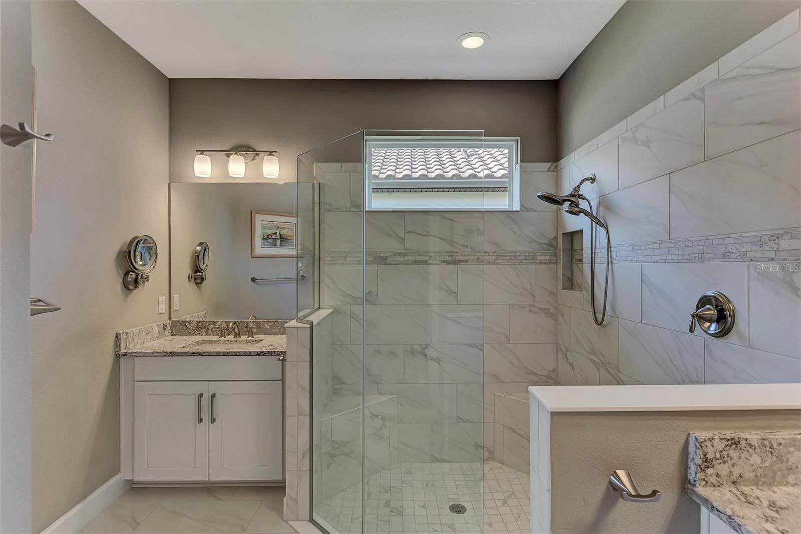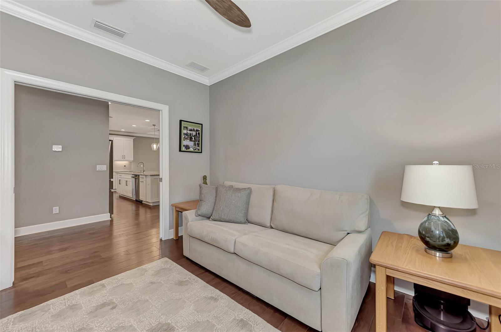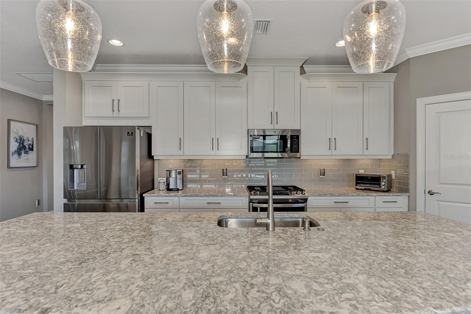 Esplanade on Palmer Ranch, a gated community! This stunning lake view rarely available Piceno Model by Taylor Morrison is light and bright with a south rear facing exposure that is spacious, open and has a modern floor plan for today’s lifestyle. This home offers a full 3 car garage, 2 bedroom en-suites, an office that could easily be converted to a 3rd bedroom, a large living area that is great for entertaining, the entire house has hurricane impact resistant windows and sliders, tray ceilings, highest upgraded flooring which includes tile and engineered hardwood flooring, an oversized backyard to fit your custom designed pool, outdoor kitchen rough in, custom designed closets throughout, custom made office wall unit with desk, garage shelving with racks and workbench, flatscreen tv’s installed in every room and on the lanai. The kitchen is perfect for a Chef! It's equipped with an oversized quartz Island with lots of storage underneath, stainless steel appliances, quartz countertops, soft close drawers, under cabinet lighting, beautiful wood cabinets with pull outs and large drawers for your kitchen needs. Gas Cooking! This Taylor Morrison signature neighborhood offers endless amenities, it feels like being on a cruise ship! The neighborhood provides lawn maintenance which makes it extra special if you want to lock and go! These amenities are a Lifestyle director, elegant amenity center with wellness services, catering kitchen, lounge areas, fitness center & activity rooms, Resort style pool & spa, fire pit, walking trails, private entrance to the Legacy Bike Trail, tennis, pickle ball, bocce, dog parks and its own neighborhood Bahama bar that includes restaurant and full bar. This neighborhood is a fun place to live. Don't miss out in the opportunity to live in a Resort Style community. Golf Carts Welcome! Bedroom Closet Type: Walk-in Closet (Primary Bedroom).