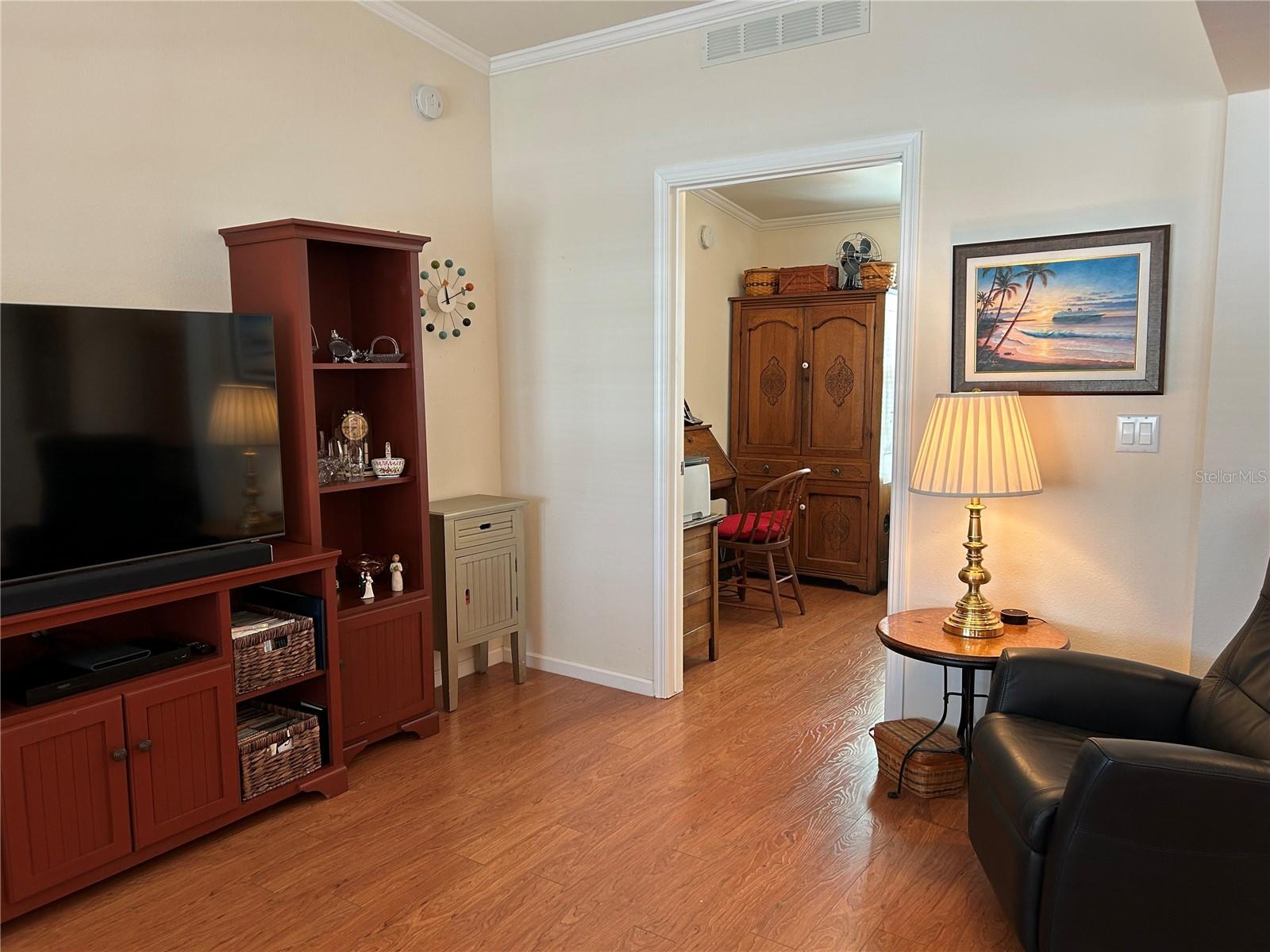 Stunning 2011 triple wide home. Great floor plan & looks like it just came out of the factory. Spacious-comfortable, so much to offer, large BR suite, high cailings, 3rd BR/Office has a murfee bed, awesome kitchen, front pavers, backs up to the creek, close to Pool & amenities Tri-Par Estates is a 55+ community in which you own your home and the land. Park fee of $1,584.00 per year is part of the property taxes paid once a year, includes Frontier internet, cable also trash. There is a large pool, hot tub, mini golf, laundry facilities, fitness room, clubhouse, and many activities to enjoy. Just minutes to the airport and many other like necessities nearby like hospitals, shopping, restaurants and more. Please do not disturb resident. Airplanes & jets do fly over Tri Par Estates. Items staying; Dining Rm items, all appliances, washer, dryer,, most kitchen items, 2nd bedroom items, laundry items, murfee bed in 3rd Br/Office. Items not staying; Living Rm furniture, 3rd BR/office items, master Bedroom bed, bench, lamp & chair, personel items, wall hangings, golf cart