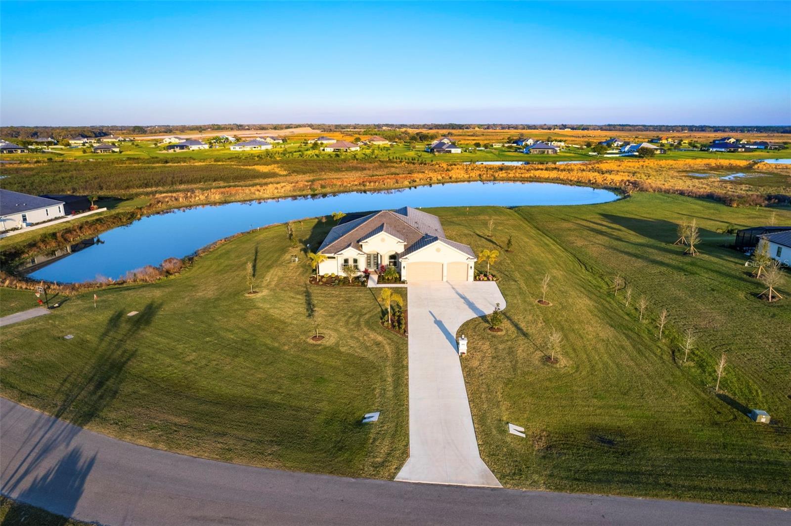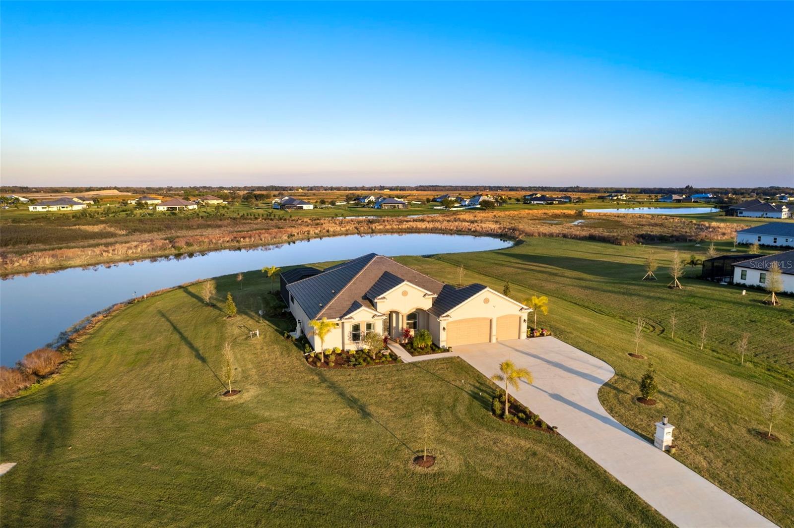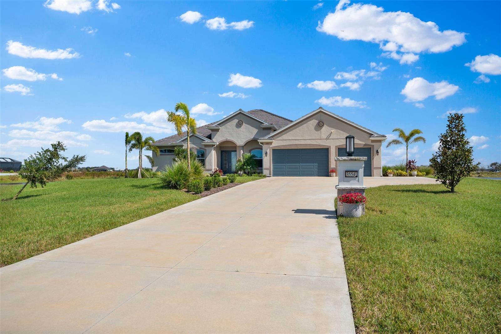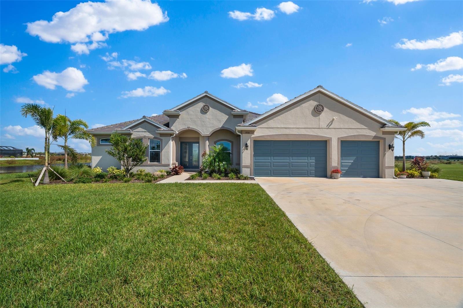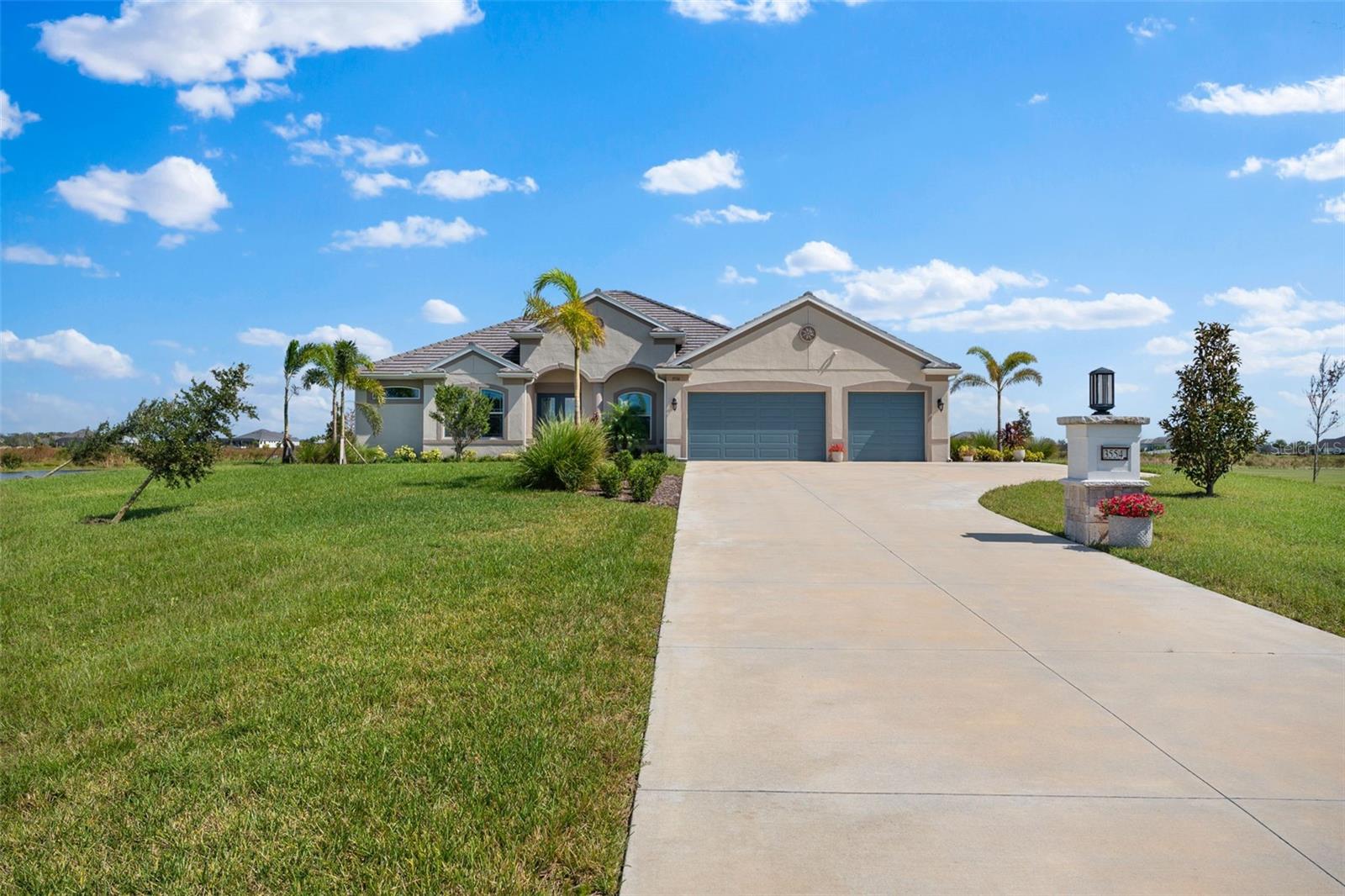 Welcome to luxurious living at 3554 Recurve Circle, nestled in the serene countryside of Hampton Lakes in Sarasota, Florida. This exquisite estate offers a perfect blend of tranquility and opulence, set on a sprawling 3-acre parcel within a neighborhood just 5 miles from the vibrant Waterside Place and Lakewood Ranch. It is priced below the latest appraisal, so you could have instant equity on beautiful property. Upon arrival, be greeted by the grandeur of this estate with its expansive driveway leading to a stately 3-car garage. As you step through the double doors into the foyer, the warmth of the beautiful luxury vinyl flooring welcomes you, guiding you into an open floor plan designed for seamless living and entertaining. To the left, an elegant dining room awaits, adorned with a tray ceiling, grass cloth wallpaper, and custom lighting, setting the stage for intimate gatherings. To the right, discover a private office retreat behind double doors, offering serene views of the lush front yard. Straight ahead, an inviting seating area and butler's pantry beckon, ideal for hosting guests, with sliding glass doors opening to a picturesque pool lanai overlooking a tranquil lake, creating an oasis of relaxation. The heart of this home lies in its oversized gourmet kitchen, boasting light cabinets, a bar-height island with ample seating, double oven, induction cooktop, quartz countertops, and a light subway tile backsplash. Adjacent, a spacious laundry room leads to the garage, featuring an oversized mudroom and storage closets, ensuring effortless organization. Flowing seamlessly from the kitchen, a second living room bathes in natural light, framed by glass sliding doors and an aquarium window, offering panoramic views of the pool and surrounding landscape. A true highlight awaits at the rear of the home—a sprawling bonus room with high ceilings, tray ceiling, and space for a large sectional and pool table. Open the sliding glass pocket doors to seamlessly extend the living space onto the expansive lanai, where every corner offers breathtaking vistas of the wraparound lake, perfect for hosting unforgettable gatherings under the stars. Retreat to the luxurious Primary Suite, boasting a tray ceiling, custom closets, and a spa-like bathroom featuring quartz countertops, large mirrors, and abundant storage. Three additional bedrooms give privacy for both homeowners and guests, ensuring comfort and serenity for all. Experience the epitome of luxury living at 3554 Recurve Circle—a sanctuary where every detail is crafted for relaxation, entertainment, and timeless elegance.