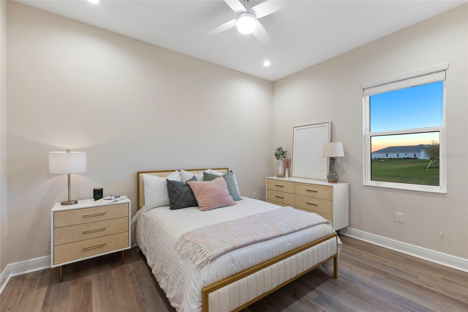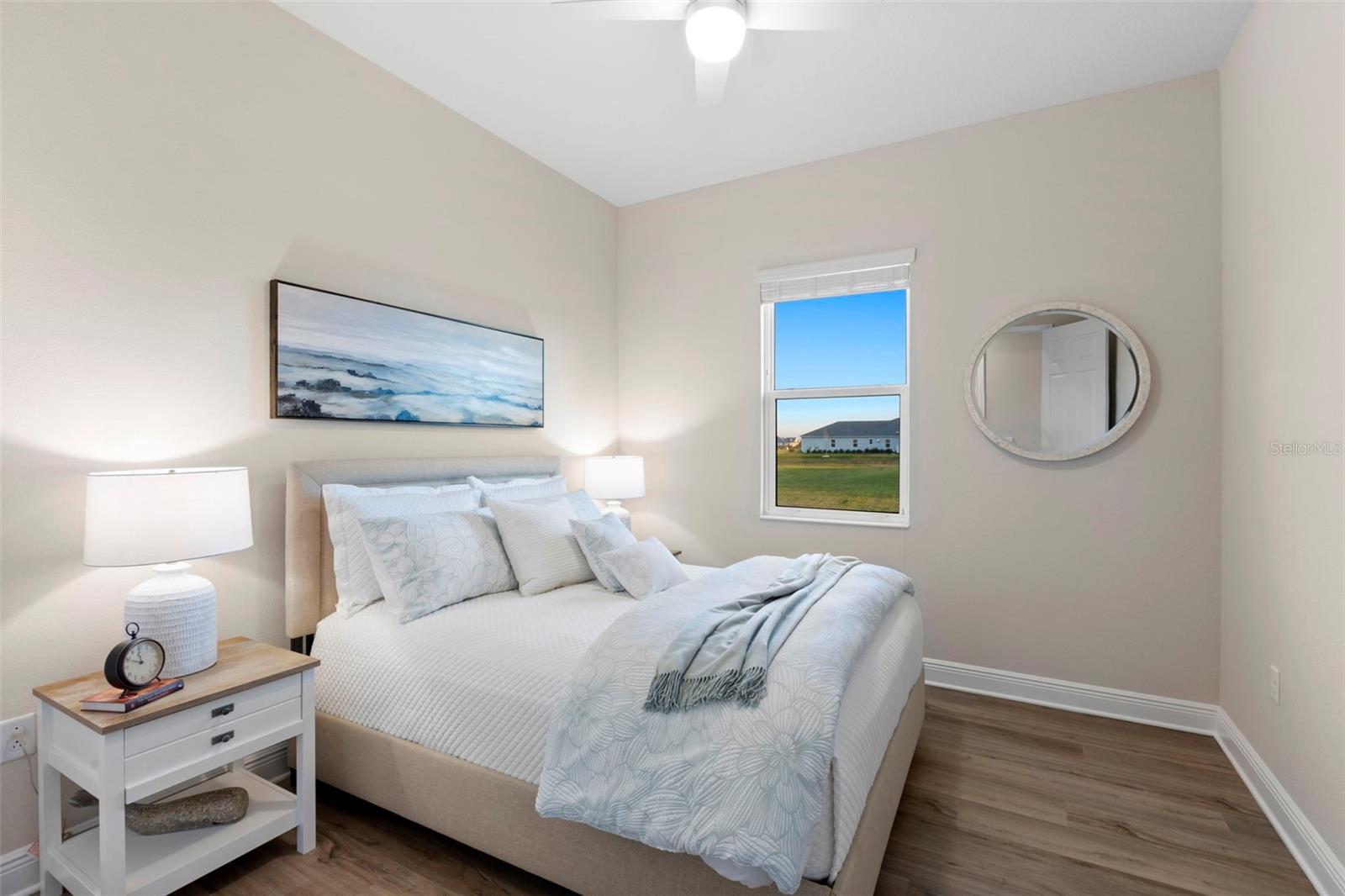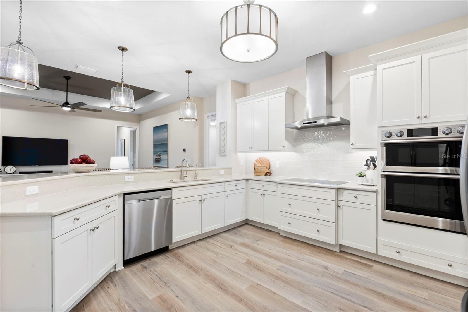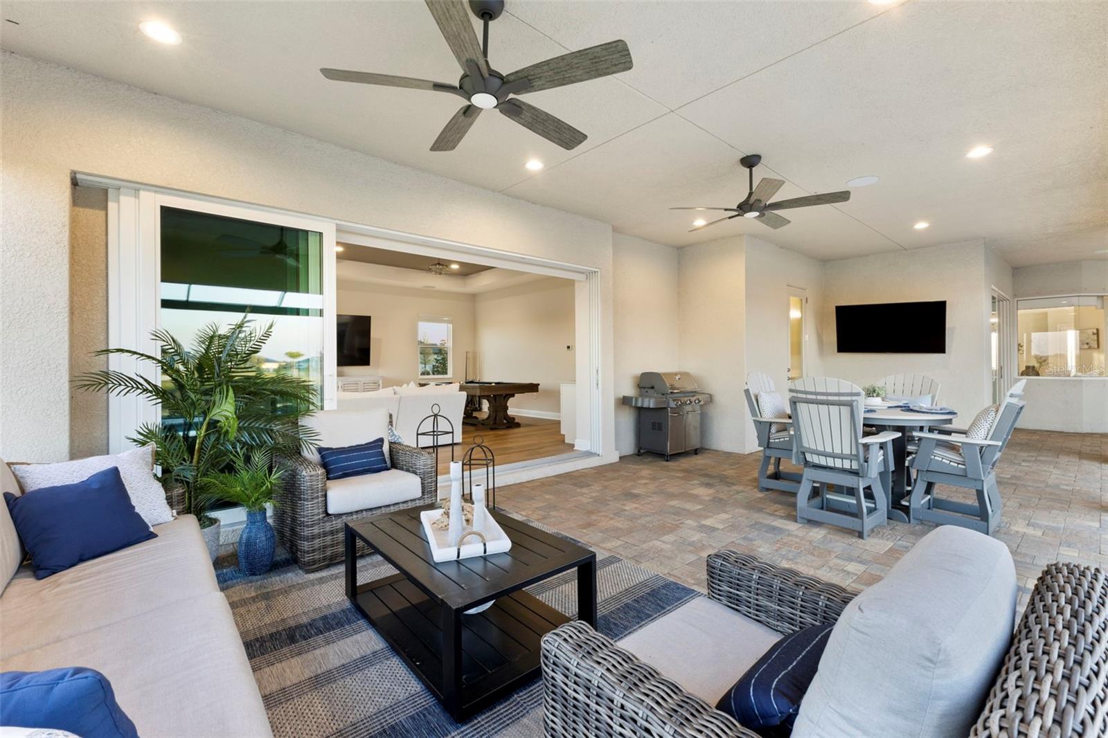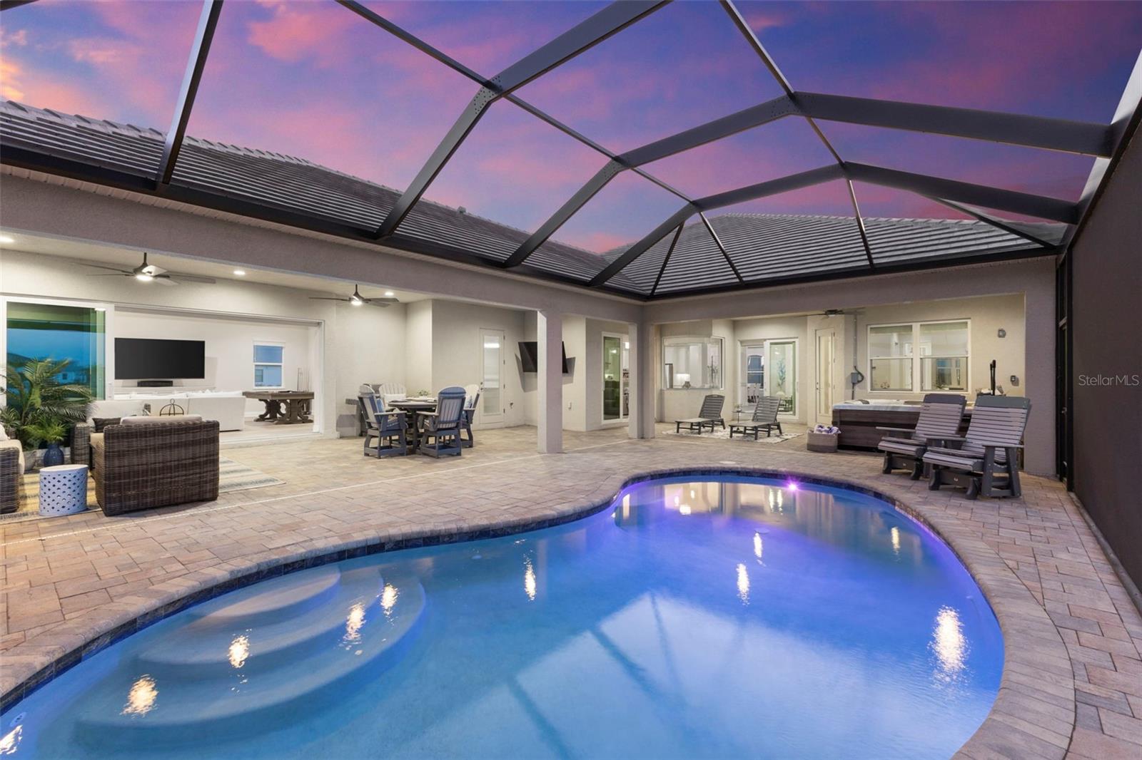 Welcome to luxurious living at 3554 Recurve Circle, nestled in the serene countryside of Hampton Lakes in Sarasota, Florida. This exquisite estate offers a perfect blend of tranquility and opulence, set on a sprawling 3-acre parcel within a neighborhood just 5 miles from the vibrant Waterside Place and Lakewood Ranch. It is priced below the latest appraisal, so you could have instant equity on beautiful property. Upon arrival, be greeted by the grandeur of this estate with its expansive driveway leading to a stately 3-car garage. As you step through the double doors into the foyer, the warmth of the beautiful luxury vinyl flooring welcomes you, guiding you into an open floor plan designed for seamless living and entertaining. To the left, an elegant dining room awaits, adorned with a tray ceiling, grass cloth wallpaper, and custom lighting, setting the stage for intimate gatherings. To the right, discover a private office retreat behind double doors, offering serene views of the lush front yard. Straight ahead, an inviting seating area and butler's pantry beckon, ideal for hosting guests, with sliding glass doors opening to a picturesque pool lanai overlooking a tranquil lake, creating an oasis of relaxation. The heart of this home lies in its oversized gourmet kitchen, boasting light cabinets, a bar-height island with ample seating, double oven, induction cooktop, quartz countertops, and a light subway tile backsplash. Adjacent, a spacious laundry room leads to the garage, featuring an oversized mudroom and storage closets, ensuring effortless organization. Flowing seamlessly from the kitchen, a second living room bathes in natural light, framed by glass sliding doors and an aquarium window, offering panoramic views of the pool and surrounding landscape. A true highlight awaits at the rear of the home—a sprawling bonus room with high ceilings, tray ceiling, and space for a large sectional and pool table. Open the sliding glass pocket doors to seamlessly extend the living space onto the expansive lanai, where every corner offers breathtaking vistas of the wraparound lake, perfect for hosting unforgettable gatherings under the stars. Retreat to the luxurious Primary Suite, boasting a tray ceiling, custom closets, and a spa-like bathroom featuring quartz countertops, large mirrors, and abundant storage. Three additional bedrooms give privacy for both homeowners and guests, ensuring comfort and serenity for all. Experience the epitome of luxury living at 3554 Recurve Circle—a sanctuary where every detail is crafted for relaxation, entertainment, and timeless elegance.