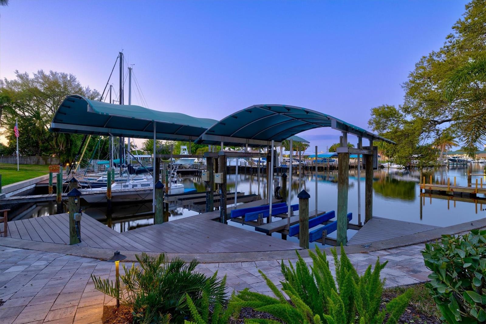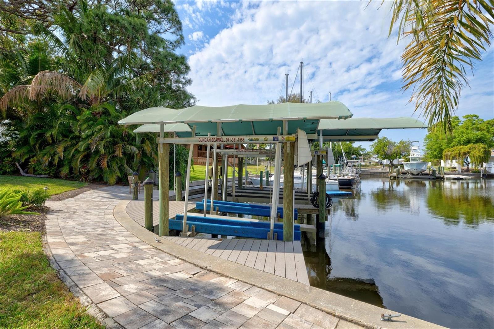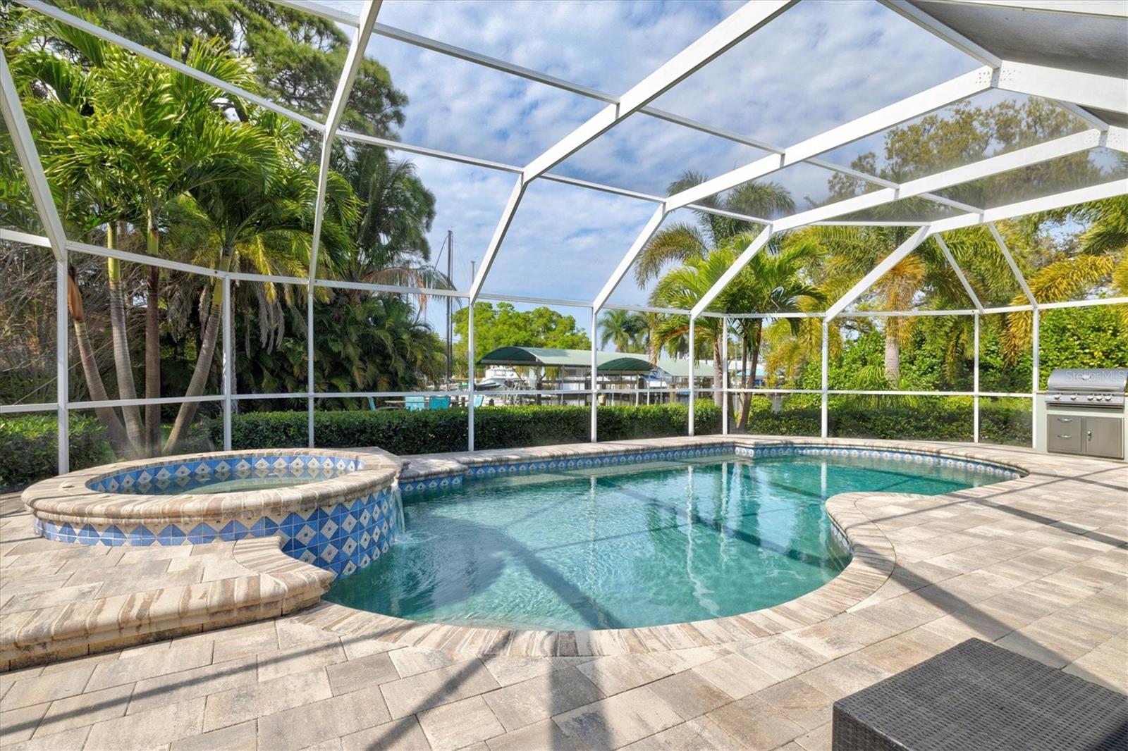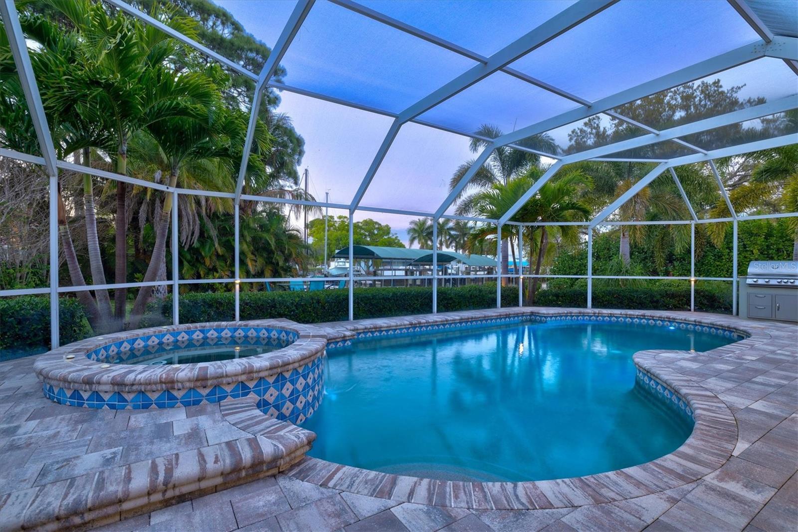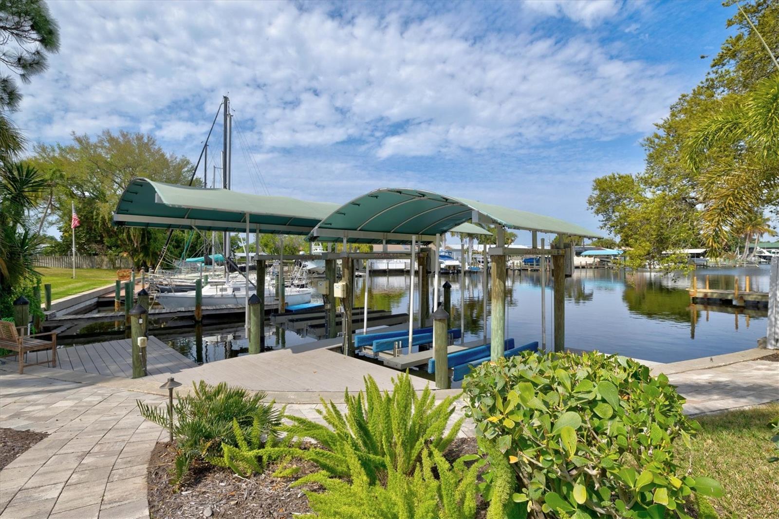 *MOTIVATED SELLER* The ultimate boater’s paradise! Enjoy protected sailboat water on this wide canal and 5 minutes to Sarasota Bay with no bridges and direct access to the Gulf of Mexico. This “West of Trail” home was meticulously updated in 2018/2019. Energy efficient with solar power, impact rated windows and well water irrigation for the lawn. The professionally landscaped yard with lighting along with the spacious circular paver driveway, create great curb appeal. The pavers continue to the large screened front porch that welcomes you into the home. Step inside to impressive details throughout, including travertine flooring, crown molding, plantation shutters/remote-control shades, built-in features, and the convenience of central vac. The chef’s kitchen features high end stainless appliances including a dedicated pebble ice maker, striking leathered granite countertops, and rich wood cabinetry with pull outs. Adjacent to the kitchen is a large laundry/butler’s pantry, ensuring ample storage and convenience. The primary bedroom has French doors that open to the pool, his & hers walk-in closets and en-suite bath with additional storage and WC. The living room has double sliders that lead you to the screen enclosed pool area. Outdoors, escape to a true haven for relaxation and recreation. The patio beckons with a fully equipped outdoor kitchen, large paver deck and heated salt-water pool/spa with pebble-tec surface. There is a storage shed with electric and a screened garden to cultivate your own farm-to-table delights. Vinyl fencing provides privacy along with paver paths that wind through the spacious backyard. The composite dock has water, power port and offers two covered lifts 8,000lb and 13,000lb for the boating enthusiast. Drop your kayaks in the water and paddle amongst the visiting manatees that love this protected cove. Stroll to the nearby Tarpon Bay Grill & Tiki Bar for dining and entertainment. This home is nestled in a coveted West of Trail location and boasts a Sarasota address within Manatee County. Membership in the voluntary neighborhood association is $30 annually and allows members access to the charming historic Sara Bay Country Club for culinary privileges. Ideal central location, minutes to downtown Sarasota's vibrant cultural scene, Ringling Museum, shopping, restaurants, and a choice of gulf beaches. IMG Academy, USF, New College and Ringling College of Art are all nearby as well as the convenience of SRQ airport, only 5 minutes away. Waterfront living at its best! The property is high and dry, with NO water anywhere close to the property after the recent storm.