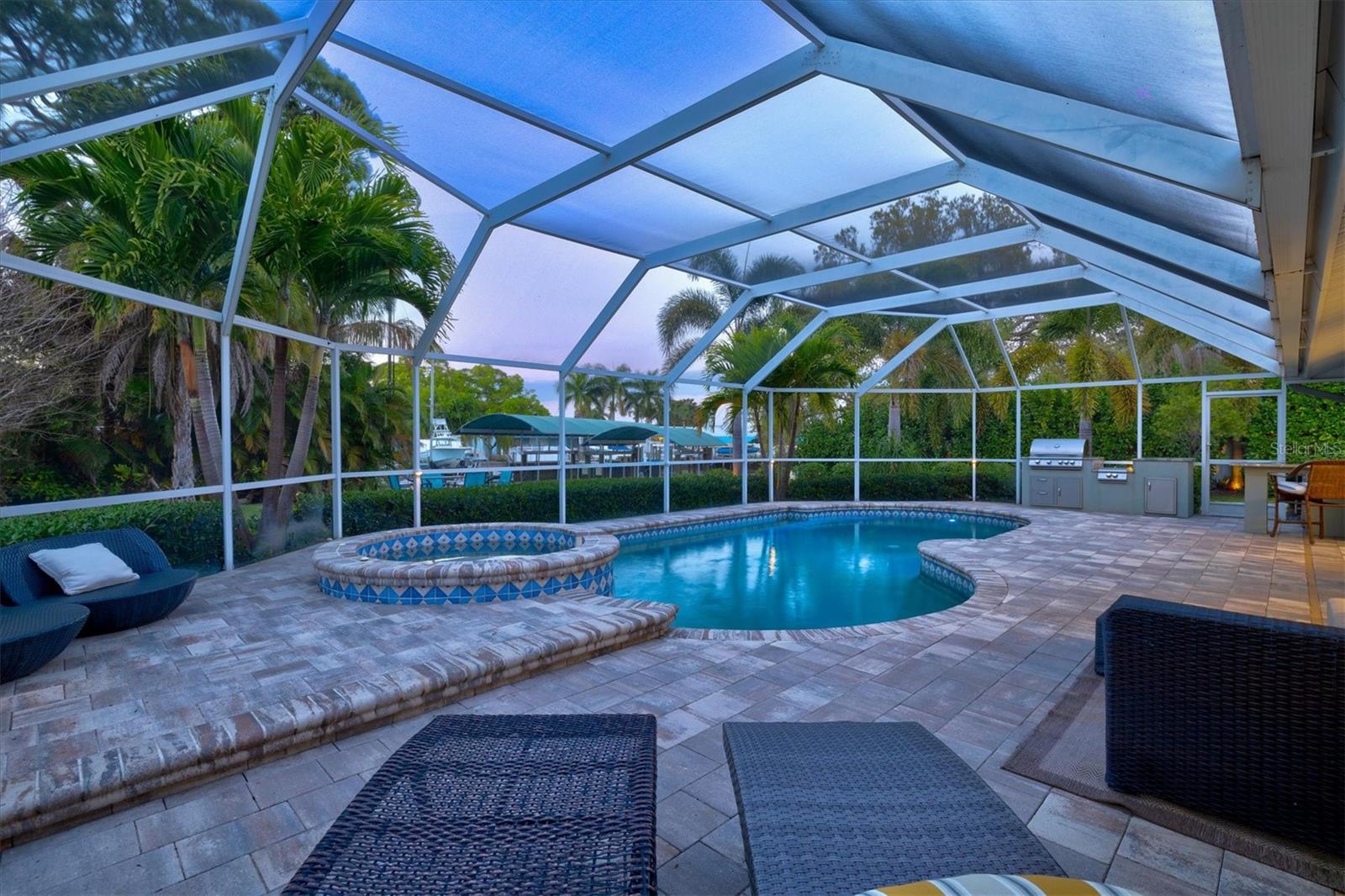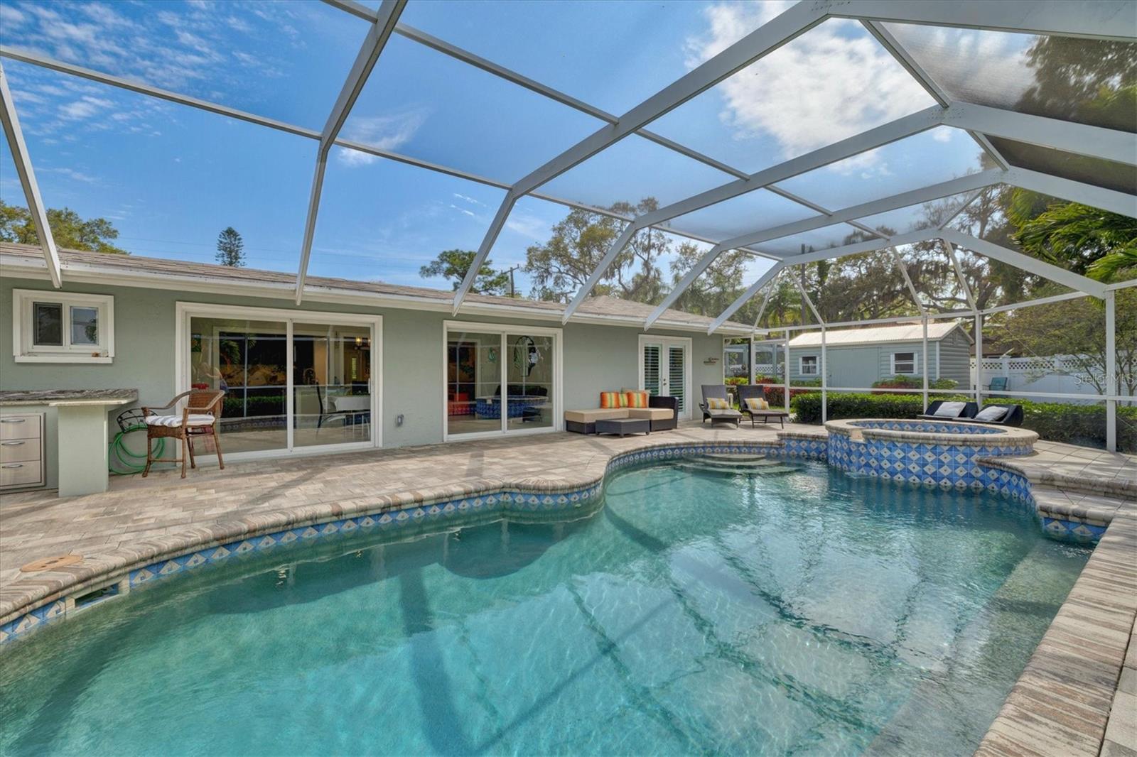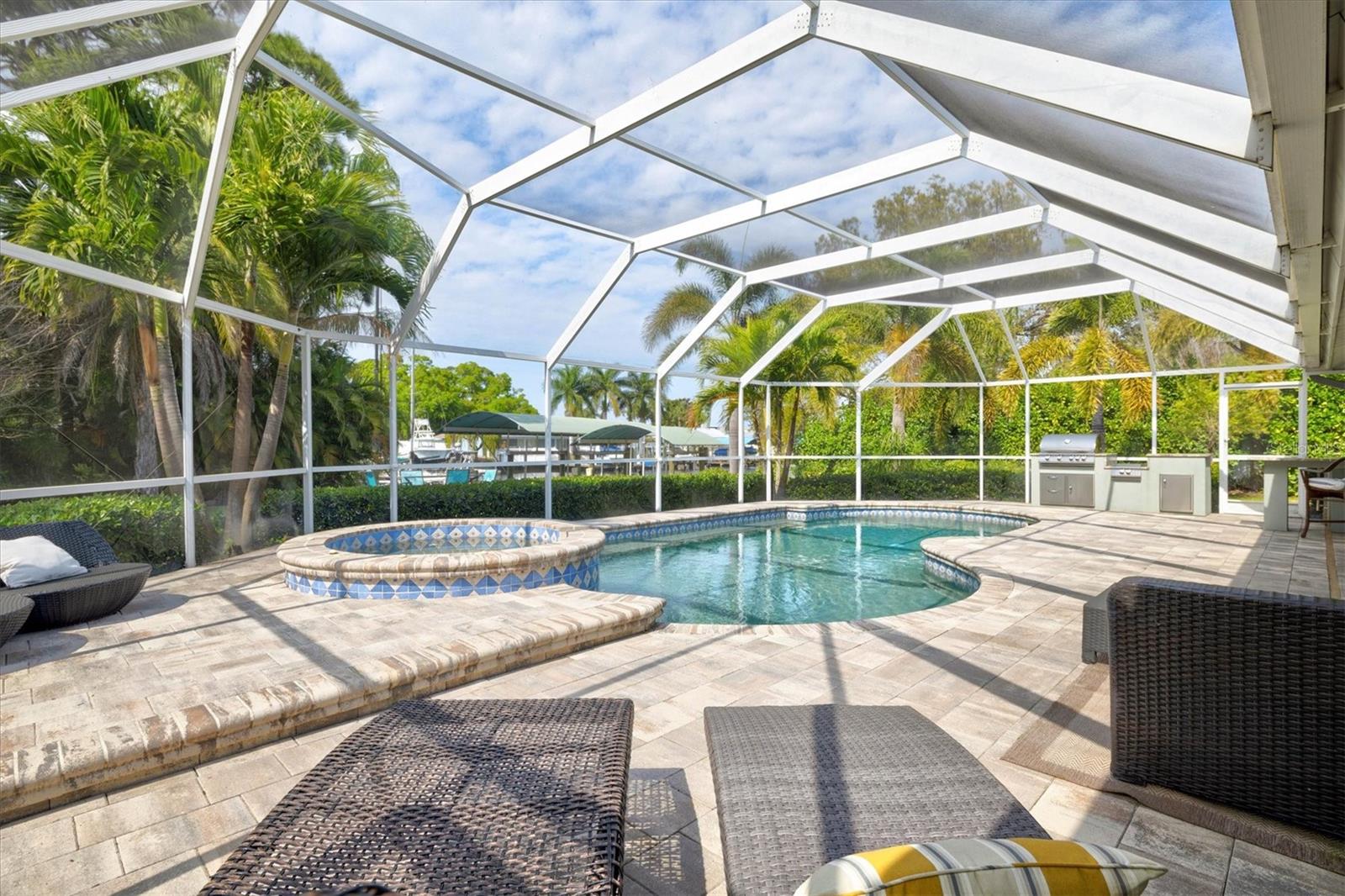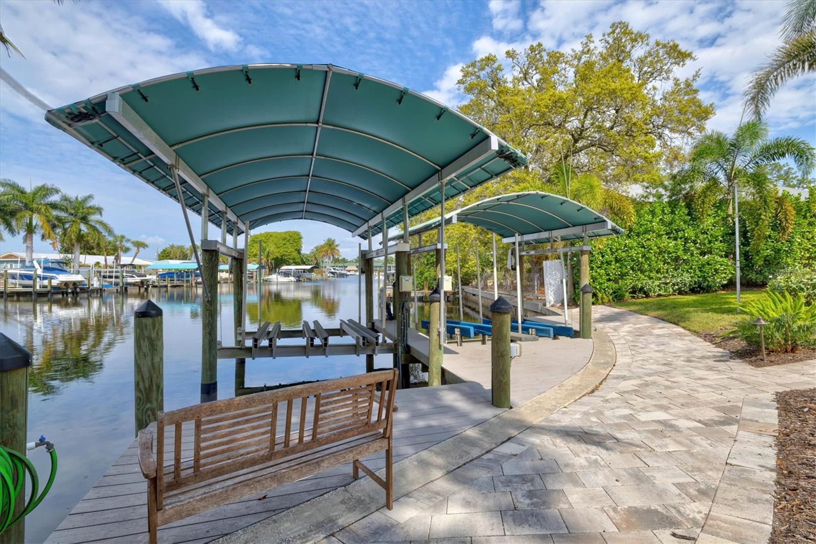 *MOTIVATED SELLER* The ultimate boater’s paradise! Enjoy protected sailboat water on this wide canal and 5 minutes to Sarasota Bay with no bridges and direct access to the Gulf of Mexico. This “West of Trail” home was meticulously updated in 2018/2019. Energy efficient with solar power, impact rated windows and well water irrigation for the lawn. The professionally landscaped yard with lighting along with the spacious circular paver driveway, create great curb appeal. The pavers continue to the large screened front porch that welcomes you into the home. Step inside to impressive details throughout, including travertine flooring, crown molding, plantation shutters/remote-control shades, built-in features, and the convenience of central vac. The chef’s kitchen features high end stainless appliances including a dedicated pebble ice maker, striking leathered granite countertops, and rich wood cabinetry with pull outs. Adjacent to the kitchen is a large laundry/butler’s pantry, ensuring ample storage and convenience. The primary bedroom has French doors that open to the pool, his & hers walk-in closets and en-suite bath with additional storage and WC. The living room has double sliders that lead you to the screen enclosed pool area. Outdoors, escape to a true haven for relaxation and recreation. The patio beckons with a fully equipped outdoor kitchen, large paver deck and heated salt-water pool/spa with pebble-tec surface. There is a storage shed with electric and a screened garden to cultivate your own farm-to-table delights. Vinyl fencing provides privacy along with paver paths that wind through the spacious backyard. The composite dock has water, power port and offers two covered lifts 8,000lb and 13,000lb for the boating enthusiast. Drop your kayaks in the water and paddle amongst the visiting manatees that love this protected cove. Stroll to the nearby Tarpon Bay Grill & Tiki Bar for dining and entertainment. This home is nestled in a coveted West of Trail location and boasts a Sarasota address within Manatee County. Membership in the voluntary neighborhood association is $30 annually and allows members access to the charming historic Sara Bay Country Club for culinary privileges. Ideal central location, minutes to downtown Sarasota's vibrant cultural scene, Ringling Museum, shopping, restaurants, and a choice of gulf beaches. IMG Academy, USF, New College and Ringling College of Art are all nearby as well as the convenience of SRQ airport, only 5 minutes away. Waterfront living at its best! The property is high and dry, with NO water anywhere close to the property after the recent storm.