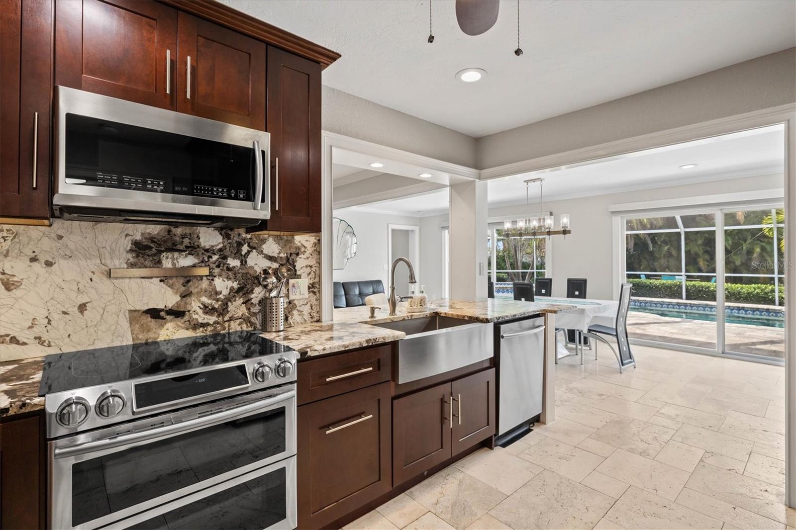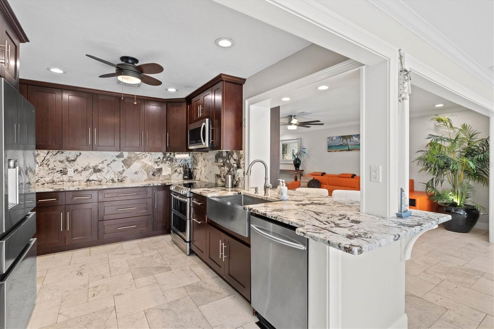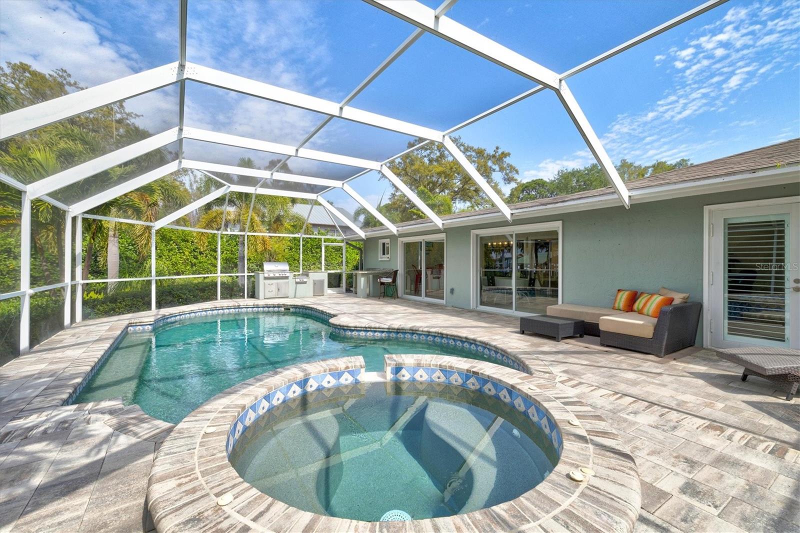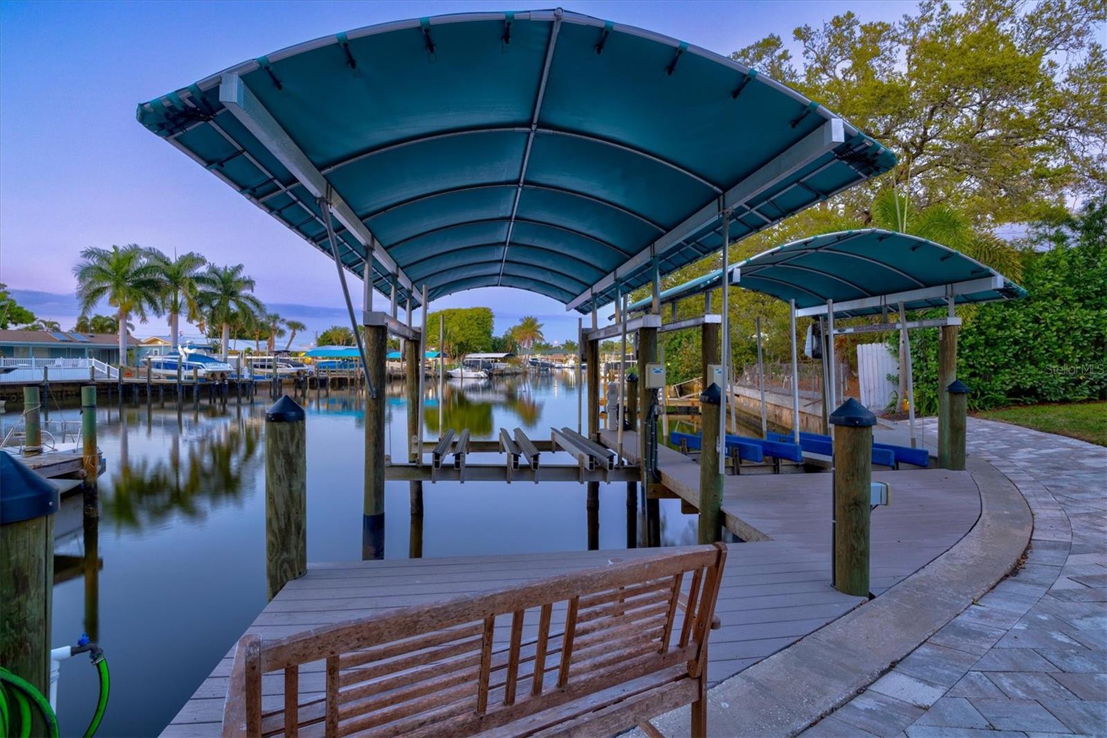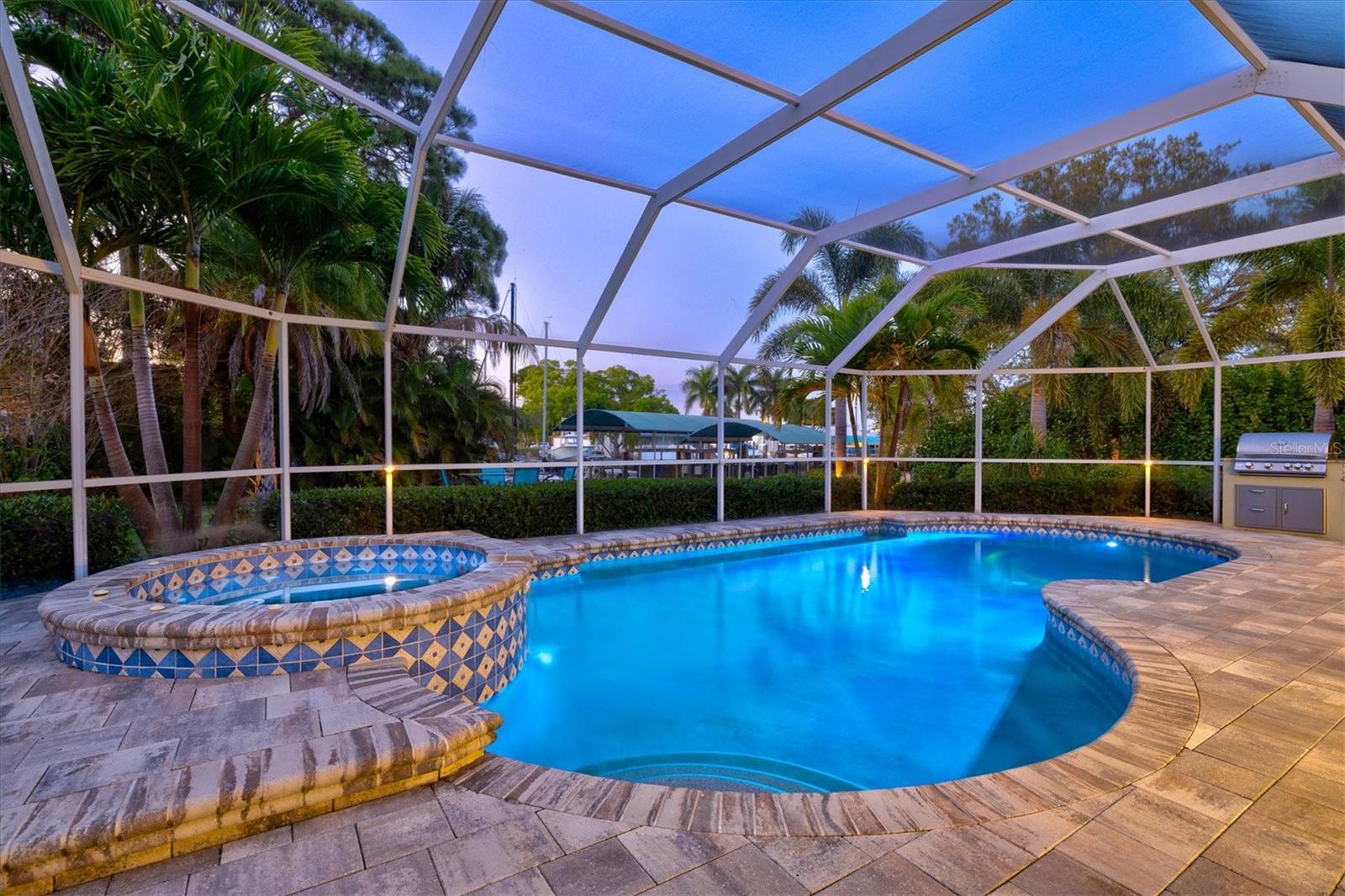 *MOTIVATED SELLER* The ultimate boater’s paradise! Enjoy protected sailboat water on this wide canal and 5 minutes to Sarasota Bay with no bridges and direct access to the Gulf of Mexico. This “West of Trail” home was meticulously updated in 2018/2019. Energy efficient with solar power, impact rated windows and well water irrigation for the lawn. The professionally landscaped yard with lighting along with the spacious circular paver driveway, create great curb appeal. The pavers continue to the large screened front porch that welcomes you into the home. Step inside to impressive details throughout, including travertine flooring, crown molding, plantation shutters/remote-control shades, built-in features, and the convenience of central vac. The chef’s kitchen features high end stainless appliances including a dedicated pebble ice maker, striking leathered granite countertops, and rich wood cabinetry with pull outs. Adjacent to the kitchen is a large laundry/butler’s pantry, ensuring ample storage and convenience. The primary bedroom has French doors that open to the pool, his & hers walk-in closets and en-suite bath with additional storage and WC. The living room has double sliders that lead you to the screen enclosed pool area. Outdoors, escape to a true haven for relaxation and recreation. The patio beckons with a fully equipped outdoor kitchen, large paver deck and heated salt-water pool/spa with pebble-tec surface. There is a storage shed with electric and a screened garden to cultivate your own farm-to-table delights. Vinyl fencing provides privacy along with paver paths that wind through the spacious backyard. The composite dock has water, power port and offers two covered lifts 8,000lb and 13,000lb for the boating enthusiast. Drop your kayaks in the water and paddle amongst the visiting manatees that love this protected cove. Stroll to the nearby Tarpon Bay Grill & Tiki Bar for dining and entertainment. This home is nestled in a coveted West of Trail location and boasts a Sarasota address within Manatee County. Membership in the voluntary neighborhood association is $30 annually and allows members access to the charming historic Sara Bay Country Club for culinary privileges. Ideal central location, minutes to downtown Sarasota's vibrant cultural scene, Ringling Museum, shopping, restaurants, and a choice of gulf beaches. IMG Academy, USF, New College and Ringling College of Art are all nearby as well as the convenience of SRQ airport, only 5 minutes away. Waterfront living at its best! The property is high and dry, with NO water anywhere close to the property after the recent storm.