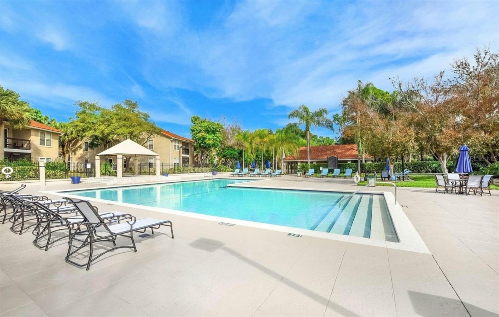 You can take advantage of owning this tastefully renovated 2 bedroom, 2 bathroom second-floor end unit located on Palmer Ranch in South Sarasota. The precious open-concept living room and dining room combo with the vaulted ceiling and a split floor plan make this home very bright and enjoyable. New hurricane impact windows and exterior renovation completed in 2023. New AC Unit, bathrooms, kitchen, and flooring in 2021. Water Heater 2019. Washer and Dryer 2020. For your convenience, the balcony has a storage unit and in-unit laundry. Vintage Grand Community offers 2 large pools, a hot tub, tennis courts, a basketball, a playground, a fitness center, outdoor grills with a picnic area, and a car wash station as well.
