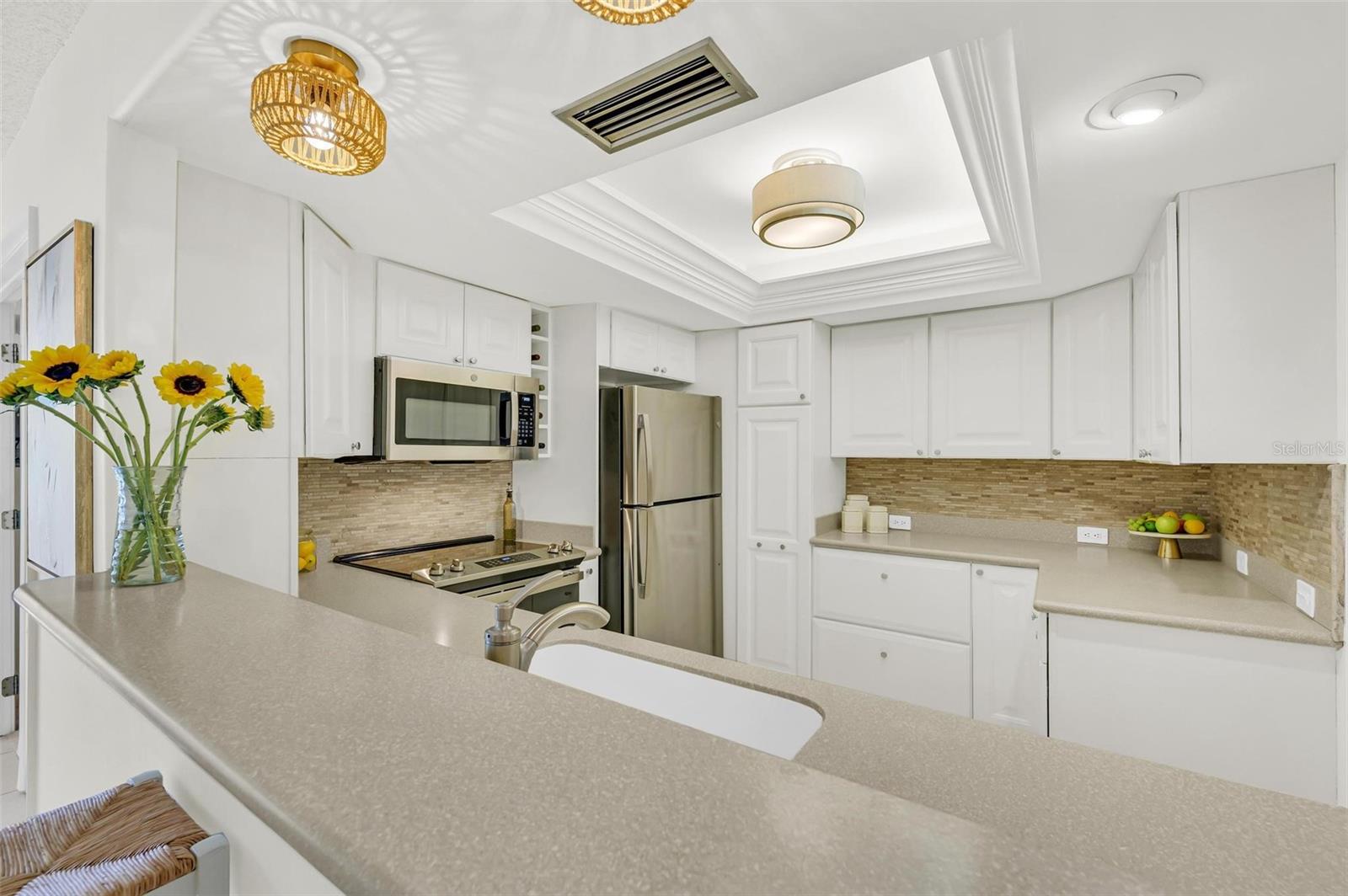 Welcome to your new piece of paradise in Peppertree Bay at Siesta Key! This charming 2-bedroom, 2-bathroom condo is located on the coveted Gulf side of Peppertree Bay with a short walk to the white sands of Siesta Key beach. Step inside to find a meticulously furnished getaway with tile throughout the main areas, providing both durability and elegance. The glassed-in 8x18 lanai extends your living space providing the ultimate perch for coffee, cocktails, and al fresco dining. The condo also has a washer and dryer. Large storage closet off the lanai. Both bedrooms are comfortably carpeted, with the master bedroom featuring a spacious walk-in closet, providing ample storage. Peppertree Bay boasts a plethora of amenities to enhance your lifestyle, including two heated swimming pools, clubhouse, BBQ grills, fishing pier on the bay, fitness center, sauna, tennis and pickleball courts, and top-notch security for your peace of mind. Rentals are one-month minimum with 4 individual leases per year. Peppertree is near shopping, dining, entertainment, golfing, boating, and the arts and culture of Downtown Sarasota. Whether you're seeking a permanent residence or a vacation retreat, this condo offers the perfect blend of comfort, convenience, and enjoyment.