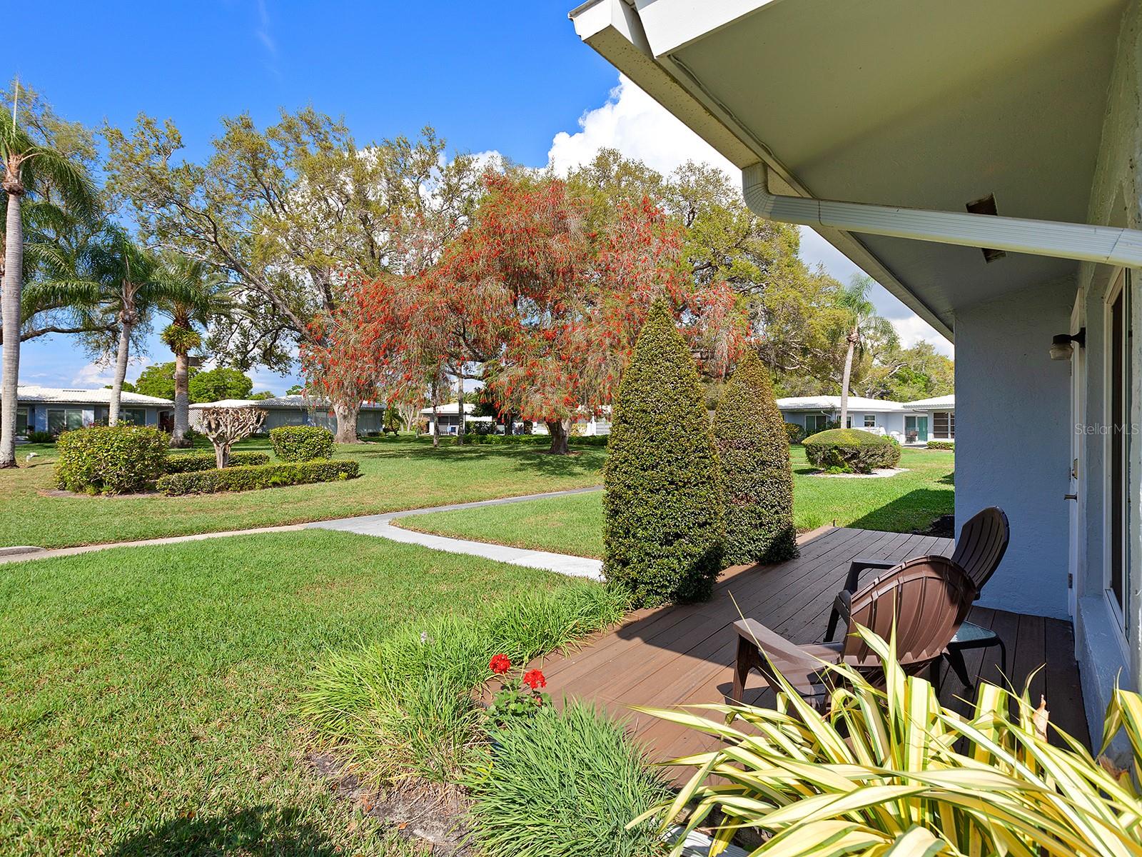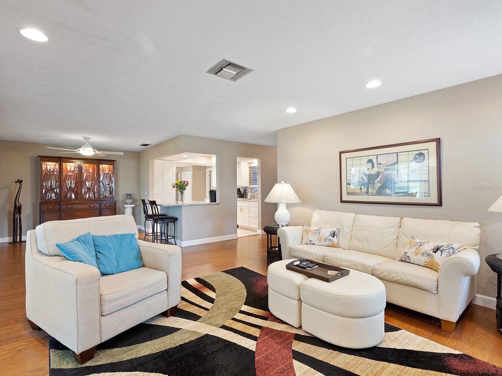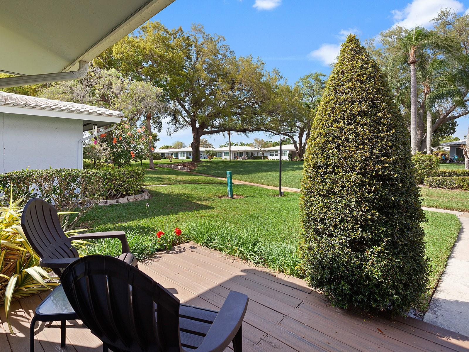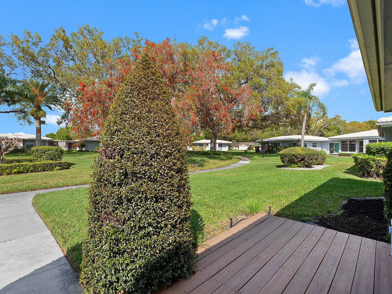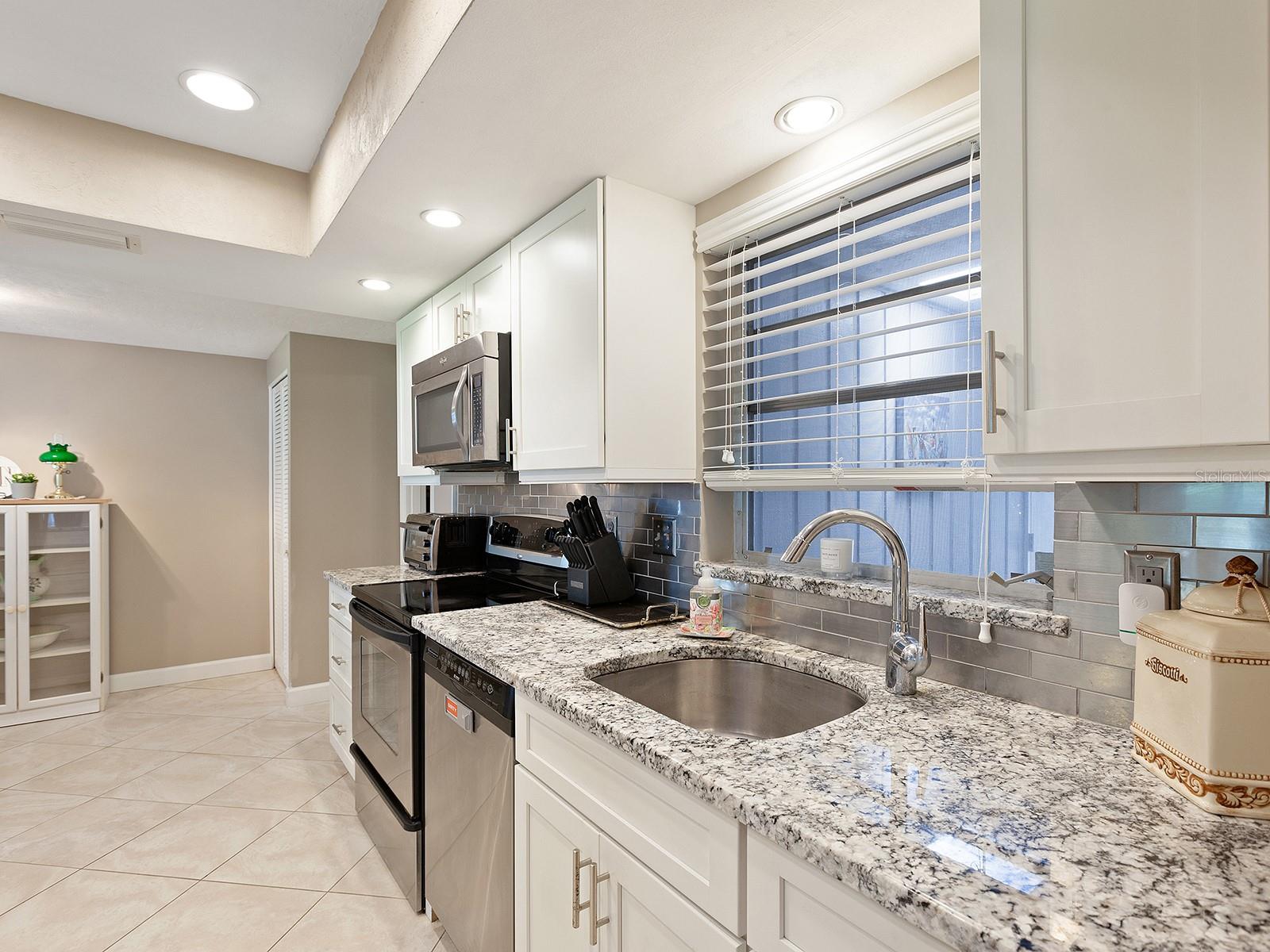 Prepare to be enchanted as you step into this move-in ready villa offering two spacious bedrooms, two full baths, a den/office area, and the icing on the cake- a generously sized great/bonus room overlooking lovely landscaped grounds and trees. Upon entering, be greeted by an abundance of natural light that illuminates the living space adorned with modern finishes and thoughtful touches throughout, seamlessly blending style and functionality. The open-plan layout effortlessly connects the living area, dining space, and kitchen, creating an ideal setting for both relaxation and entertainment. The nicely equipped kitchen features single-shaker cabinetry, granite countertops, and stainless steel appliances, making meal preparation a pleasure. Enjoy your morning coffee while birdwatching from the cozy breakfast nook or an evening cocktail from your private patio, where you can unwind amidst tranquil surroundings. Peace of mind ensues with hurricane-rated windows in many of the main rooms. Convenience is key with an inside laundry and attached garage, providing secure parking and additional storage solutions. Outside, the community offers a serene oasis to explore at your leisure, whether you're taking a refreshing dip in the sparkling pool or immersing yourself in the beauty of nature with a leisurely stroll along the walking path. Located in a 55+ community in a prime central location, it offers easy access to shopping, dining, entertainment, and all the amenities you desire, whether you're seeking a relaxing retreat or an active social lifestyle, this renovated villa offers a lifestyle of comfort and sophistication. Don't miss the opportunity to make it yours!