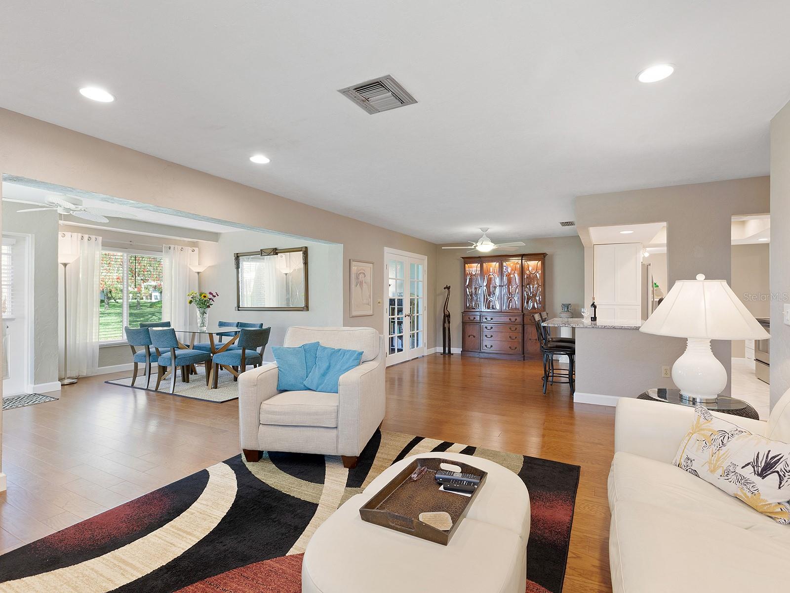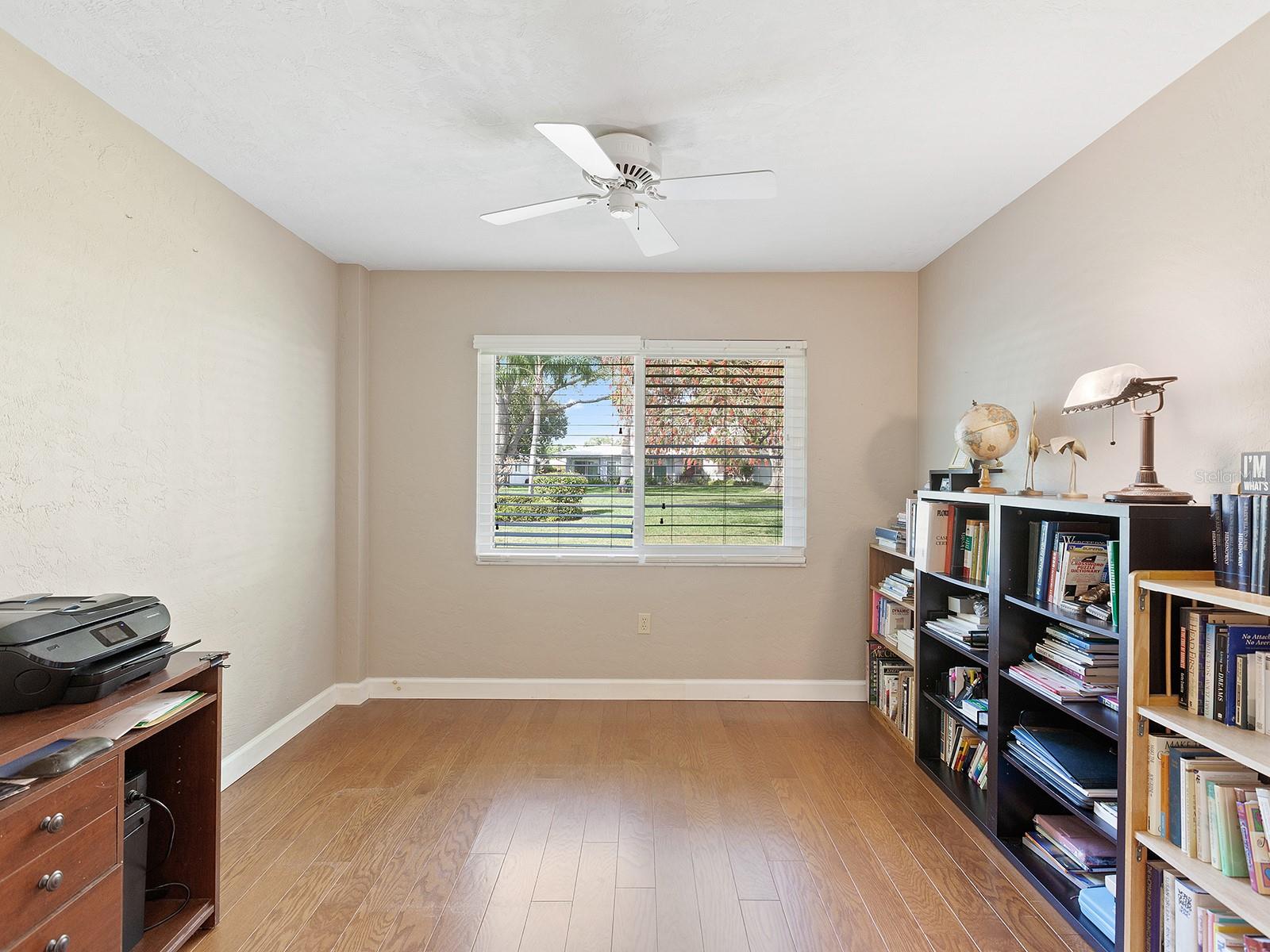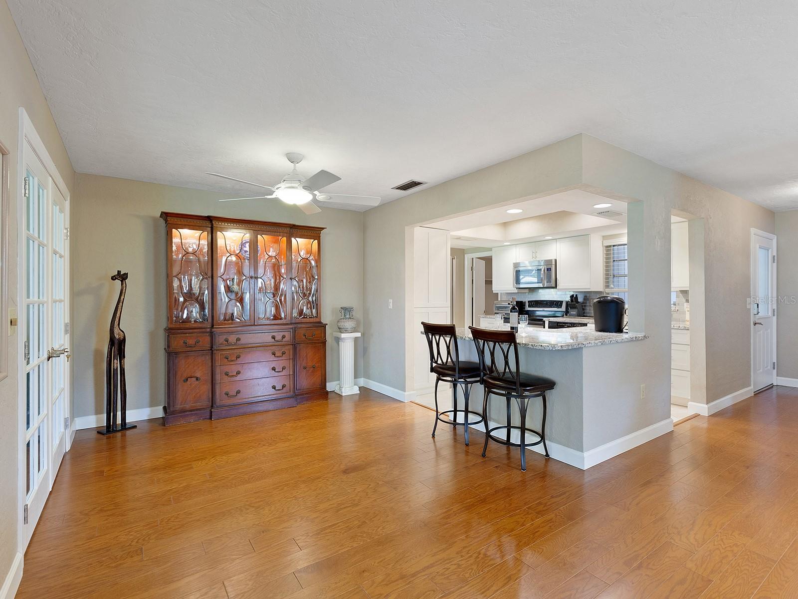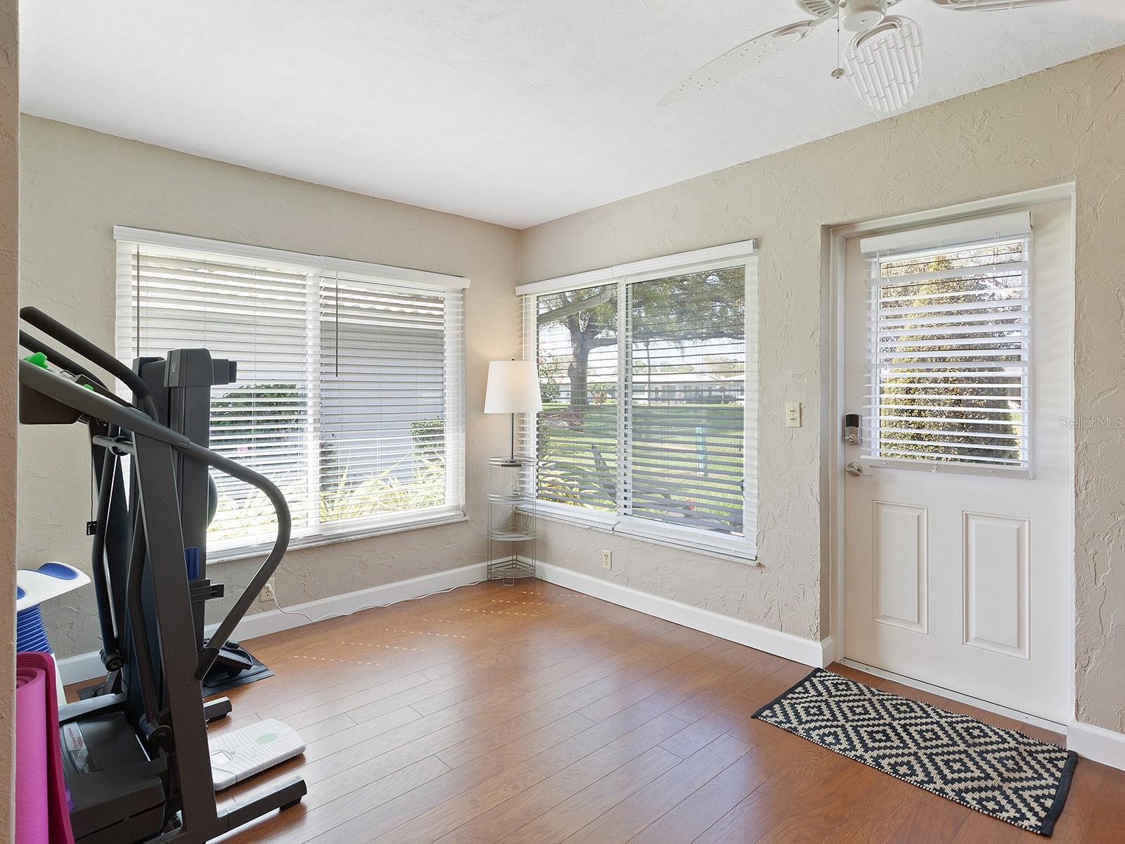 Prepare to be enchanted as you step into this move-in ready villa offering two spacious bedrooms, two full baths, a den/office area, and the icing on the cake- a generously sized great/bonus room overlooking lovely landscaped grounds and trees. Upon entering, be greeted by an abundance of natural light that illuminates the living space adorned with modern finishes and thoughtful touches throughout, seamlessly blending style and functionality. The open-plan layout effortlessly connects the living area, dining space, and kitchen, creating an ideal setting for both relaxation and entertainment. The nicely equipped kitchen features single-shaker cabinetry, granite countertops, and stainless steel appliances, making meal preparation a pleasure. Enjoy your morning coffee while birdwatching from the cozy breakfast nook or an evening cocktail from your private patio, where you can unwind amidst tranquil surroundings. Peace of mind ensues with hurricane-rated windows in many of the main rooms. Convenience is key with an inside laundry and attached garage, providing secure parking and additional storage solutions. Outside, the community offers a serene oasis to explore at your leisure, whether you're taking a refreshing dip in the sparkling pool or immersing yourself in the beauty of nature with a leisurely stroll along the walking path. Located in a 55+ community in a prime central location, it offers easy access to shopping, dining, entertainment, and all the amenities you desire, whether you're seeking a relaxing retreat or an active social lifestyle, this renovated villa offers a lifestyle of comfort and sophistication. Don't miss the opportunity to make it yours!