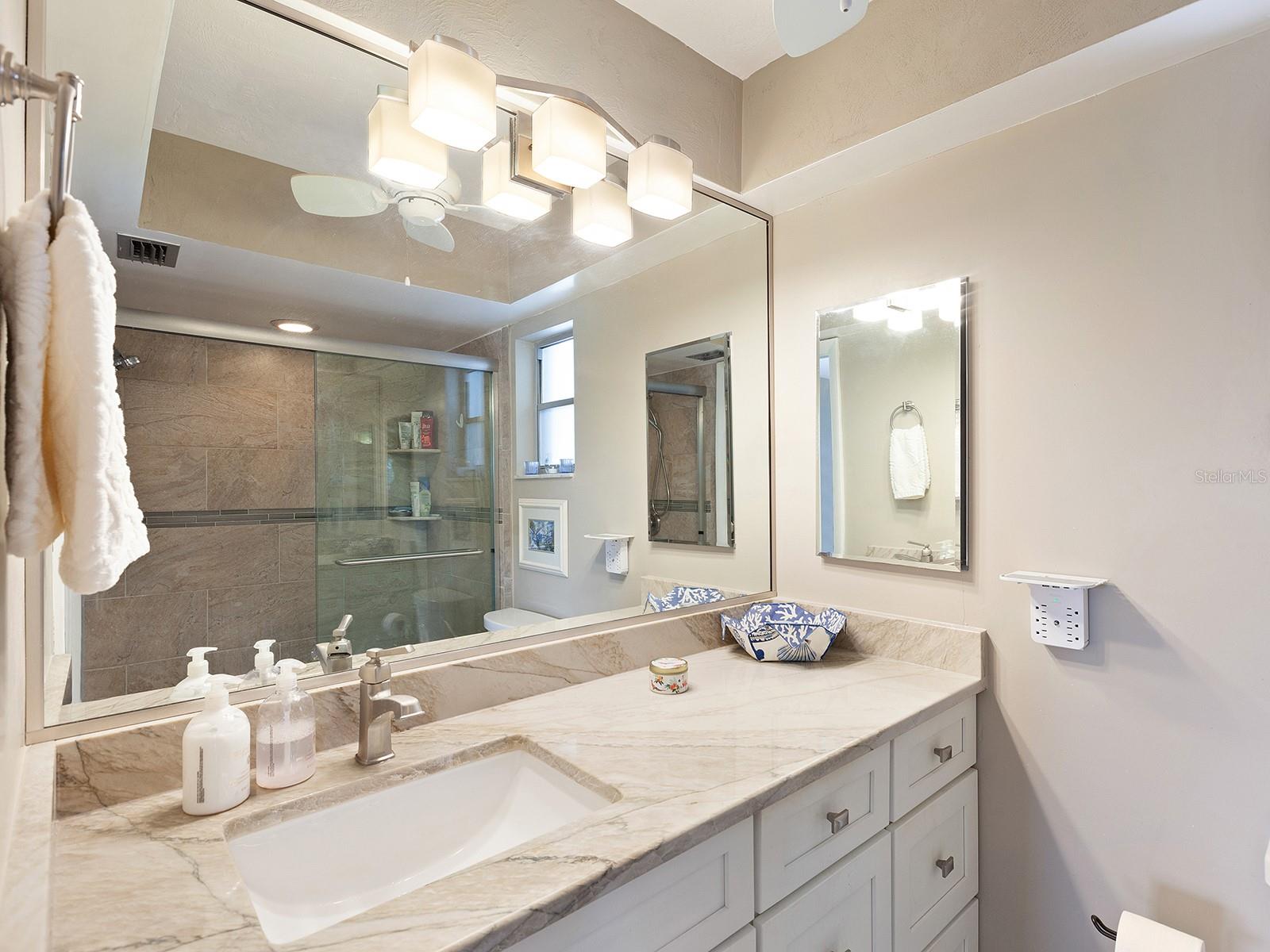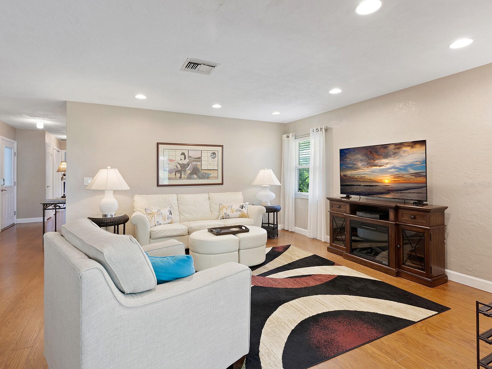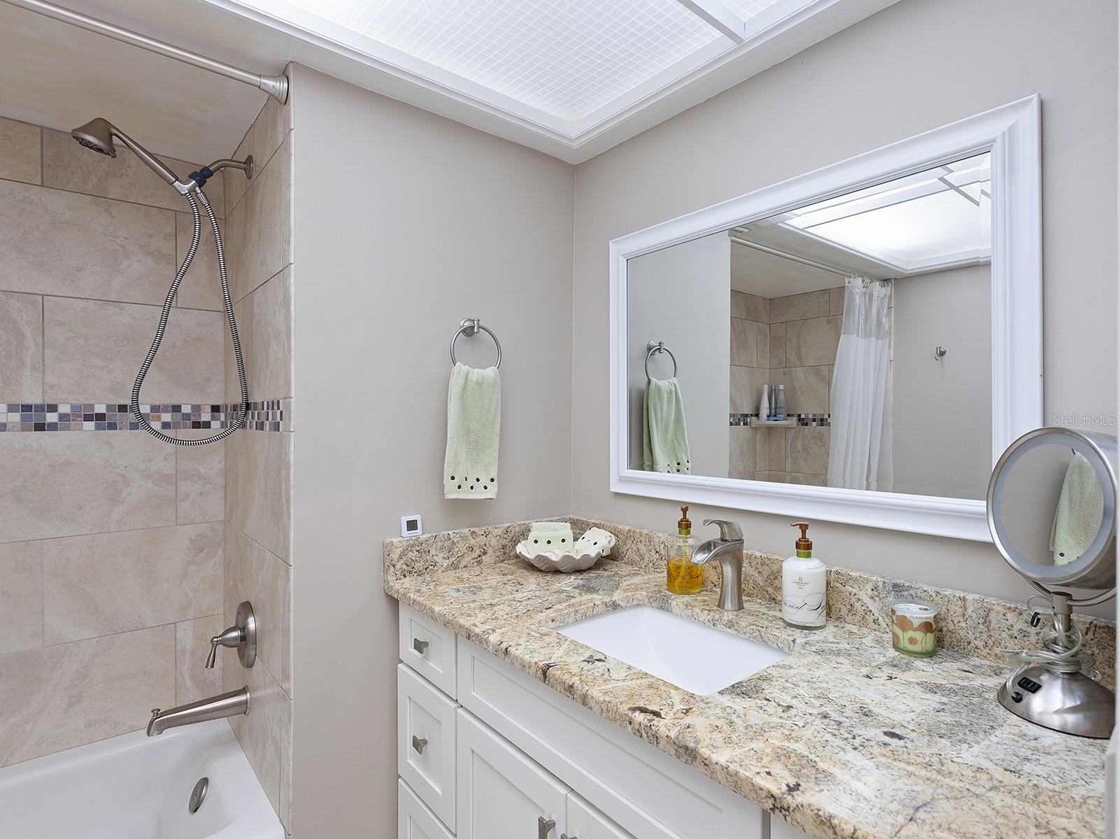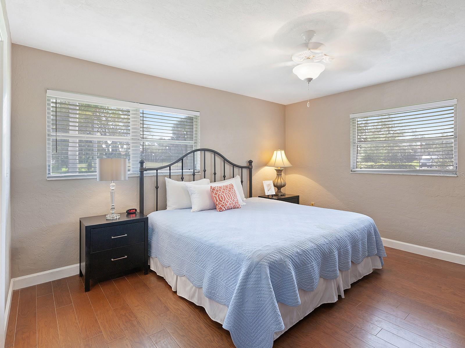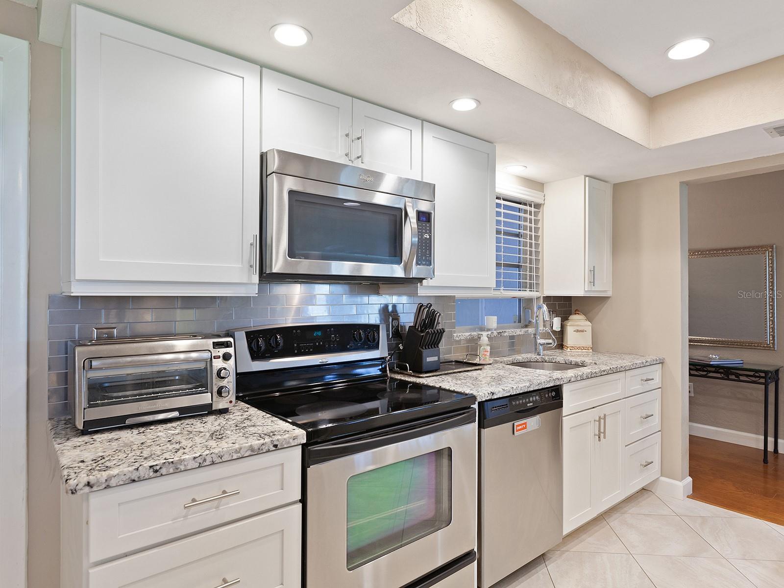 Prepare to be enchanted as you step into this move-in ready villa offering two spacious bedrooms, two full baths, a den/office area, and the icing on the cake- a generously sized great/bonus room overlooking lovely landscaped grounds and trees. Upon entering, be greeted by an abundance of natural light that illuminates the living space adorned with modern finishes and thoughtful touches throughout, seamlessly blending style and functionality. The open-plan layout effortlessly connects the living area, dining space, and kitchen, creating an ideal setting for both relaxation and entertainment. The nicely equipped kitchen features single-shaker cabinetry, granite countertops, and stainless steel appliances, making meal preparation a pleasure. Enjoy your morning coffee while birdwatching from the cozy breakfast nook or an evening cocktail from your private patio, where you can unwind amidst tranquil surroundings. Peace of mind ensues with hurricane-rated windows in many of the main rooms. Convenience is key with an inside laundry and attached garage, providing secure parking and additional storage solutions. Outside, the community offers a serene oasis to explore at your leisure, whether you're taking a refreshing dip in the sparkling pool or immersing yourself in the beauty of nature with a leisurely stroll along the walking path. Located in a 55+ community in a prime central location, it offers easy access to shopping, dining, entertainment, and all the amenities you desire, whether you're seeking a relaxing retreat or an active social lifestyle, this renovated villa offers a lifestyle of comfort and sophistication. Don't miss the opportunity to make it yours!