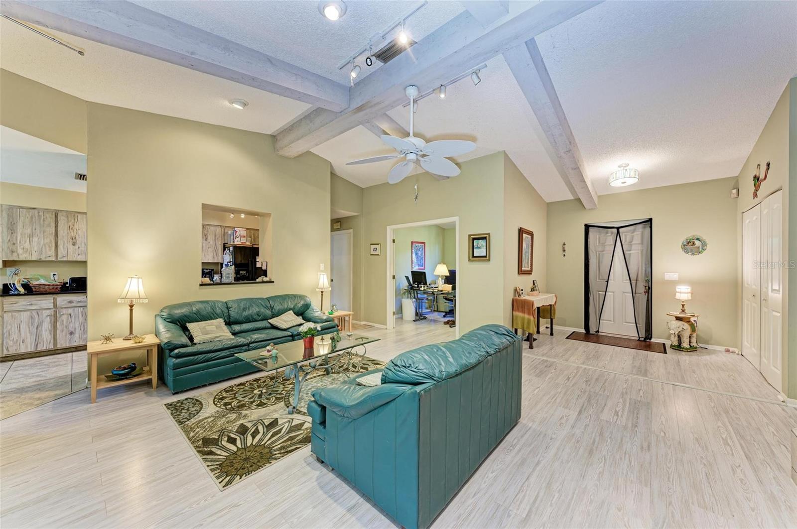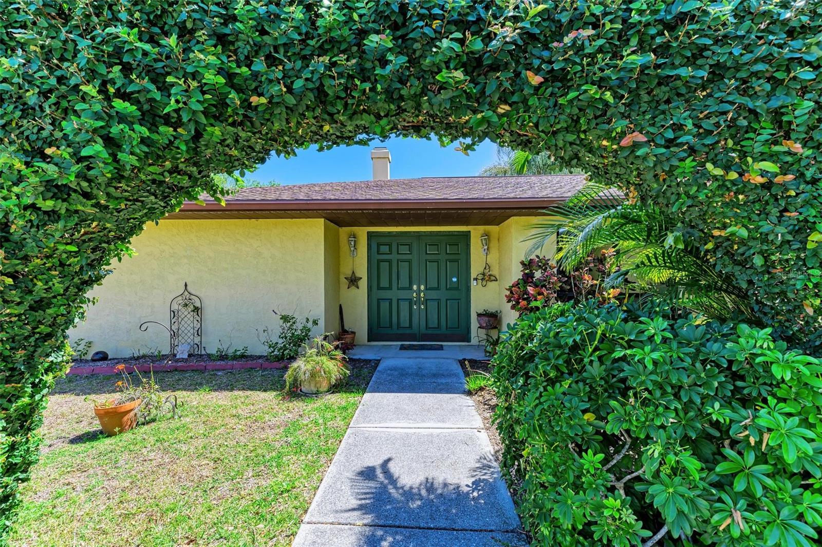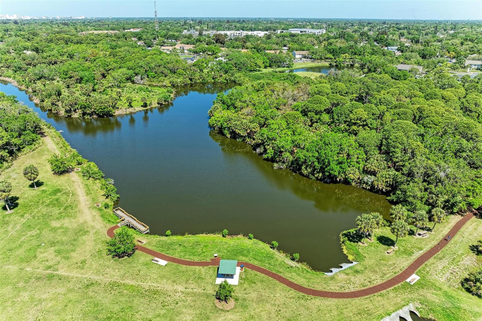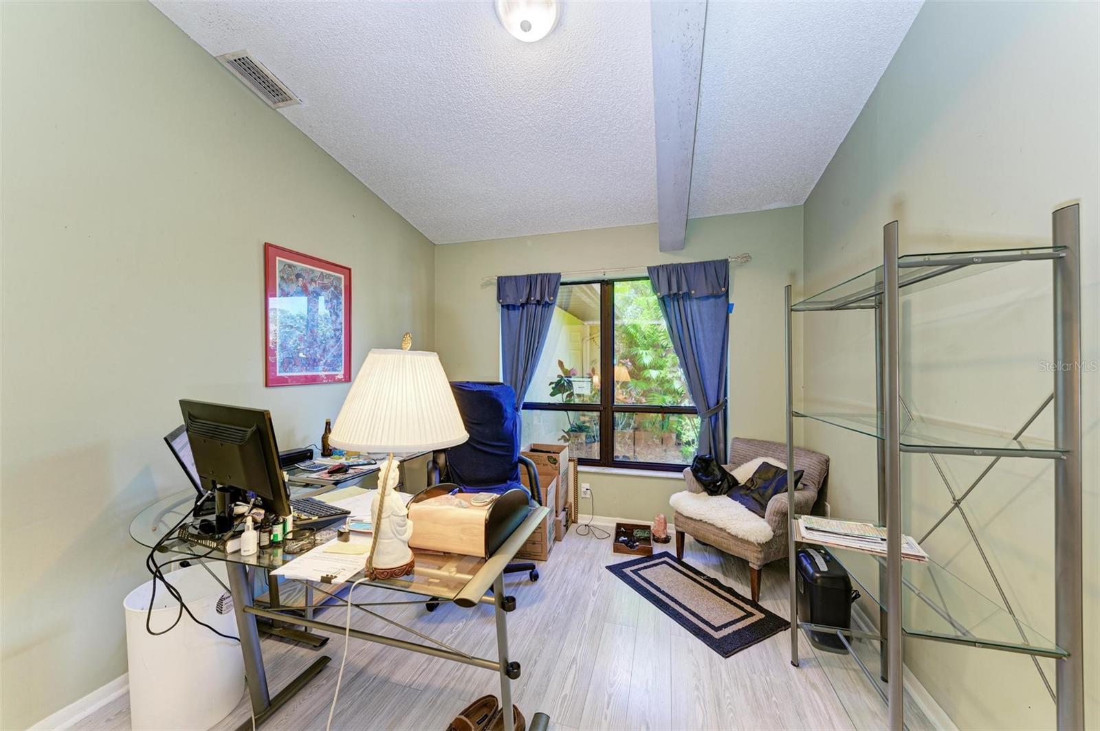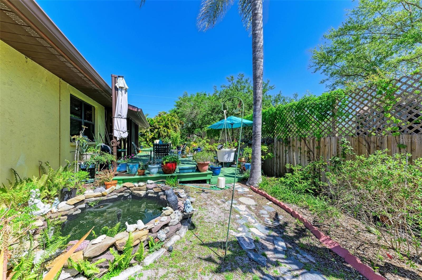 Serenity, beauty, and charm with a heated saltwater pool. How could you ask for more? Features include cathedral ceilings, built-in bookcases, split floor plan, fireplace, double sink bathroom with grab bars, 4 bedrooms, 2 baths, office, enclosed patio, 4th room as nursery, exercise or craft room all with high quality Pergo flooring. Borders Red Bug Slough Park with walking and biking trails, dog park, and lake stocked with bass. Backyard garden with unique lagoon pool and fish pond. The pool is concrete and is salt water and has a newer electric pool heater. Quiet deed-restricted neighborhood tucked away from traffic yet accessible to shopping and Siesta Key Beach. Westlake Estates is a small HOA community of 65 homes with low HOA fees. This home was originally built and owned by the famous cartoonist, Dik Brown, creator of Hi and Lois and Hagar the Horrible.