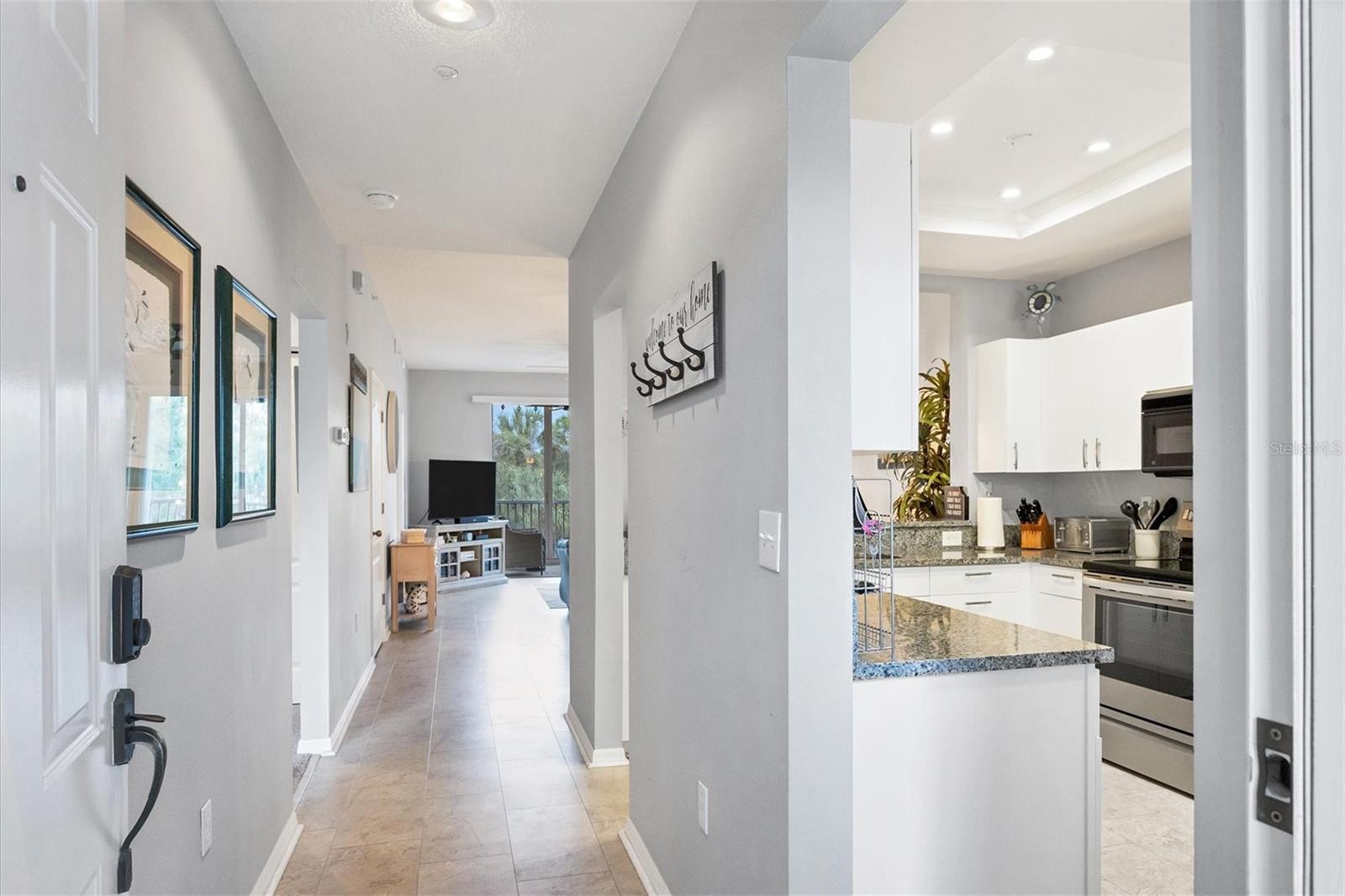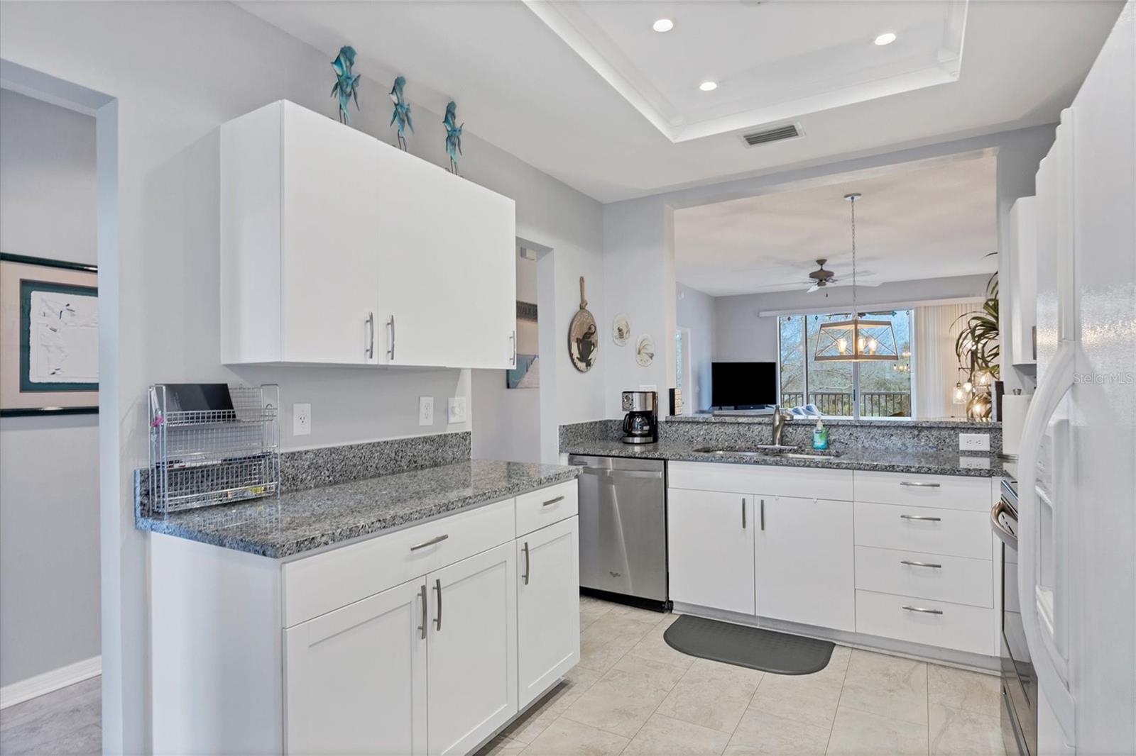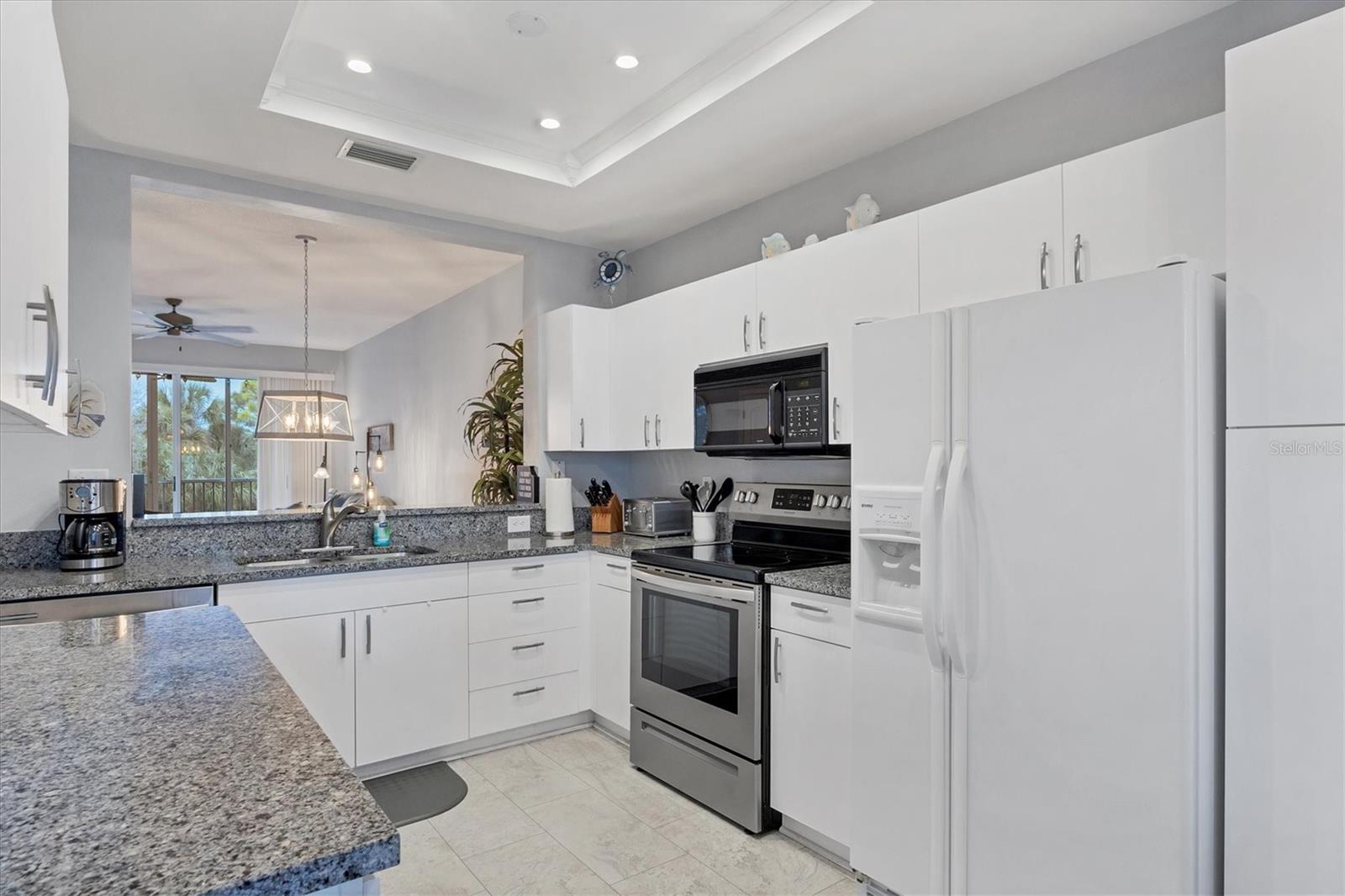Welcome to your turnkey-furnished dream condominium in the highly sought-after Stoneybrook Golf and Country Club community! Located just minutes away from the world-renowned Siesta Key Beach, this gated and well-established community offers the perfect blend of luxury living and resort-style amenities. As you step into this meticulously maintained two-bedroom, two-bath residence, you're greeted by an airy and open floor plan with high ceilings, creating a spacious and inviting atmosphere. Recent updates include a newer roof and tile flooring throughout the living areas, complemented by plush carpeting in the bedrooms. The kitchen is a chef's delight, featuring tray ceilings, stainless steel appliances, granite countertops, a cozy breakfast nook, and a charming bar window overlooking the dining and living areas, making entertaining a breeze. The primary suite features its own private lanai entrance, a grand walk-in closet, and an attached en-suite bath with a large vanity and relaxing walk-in shower, the perfect spot to unwind after a long day. Pond views from the fully screened lanai provide breathtaking sunsets, a serene backdrop for relaxation, and seamlessly extend the main living space, offering the perfect spot for al fresco dining or simply unwinding while enjoying the picturesque surroundings. This unit comes complete with its own assigned carport spot, convenient inside laundry, and additional storage area. Membership to the Country Club is required, and community amenities include access to the golf course, a pristine pool, tennis courts, pickleball, and a clubhouse with a full-service restaurant and more. This unit would make a wonderful full-time home as well as a prime rental investment. Don't miss out on this incredible opportunity to experience resort-style living at its finest! Schedule your showing today and start living the luxurious Florida lifestyle you've always dreamed of!