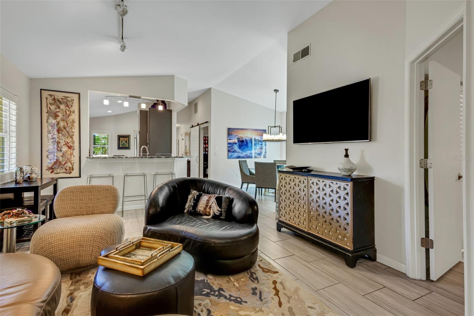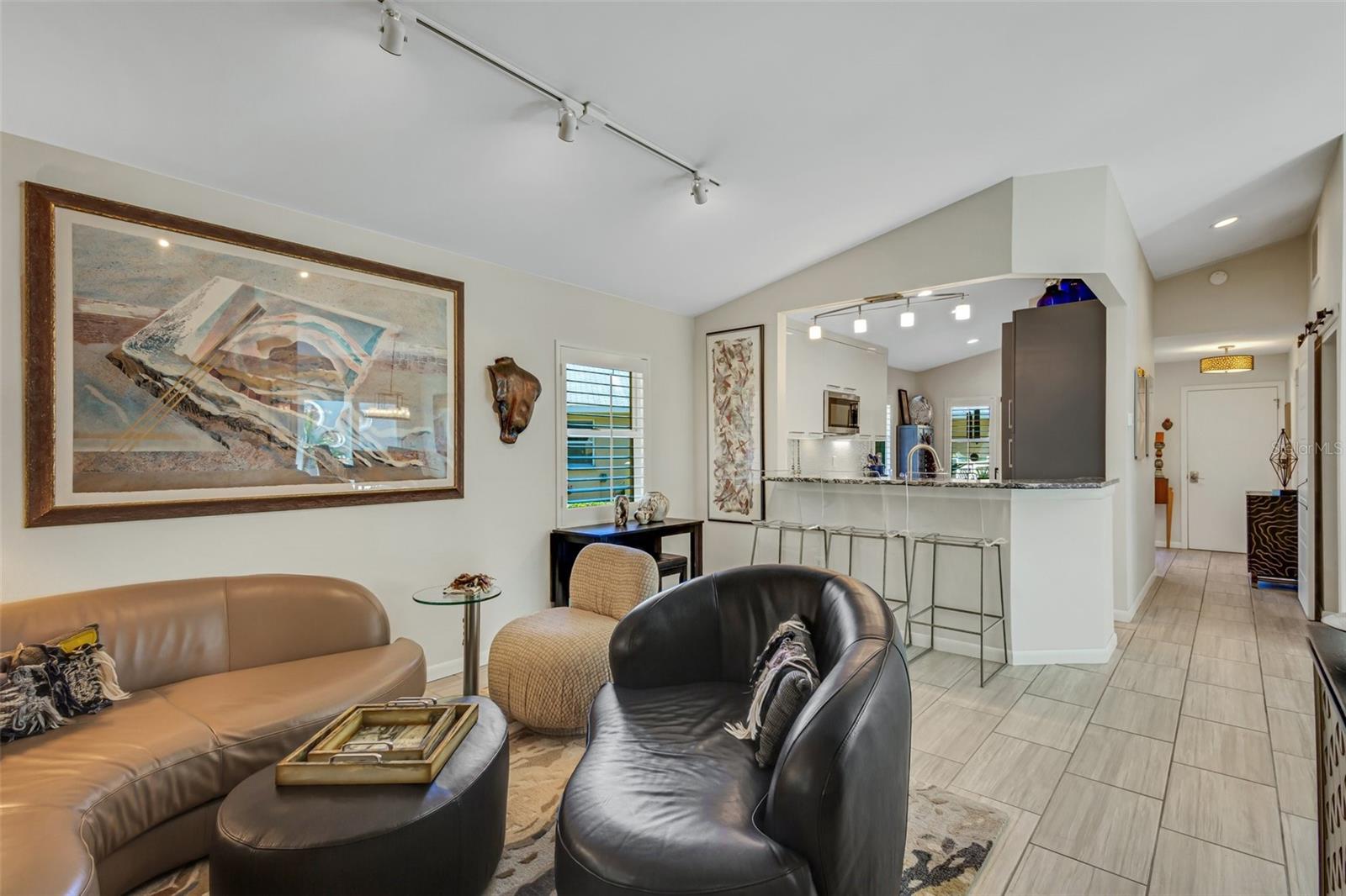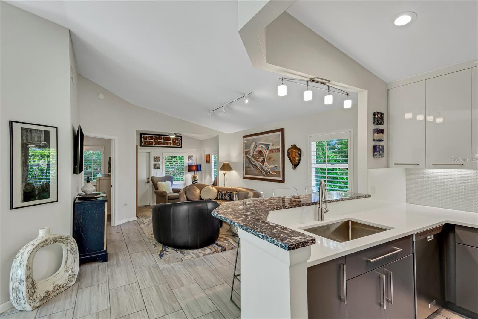 Gorgeous fully remodeled 2 Bedroom, 2 bath attached single family home close to Downtown Sarasota. This spacious home has been painstakingly remodeled throughout with top quality finishes and is ready for you to move in and enjoy all that sunny Florida has to offer! There is a beautiful atrium with newer hurricane sliders off the dining room in this open concept home, as well as a separate sitting area in the back off the living room. With high ceilings, plantation shutters throughout, and decorator finishes everywhere you look (including lighting and fans), this space has all the bells and whistles. The back patio is open and has a lovely calming quiet private view. The Chef of the home hopes you'll enjoy the custom gourmet kitchen just as much as they do! No expense has been spared with top quality appliances, tongue and groove soft-close fully opening cabinets, quartz countertops, and custom built-ins including pull-outs and slide-outs you'll love this dream kitchen. The breakfast bar opens the kitchen to the living room and dining room for ease of entertaining, and the split bedroom floor plan is perfect for guests. Tile flooring throughout sure makes maintenance easy and the vaulted ceilings make this bright home feel larger than its size. There is ample storage with a walk-in closet in each Bedroom and a two car garage. Everything has been done for you here. Special bonus, a NEW AC was just installed this year! Chartley Court is a small quaint complex close to I75 and only about 3 miles to downtown Sarasota and a few miles to UTC and all that LWR has to offer. There is a private community pool and all grounds and exterior maintenance is included for your low HOA fee. There are superb shops and fantastic dining opportunities in every direction! Call to schedule your showing today.