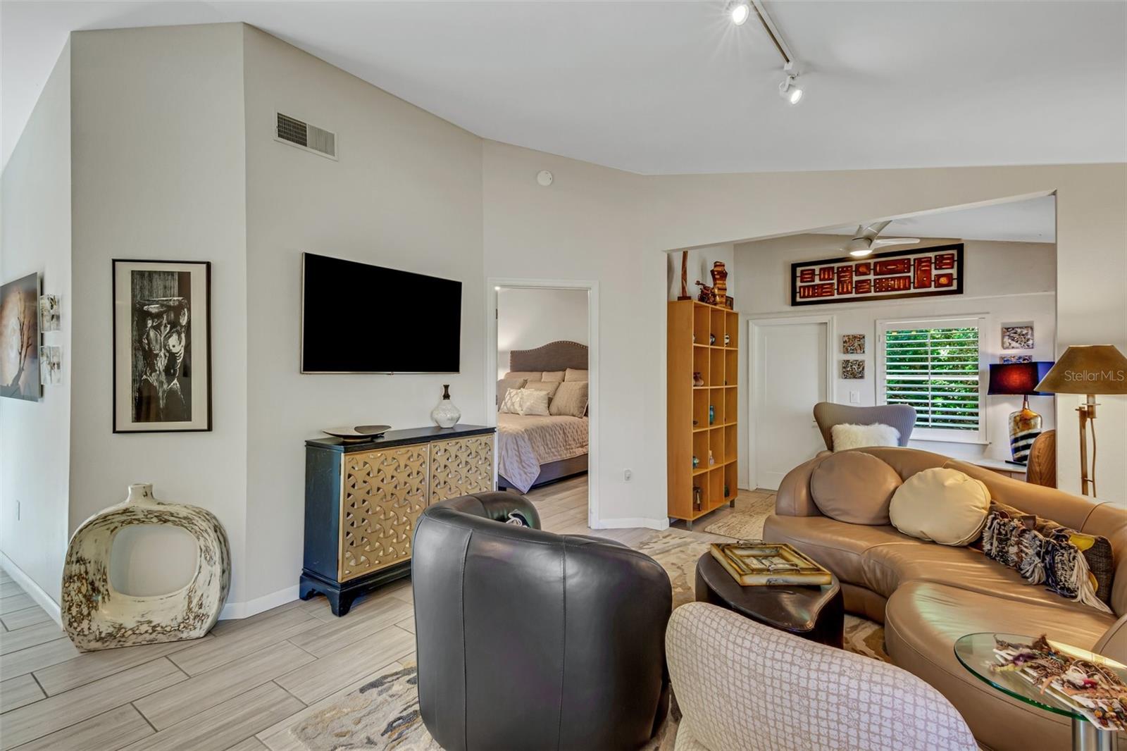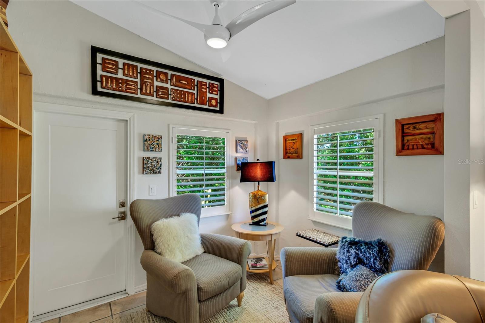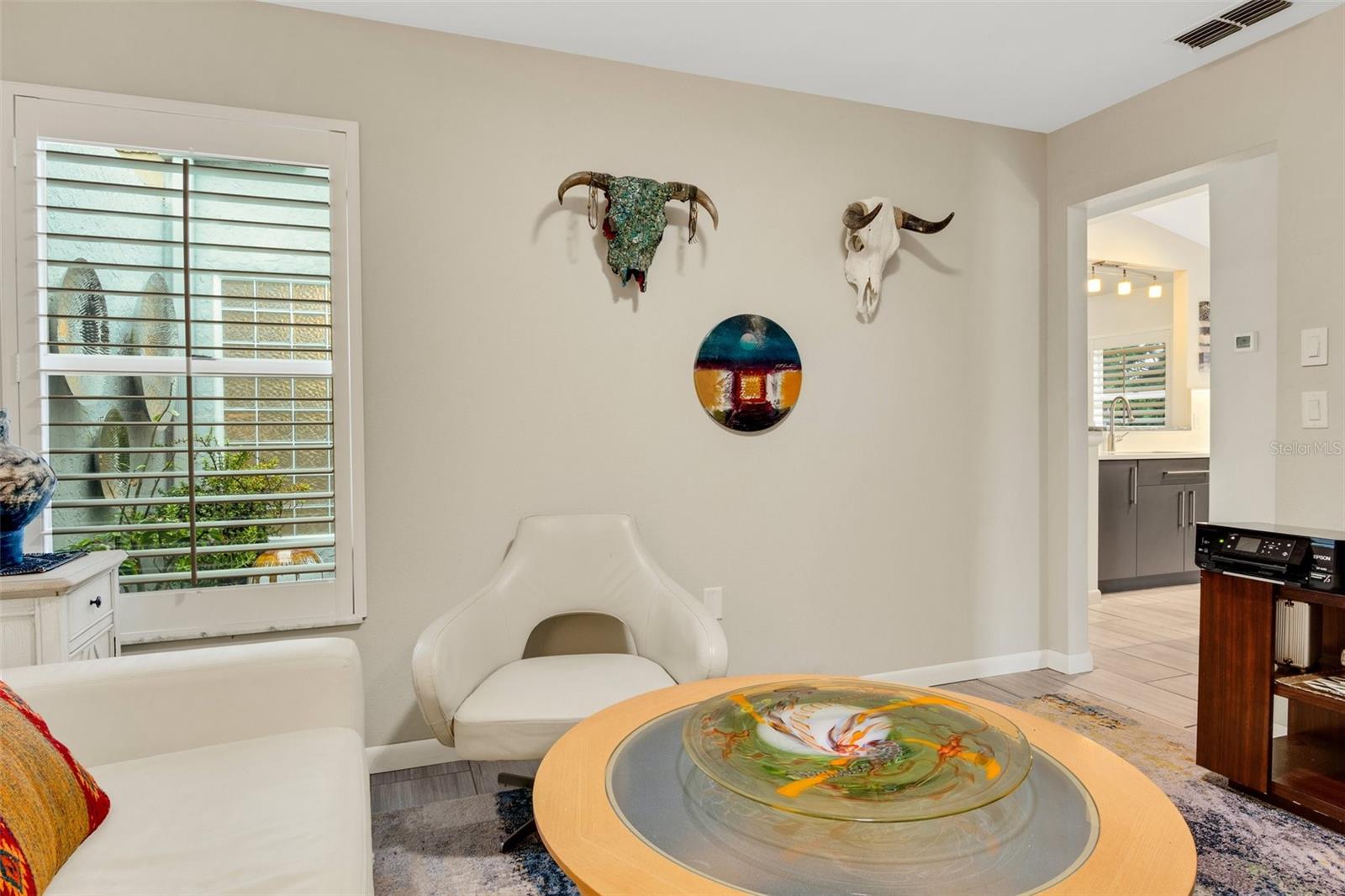 Gorgeous fully remodeled 2 Bedroom, 2 bath attached single family home close to Downtown Sarasota. This spacious home has been painstakingly remodeled throughout with top quality finishes and is ready for you to move in and enjoy all that sunny Florida has to offer! There is a beautiful atrium with newer hurricane sliders off the dining room in this open concept home, as well as a separate sitting area in the back off the living room. With high ceilings, plantation shutters throughout, and decorator finishes everywhere you look (including lighting and fans), this space has all the bells and whistles. The back patio is open and has a lovely calming quiet private view. The Chef of the home hopes you'll enjoy the custom gourmet kitchen just as much as they do! No expense has been spared with top quality appliances, tongue and groove soft-close fully opening cabinets, quartz countertops, and custom built-ins including pull-outs and slide-outs you'll love this dream kitchen. The breakfast bar opens the kitchen to the living room and dining room for ease of entertaining, and the split bedroom floor plan is perfect for guests. Tile flooring throughout sure makes maintenance easy and the vaulted ceilings make this bright home feel larger than its size. There is ample storage with a walk-in closet in each Bedroom and a two car garage. Everything has been done for you here. Special bonus, a NEW AC was just installed this year! Chartley Court is a small quaint complex close to I75 and only about 3 miles to downtown Sarasota and a few miles to UTC and all that LWR has to offer. There is a private community pool and all grounds and exterior maintenance is included for your low HOA fee. There are superb shops and fantastic dining opportunities in every direction! Call to schedule your showing today.