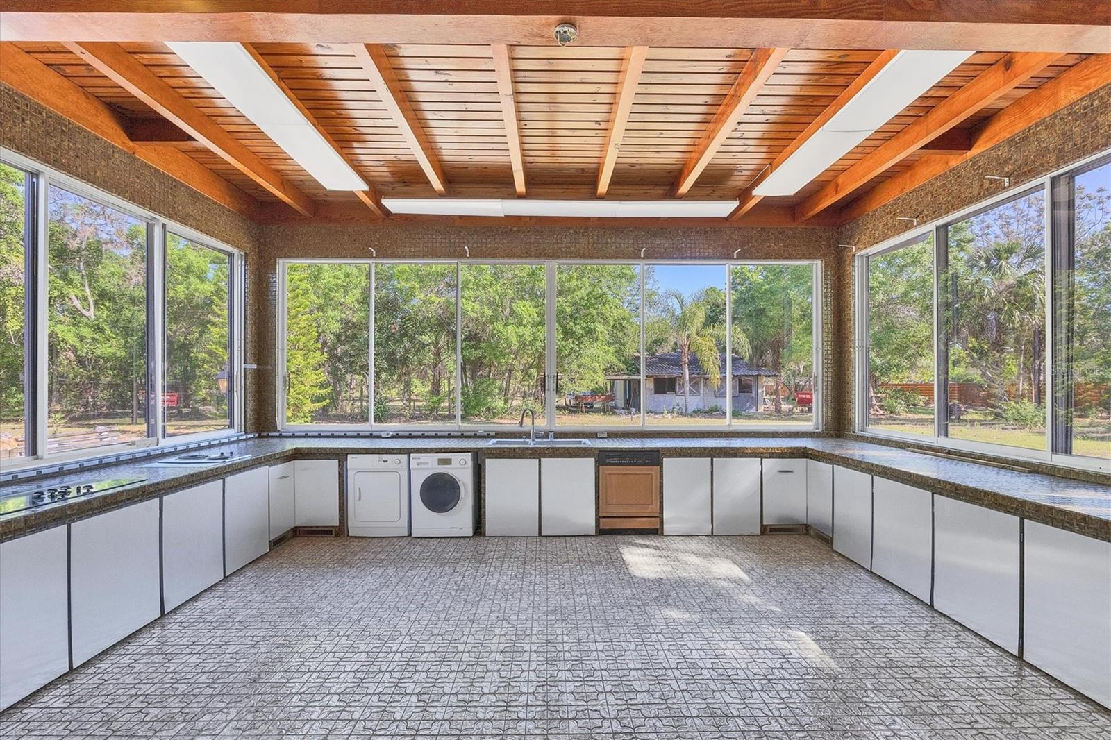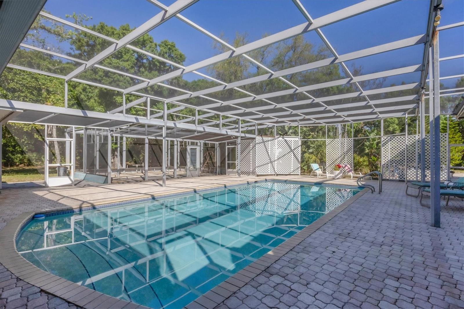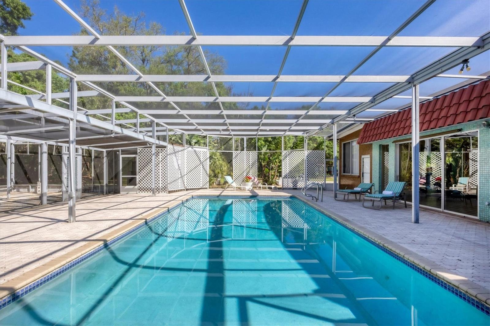 MAGNIFICENT COUNTRY ESTATE IN THE HEART OF TOWN...You will fall in love with this 5950 s.f. RUTH RICHMOND Retro HOME built in DeSoto Acres on 2.18 Acres and only 3 miles to downtown Sarasota! Once you enter through the stately gated entrance you are greeted with engaging curb appeal and a beautiful brick courtyard. The 3,000 square foot main home was built with high ceilings, crown molding, terrazzo flooring and has THREE Ensuites, a huge living room & dining room, oversized kitchen with an abundance of cabinetry and wonderful Florida room with vistas of the 32'x16' caged pool. There is a 3000+/- square foot addition connected with a vestibule and creating a rear courtyard around the pool patio. This additional space includes a huge family/rec room, banquet hall size kitchen, two additional bedrooms, storage room and a room with a private entrance that could be an office, another bedroom or what ever one needs. A TOTAL OF 5958 heated and cooled square feet, 5+ bedrooms and 4.5 baths, 2 kitchens, 2 laundries, a two car garage, 2 car carport, large chicken coop, huge screened and shaded orchid garden and a concrete and mosaic koi pond. Your new estate has been very well preserved and has a 4.5 year old tile roof, Reverse osmosis/water filtration, central vacuum, new well pump and multiple hard wired smoke detectors. A great home for the extended family, or home office/business, etc. DeSoto Acres is a community of "Like size lots" only 3 miles to downtown Sarasota; it is a registered bird sanctuary and has an County overlay allowing horses, goats, chicken and roosters. Close to downtown Sarasota, Bradenton & I-75/UTC. You won't believe your eyes!