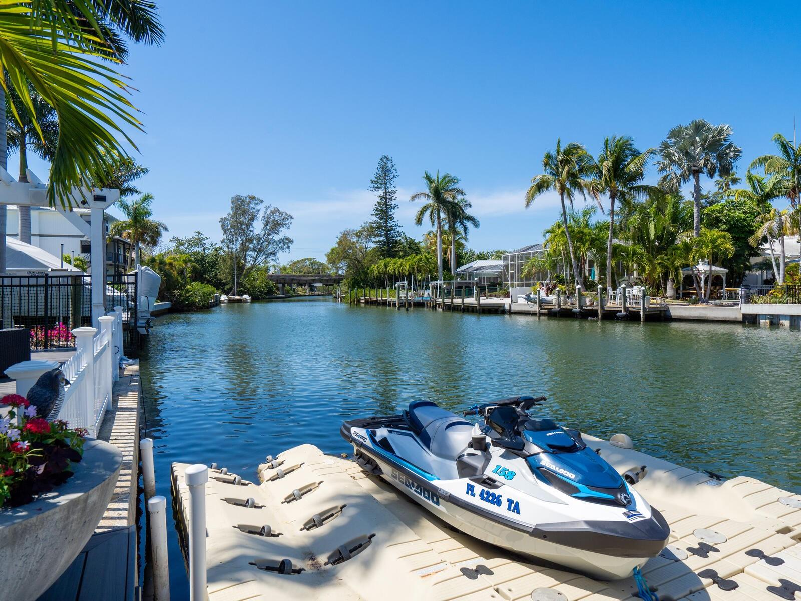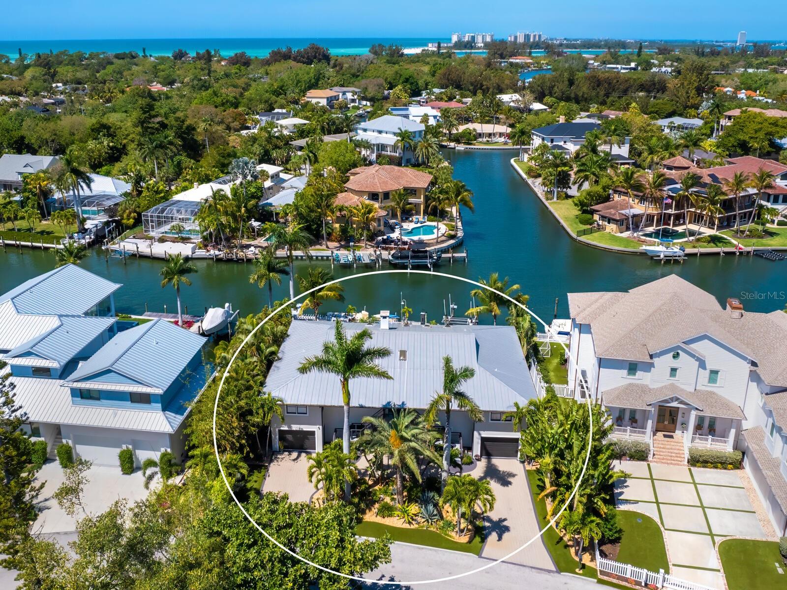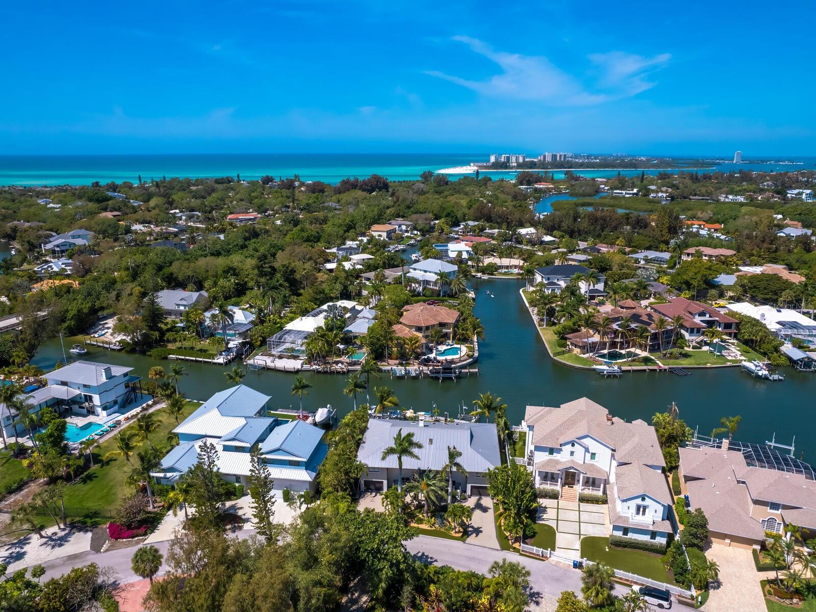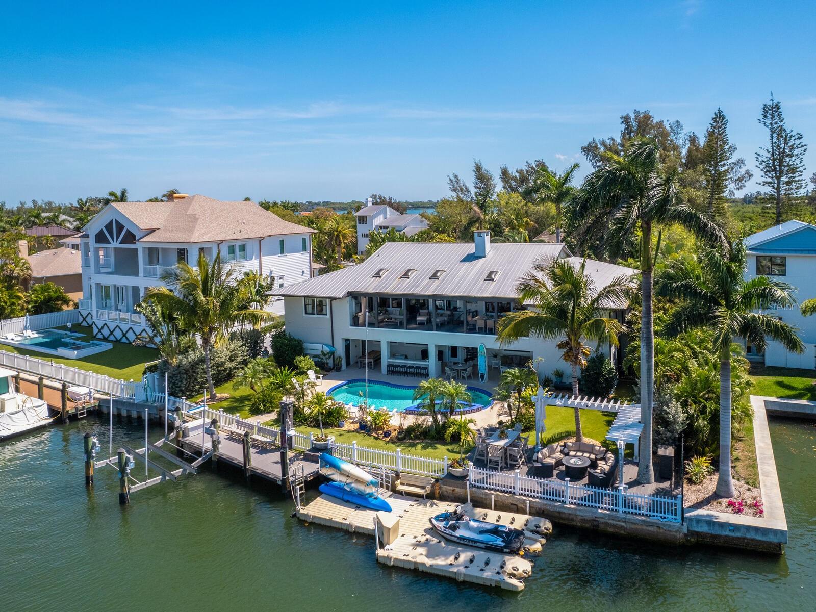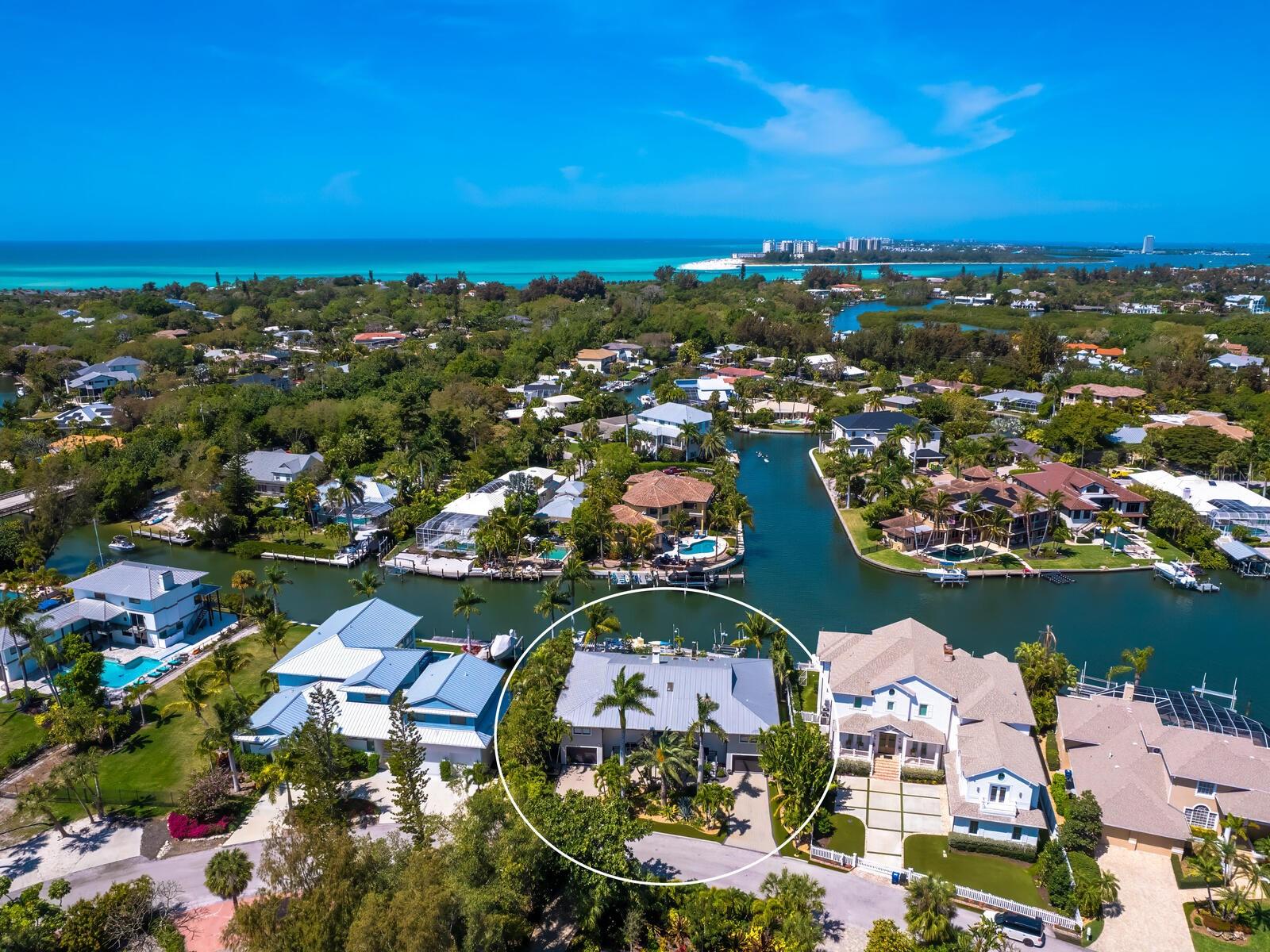 New pricing! Welcome to paradise found on Siesta Key, the epitome of coastal living. Situated on 108 feet of deep sailboat waterfront on the Grand Canal, this meticulously renovated 5,011 square-foot luxury home awaits you. With no fixed bridge and direct access to Roberts Bay and the Intracoastal Waterway, boating enthusiasts will appreciate the short trip to the azure waters of the Gulf of Mexico. As you step inside, prepare to be enchanted by stunning contemporary details and exquisite craftsmanship. The open floor plan seamlessly integrates with custom built-in cabinetry, natural cherry hardwood, and marble floors, exuding an ambiance of modern elegance. The heart of the home, the spectacular chef’s kitchen, is a culinary masterpiece. Featuring a vast center island with room for seating, coastal contemporary cabinetry, and luxurious Carrera marble countertops and backsplashes, it is equipped with top-of-the-line appliances, including a six-burner gas cooktop, plus dual wall ovens, dishwashers, and microwaves, and a pantry. The resident gourmand will entertain guests with ease. The adjacent dining room shares a marble-faced, double-sided fireplace with the living room and opens to an expansive terrace, creating an idyllic indoor/outdoor entertaining space perfect for waterfront al fresco dining under the stars. Retreat to the luxurious primary bedroom suite overlooking the waterway, while the split bedroom plan offers two additional guest suites on the main living level. An office, a half bath, and two laundry areas complete the upper level. The lower level beckons with a home theater/game room and two private guest suites, each with kitchenettes and a private entrance. Outside, indulge in your private resort-style amenities, including a waterfront pool and spa, an expansive covered lanai with an outdoor kitchen and bar seating, and a waterfront deck with a fabulous pergola – the perfect location for daily dolphin and manatee sightings. Surrounded by lush tropical landscaping, enjoy privacy and tranquility with maintenance-free lawn, and a well for irrigation. In the evening, landscape lighting creates a dazzling experience on the waterfront. The dock offers a 20,000-pound boat lift, two floating jet ski docks, electricity, water, and two showers, while a bait room provides secure storage for fishing equipment and pool toys. With its enviable location on Siesta Key, renowned for its world-class beaches and vibrant island lifestyle, this property offers an unparalleled experience of coastal luxury and island living. Close to Siesta Beach, Siesta Village, downtown Sarasota, St. Armands Circle, restaurants, shopping, Sarasota Memorial Hospital, and top-notch schools, this residence epitomizes the ideal island lifestyle in a prime Sarasota location. Don’t miss this opportunity to live every day like a vacation in paradise!