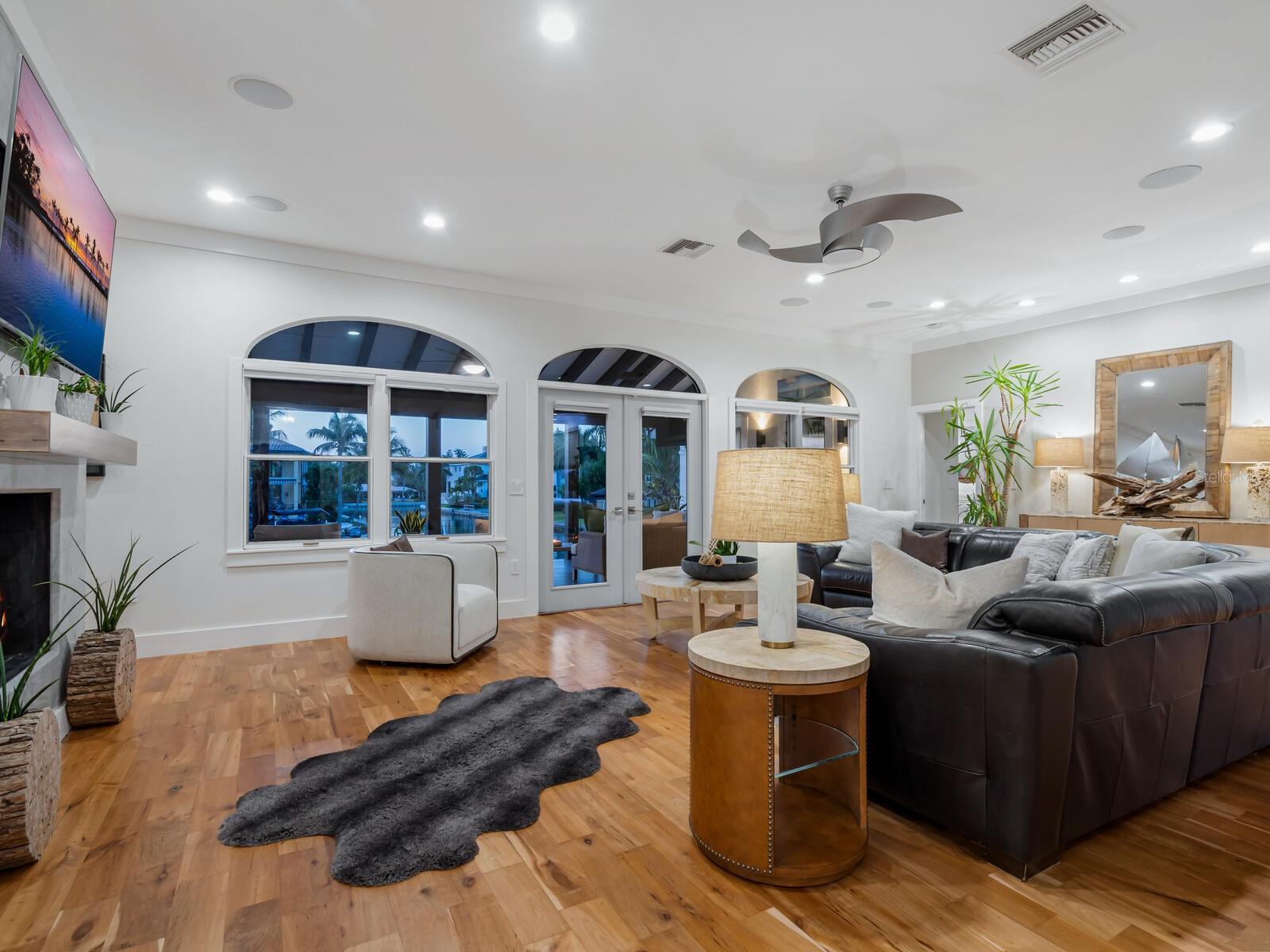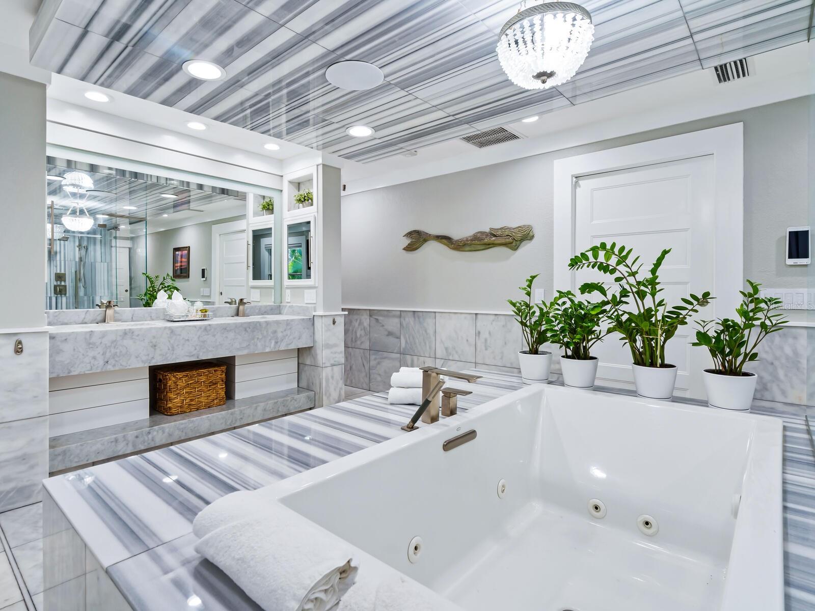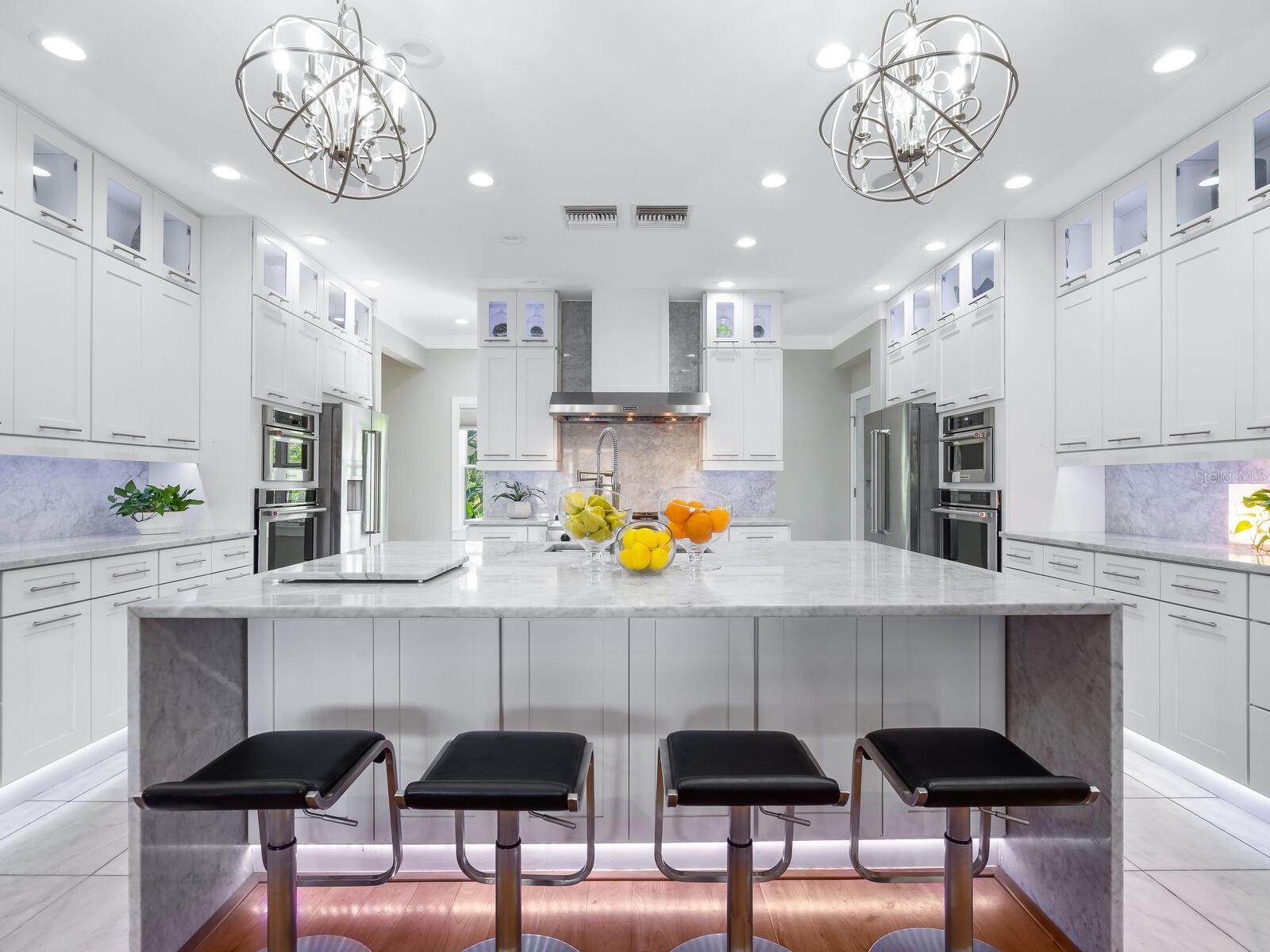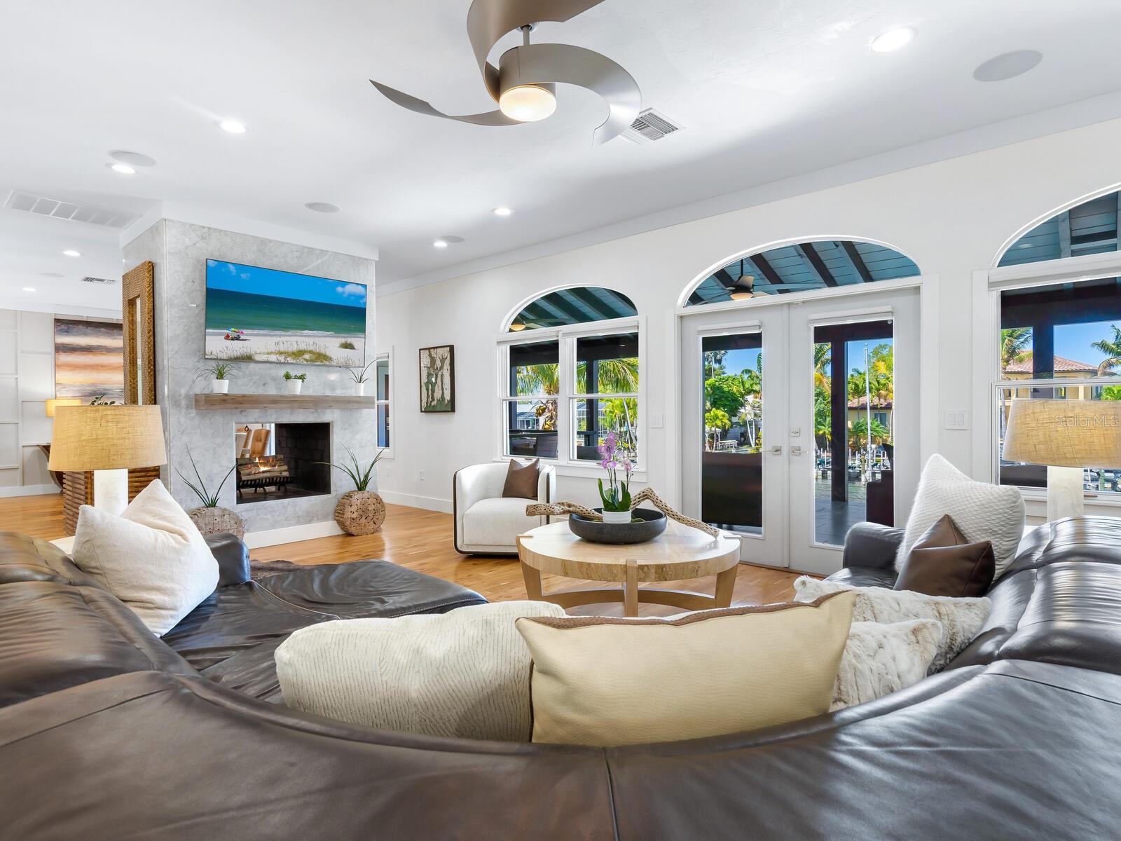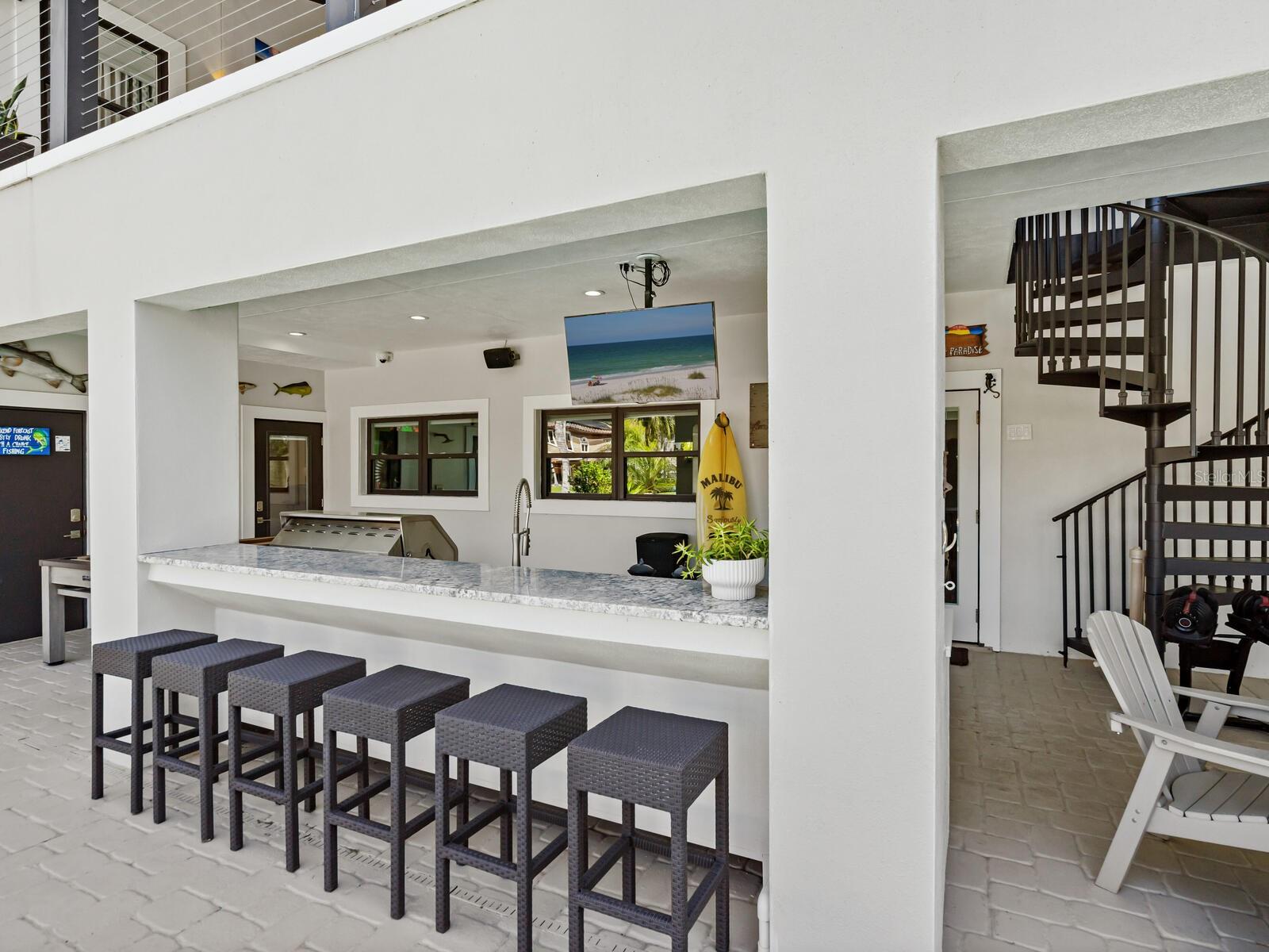 New pricing! Welcome to paradise found on Siesta Key, the epitome of coastal living. Situated on 108 feet of deep sailboat waterfront on the Grand Canal, this meticulously renovated 5,011 square-foot luxury home awaits you. With no fixed bridge and direct access to Roberts Bay and the Intracoastal Waterway, boating enthusiasts will appreciate the short trip to the azure waters of the Gulf of Mexico. As you step inside, prepare to be enchanted by stunning contemporary details and exquisite craftsmanship. The open floor plan seamlessly integrates with custom built-in cabinetry, natural cherry hardwood, and marble floors, exuding an ambiance of modern elegance. The heart of the home, the spectacular chef’s kitchen, is a culinary masterpiece. Featuring a vast center island with room for seating, coastal contemporary cabinetry, and luxurious Carrera marble countertops and backsplashes, it is equipped with top-of-the-line appliances, including a six-burner gas cooktop, plus dual wall ovens, dishwashers, and microwaves, and a pantry. The resident gourmand will entertain guests with ease. The adjacent dining room shares a marble-faced, double-sided fireplace with the living room and opens to an expansive terrace, creating an idyllic indoor/outdoor entertaining space perfect for waterfront al fresco dining under the stars. Retreat to the luxurious primary bedroom suite overlooking the waterway, while the split bedroom plan offers two additional guest suites on the main living level. An office, a half bath, and two laundry areas complete the upper level. The lower level beckons with a home theater/game room and two private guest suites, each with kitchenettes and a private entrance. Outside, indulge in your private resort-style amenities, including a waterfront pool and spa, an expansive covered lanai with an outdoor kitchen and bar seating, and a waterfront deck with a fabulous pergola – the perfect location for daily dolphin and manatee sightings. Surrounded by lush tropical landscaping, enjoy privacy and tranquility with maintenance-free lawn, and a well for irrigation. In the evening, landscape lighting creates a dazzling experience on the waterfront. The dock offers a 20,000-pound boat lift, two floating jet ski docks, electricity, water, and two showers, while a bait room provides secure storage for fishing equipment and pool toys. With its enviable location on Siesta Key, renowned for its world-class beaches and vibrant island lifestyle, this property offers an unparalleled experience of coastal luxury and island living. Close to Siesta Beach, Siesta Village, downtown Sarasota, St. Armands Circle, restaurants, shopping, Sarasota Memorial Hospital, and top-notch schools, this residence epitomizes the ideal island lifestyle in a prime Sarasota location. Don’t miss this opportunity to live every day like a vacation in paradise!