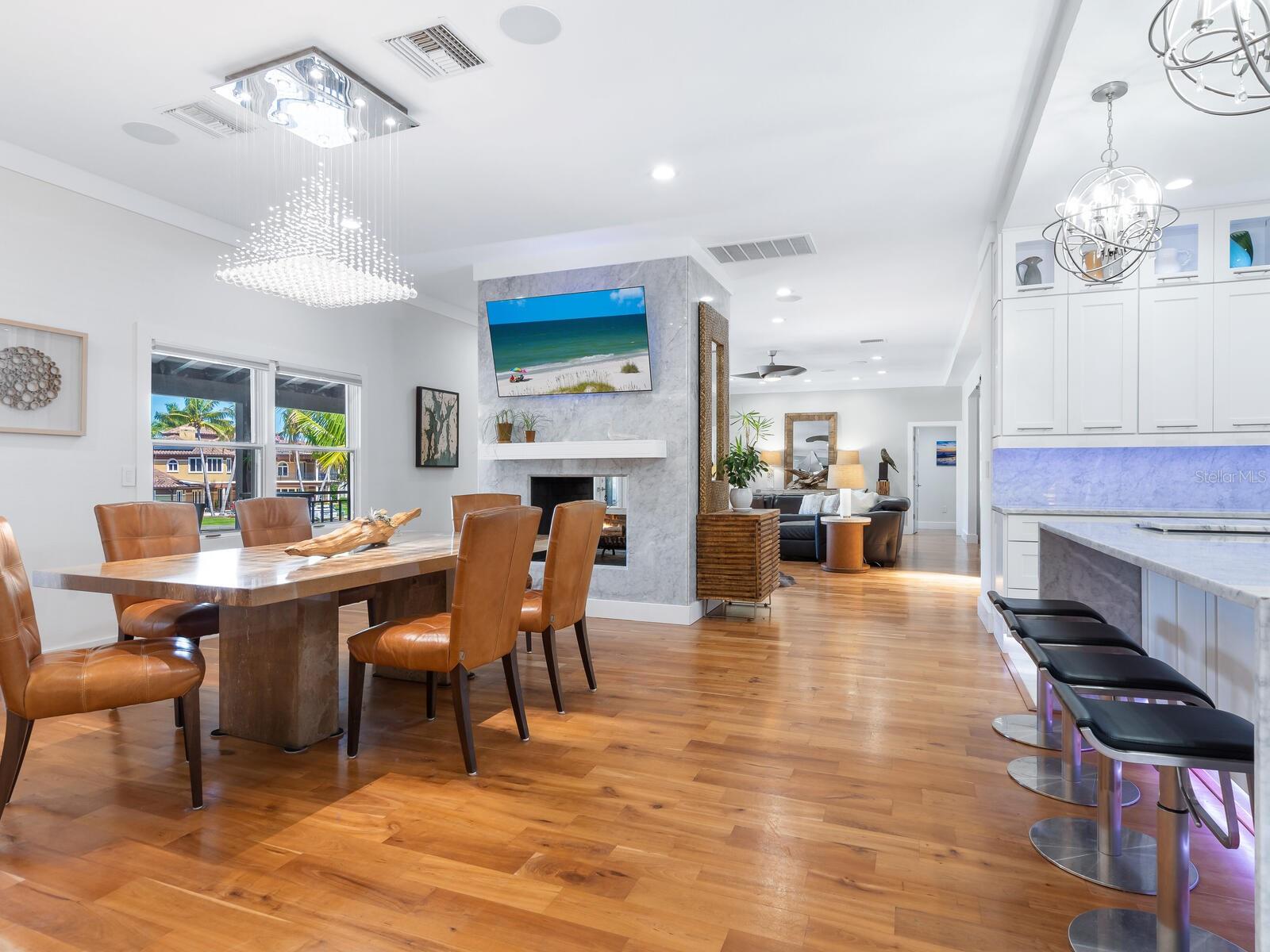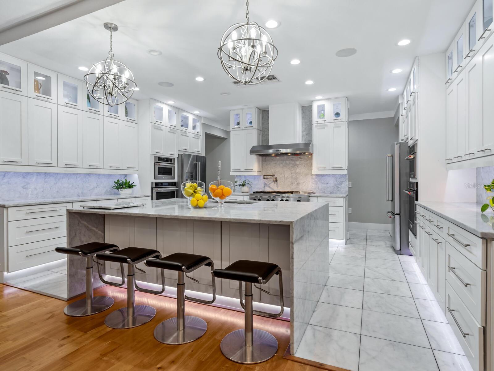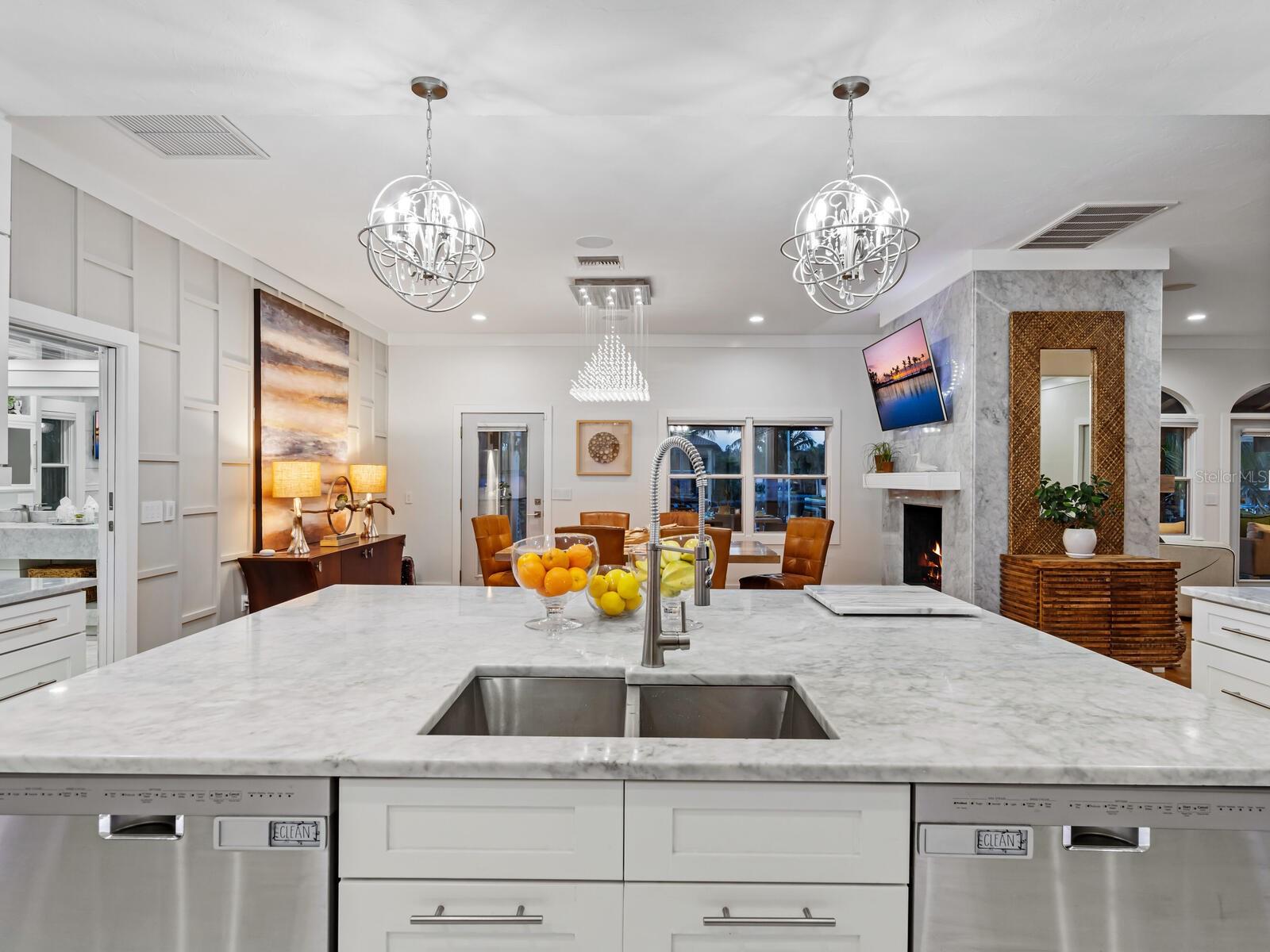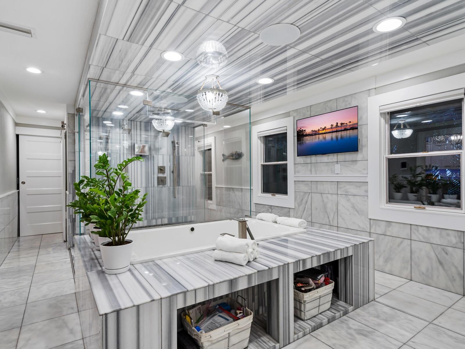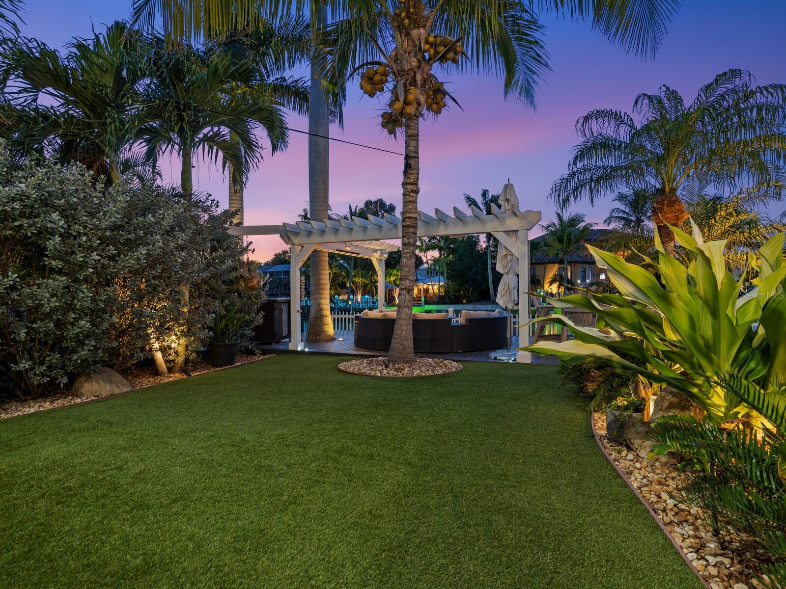 New pricing! Welcome to paradise found on Siesta Key, the epitome of coastal living. Situated on 108 feet of deep sailboat waterfront on the Grand Canal, this meticulously renovated 5,011 square-foot luxury home awaits you. With no fixed bridge and direct access to Roberts Bay and the Intracoastal Waterway, boating enthusiasts will appreciate the short trip to the azure waters of the Gulf of Mexico. As you step inside, prepare to be enchanted by stunning contemporary details and exquisite craftsmanship. The open floor plan seamlessly integrates with custom built-in cabinetry, natural cherry hardwood, and marble floors, exuding an ambiance of modern elegance. The heart of the home, the spectacular chef’s kitchen, is a culinary masterpiece. Featuring a vast center island with room for seating, coastal contemporary cabinetry, and luxurious Carrera marble countertops and backsplashes, it is equipped with top-of-the-line appliances, including a six-burner gas cooktop, plus dual wall ovens, dishwashers, and microwaves, and a pantry. The resident gourmand will entertain guests with ease. The adjacent dining room shares a marble-faced, double-sided fireplace with the living room and opens to an expansive terrace, creating an idyllic indoor/outdoor entertaining space perfect for waterfront al fresco dining under the stars. Retreat to the luxurious primary bedroom suite overlooking the waterway, while the split bedroom plan offers two additional guest suites on the main living level. An office, a half bath, and two laundry areas complete the upper level. The lower level beckons with a home theater/game room and two private guest suites, each with kitchenettes and a private entrance. Outside, indulge in your private resort-style amenities, including a waterfront pool and spa, an expansive covered lanai with an outdoor kitchen and bar seating, and a waterfront deck with a fabulous pergola – the perfect location for daily dolphin and manatee sightings. Surrounded by lush tropical landscaping, enjoy privacy and tranquility with maintenance-free lawn, and a well for irrigation. In the evening, landscape lighting creates a dazzling experience on the waterfront. The dock offers a 20,000-pound boat lift, two floating jet ski docks, electricity, water, and two showers, while a bait room provides secure storage for fishing equipment and pool toys. With its enviable location on Siesta Key, renowned for its world-class beaches and vibrant island lifestyle, this property offers an unparalleled experience of coastal luxury and island living. Close to Siesta Beach, Siesta Village, downtown Sarasota, St. Armands Circle, restaurants, shopping, Sarasota Memorial Hospital, and top-notch schools, this residence epitomizes the ideal island lifestyle in a prime Sarasota location. Don’t miss this opportunity to live every day like a vacation in paradise!