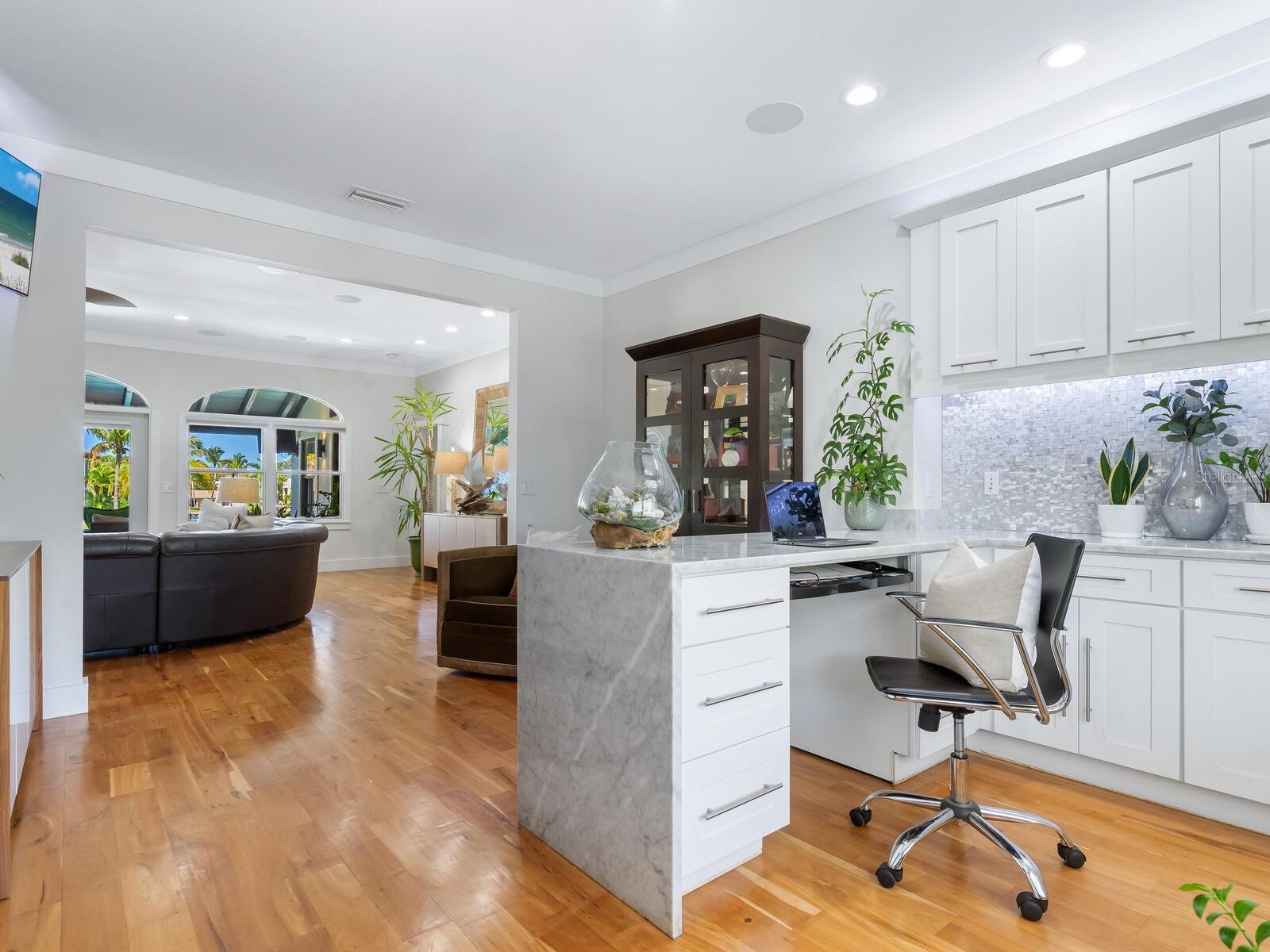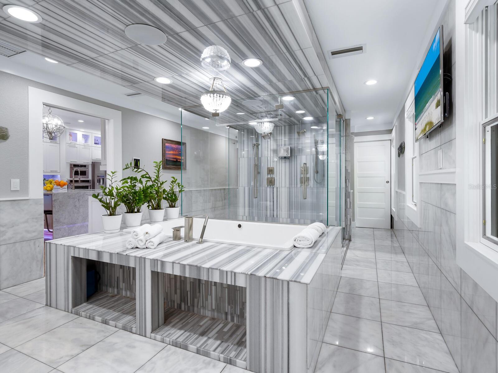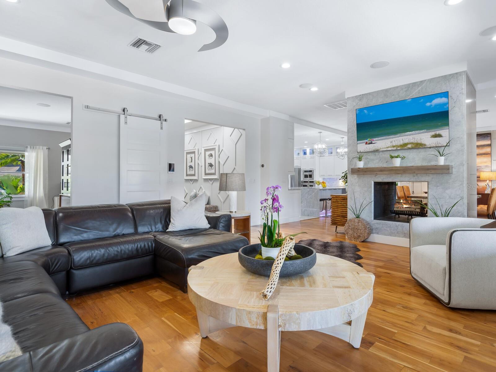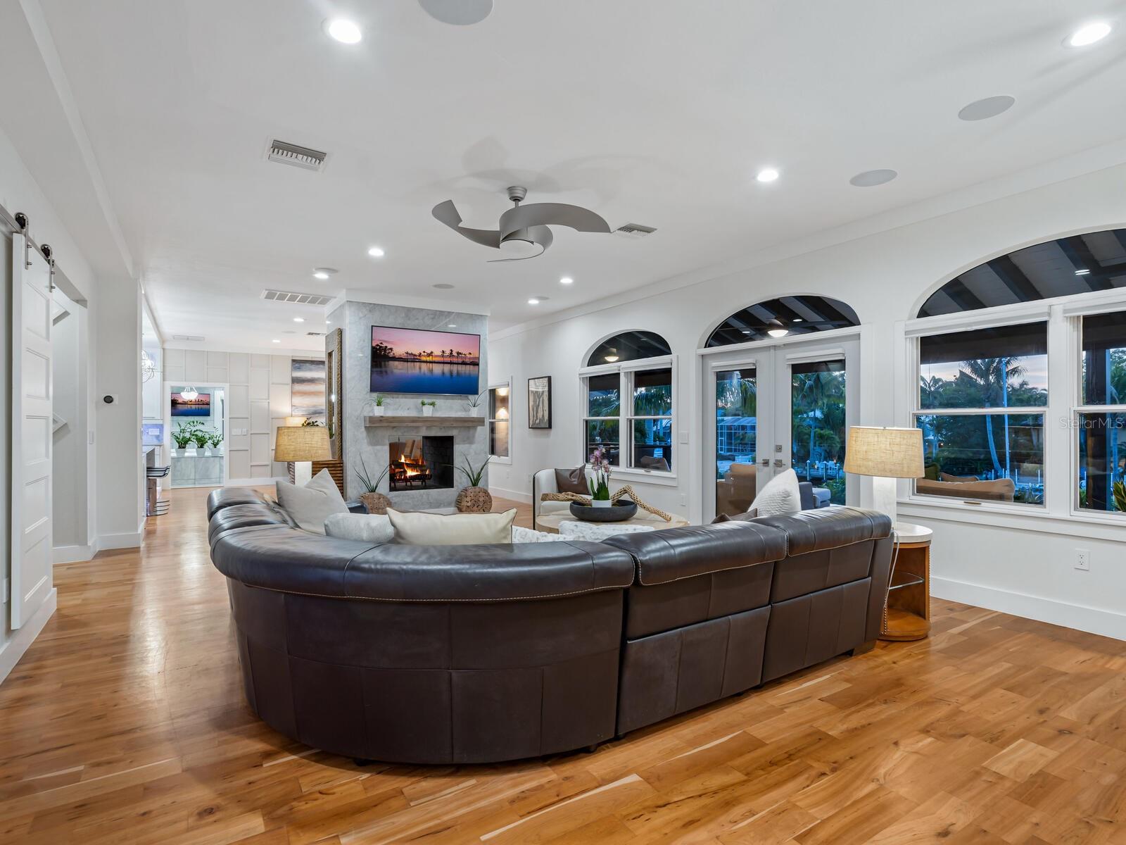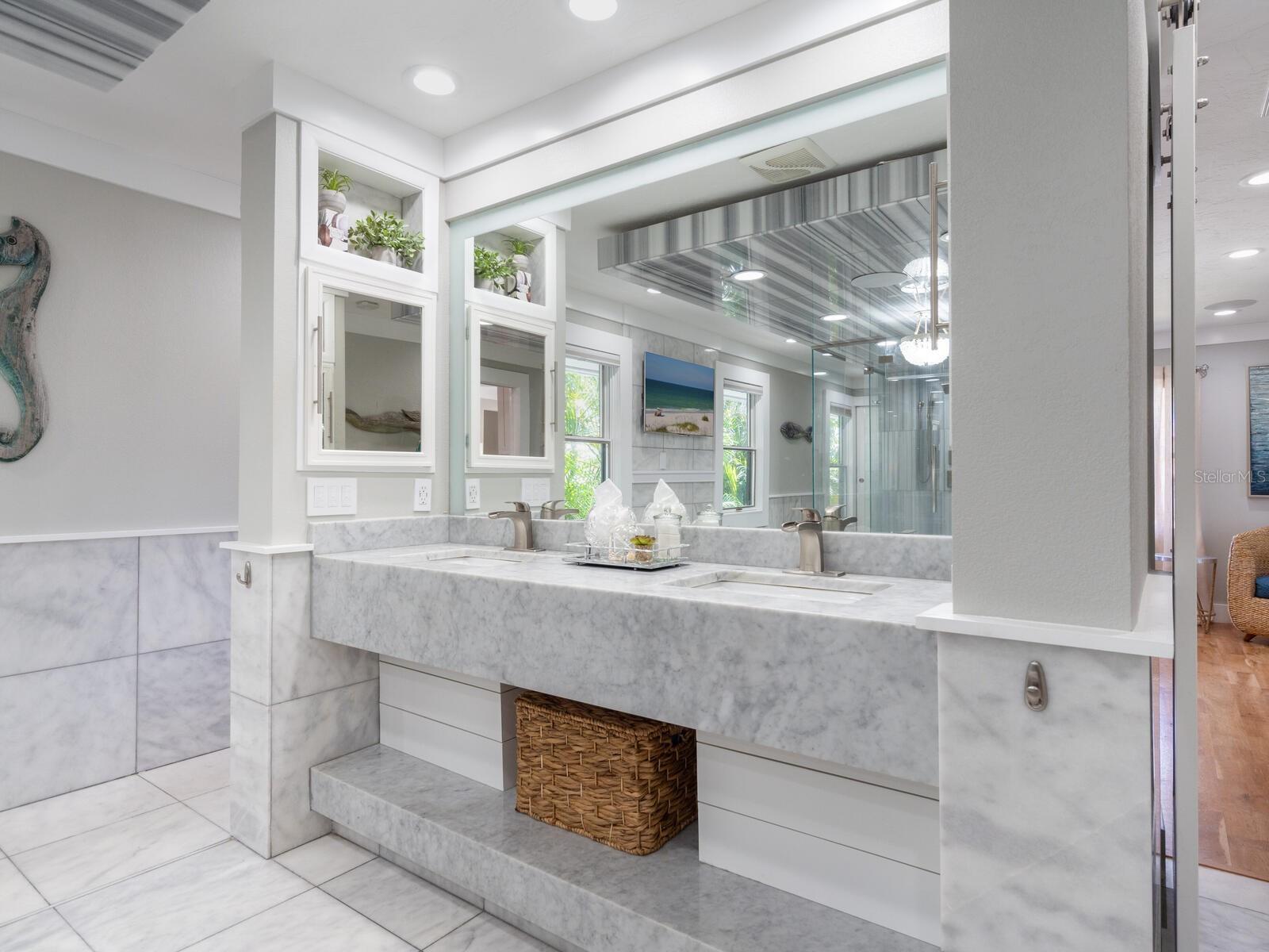 New pricing! Welcome to paradise found on Siesta Key, the epitome of coastal living. Situated on 108 feet of deep sailboat waterfront on the Grand Canal, this meticulously renovated 5,011 square-foot luxury home awaits you. With no fixed bridge and direct access to Roberts Bay and the Intracoastal Waterway, boating enthusiasts will appreciate the short trip to the azure waters of the Gulf of Mexico. As you step inside, prepare to be enchanted by stunning contemporary details and exquisite craftsmanship. The open floor plan seamlessly integrates with custom built-in cabinetry, natural cherry hardwood, and marble floors, exuding an ambiance of modern elegance. The heart of the home, the spectacular chef’s kitchen, is a culinary masterpiece. Featuring a vast center island with room for seating, coastal contemporary cabinetry, and luxurious Carrera marble countertops and backsplashes, it is equipped with top-of-the-line appliances, including a six-burner gas cooktop, plus dual wall ovens, dishwashers, and microwaves, and a pantry. The resident gourmand will entertain guests with ease. The adjacent dining room shares a marble-faced, double-sided fireplace with the living room and opens to an expansive terrace, creating an idyllic indoor/outdoor entertaining space perfect for waterfront al fresco dining under the stars. Retreat to the luxurious primary bedroom suite overlooking the waterway, while the split bedroom plan offers two additional guest suites on the main living level. An office, a half bath, and two laundry areas complete the upper level. The lower level beckons with a home theater/game room and two private guest suites, each with kitchenettes and a private entrance. Outside, indulge in your private resort-style amenities, including a waterfront pool and spa, an expansive covered lanai with an outdoor kitchen and bar seating, and a waterfront deck with a fabulous pergola – the perfect location for daily dolphin and manatee sightings. Surrounded by lush tropical landscaping, enjoy privacy and tranquility with maintenance-free lawn, and a well for irrigation. In the evening, landscape lighting creates a dazzling experience on the waterfront. The dock offers a 20,000-pound boat lift, two floating jet ski docks, electricity, water, and two showers, while a bait room provides secure storage for fishing equipment and pool toys. With its enviable location on Siesta Key, renowned for its world-class beaches and vibrant island lifestyle, this property offers an unparalleled experience of coastal luxury and island living. Close to Siesta Beach, Siesta Village, downtown Sarasota, St. Armands Circle, restaurants, shopping, Sarasota Memorial Hospital, and top-notch schools, this residence epitomizes the ideal island lifestyle in a prime Sarasota location. Don’t miss this opportunity to live every day like a vacation in paradise!
