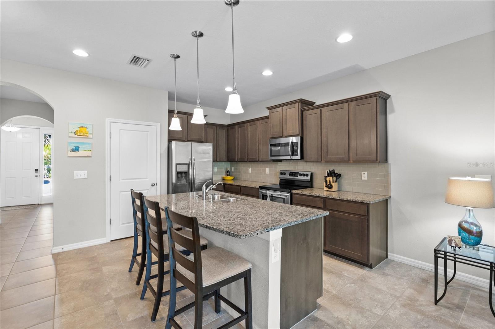 MOTIVATED SELLER! $20K PRICE IMPROVEMENT!!! Prepare to be impressed by this meticulously maintained townhome located in the Gated community of Promenade at Palmer Ranch. Built in 2018, this home features 3 bedrooms, 2.5 bathrooms, and 1724 s.f. of living space. This unit can be sold with most furniture (included in price) and shows like “brand new”, as the owners have only used it a few weeks a year since it was built, and it has never been rented. This townhome enjoys one of the best locations in the community and has a stunning preserve view with picturesque oak trees. The protected conservation view creates a relaxing and tranquil picture perfect back drop for you to enjoy right from your private screened lanai. The open concept first floor features beautiful tile flooring throughout, a powder bath for guests, and a generously sized storage closet beneath the staircase. The kitchen features granite counters – with lots of counter space, stainless steel appliances, and an oversized island with pendant lighting. Upstairs you will find an oversized master suite that overlooks the beautiful preserve view, 2 large closets, and an en-suite bathroom with dual sinks and a walk-in shower. The two additional bedrooms are both spacious, filled with natural light, and share a full bathroom featuring granite countertops. Convenient second floor laundry room with linen closet complete the space. The whole house water softener system with reverse osmosis drinking water in the kitchen helps to bring only the best and softest water right to every fixture in your home. Out your front door - just across the street - you will appreciate the convenient location of the sparkling community pool, resident pavilion (large covered entertaining space), as well as the community mailboxes. The attached one car garage, and double driveway afford ample parking options. This community offers easy access to Legacy Trail, I-75, shopping & dining options, and Siesta Key! It’s also zoned for top rated schools and features low HOA fees and no CDD fees! Move right in and start living in the heart of Palmer Ranch! Owners have done the process with FEMA and are NOT IN A FLOOD ZONE.