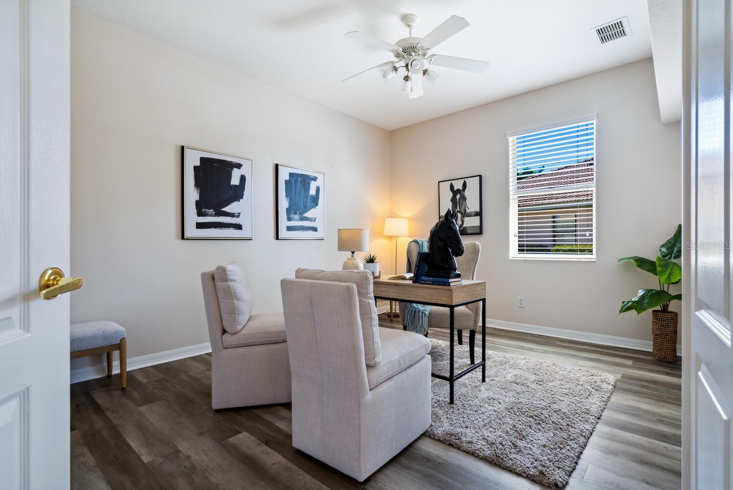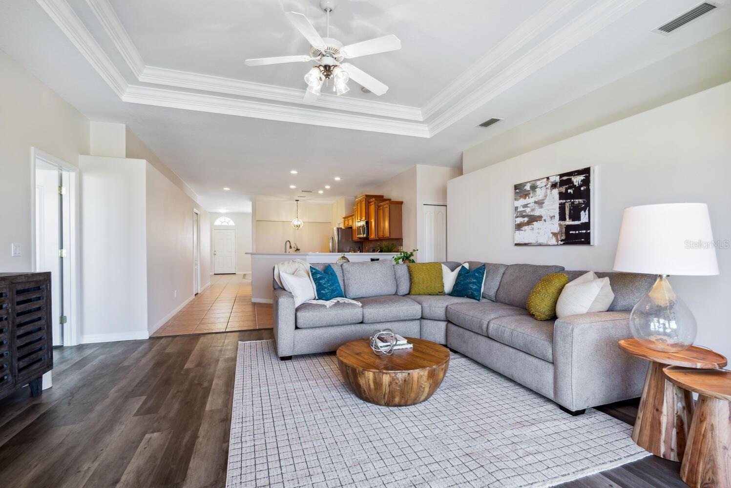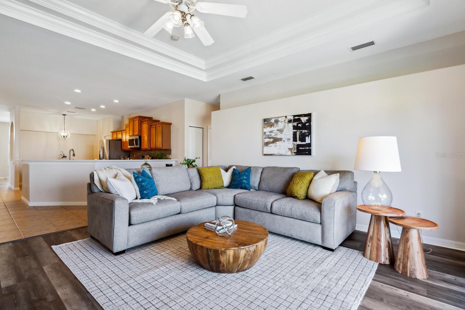 A rare find at this price in an upscale gated community with a full range of resort-style amenities amidst serene natural surroundings. As a Laurel Lakes resident you can enjoy the clubhouse, heated pool, fitness center, pickleball/tennis courts, engaging social activities and convenient access to all the greater Sarasota area has to offer. This light-filled 4 bedroom/2 bath Berkshire floorplan provides multiple living spaces for family and entertaining with its separate living/dining room, flex 4th bedroom, open kitchen/family room and screened lanai. The kitchen offers a breakfast bar, staggered wood cabinets, 5-burner gas range and a casual dining nook. Highlights of the family room are its double tray ceiling with crown molding and glass sliders that lead to the lanai for seamless indoor/outdoor living. The split-bedroom plan ensures privacy for the primary suite and 2 guest bedrooms, while the fourth bedroom with its double doors off the living room offers versatility as a home office or den. Additional features include ceramic tile and luxury vinyl plank floors throughout, a large laundry room with utility sink, 2-car garage, tile roof and hurricane shutters. An exceptional opportunity in a special community within minutes of shopping, restaurants, golf courses, museums, theater, parks, and Sarasota’s beautiful beaches.