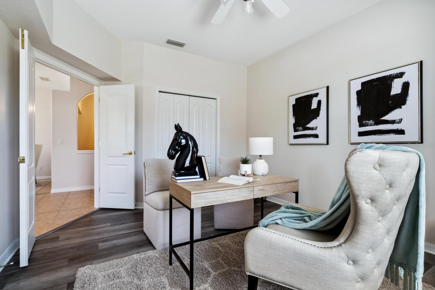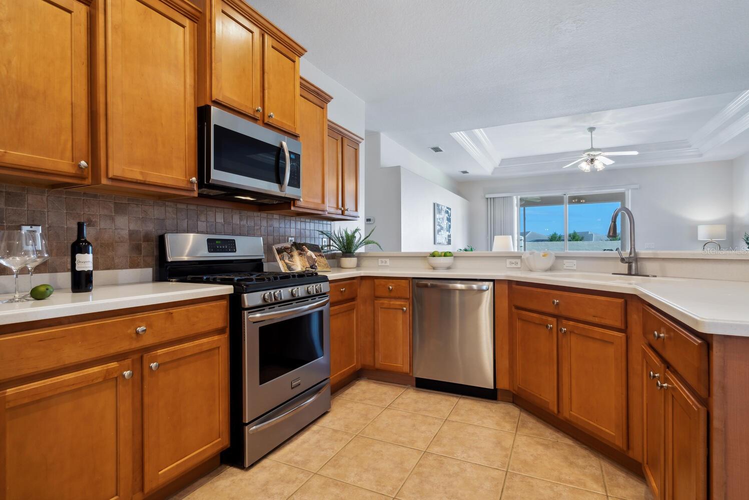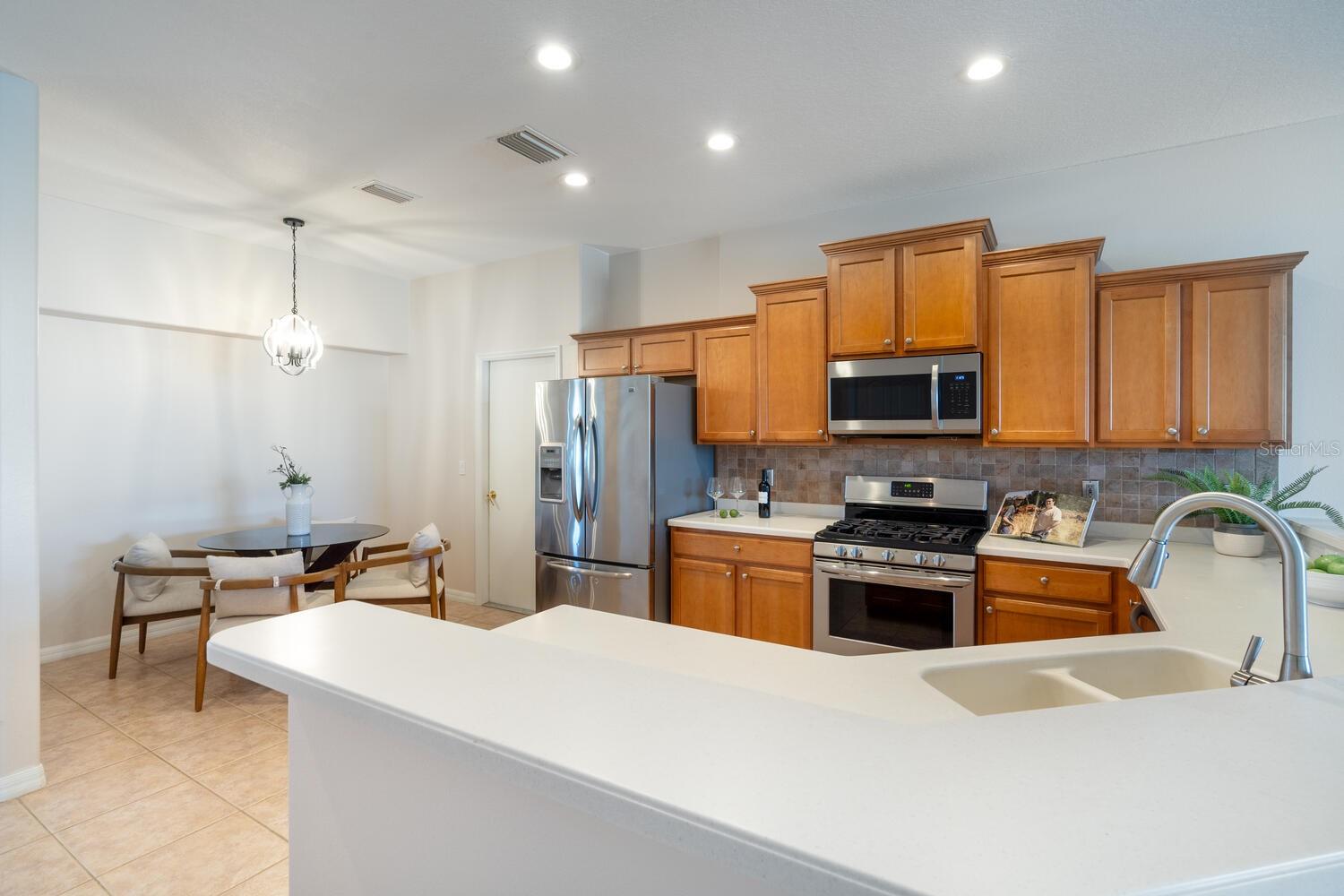 A rare find at this price in an upscale gated community with a full range of resort-style amenities amidst serene natural surroundings. As a Laurel Lakes resident you can enjoy the clubhouse, heated pool, fitness center, pickleball/tennis courts, engaging social activities and convenient access to all the greater Sarasota area has to offer. This light-filled 4 bedroom/2 bath Berkshire floorplan provides multiple living spaces for family and entertaining with its separate living/dining room, flex 4th bedroom, open kitchen/family room and screened lanai. The kitchen offers a breakfast bar, staggered wood cabinets, 5-burner gas range and a casual dining nook. Highlights of the family room are its double tray ceiling with crown molding and glass sliders that lead to the lanai for seamless indoor/outdoor living. The split-bedroom plan ensures privacy for the primary suite and 2 guest bedrooms, while the fourth bedroom with its double doors off the living room offers versatility as a home office or den. Additional features include ceramic tile and luxury vinyl plank floors throughout, a large laundry room with utility sink, 2-car garage, tile roof and hurricane shutters. An exceptional opportunity in a special community within minutes of shopping, restaurants, golf courses, museums, theater, parks, and Sarasota’s beautiful beaches.