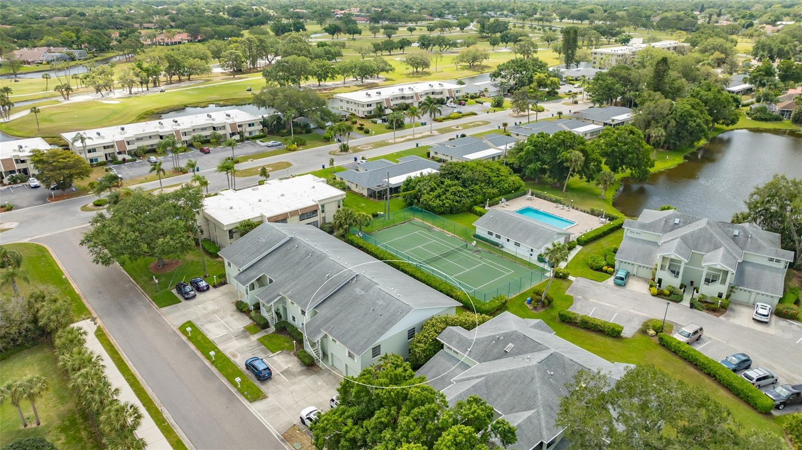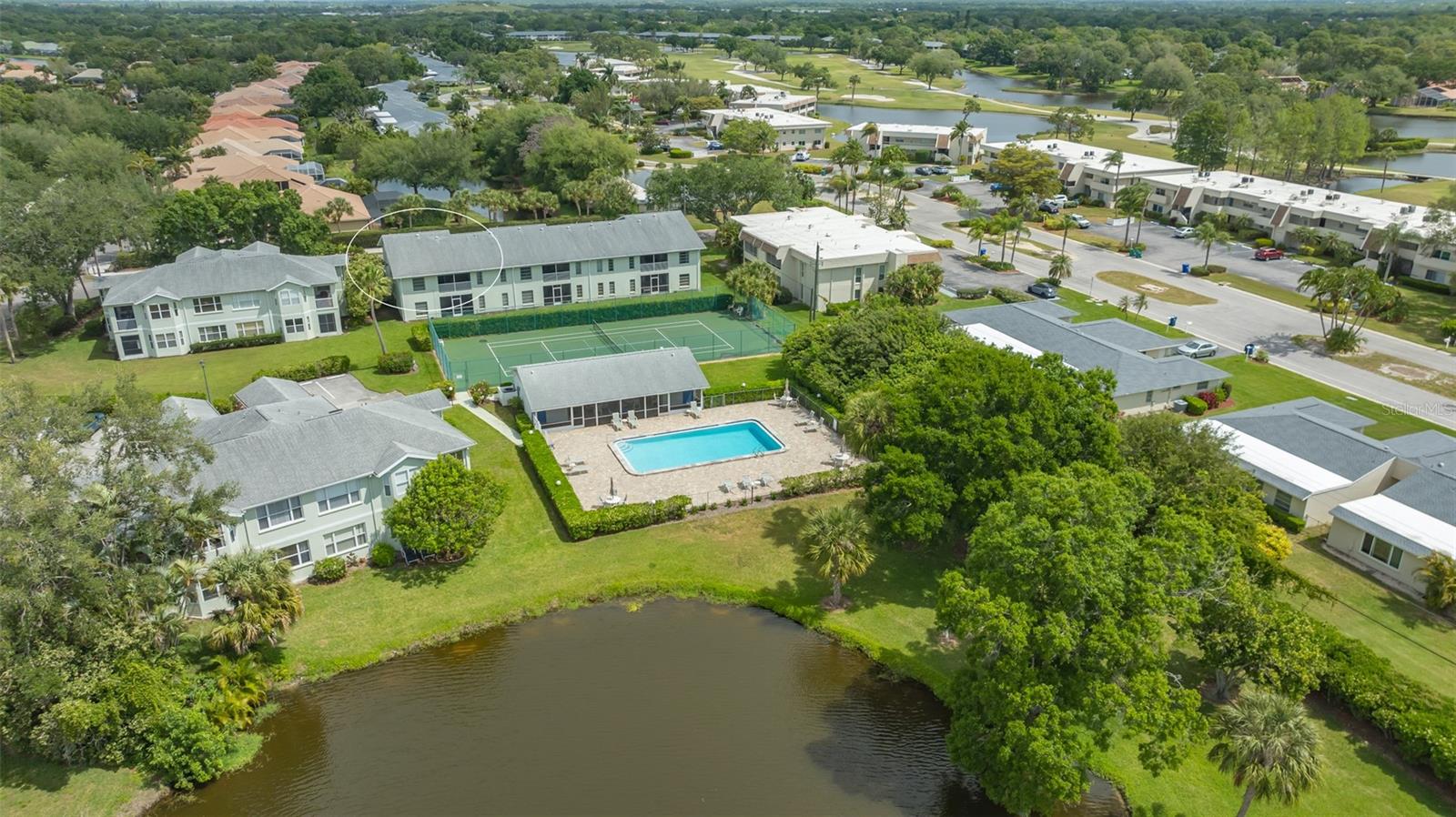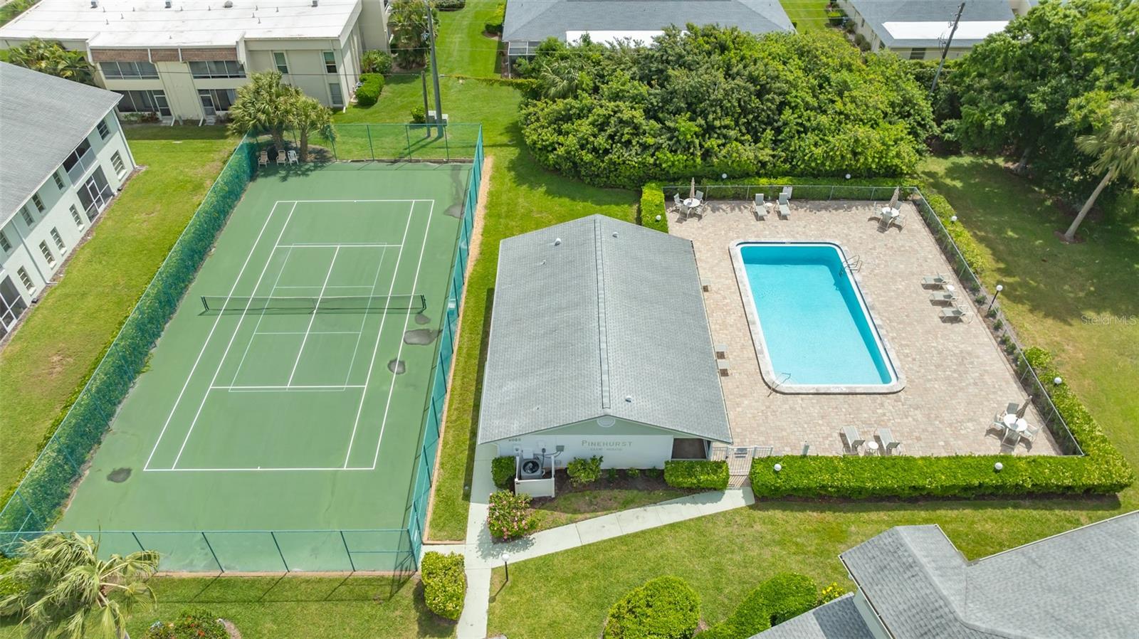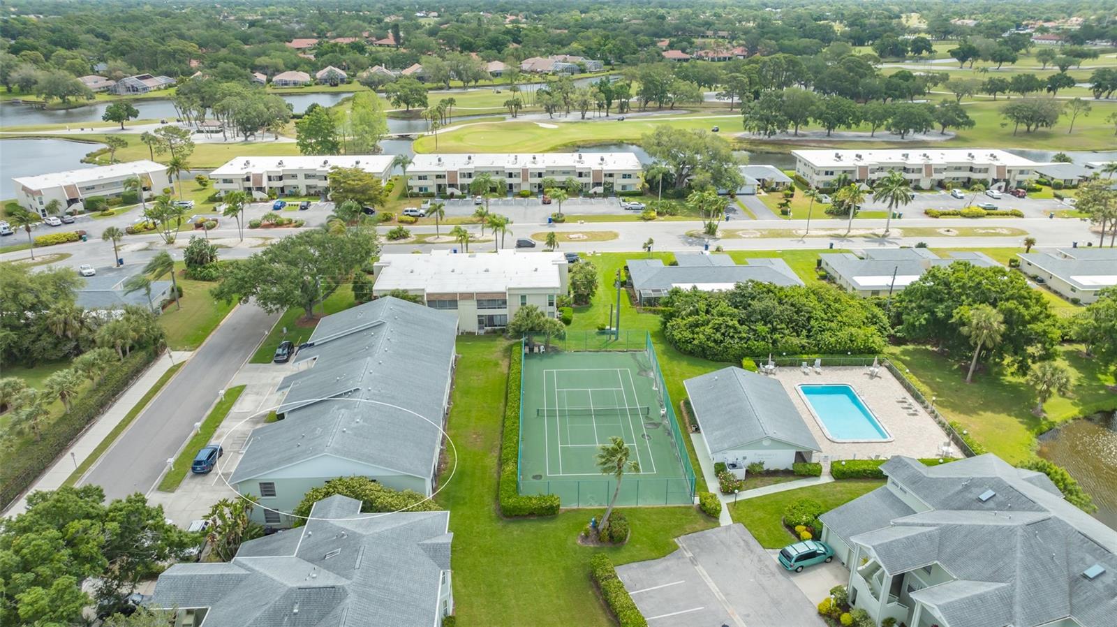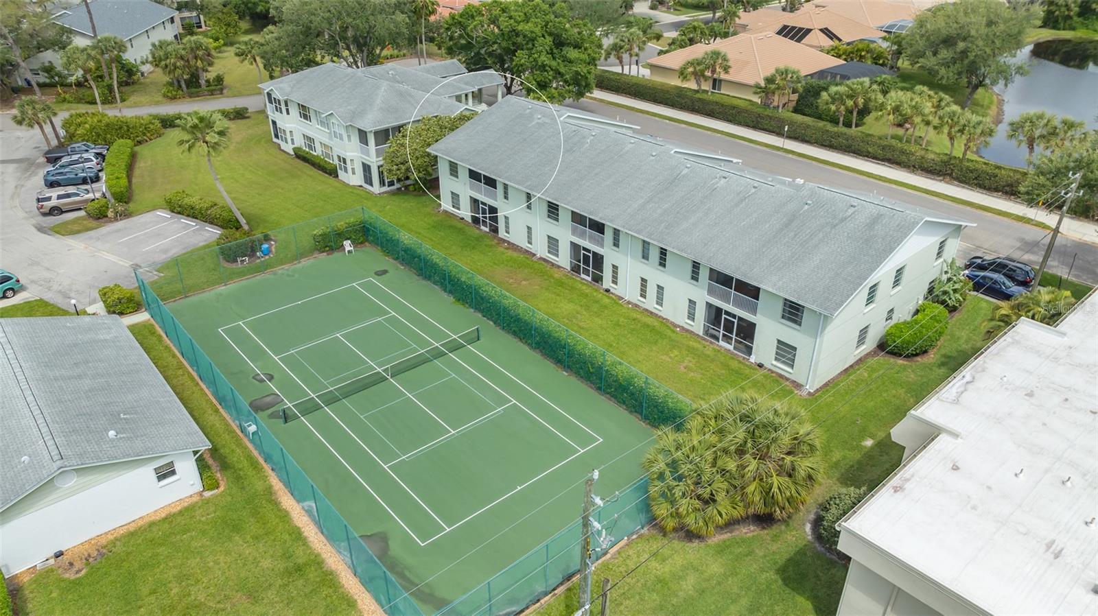 Welcome to your dream condominium in the heart of Pinehurst. This stunning condominium offers the ideal blend of modern amenities and serene surroundings for a busy family, while boasting convenience and charm. Enjoy a tranquil atmosphere with tennis court and water views, while being just minutes from local shops, restaurants and renowned golf courses. This condominium features cathedral ceilings, a spacious and open floor plan with ample natural light. The eat-in kitchen has a breakfast bar area, and beautiful wood butcher block countertops. The living room has cathedral ceilings, and great views of the tennis courts and lake. Adjacent to the enclosed screened lanai, which offers beautiful views, is a bonus home office or extra/fourth guest bedroom. The owner's suite features a large bedroom with an en-suite bath and walk-in closet. A single-car garage with an elevated storage area is attached on the ground level, and is great for organizing your golf clubs, bicycles or holiday items. Pinehurst is a secluded community adjacent to Palm Aire, and residents of Pinehurst may join the Country Club at Palm Aire where members enjoy the benefits of two golf courses, The Champions and The Lakes. Additionally, the club at Palm Aire offers tennis, pickleball, an athletic club, pro shops, plus various dining options. Exclusive shopping, restaurants and beaches are approximately 20 minutes away in downtown Sarasota, Lido Key beaches and St. Armands Circle.