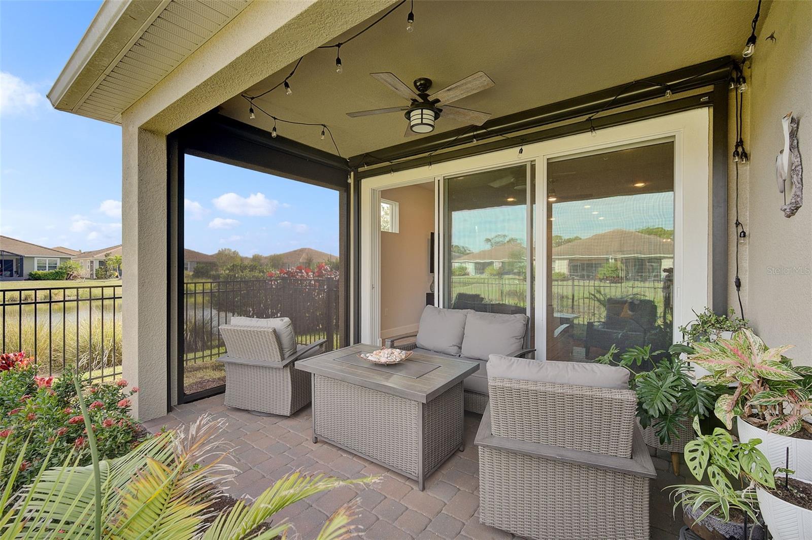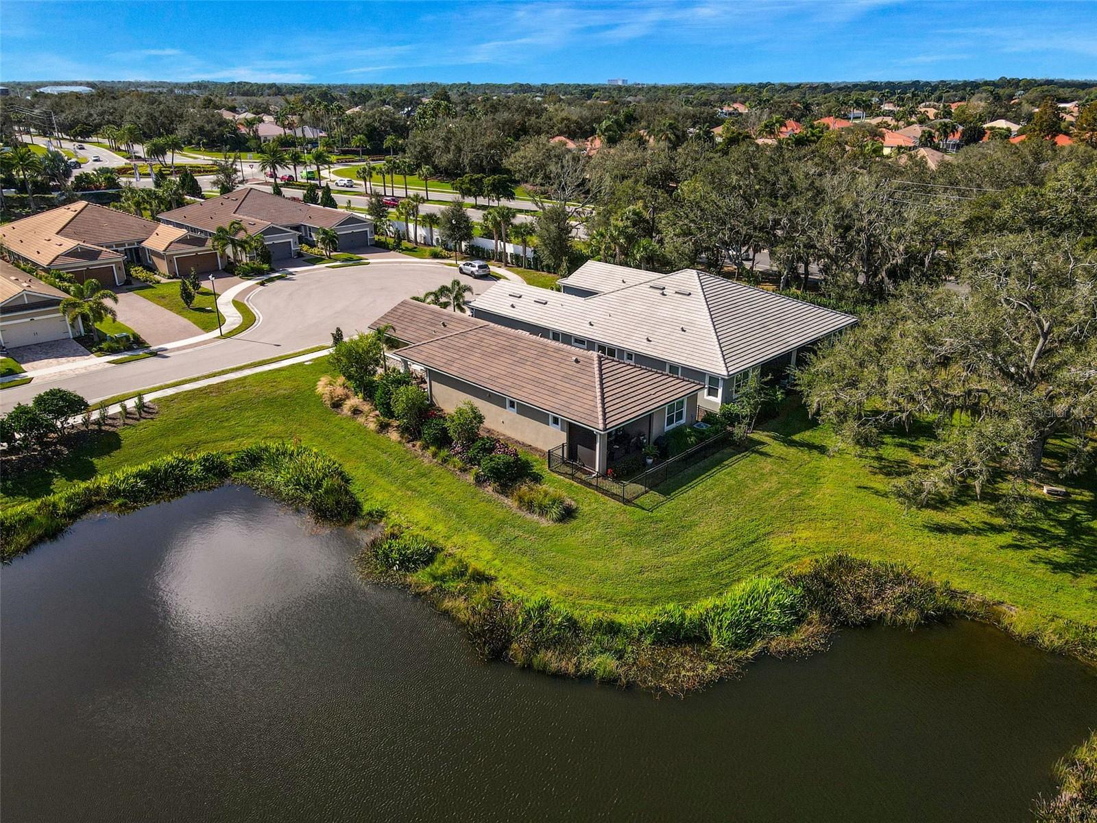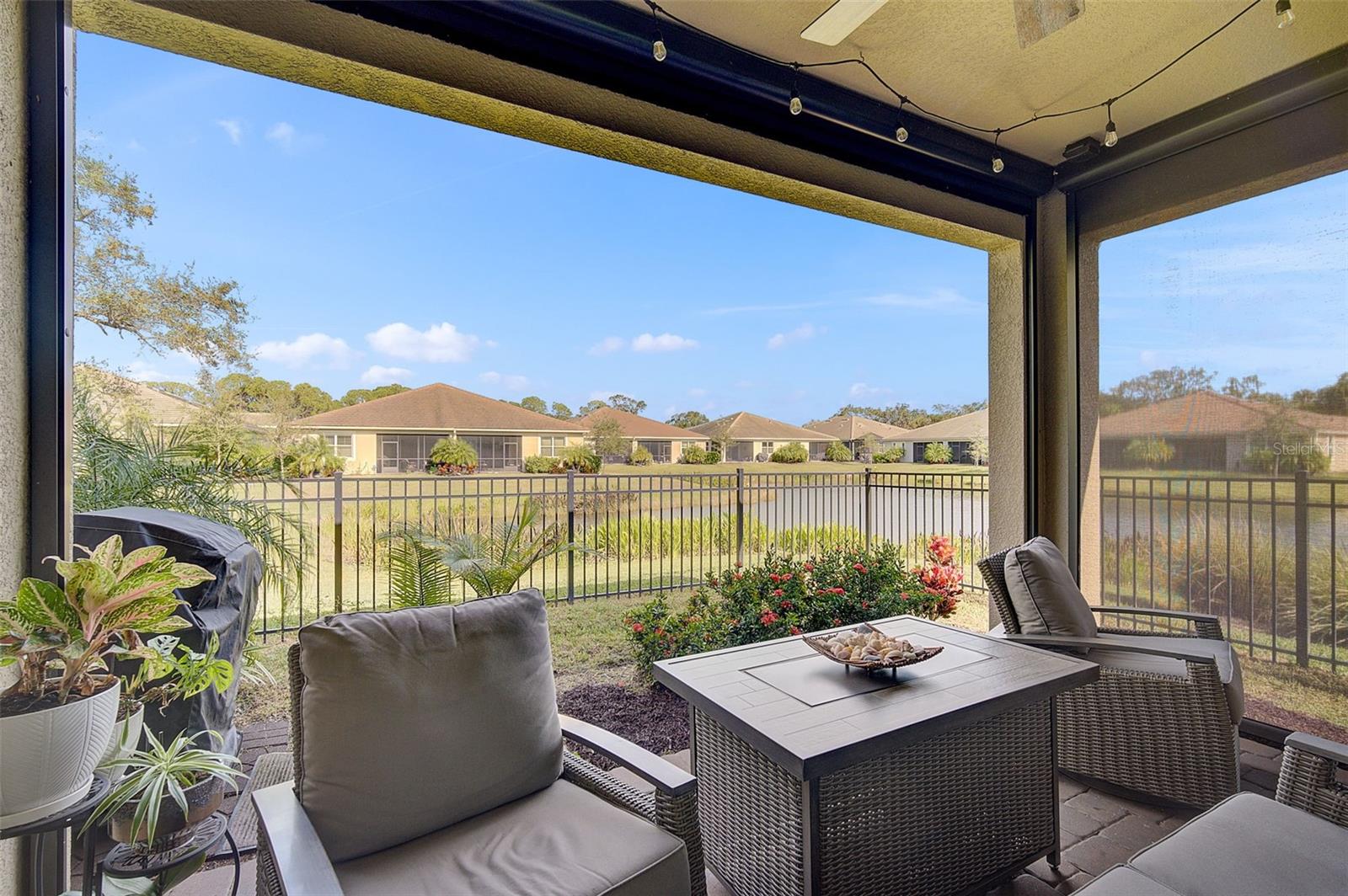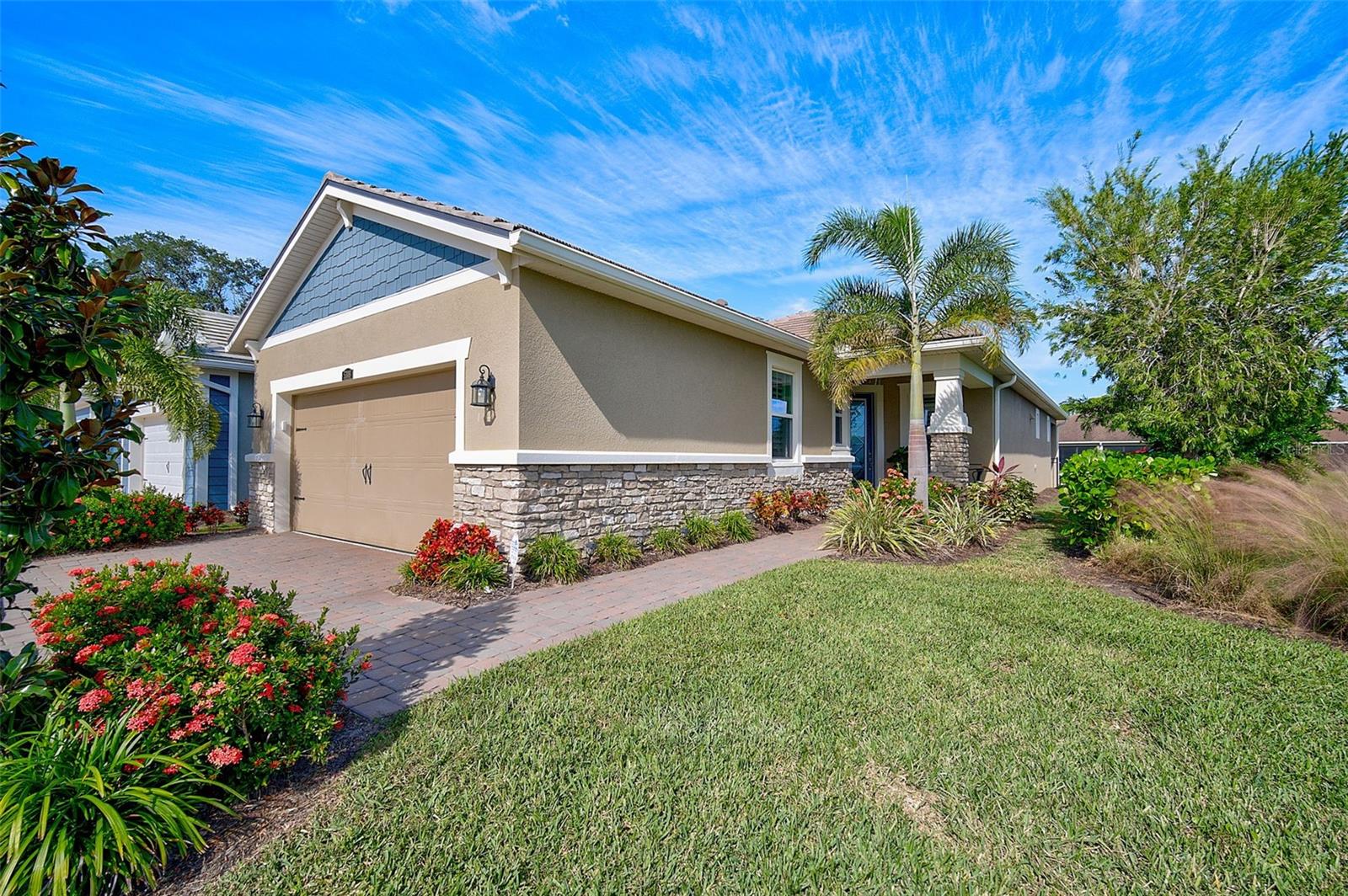 Seller may consider buyer concessions if made in an offer. ***NEW PRICE - MOTIVATED SELLERS - MAKE AN OFFER*** SUNRISE PRESERVE AT PALMER RANCH – Built in 2021 by Mattamy Homes, this 2 BEDROOM, 2 BATH. +DEN & 2 CAR GARAGE VILLA is PRISTINE & MOVE-IN READY NOW – NO NEED TO WAIT FOR NEW CONSTRUCTION! Comparable to Single Family Homes, this DETACHED, STAND-ALONE VILLA offers the best of both worlds – a single family home with the benefits of a villa! Sunrise Preserve is an AMENITY RICH COMMUNITY with a beautiful clubhouse, heated pool, fitness center, tennis and pickleball courts, an activities director, walking trails and more! In addition to all the amenities, the MONTHLY FEE for this home INCLUDES the ROOF, EXTERIOR PAINTING, EXTERIOR HAZARD INSURANCE, GROUNDS MAINTENANCE & IRRIGATION. Mattamy’s Coastway II floor plan is one of the largest of the villa floor plans in Sunrise Preserve and is highly coveted, yet rarely available. Situated on one of the many ponds and lakes in Sunrise Preserve, this home has beautiful greenbelt & water views - enjoy your morning coffee on the lanai overlooking the water while taking in a gorgeous sunrise! Great curb appeal with a cottage vibe and lush landscaping is just what you’d hope to see in a Florida home! A beautiful front door with a designer impact glass insert makes a great first impression and sets the tone for this contemporary style home. Upon entry into the foyer, you’ll find the flex room currently being used as an office. Continue to the main living area - an OPEN CONCEPT space – including the kitchen, dining room, and living room. The gourmet kitchen, with timeless 42” white shaker style cabinetry, quartz countertops, glass subway tile backsplash, and an expansive island with seating for four and a decorative tile front really compliments the clean, crisp look throughout this home. Stainless appliances include the side-by-side refrigerator, dishwasher, sink, microwave oven and gas range. PLANTATION SHUTTERS THROUGHOUT the home. The split floor plan offers you and your guests privacy with the 2nd bedroom and guest bathroom at the front of the home while the master suite is at the back of the home. Wood-look plank ceramic tile flooring runs throughout the main living areas of the home including the master bedroom with carpet in only the guest bedroom. Your master suite overlooks the lush greenbelt. With three windows, the master bedroom is light and bright! The ensuite master bathroom has a dual sink vanity, a spacious walk-in shower with built-in bench seat and a very generous custom California Closet with sliding barn door. The frameless glass shower door adds to the sleekness of this home. Three large sliding glass doors take you from the living room out to the lanai with brick pavers. Sellers prefer the unobstructed open view of the water and have installed electronic screens to drop down if needed. They’ve also installed an electronic wind abatement screen for the sliding glass doors as additional storm protection. If you have a dog, you’ll also appreciate the FENCED-IN DOGGY RUN sellers had installed. The laundry room, with sliding barn door, is equipped with a utility sink along with a washer & dryer. Sunrise Preserve offers resort-style living at its best and is conveniently located to the beautiful white sandy beaches of the Gulf of Mexico, shopping, dining, golfing, the Legacy Trail and has easy access to I75. Be sure to ASK FOR A COMPLETE LIST of HOME IMPROVEMENTS. VILLA IS BEING SOLD FURNISHED. DON’T WAIT - SCHEDULE A SHOWING TODAY!