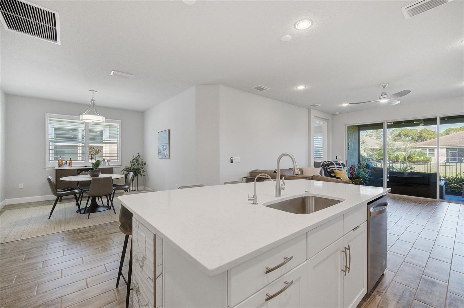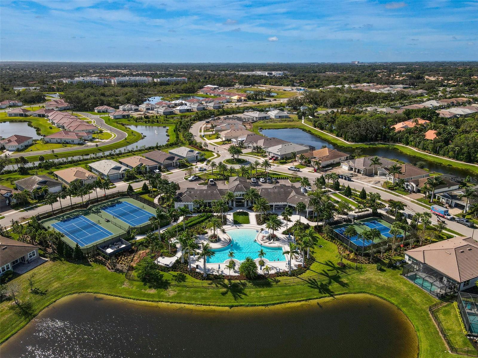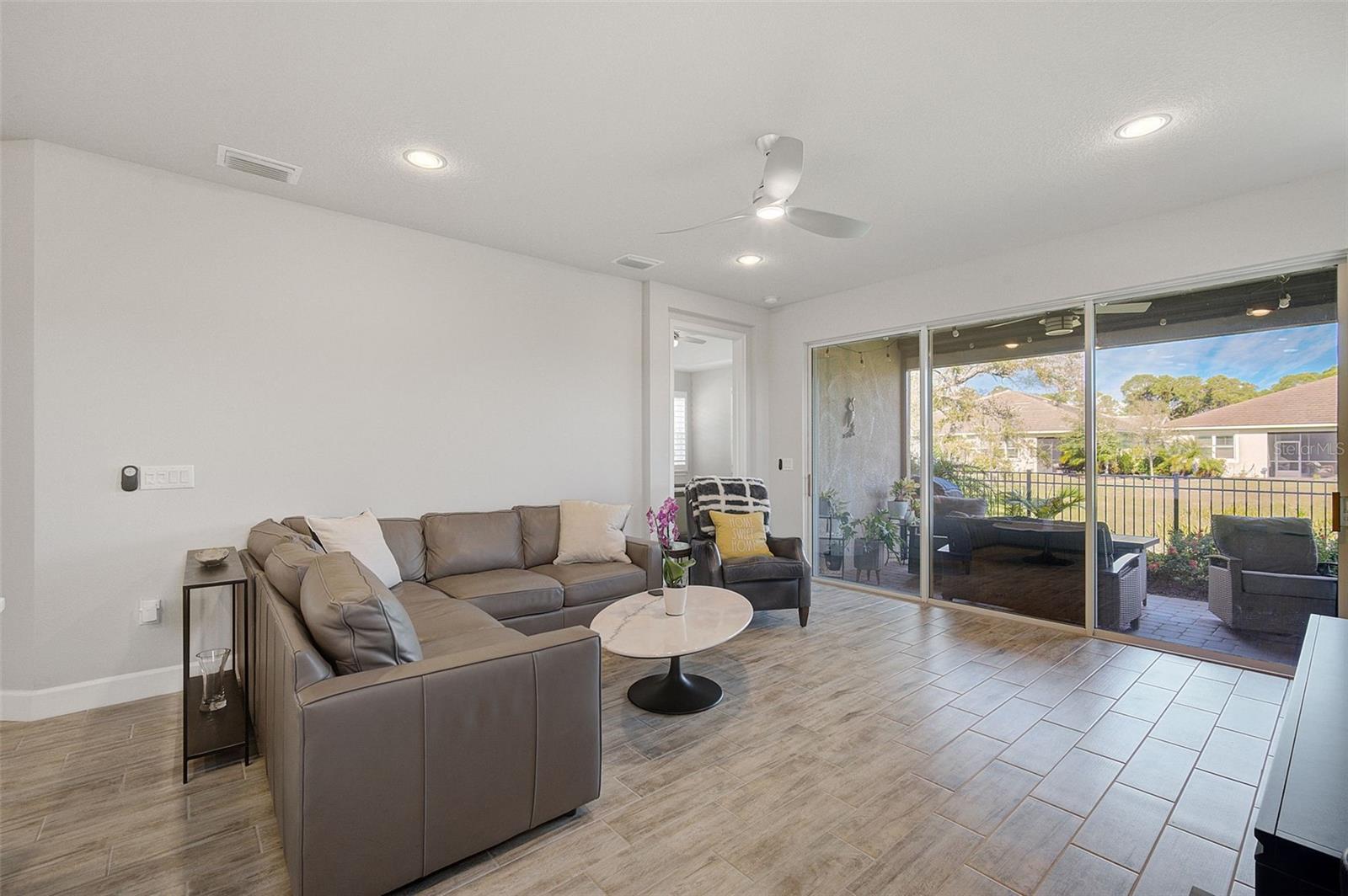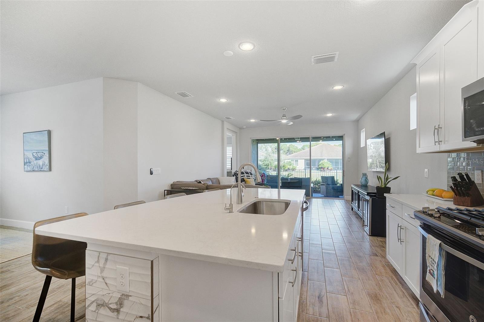 Seller may consider buyer concessions if made in an offer. ***NEW PRICE - MOTIVATED SELLERS - MAKE AN OFFER*** SUNRISE PRESERVE AT PALMER RANCH – Built in 2021 by Mattamy Homes, this 2 BEDROOM, 2 BATH. +DEN & 2 CAR GARAGE VILLA is PRISTINE & MOVE-IN READY NOW – NO NEED TO WAIT FOR NEW CONSTRUCTION! Comparable to Single Family Homes, this DETACHED, STAND-ALONE VILLA offers the best of both worlds – a single family home with the benefits of a villa! Sunrise Preserve is an AMENITY RICH COMMUNITY with a beautiful clubhouse, heated pool, fitness center, tennis and pickleball courts, an activities director, walking trails and more! In addition to all the amenities, the MONTHLY FEE for this home INCLUDES the ROOF, EXTERIOR PAINTING, EXTERIOR HAZARD INSURANCE, GROUNDS MAINTENANCE & IRRIGATION. Mattamy’s Coastway II floor plan is one of the largest of the villa floor plans in Sunrise Preserve and is highly coveted, yet rarely available. Situated on one of the many ponds and lakes in Sunrise Preserve, this home has beautiful greenbelt & water views - enjoy your morning coffee on the lanai overlooking the water while taking in a gorgeous sunrise! Great curb appeal with a cottage vibe and lush landscaping is just what you’d hope to see in a Florida home! A beautiful front door with a designer impact glass insert makes a great first impression and sets the tone for this contemporary style home. Upon entry into the foyer, you’ll find the flex room currently being used as an office. Continue to the main living area - an OPEN CONCEPT space – including the kitchen, dining room, and living room. The gourmet kitchen, with timeless 42” white shaker style cabinetry, quartz countertops, glass subway tile backsplash, and an expansive island with seating for four and a decorative tile front really compliments the clean, crisp look throughout this home. Stainless appliances include the side-by-side refrigerator, dishwasher, sink, microwave oven and gas range. PLANTATION SHUTTERS THROUGHOUT the home. The split floor plan offers you and your guests privacy with the 2nd bedroom and guest bathroom at the front of the home while the master suite is at the back of the home. Wood-look plank ceramic tile flooring runs throughout the main living areas of the home including the master bedroom with carpet in only the guest bedroom. Your master suite overlooks the lush greenbelt. With three windows, the master bedroom is light and bright! The ensuite master bathroom has a dual sink vanity, a spacious walk-in shower with built-in bench seat and a very generous custom California Closet with sliding barn door. The frameless glass shower door adds to the sleekness of this home. Three large sliding glass doors take you from the living room out to the lanai with brick pavers. Sellers prefer the unobstructed open view of the water and have installed electronic screens to drop down if needed. They’ve also installed an electronic wind abatement screen for the sliding glass doors as additional storm protection. If you have a dog, you’ll also appreciate the FENCED-IN DOGGY RUN sellers had installed. The laundry room, with sliding barn door, is equipped with a utility sink along with a washer & dryer. Sunrise Preserve offers resort-style living at its best and is conveniently located to the beautiful white sandy beaches of the Gulf of Mexico, shopping, dining, golfing, the Legacy Trail and has easy access to I75. Be sure to ASK FOR A COMPLETE LIST of HOME IMPROVEMENTS. VILLA IS BEING SOLD FURNISHED. DON’T WAIT - SCHEDULE A SHOWING TODAY!