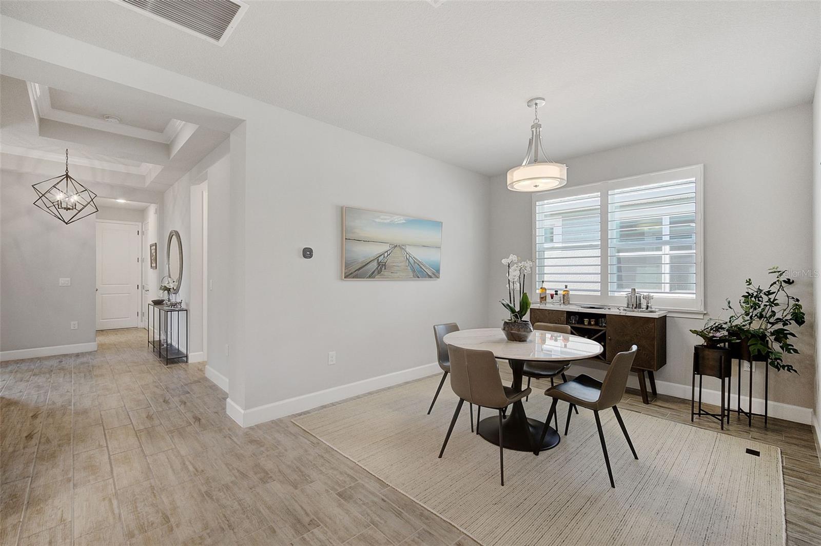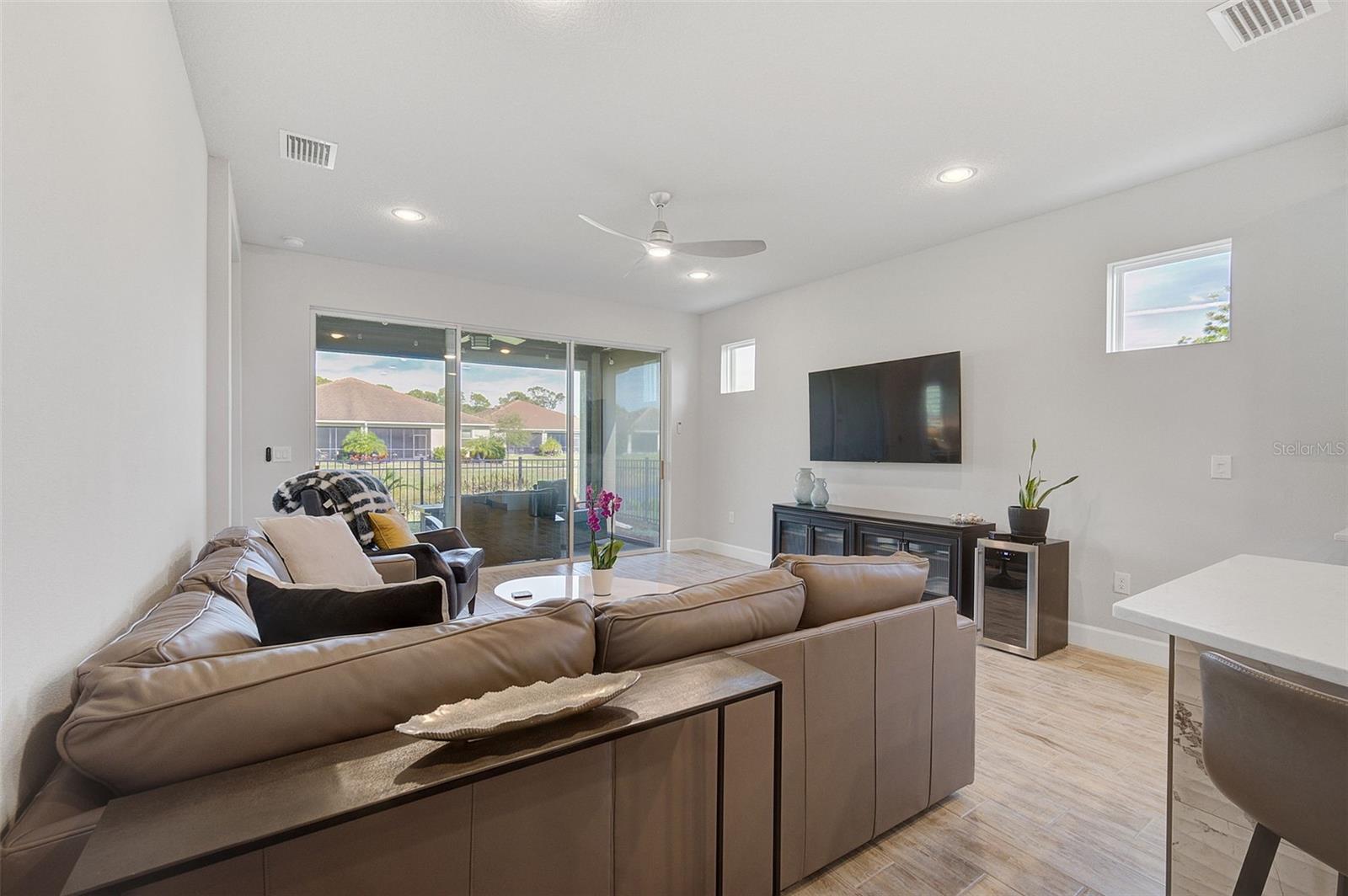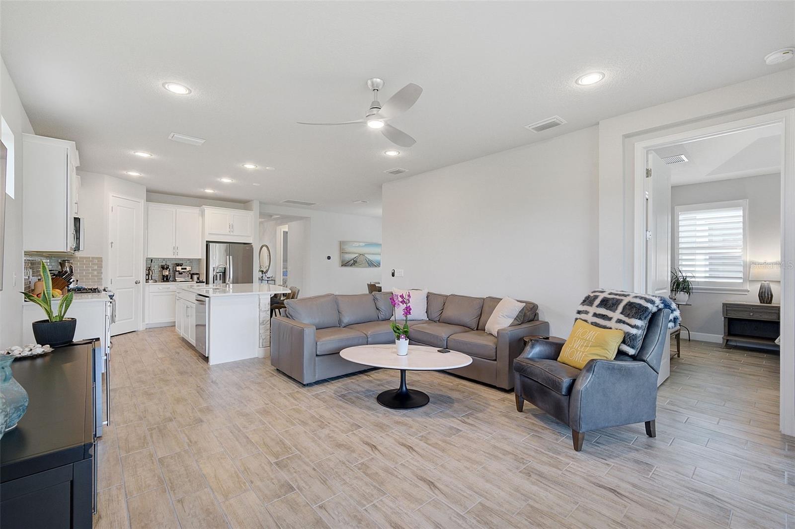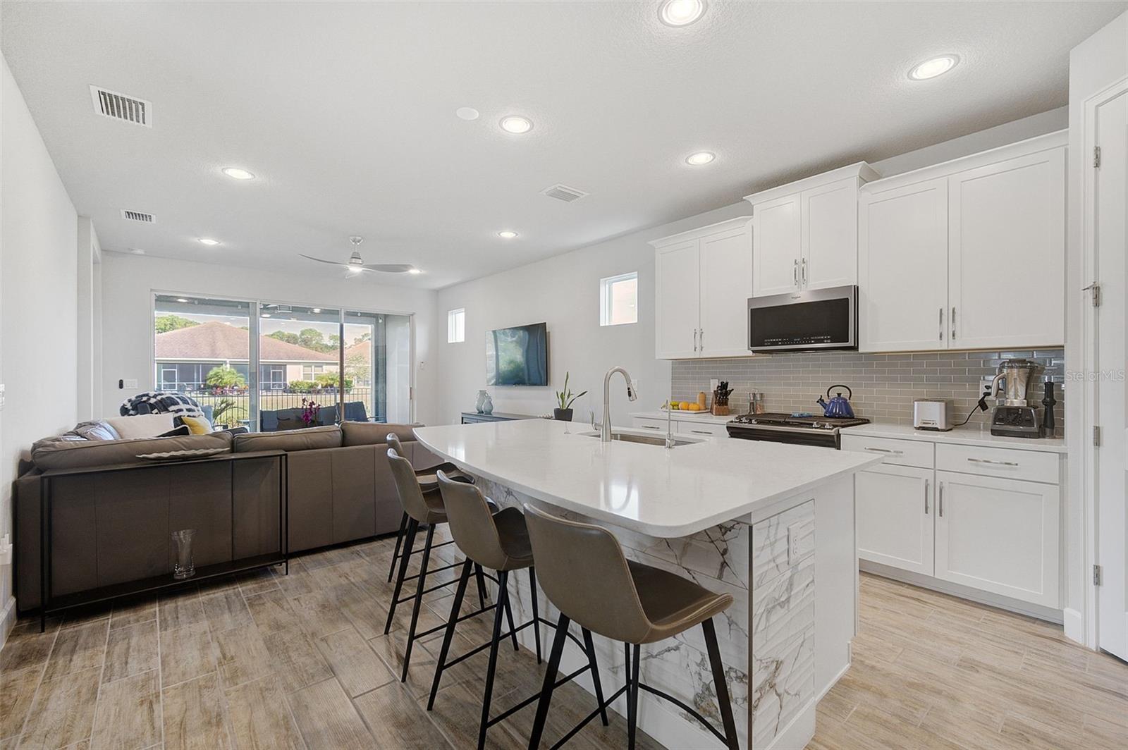 Seller may consider buyer concessions if made in an offer. ***NEW PRICE - MOTIVATED SELLERS - MAKE AN OFFER*** SUNRISE PRESERVE AT PALMER RANCH – Built in 2021 by Mattamy Homes, this 2 BEDROOM, 2 BATH. +DEN & 2 CAR GARAGE VILLA is PRISTINE & MOVE-IN READY NOW – NO NEED TO WAIT FOR NEW CONSTRUCTION! Comparable to Single Family Homes, this DETACHED, STAND-ALONE VILLA offers the best of both worlds – a single family home with the benefits of a villa! Sunrise Preserve is an AMENITY RICH COMMUNITY with a beautiful clubhouse, heated pool, fitness center, tennis and pickleball courts, an activities director, walking trails and more! In addition to all the amenities, the MONTHLY FEE for this home INCLUDES the ROOF, EXTERIOR PAINTING, EXTERIOR HAZARD INSURANCE, GROUNDS MAINTENANCE & IRRIGATION. Mattamy’s Coastway II floor plan is one of the largest of the villa floor plans in Sunrise Preserve and is highly coveted, yet rarely available. Situated on one of the many ponds and lakes in Sunrise Preserve, this home has beautiful greenbelt & water views - enjoy your morning coffee on the lanai overlooking the water while taking in a gorgeous sunrise! Great curb appeal with a cottage vibe and lush landscaping is just what you’d hope to see in a Florida home! A beautiful front door with a designer impact glass insert makes a great first impression and sets the tone for this contemporary style home. Upon entry into the foyer, you’ll find the flex room currently being used as an office. Continue to the main living area - an OPEN CONCEPT space – including the kitchen, dining room, and living room. The gourmet kitchen, with timeless 42” white shaker style cabinetry, quartz countertops, glass subway tile backsplash, and an expansive island with seating for four and a decorative tile front really compliments the clean, crisp look throughout this home. Stainless appliances include the side-by-side refrigerator, dishwasher, sink, microwave oven and gas range. PLANTATION SHUTTERS THROUGHOUT the home. The split floor plan offers you and your guests privacy with the 2nd bedroom and guest bathroom at the front of the home while the master suite is at the back of the home. Wood-look plank ceramic tile flooring runs throughout the main living areas of the home including the master bedroom with carpet in only the guest bedroom. Your master suite overlooks the lush greenbelt. With three windows, the master bedroom is light and bright! The ensuite master bathroom has a dual sink vanity, a spacious walk-in shower with built-in bench seat and a very generous custom California Closet with sliding barn door. The frameless glass shower door adds to the sleekness of this home. Three large sliding glass doors take you from the living room out to the lanai with brick pavers. Sellers prefer the unobstructed open view of the water and have installed electronic screens to drop down if needed. They’ve also installed an electronic wind abatement screen for the sliding glass doors as additional storm protection. If you have a dog, you’ll also appreciate the FENCED-IN DOGGY RUN sellers had installed. The laundry room, with sliding barn door, is equipped with a utility sink along with a washer & dryer. Sunrise Preserve offers resort-style living at its best and is conveniently located to the beautiful white sandy beaches of the Gulf of Mexico, shopping, dining, golfing, the Legacy Trail and has easy access to I75. Be sure to ASK FOR A COMPLETE LIST of HOME IMPROVEMENTS. VILLA IS BEING SOLD FURNISHED. DON’T WAIT - SCHEDULE A SHOWING TODAY!