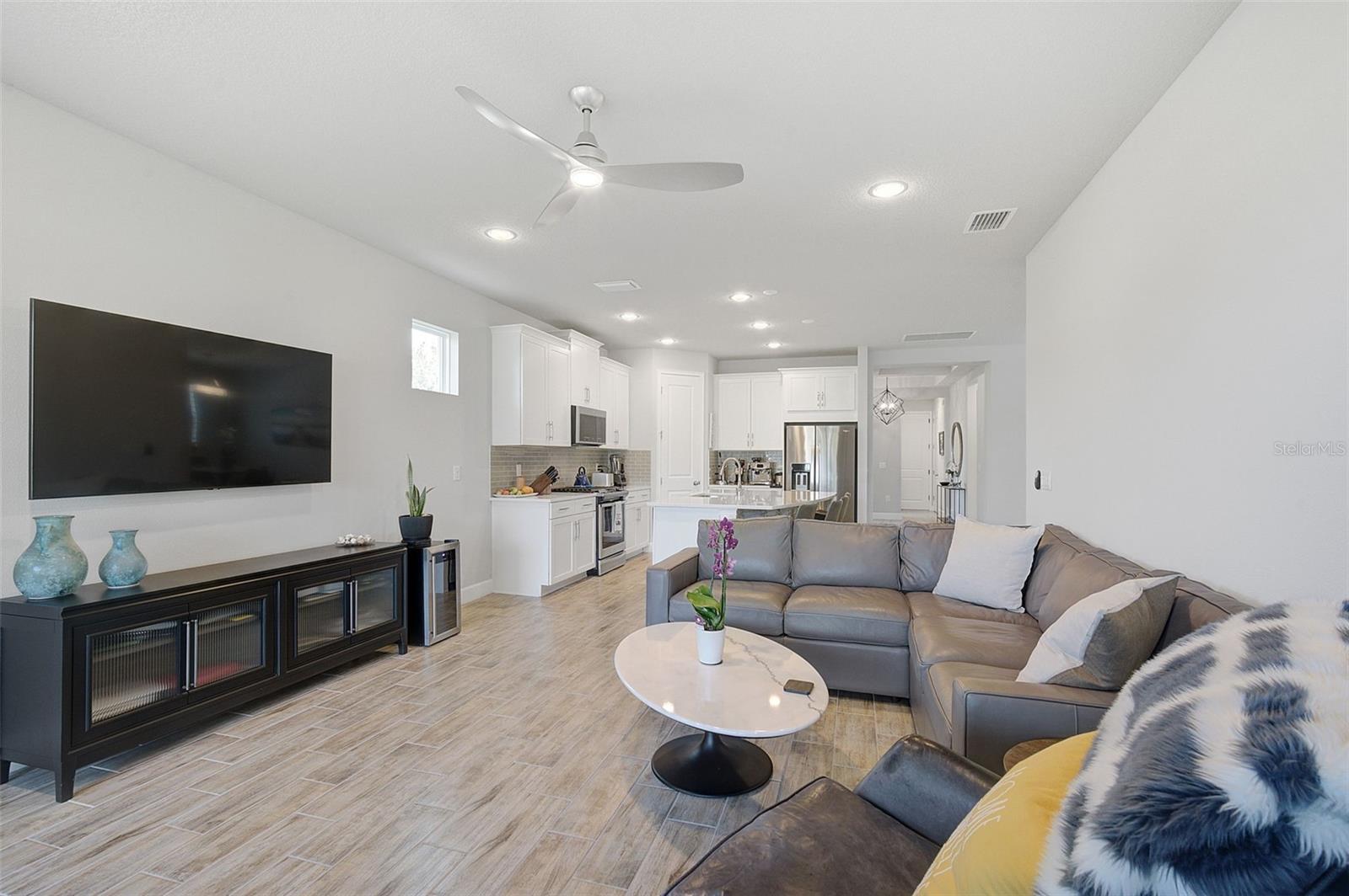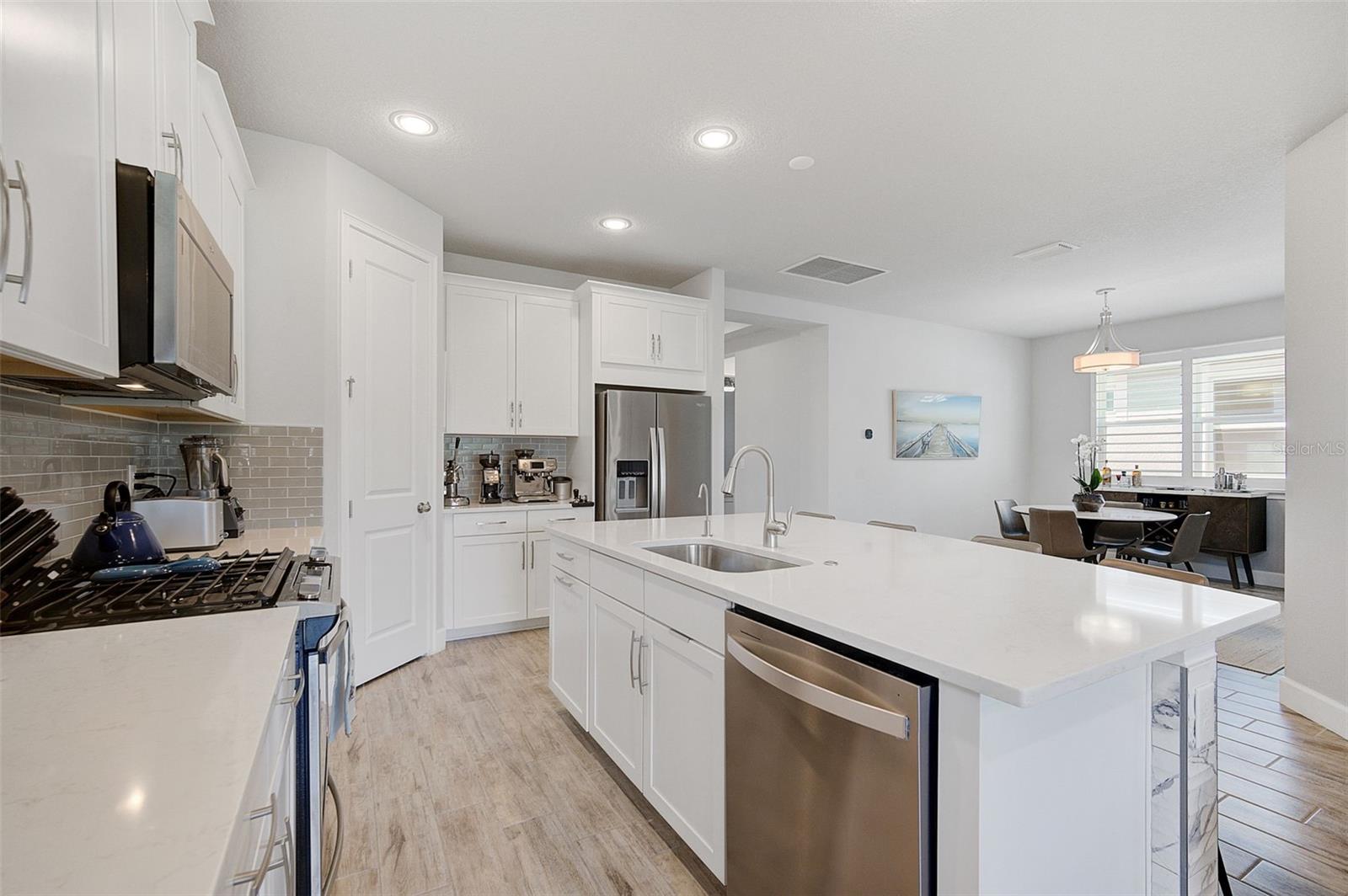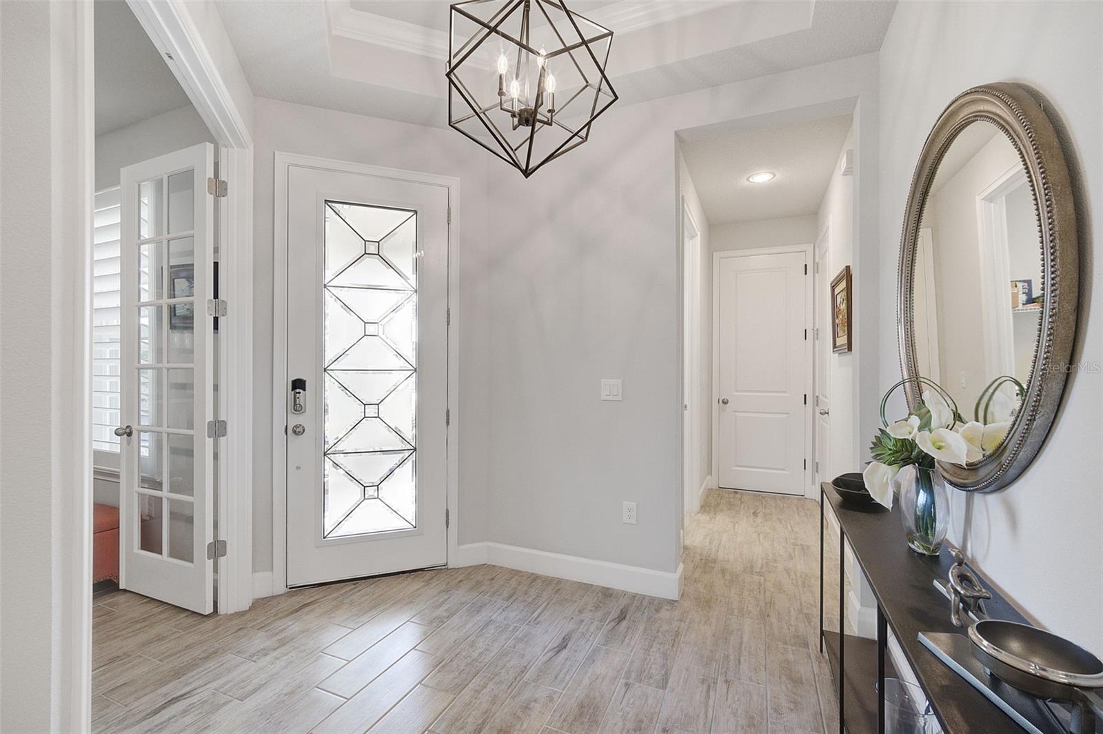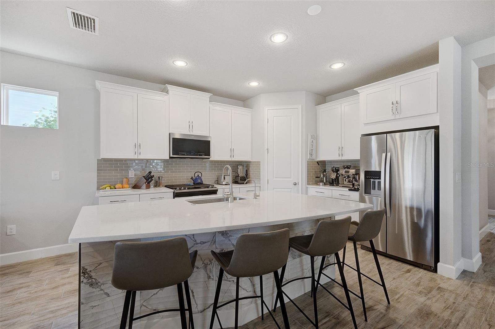 Seller may consider buyer concessions if made in an offer. ***NEW PRICE - MOTIVATED SELLERS - MAKE AN OFFER*** SUNRISE PRESERVE AT PALMER RANCH – Built in 2021 by Mattamy Homes, this 2 BEDROOM, 2 BATH. +DEN & 2 CAR GARAGE VILLA is PRISTINE & MOVE-IN READY NOW – NO NEED TO WAIT FOR NEW CONSTRUCTION! Comparable to Single Family Homes, this DETACHED, STAND-ALONE VILLA offers the best of both worlds – a single family home with the benefits of a villa! Sunrise Preserve is an AMENITY RICH COMMUNITY with a beautiful clubhouse, heated pool, fitness center, tennis and pickleball courts, an activities director, walking trails and more! In addition to all the amenities, the MONTHLY FEE for this home INCLUDES the ROOF, EXTERIOR PAINTING, EXTERIOR HAZARD INSURANCE, GROUNDS MAINTENANCE & IRRIGATION. Mattamy’s Coastway II floor plan is one of the largest of the villa floor plans in Sunrise Preserve and is highly coveted, yet rarely available. Situated on one of the many ponds and lakes in Sunrise Preserve, this home has beautiful greenbelt & water views - enjoy your morning coffee on the lanai overlooking the water while taking in a gorgeous sunrise! Great curb appeal with a cottage vibe and lush landscaping is just what you’d hope to see in a Florida home! A beautiful front door with a designer impact glass insert makes a great first impression and sets the tone for this contemporary style home. Upon entry into the foyer, you’ll find the flex room currently being used as an office. Continue to the main living area - an OPEN CONCEPT space – including the kitchen, dining room, and living room. The gourmet kitchen, with timeless 42” white shaker style cabinetry, quartz countertops, glass subway tile backsplash, and an expansive island with seating for four and a decorative tile front really compliments the clean, crisp look throughout this home. Stainless appliances include the side-by-side refrigerator, dishwasher, sink, microwave oven and gas range. PLANTATION SHUTTERS THROUGHOUT the home. The split floor plan offers you and your guests privacy with the 2nd bedroom and guest bathroom at the front of the home while the master suite is at the back of the home. Wood-look plank ceramic tile flooring runs throughout the main living areas of the home including the master bedroom with carpet in only the guest bedroom. Your master suite overlooks the lush greenbelt. With three windows, the master bedroom is light and bright! The ensuite master bathroom has a dual sink vanity, a spacious walk-in shower with built-in bench seat and a very generous custom California Closet with sliding barn door. The frameless glass shower door adds to the sleekness of this home. Three large sliding glass doors take you from the living room out to the lanai with brick pavers. Sellers prefer the unobstructed open view of the water and have installed electronic screens to drop down if needed. They’ve also installed an electronic wind abatement screen for the sliding glass doors as additional storm protection. If you have a dog, you’ll also appreciate the FENCED-IN DOGGY RUN sellers had installed. The laundry room, with sliding barn door, is equipped with a utility sink along with a washer & dryer. Sunrise Preserve offers resort-style living at its best and is conveniently located to the beautiful white sandy beaches of the Gulf of Mexico, shopping, dining, golfing, the Legacy Trail and has easy access to I75. Be sure to ASK FOR A COMPLETE LIST of HOME IMPROVEMENTS. VILLA IS BEING SOLD FURNISHED. DON’T WAIT - SCHEDULE A SHOWING TODAY!