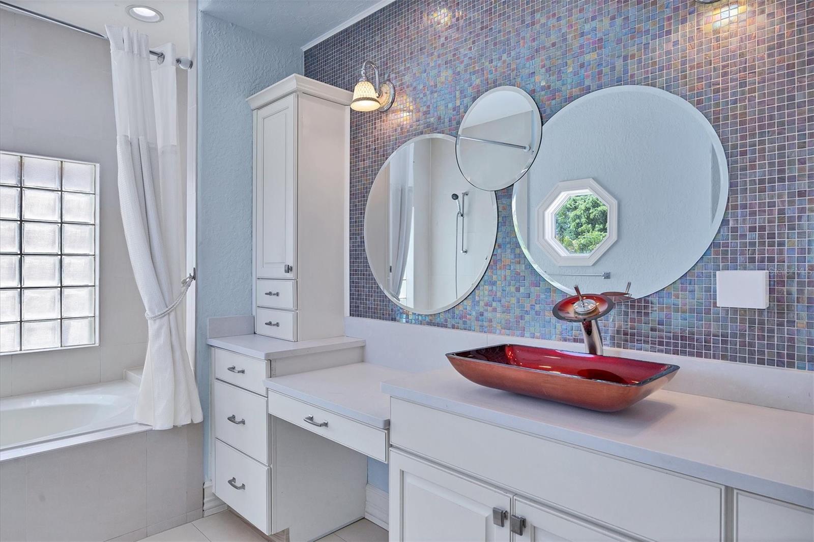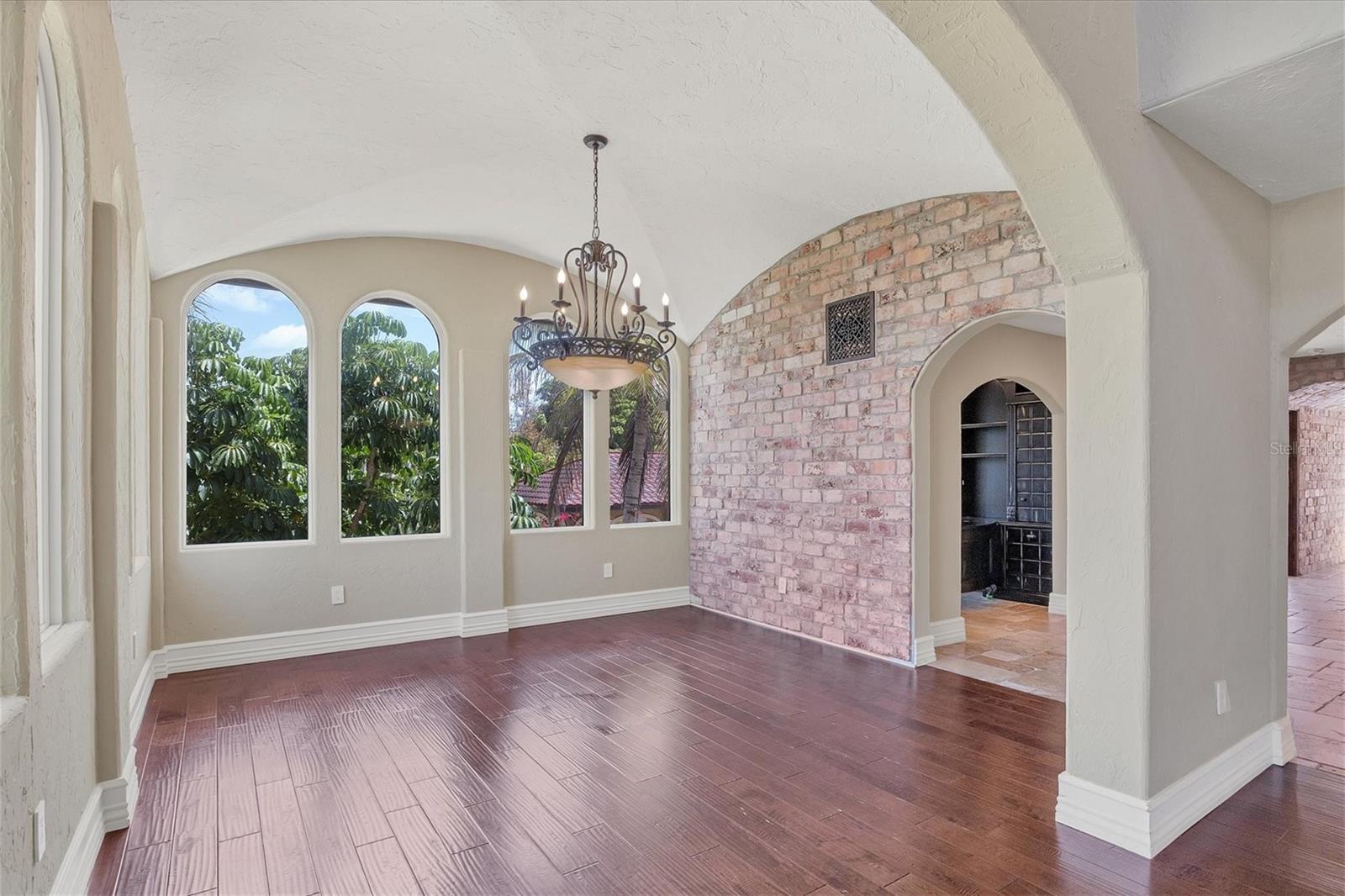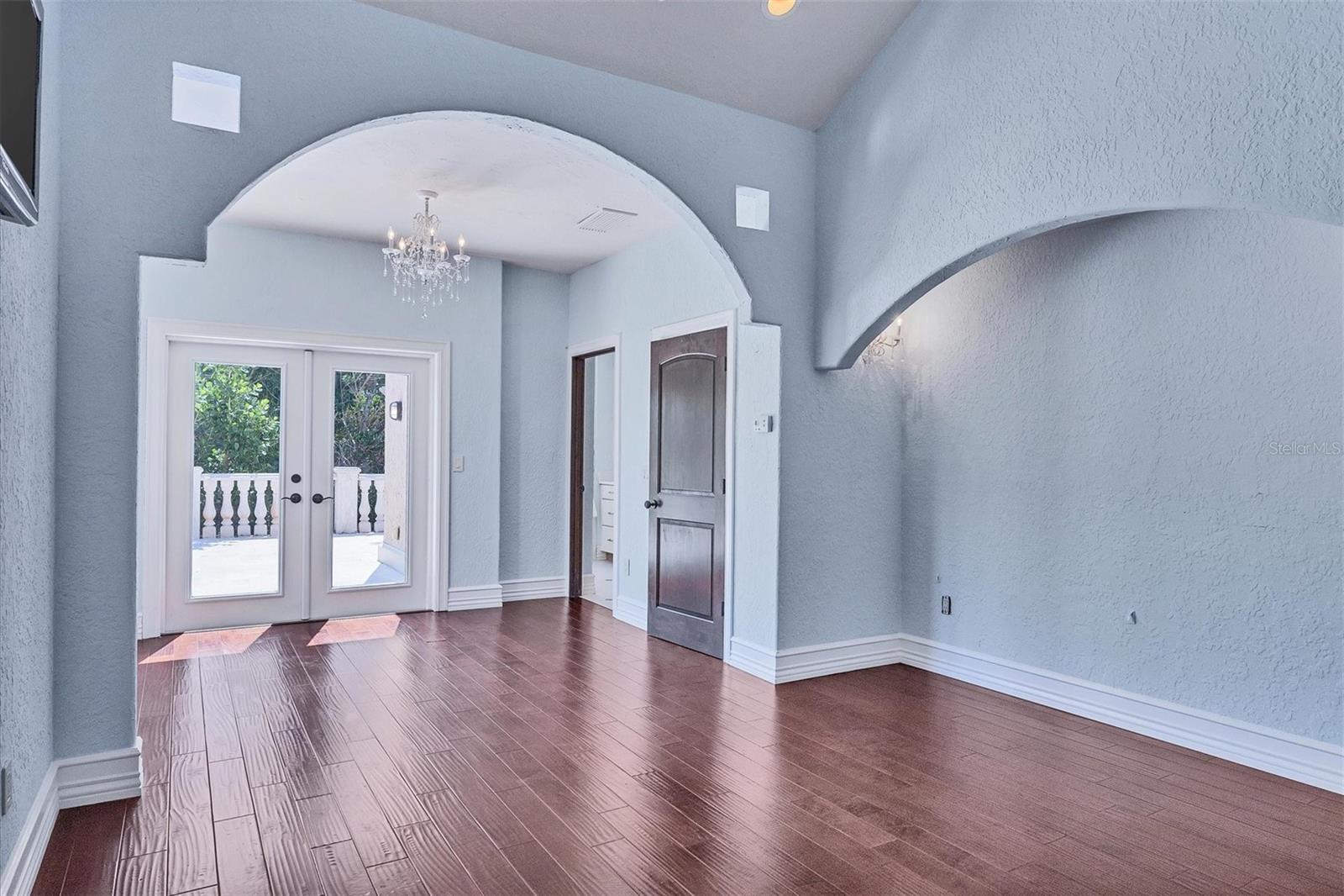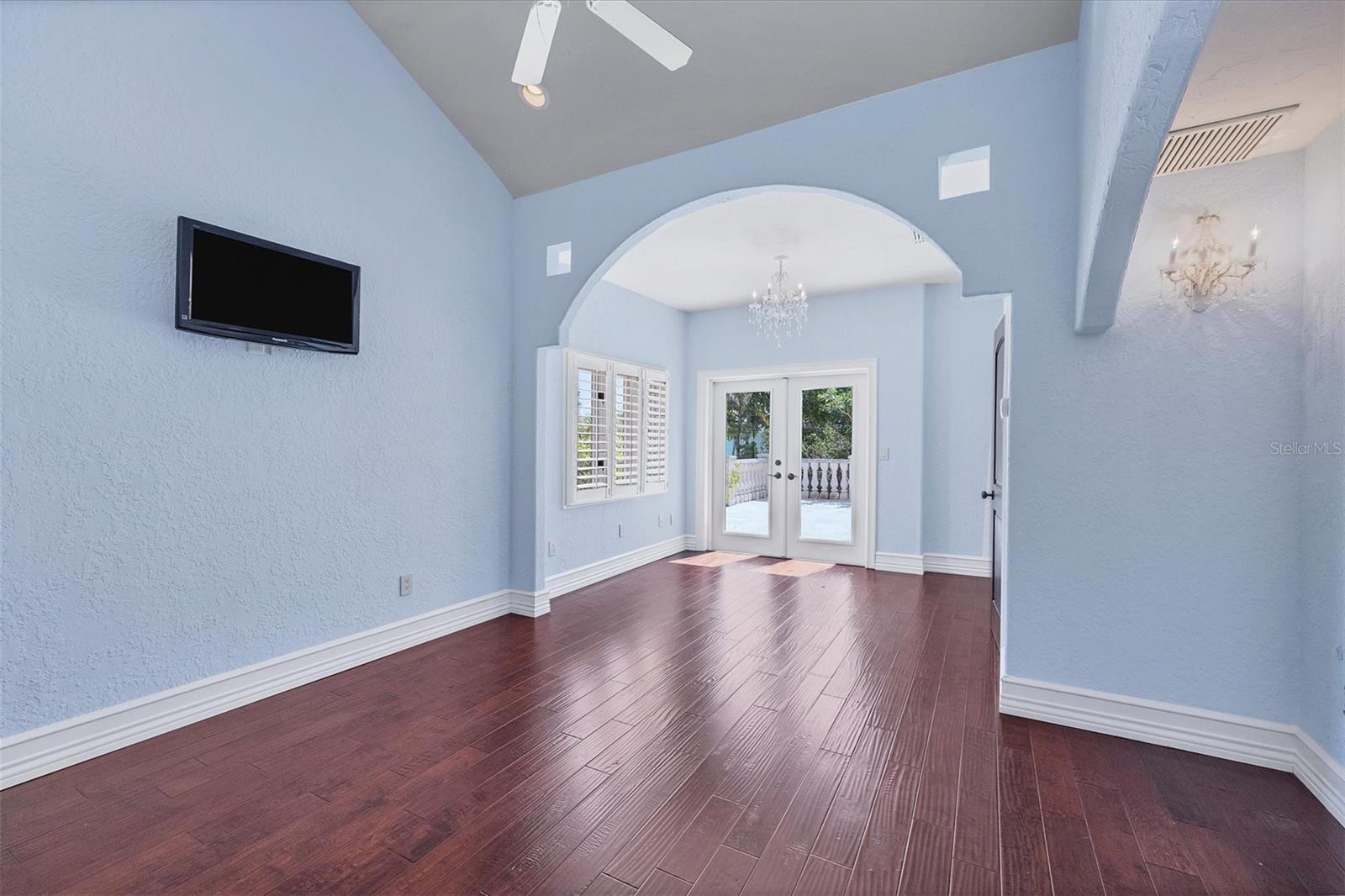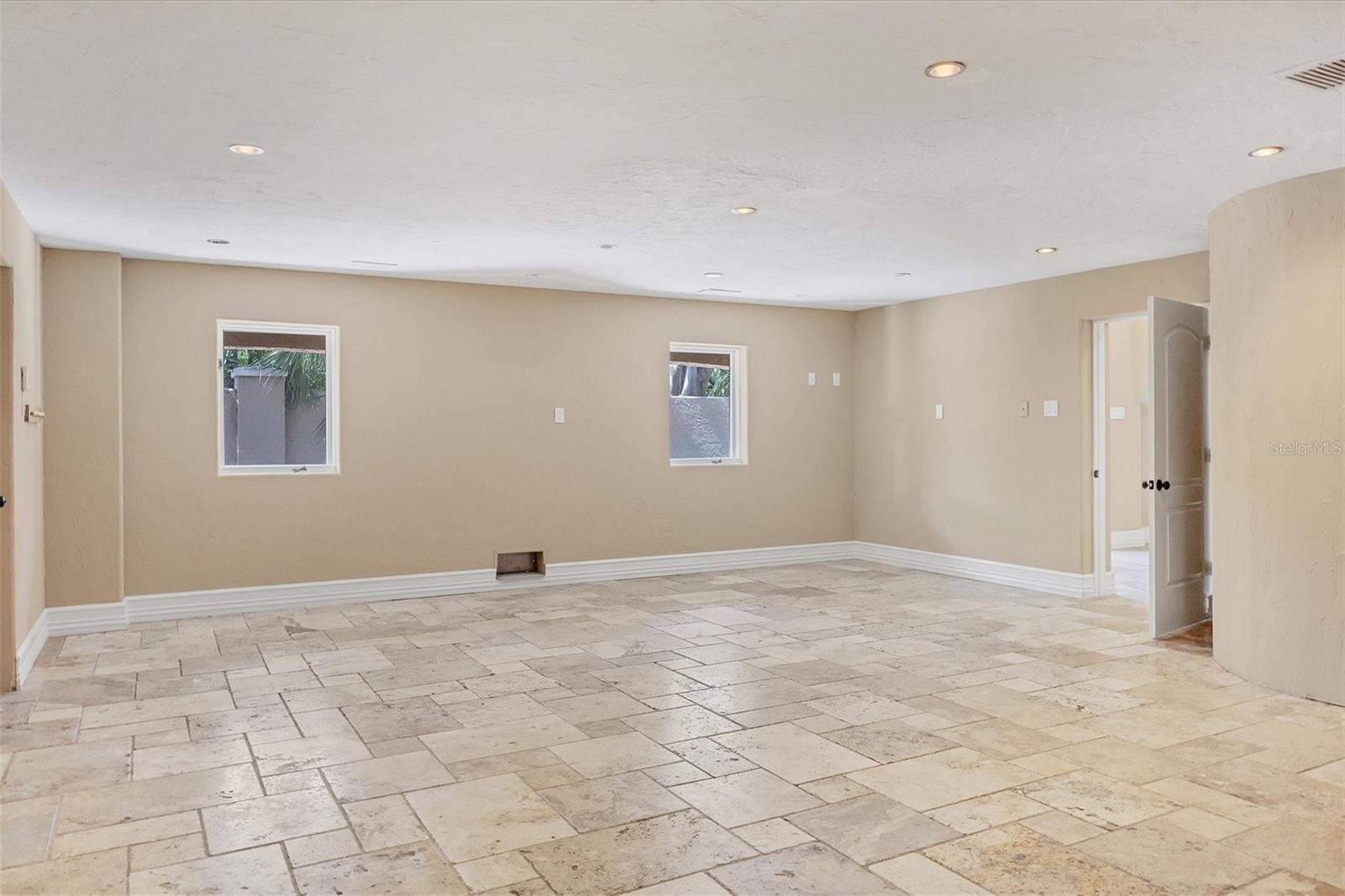 One or more photo(s) has been virtually staged. Offering unparalleled privacy and tranquility, this over ½ acre wall-enclosed Siesta Key estate home embodies exclusivity and sophistication. On the market for the first time, this custom-built family home welcomes you through double arched wooden doors to find large open spaces that seamlessly blend timeless charm with modern amenities. On the main living level, you will find a spacious gourmet kitchen that is fully equipped with top-of-the-line appliances, a huge central island and custom-built wood cabinetry. An office/workspace nook with built-in desk and shelving is adjacent to the kitchen, along with a dry bar and laundry room with double washers and dryers, counter space, and extra storage. Just off the kitchen is a formal dining room ideal for hosting dinner parties that oversees a living room boasting with soaring ceilings, wood beams and grand oversized arched windows – creating an ideal space for large gatherings. On the same level you will find a charming arched hallway faced in Tuskegee brick imported from Alabama that leads to an expansive outside terrace with decorative stone railing and stunning views of the property. You will also find two en-suite bedrooms, walk-in closets with direct access to the outside terrace and a powder bath. The primary suite on the third level is a true retreat that exudes European charm in its large sitting room area with French doors leading to a private balcony, separate bedroom space with large walk-in closet, and an en-suite bath with oversized walk-in shower and additional walk-in closet. A small staircase leads to an adorable flex room with built-in storage perfect for a hobby room, quiet study or amazing closet. The ground floor also offers an abundance of space and opportunities (fitness room, game room, craft room, etc.) and includes a separate entrance. Step outside to find a resort-style set-up with a large cabana and pool surrounded by palm trees and lush landscaping. The outdoor kitchen and gas firepit add to the appeal and make this space great for entertaining and fun adventures around the pool. Beyond the walls you will have access to your very own deeded beach, along with a neighboring premier, full-service, bay front marina.