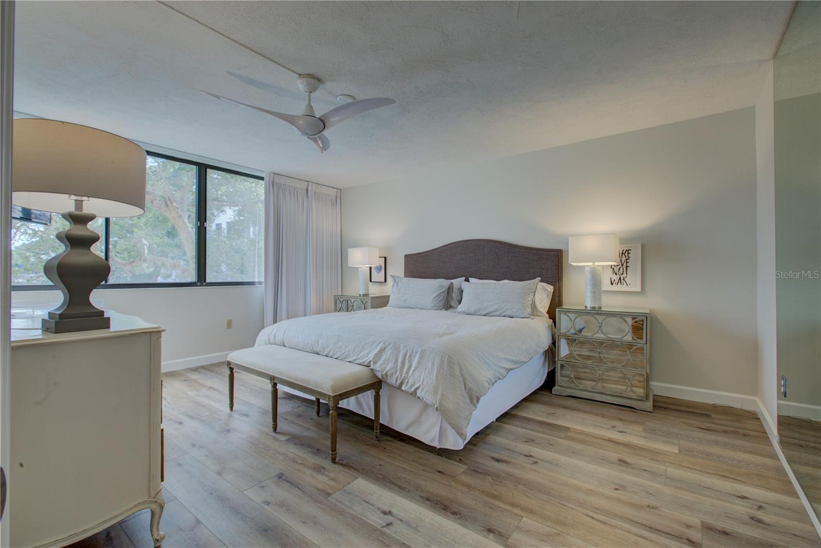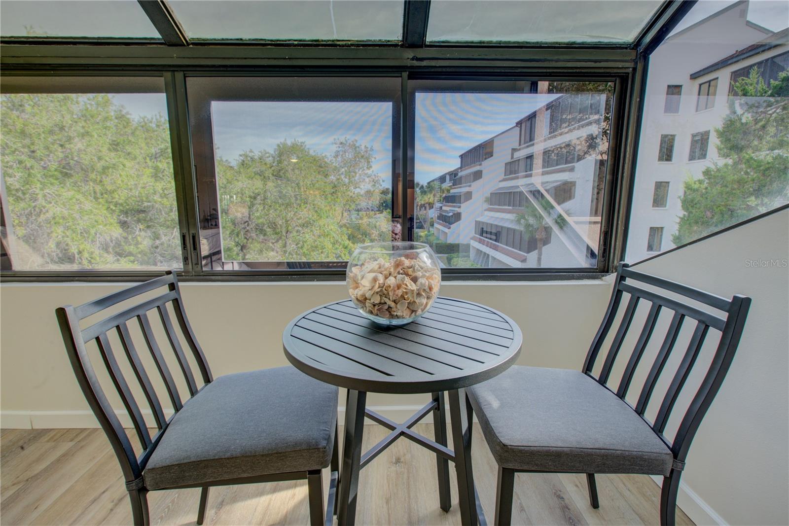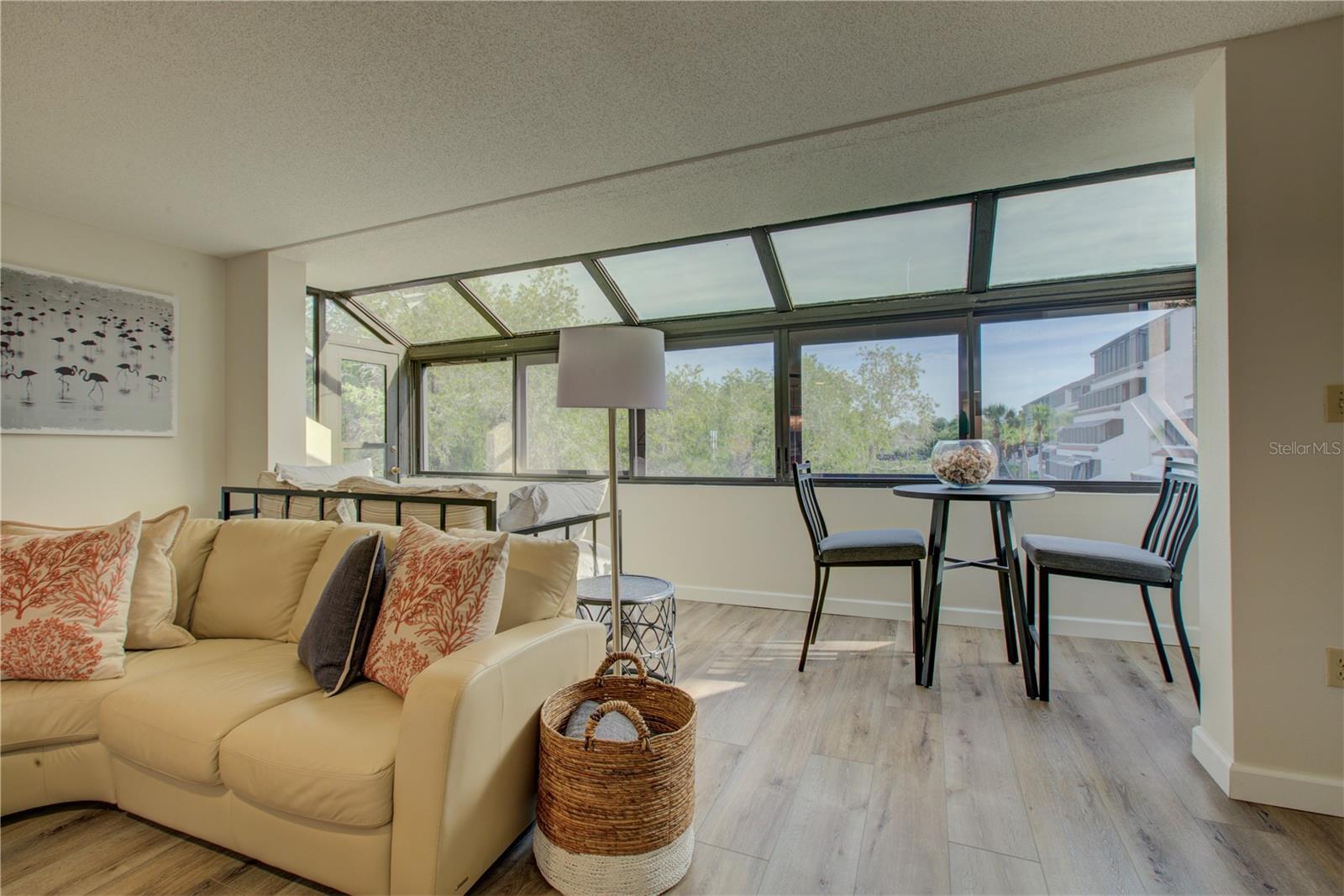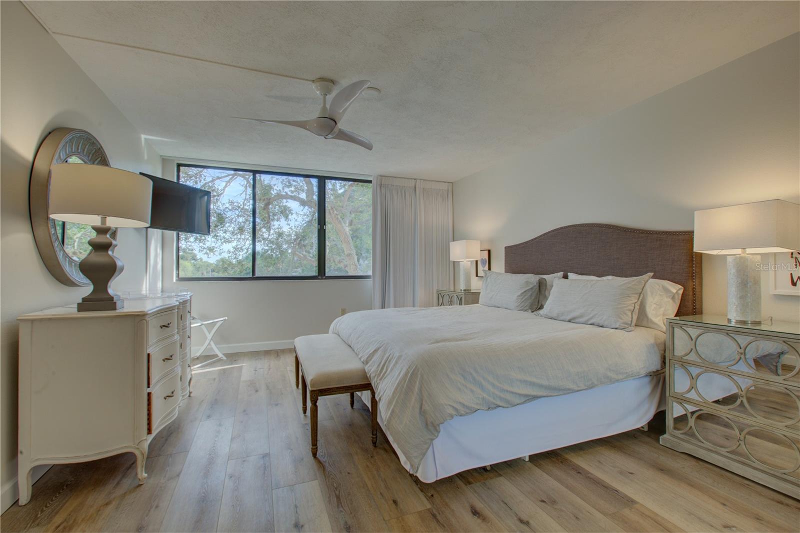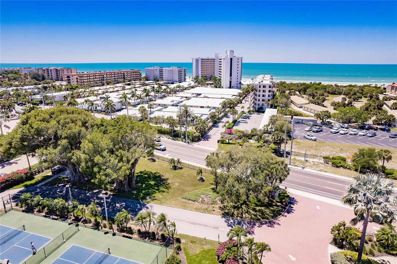 This is one of the largest two-bedroom units in this pet friendly, beach-to-bay development. Excelsior is known for its lush tropical landscaping, with paved walkways weaving through both the beach and bayside. The resort-style amenities will keep you entertained in a development that isn't just packing in tourists, which allows you to make friends and socialize in your beautiful second home or investment property. This is not your typical beach condominium. This end unit is situated on the second floor in the first building across the street from the beach. The unit is front to back and overlooks a courtyard, so the unit has sun and tropical vistas from three sides. With windows in every room (excluding bathrooms) and oversized rooms, there is a feeling of being in a space that is as comfortable as home. Excelsior offers you a private white sandy beach with complimentary lounge chairs. You can indulge in resort-style amenities such as two heated pools with poolside restrooms and showers, whirlpools, fitness center, tennis courts, pickleball courts, shuffleboard, fishing pier, a gulf-side sun deck, barbecue areas, and picnic areas. Under building assigned parking and storage are included. The unit is fully furnished and already has rental bookings in place. The unit has been partially renovated with tasteful decor with a vacation vibe. From the matching Capiza chandeliers that adorn the kitchen and dining room to the large shell prints in the living room. Open the Juliette French doors next to the dining room table that overlooks a patio and garden, so you can enjoy the cross breeze during the cooler months. The owners have expanded the kitchen to provide additional storage space, which also serves as a counter-height bar for extra guests or a cozy spot to enjoy your morning coffee. The living room, besides having a large sectional sofa and chairs, features a day bed with a trundle, providing two additional sleeping spaces. The guest bathroom is conveniently located in the hallway, allowing your guest(s) in the living room access without having to pass through a bedroom in the middle of the night. The primary bedroom is spacious and includes a king-sized bed with floor to ceiling custom room-darkening drapes. There is a sitting area where you can apply makeup and get dressed. Additionally, the bathroom in the primary bedroom includes a washer and dryer installed inside a closet. The guest bedroom is located on the opposite side of the unit and features a queen-sized bed, but it can accommodate a king or an additional twin bed if desired. There is a ton of closet space in each of the bedrooms, a hall linen closet, a locked owners closet, plus a front closet that is equipped with beach chairs, coolers, and beach games, and still has enough room for your fishing gear. This is one of the largest units on the market and is exceptionally priced per square foot. Don't miss out on this attractively priced opportunity.