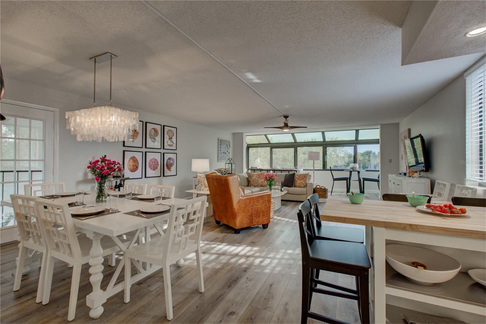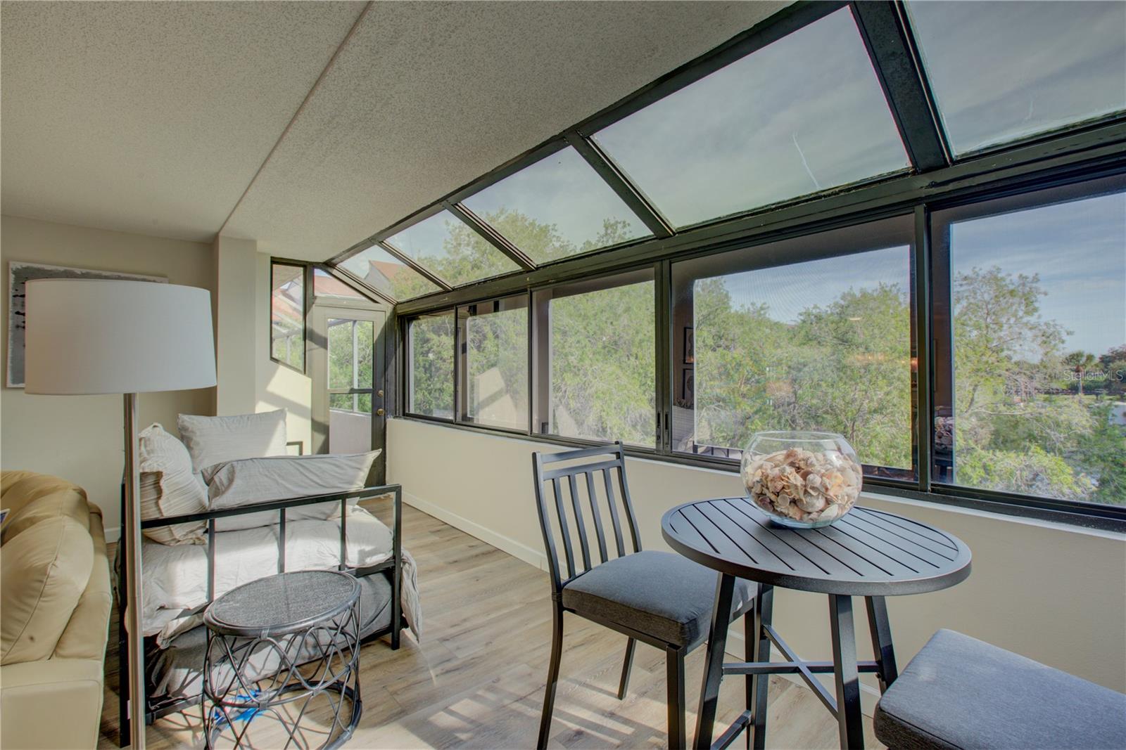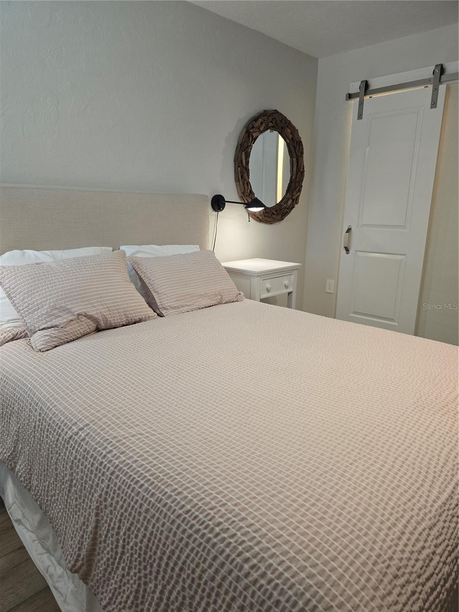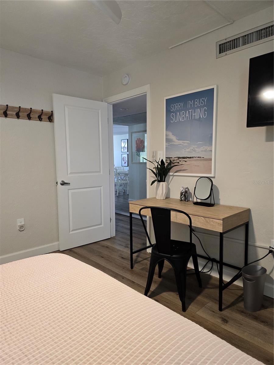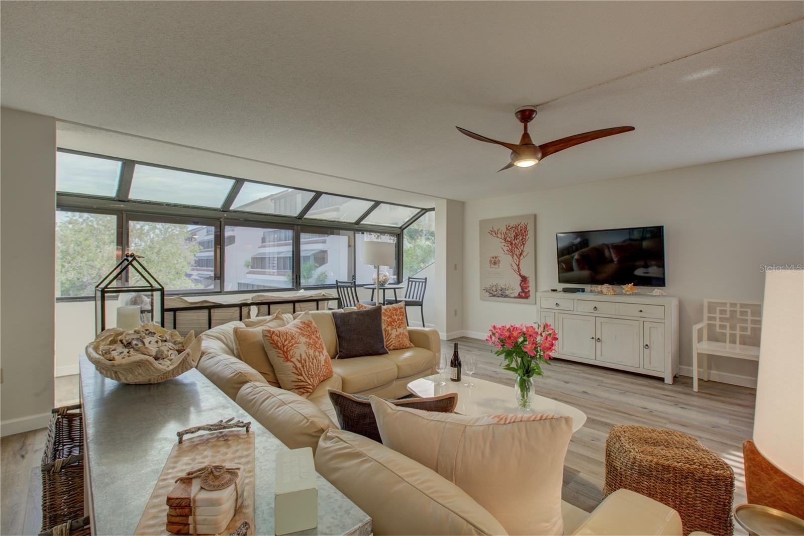 This is one of the largest two-bedroom units in this pet friendly, beach-to-bay development. Excelsior is known for its lush tropical landscaping, with paved walkways weaving through both the beach and bayside. The resort-style amenities will keep you entertained in a development that isn't just packing in tourists, which allows you to make friends and socialize in your beautiful second home or investment property. This is not your typical beach condominium. This end unit is situated on the second floor in the first building across the street from the beach. The unit is front to back and overlooks a courtyard, so the unit has sun and tropical vistas from three sides. With windows in every room (excluding bathrooms) and oversized rooms, there is a feeling of being in a space that is as comfortable as home. Excelsior offers you a private white sandy beach with complimentary lounge chairs. You can indulge in resort-style amenities such as two heated pools with poolside restrooms and showers, whirlpools, fitness center, tennis courts, pickleball courts, shuffleboard, fishing pier, a gulf-side sun deck, barbecue areas, and picnic areas. Under building assigned parking and storage are included. The unit is fully furnished and already has rental bookings in place. The unit has been partially renovated with tasteful decor with a vacation vibe. From the matching Capiza chandeliers that adorn the kitchen and dining room to the large shell prints in the living room. Open the Juliette French doors next to the dining room table that overlooks a patio and garden, so you can enjoy the cross breeze during the cooler months. The owners have expanded the kitchen to provide additional storage space, which also serves as a counter-height bar for extra guests or a cozy spot to enjoy your morning coffee. The living room, besides having a large sectional sofa and chairs, features a day bed with a trundle, providing two additional sleeping spaces. The guest bathroom is conveniently located in the hallway, allowing your guest(s) in the living room access without having to pass through a bedroom in the middle of the night. The primary bedroom is spacious and includes a king-sized bed with floor to ceiling custom room-darkening drapes. There is a sitting area where you can apply makeup and get dressed. Additionally, the bathroom in the primary bedroom includes a washer and dryer installed inside a closet. The guest bedroom is located on the opposite side of the unit and features a queen-sized bed, but it can accommodate a king or an additional twin bed if desired. There is a ton of closet space in each of the bedrooms, a hall linen closet, a locked owners closet, plus a front closet that is equipped with beach chairs, coolers, and beach games, and still has enough room for your fishing gear. This is one of the largest units on the market and is exceptionally priced per square foot. Don't miss out on this attractively priced opportunity.