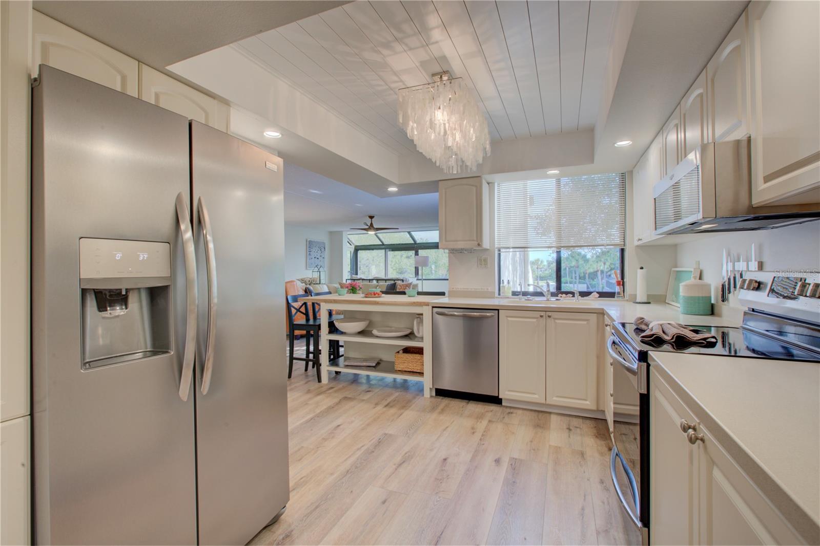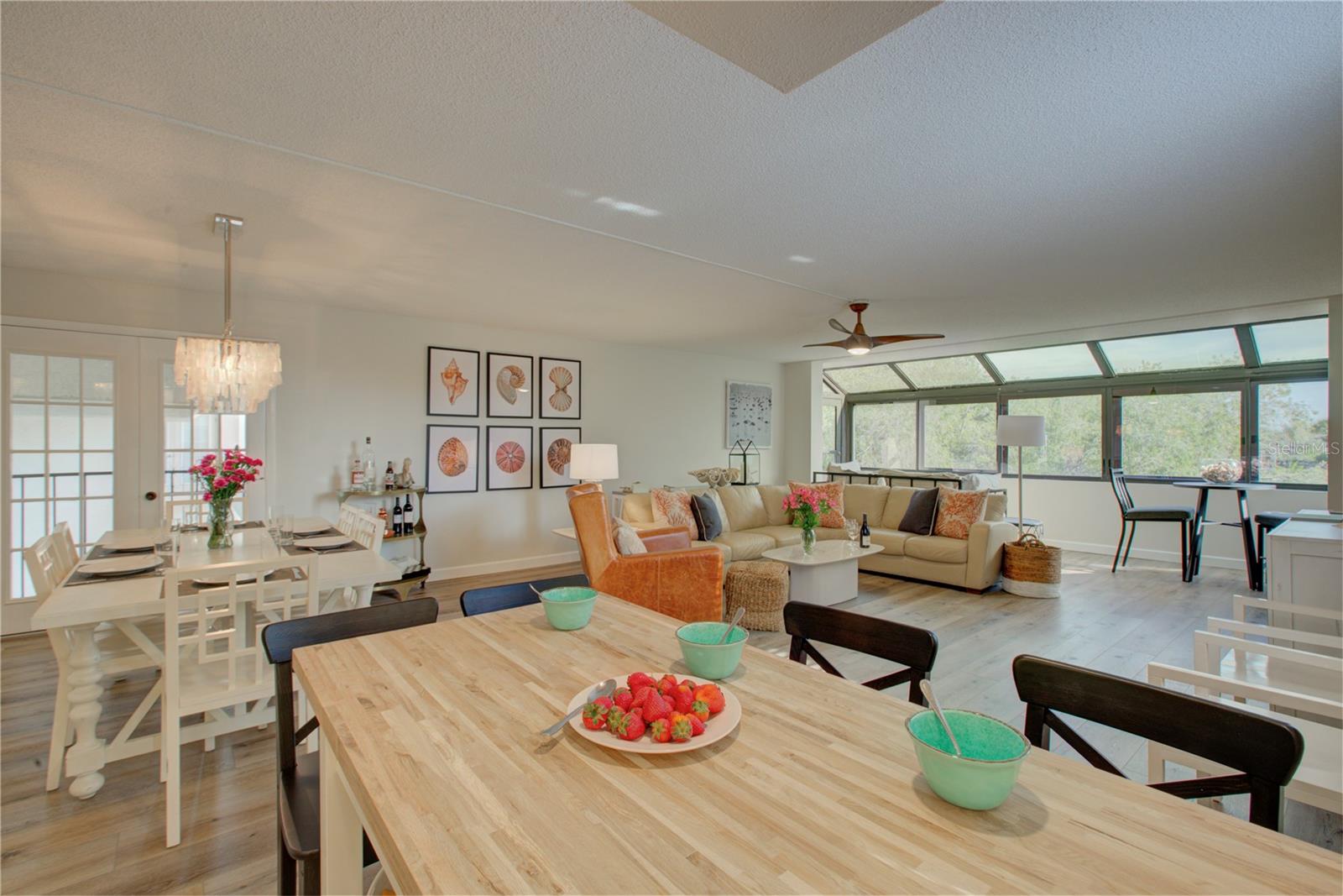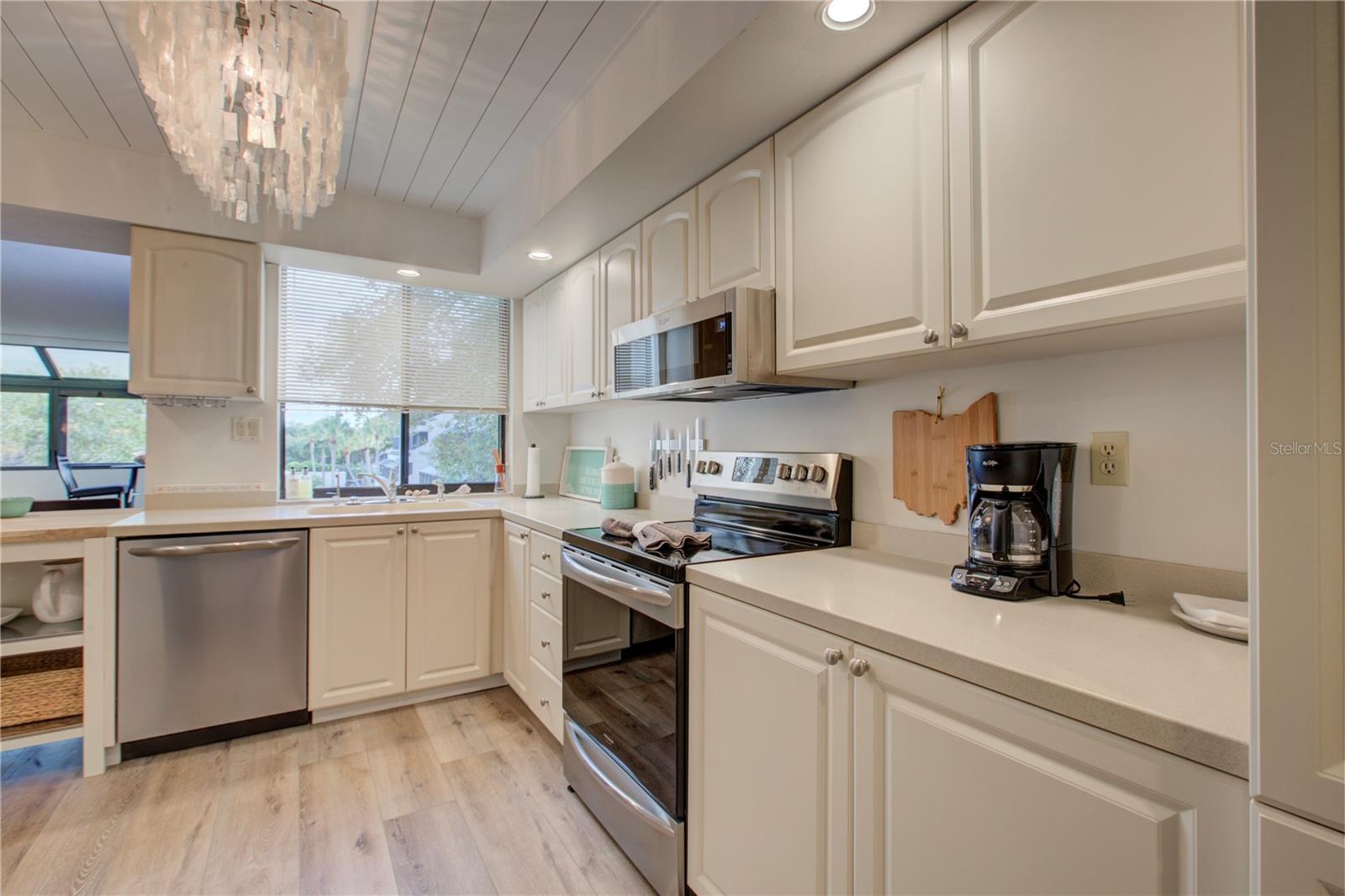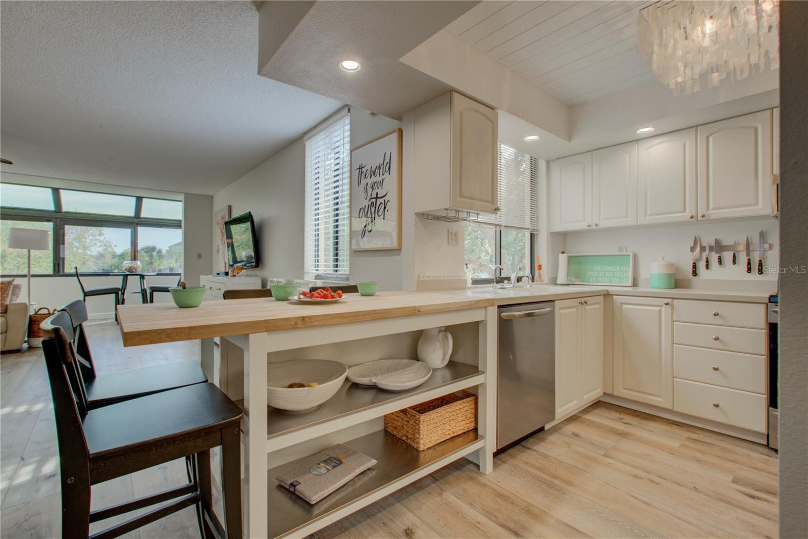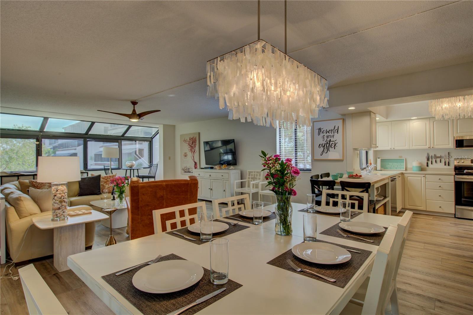 This is one of the largest two-bedroom units in this pet friendly, beach-to-bay development. Excelsior is known for its lush tropical landscaping, with paved walkways weaving through both the beach and bayside. The resort-style amenities will keep you entertained in a development that isn't just packing in tourists, which allows you to make friends and socialize in your beautiful second home or investment property. This is not your typical beach condominium. This end unit is situated on the second floor in the first building across the street from the beach. The unit is front to back and overlooks a courtyard, so the unit has sun and tropical vistas from three sides. With windows in every room (excluding bathrooms) and oversized rooms, there is a feeling of being in a space that is as comfortable as home. Excelsior offers you a private white sandy beach with complimentary lounge chairs. You can indulge in resort-style amenities such as two heated pools with poolside restrooms and showers, whirlpools, fitness center, tennis courts, pickleball courts, shuffleboard, fishing pier, a gulf-side sun deck, barbecue areas, and picnic areas. Under building assigned parking and storage are included. The unit is fully furnished and already has rental bookings in place. The unit has been partially renovated with tasteful decor with a vacation vibe. From the matching Capiza chandeliers that adorn the kitchen and dining room to the large shell prints in the living room. Open the Juliette French doors next to the dining room table that overlooks a patio and garden, so you can enjoy the cross breeze during the cooler months. The owners have expanded the kitchen to provide additional storage space, which also serves as a counter-height bar for extra guests or a cozy spot to enjoy your morning coffee. The living room, besides having a large sectional sofa and chairs, features a day bed with a trundle, providing two additional sleeping spaces. The guest bathroom is conveniently located in the hallway, allowing your guest(s) in the living room access without having to pass through a bedroom in the middle of the night. The primary bedroom is spacious and includes a king-sized bed with floor to ceiling custom room-darkening drapes. There is a sitting area where you can apply makeup and get dressed. Additionally, the bathroom in the primary bedroom includes a washer and dryer installed inside a closet. The guest bedroom is located on the opposite side of the unit and features a queen-sized bed, but it can accommodate a king or an additional twin bed if desired. There is a ton of closet space in each of the bedrooms, a hall linen closet, a locked owners closet, plus a front closet that is equipped with beach chairs, coolers, and beach games, and still has enough room for your fishing gear. This is one of the largest units on the market and is exceptionally priced per square foot. Don't miss out on this attractively priced opportunity.