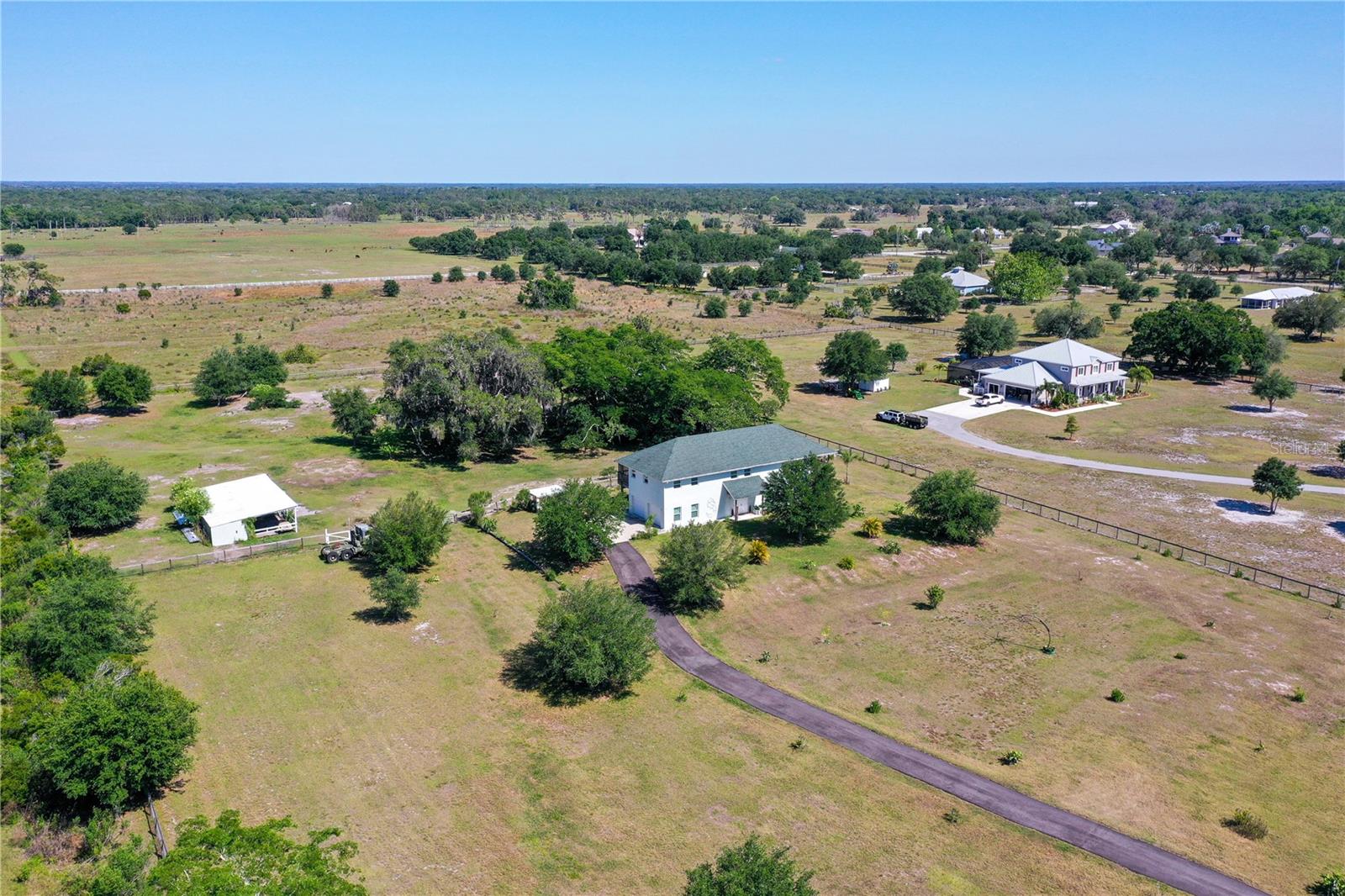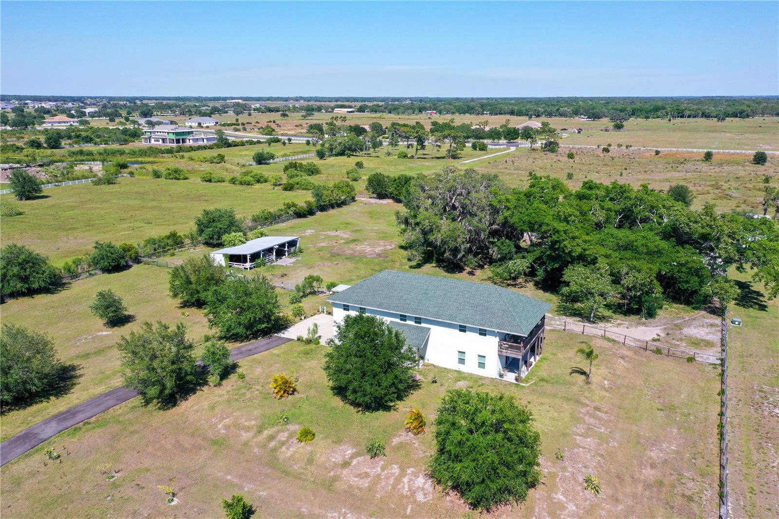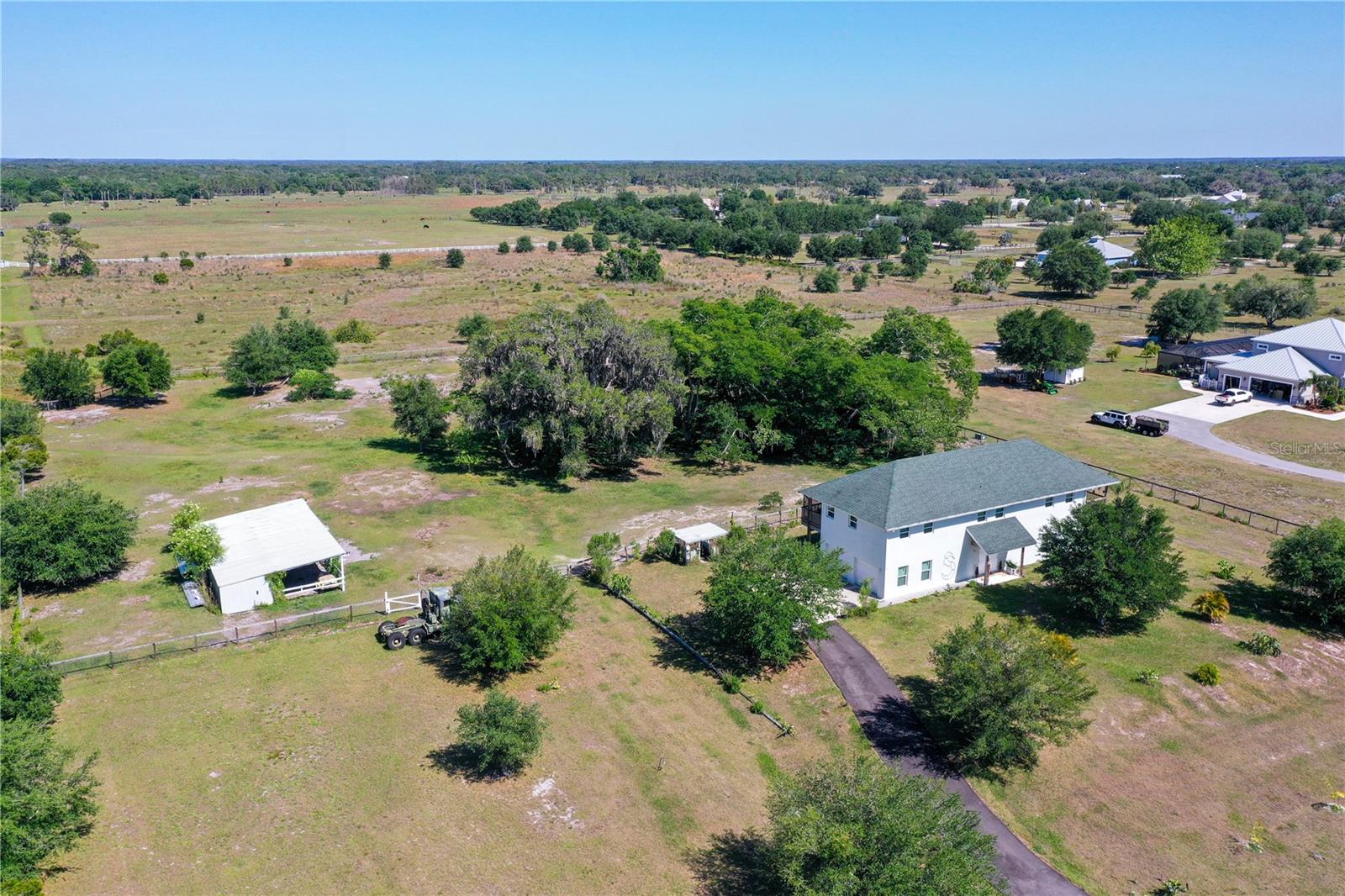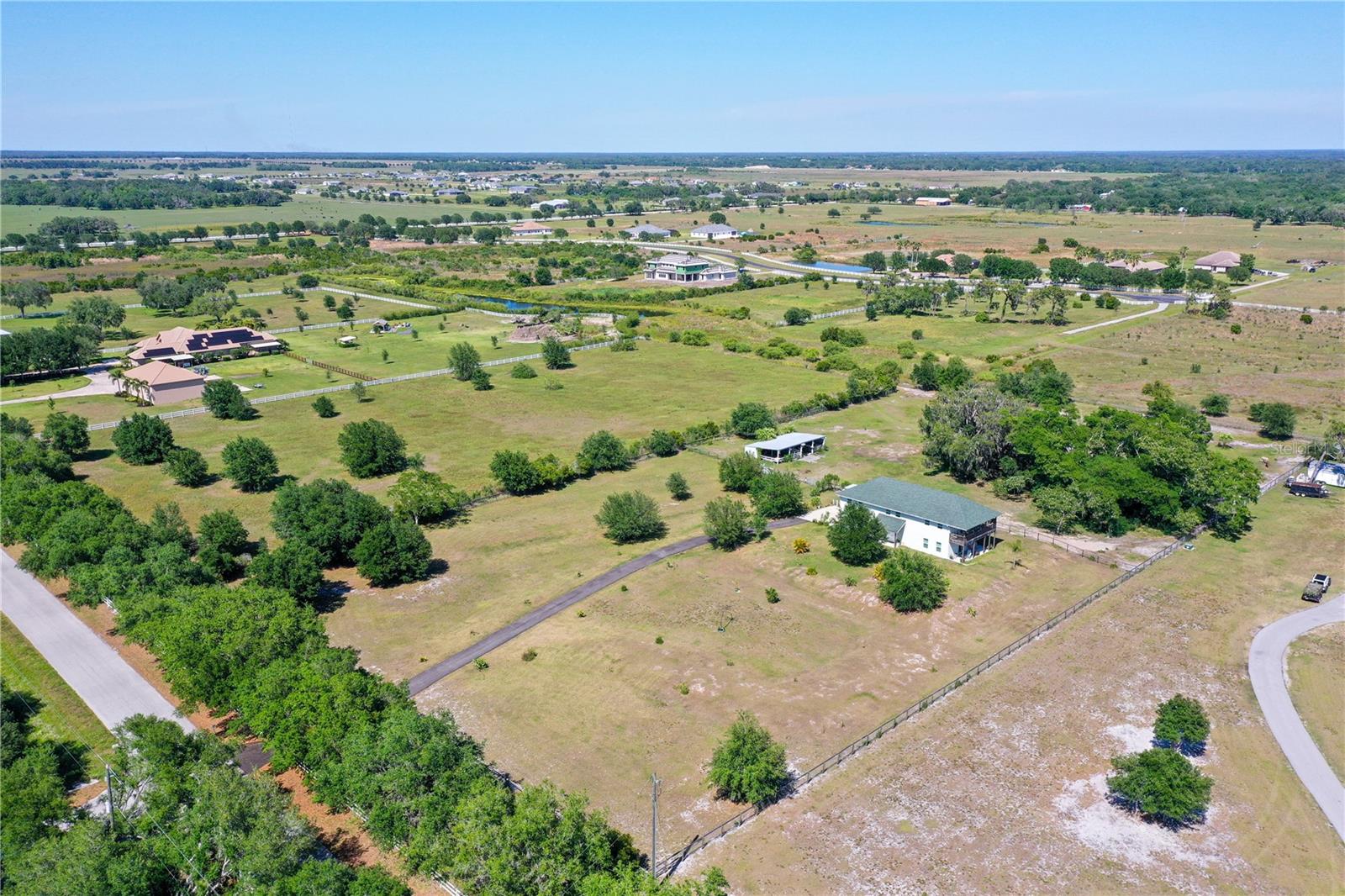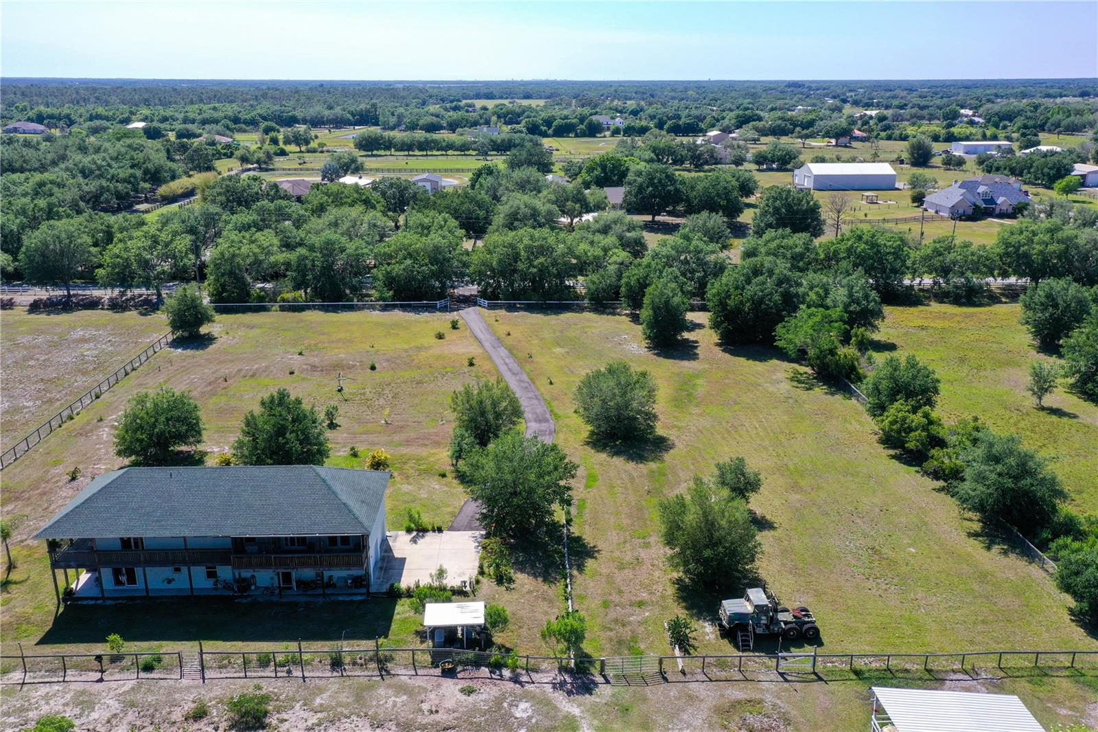 Welcome to Weather Top Farm! Come home to peace and quiet with your beautiful home in the country! Five luscious acres allow you options to have a big garden, add a pool, or enjoy having horses. Sit on your back porch with the view of green grass and shade trees. Right off the garage are two bedrooms and a jack and jill bathroom, which could be an in-law suite. Open the sliding glass doors to the wrap around covered lanai and enjoy the wonderful breeze. The open floor plan is perfect for cooks that want to be part of the action in the family room. The kitchen features solid surface countertops and an island with eat-in dining. Primary bedroom has an office space that could also be used as a large closet. Primary bathroom is spacious and features double sinks and two closets. Taking care of chores around the property will be a breeze with the added bonus of approximately twenty-five thousand dollars' worth of equipment that comes with the property: Riding lawn mower and a John Deer tractor in excellent working condition are securely stored in the shed. Relax knowing the HVAC, hot water heater, appliances and roof are all in great shape, installed in 2020. Conveniently located ten miles east of I-75. Great restaurants and shopping at University Mall. Lido Key is quick drive to get your toes in the sand. Enjoy your happy place with the serenity of nature all around. Bedroom Closet Type: Walk-in Closet (Primary Bedroom).