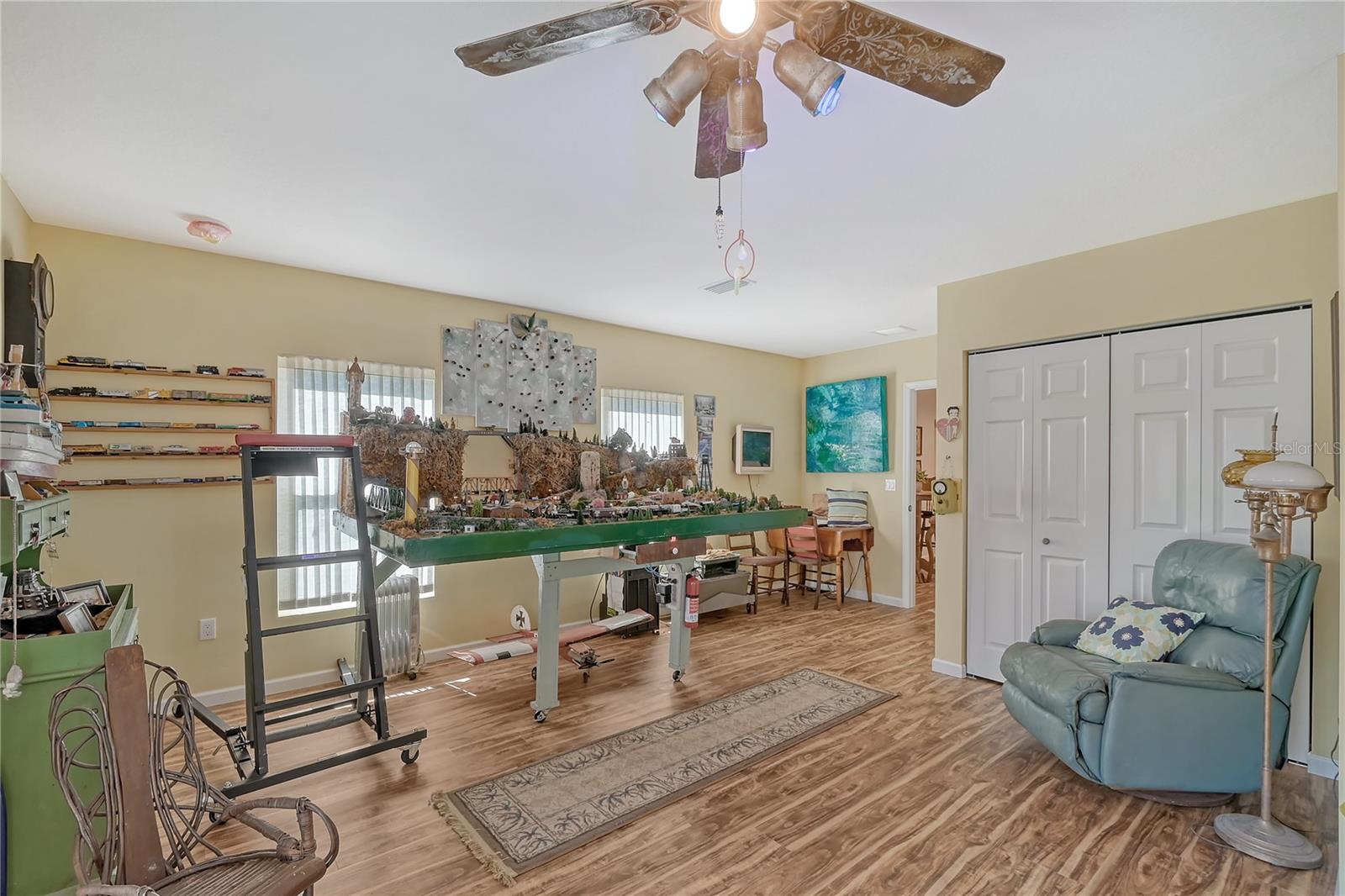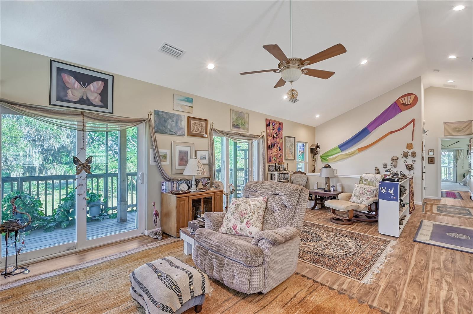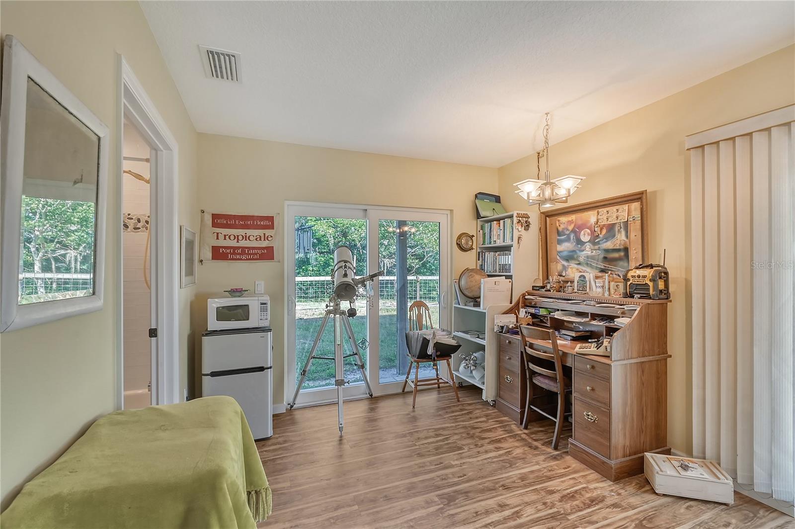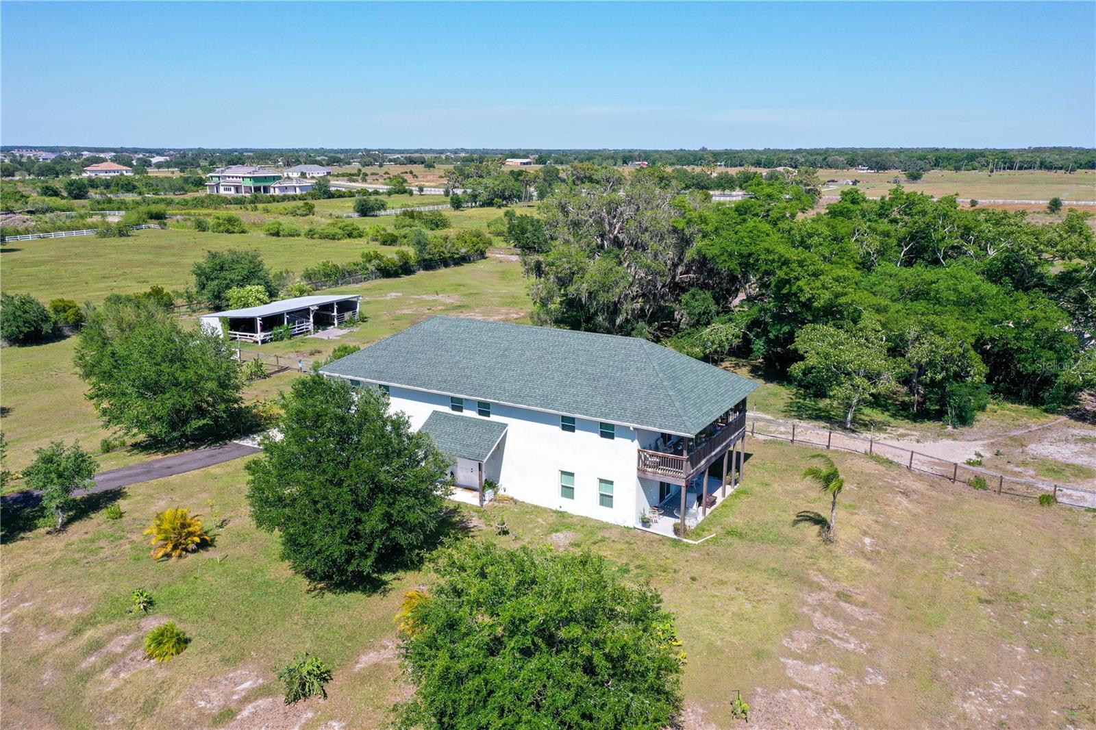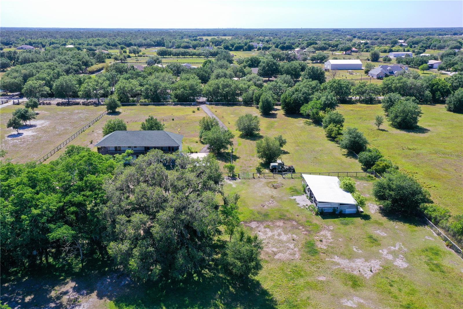 Welcome to Weather Top Farm! Come home to peace and quiet with your beautiful home in the country! Five luscious acres allow you options to have a big garden, add a pool, or enjoy having horses. Sit on your back porch with the view of green grass and shade trees. Right off the garage are two bedrooms and a jack and jill bathroom, which could be an in-law suite. Open the sliding glass doors to the wrap around covered lanai and enjoy the wonderful breeze. The open floor plan is perfect for cooks that want to be part of the action in the family room. The kitchen features solid surface countertops and an island with eat-in dining. Primary bedroom has an office space that could also be used as a large closet. Primary bathroom is spacious and features double sinks and two closets. Taking care of chores around the property will be a breeze with the added bonus of approximately twenty-five thousand dollars' worth of equipment that comes with the property: Riding lawn mower and a John Deer tractor in excellent working condition are securely stored in the shed. Relax knowing the HVAC, hot water heater, appliances and roof are all in great shape, installed in 2020. Conveniently located ten miles east of I-75. Great restaurants and shopping at University Mall. Lido Key is quick drive to get your toes in the sand. Enjoy your happy place with the serenity of nature all around. Bedroom Closet Type: Walk-in Closet (Primary Bedroom).