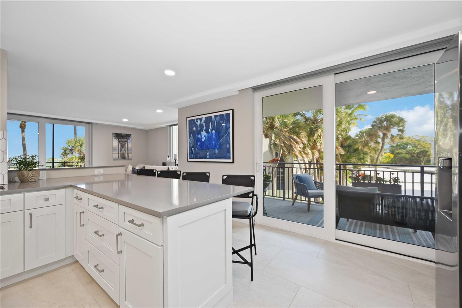 ATTENTION: SELLER IS NOW CREDITING BUYER(S) 1ST FULL YEAR OF CONDO FEES AT CLOSING! This is your opportunity to embrace the coastal lifestyle you've been dreaming of! Every corner of this meticulously renovated unit has been designed with care and an eye for beauty. Don't miss out on making this magnificent retreat your forever home now offered furnished! Elegant Kitchen: Renovated with top-of-the-line finishes, including a delightful breakfast bar, perfect for enjoying morning coffee with a view. Cozy Living Room: An open floor plan and corner space provide uninterrupted views of the gulf coast waters, creating a relaxing ambiance for enjoying breathtaking sunsets. Expansive Dining Room: Ideal for hosting family and friends, this spacious dining area sets the stage for sumptuous meals with a coastal backdrop. Tranquil Bedrooms: The primary suite and guest bedrooms provides comfort and sophistication, with sliders opening to the lanai for indoor-outdoor living. Luxurious Bathrooms: Fully renovated bathrooms exude timeless elegance, providing a retreat of tranquility perfectly suited to the coastal lifestyle. Easy Access to Gulf Waters: Embark on nautical adventures with convenient access to the Gulf, ensuring every day feels like a vacation. Convenience at Your Fingertips: Proximity to Gulf Beaches: Enjoy easy access to the stunning Gulf of Mexico beaches, including Siesta Key Beach, along with shopping and restaurants. Community Amenities: The complex offers private fishing piers, a community pool overlooking the Gulf, outdoor kitchen, bike storage, fitness facility, and renovated social room and is Miami Dade Compliant!. Secure and Elegant Lobby: The condo lobby has been elegantly remodeled, adding to the sense of luxury and security. Schedule a private tour and step into your world of coastal luxury living!