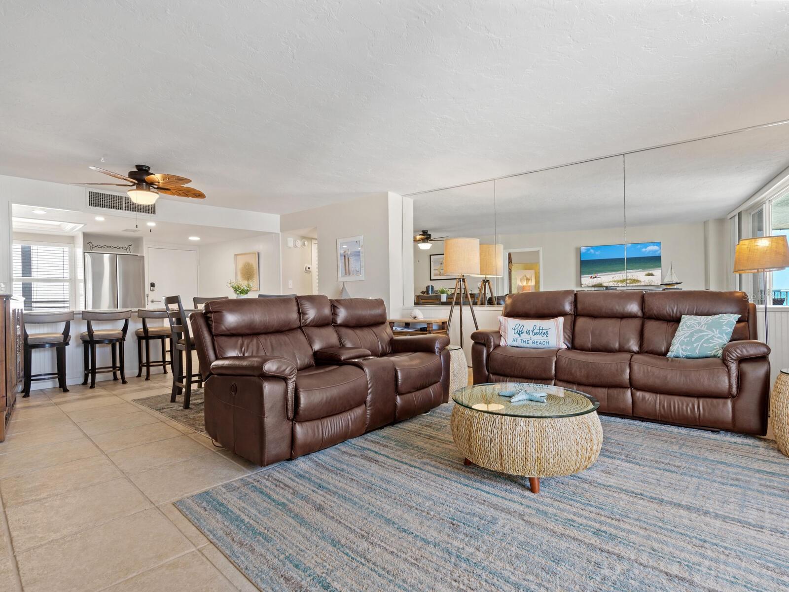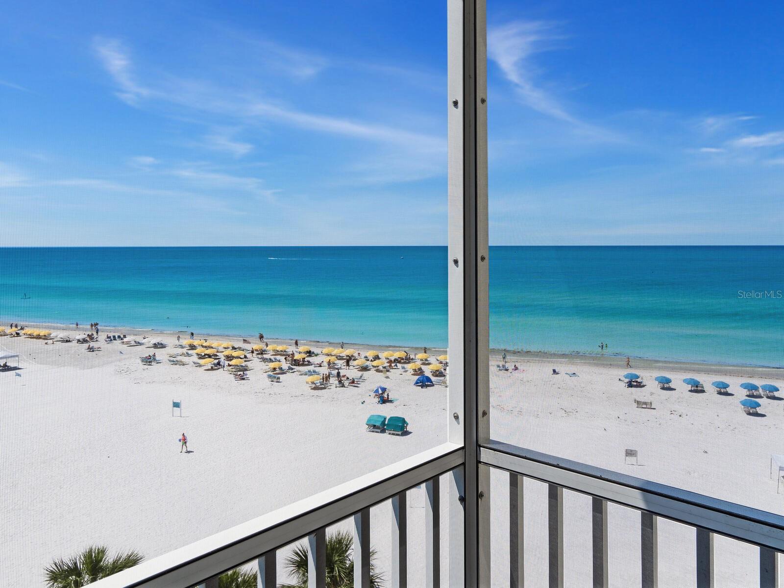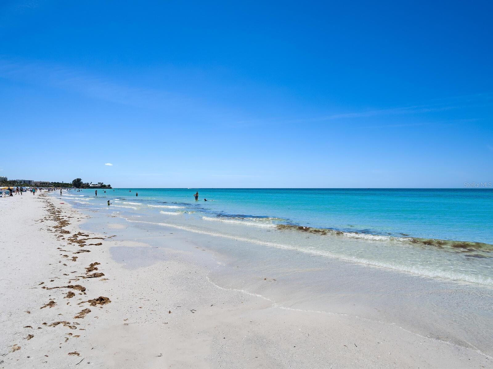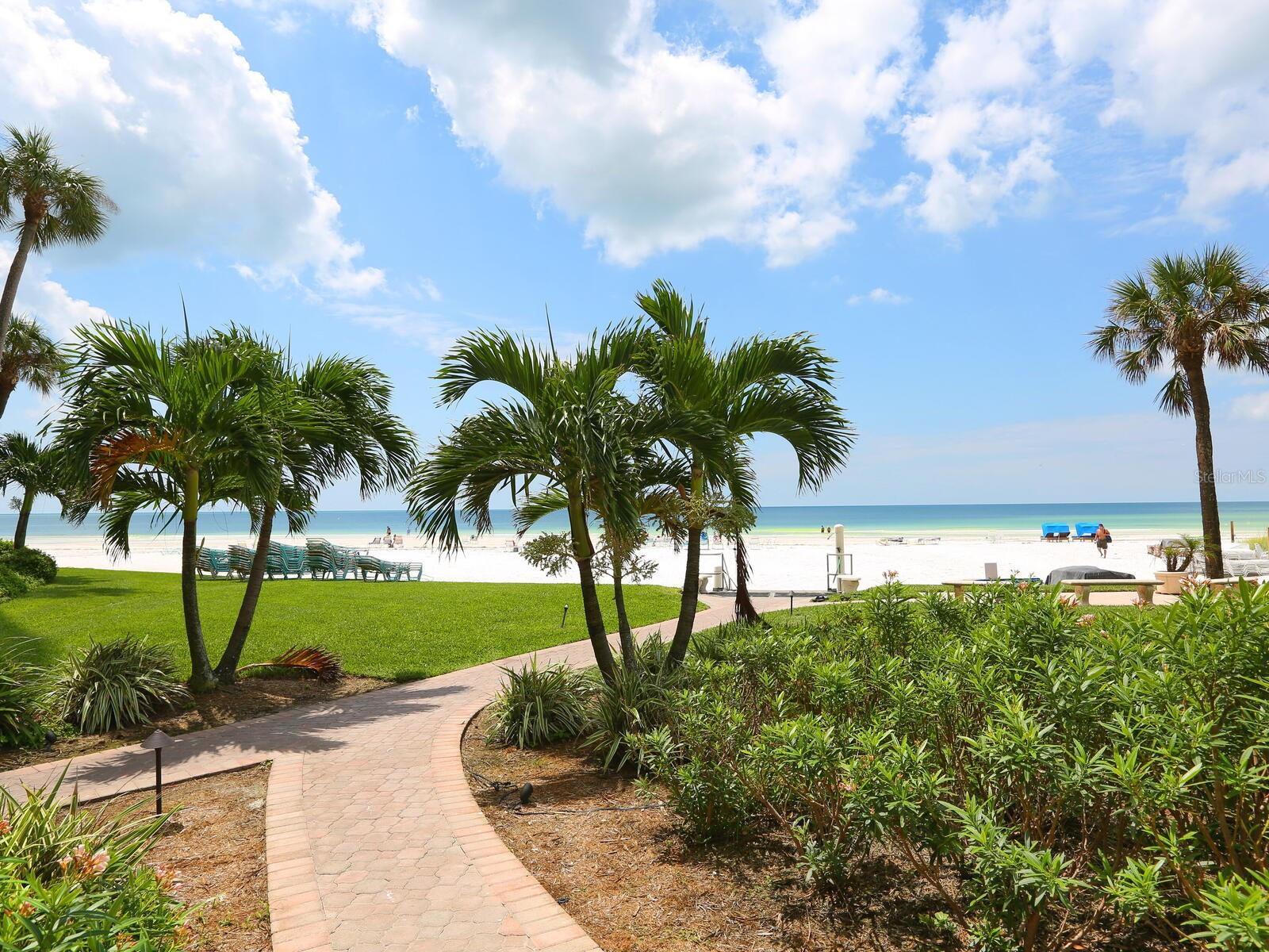 The azure waters of the Gulf of Mexico, and the spectacular white sand beach on Siesta Key is what will greet you as you enter this 7th floor condo in Crystal Sands. The views are stunning looking over the beach and water. The flowing floor plan is designed for casual living. The beautiful kitchen is open to the dining and living areas, with marble counters, SS appliances, tray ceiling, and breakfast bar. It’s a living room/dining room combo with hurricane rated sliding glass doors opening to the 31 ft. Screened in lanai. Open the sliding glass doors and hear the gentle sound of waves to lull you into a more tranquil state of mind. There is an electric fireplace in the living room that will put out heat on those chilly winter days, and the flame can be adjusted to change colors for a cozy setting. Bedrooms are on either side of the living area for the utmost in privacy. Both bedrooms have sliders opening up to the lanai, so all rooms are taking advantage of the views. The primary bath has double sinks, walk-in shower, walk-in closet. Another plus is the in unit laundry room with washer/dryer, plus additional storage. Crystal Sands is a gated community with two heated pools, private deeded beach access, beach chairs, grills, and a assigned covered parking space. The complex has been proactive on doing projects in recent years such as newer roofs, reinforced balconies, updated plumbing system, glass elevator on the North side, and more manicured landscaping. Owners and guests can take advantage of the trolley system to venture out to various restaurants, bars, gourmet grocery stores, and shops on Siesta Key without getting their car out. The two week rental minimum makes it attractive to the owner that wants some income but also wants to enjoy a Gulf and beach front condo themselves.