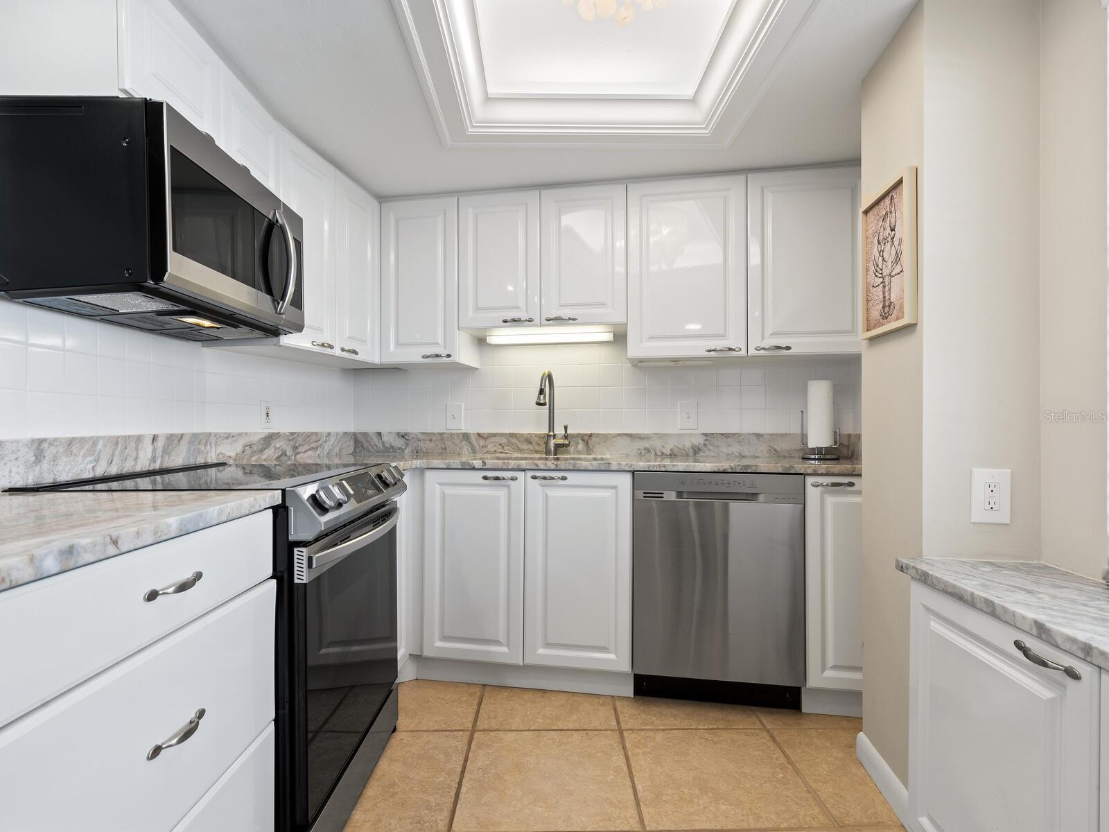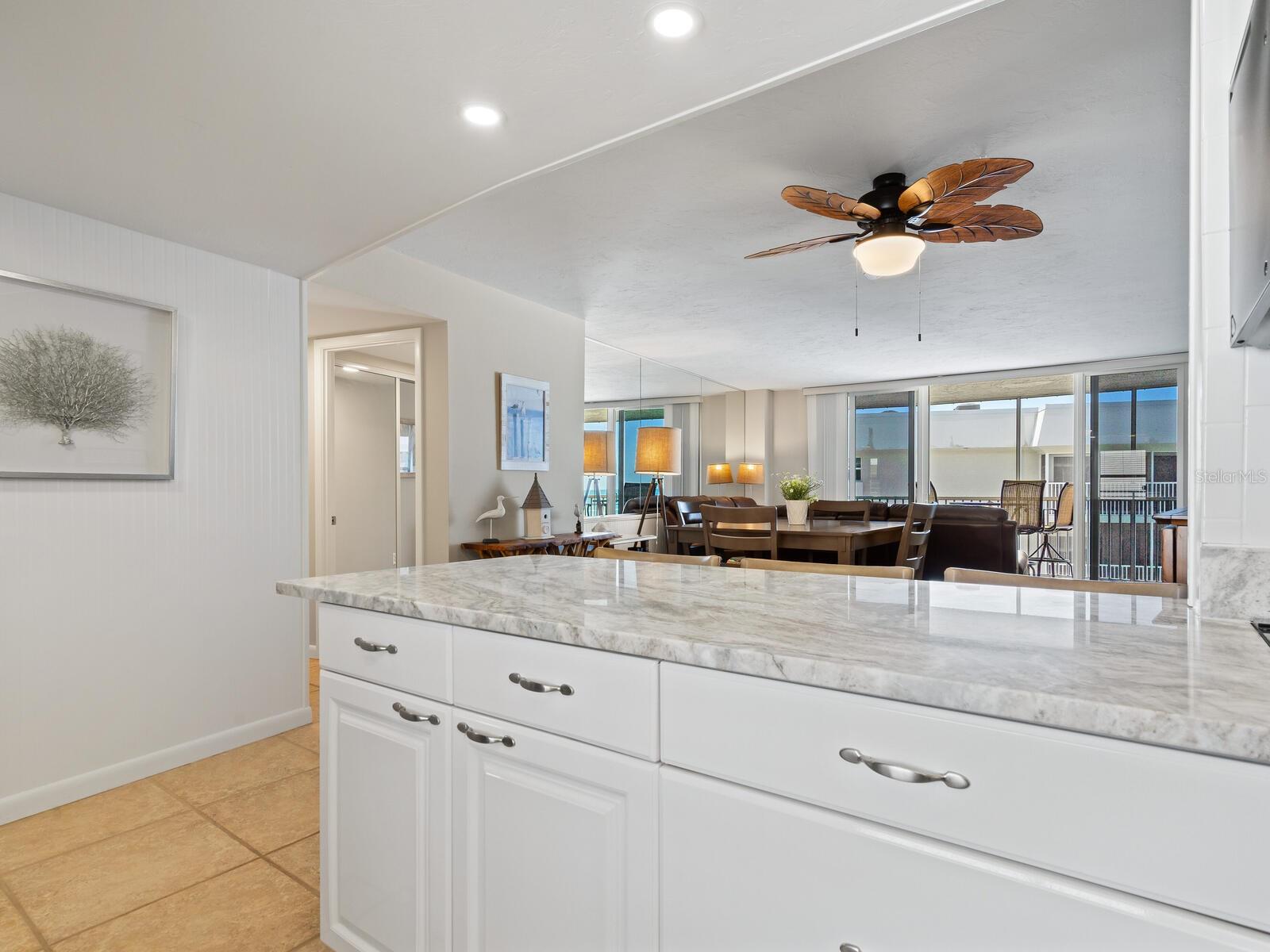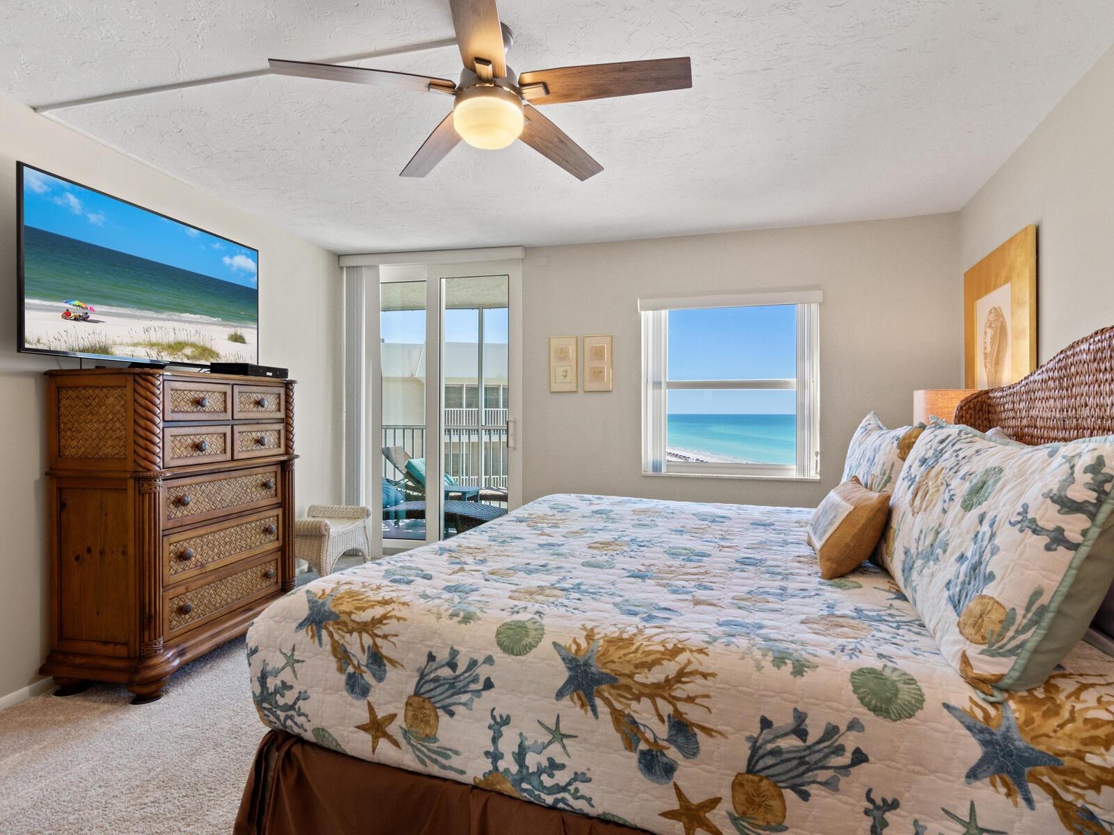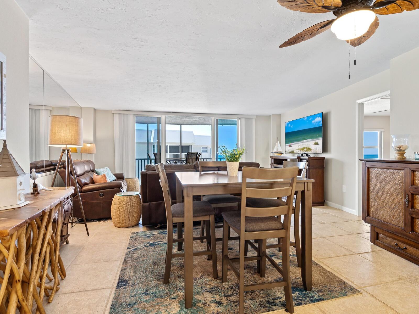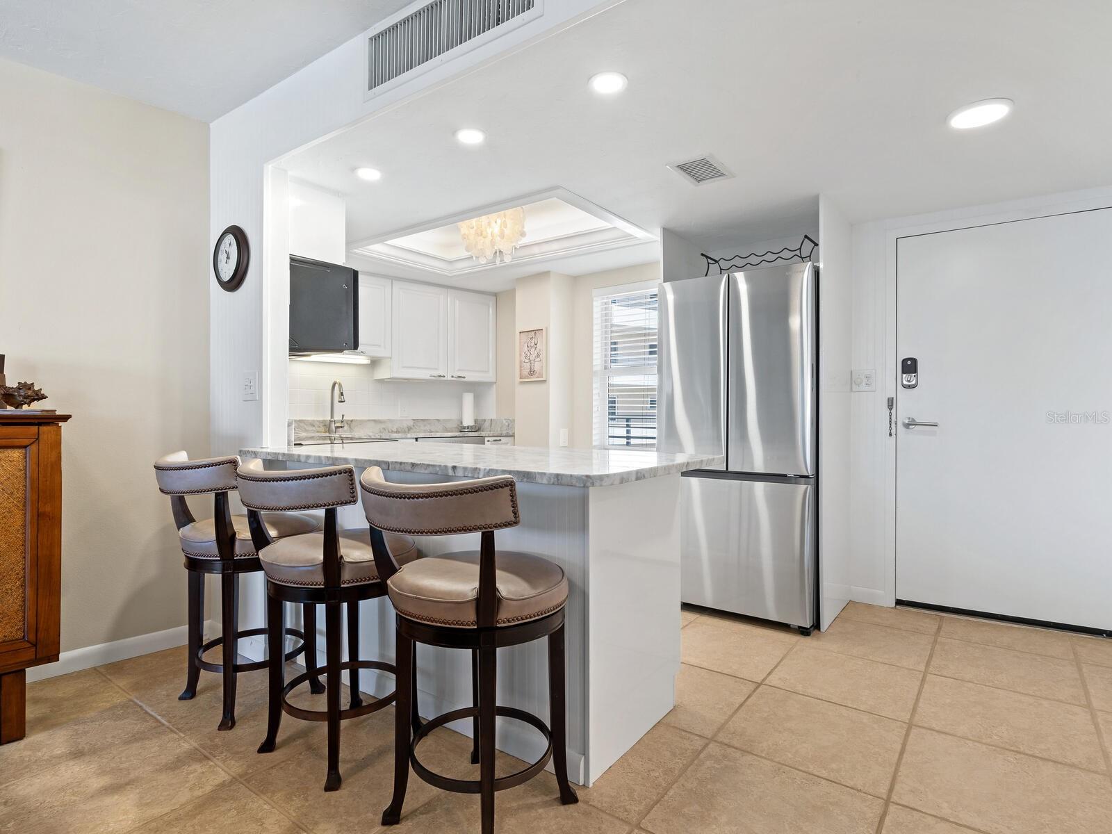 The azure waters of the Gulf of Mexico, and the spectacular white sand beach on Siesta Key is what will greet you as you enter this 7th floor condo in Crystal Sands. The views are stunning looking over the beach and water. The flowing floor plan is designed for casual living. The beautiful kitchen is open to the dining and living areas, with marble counters, SS appliances, tray ceiling, and breakfast bar. It’s a living room/dining room combo with hurricane rated sliding glass doors opening to the 31 ft. Screened in lanai. Open the sliding glass doors and hear the gentle sound of waves to lull you into a more tranquil state of mind. There is an electric fireplace in the living room that will put out heat on those chilly winter days, and the flame can be adjusted to change colors for a cozy setting. Bedrooms are on either side of the living area for the utmost in privacy. Both bedrooms have sliders opening up to the lanai, so all rooms are taking advantage of the views. The primary bath has double sinks, walk-in shower, walk-in closet. Another plus is the in unit laundry room with washer/dryer, plus additional storage. Crystal Sands is a gated community with two heated pools, private deeded beach access, beach chairs, grills, and a assigned covered parking space. The complex has been proactive on doing projects in recent years such as newer roofs, reinforced balconies, updated plumbing system, glass elevator on the North side, and more manicured landscaping. Owners and guests can take advantage of the trolley system to venture out to various restaurants, bars, gourmet grocery stores, and shops on Siesta Key without getting their car out. The two week rental minimum makes it attractive to the owner that wants some income but also wants to enjoy a Gulf and beach front condo themselves.