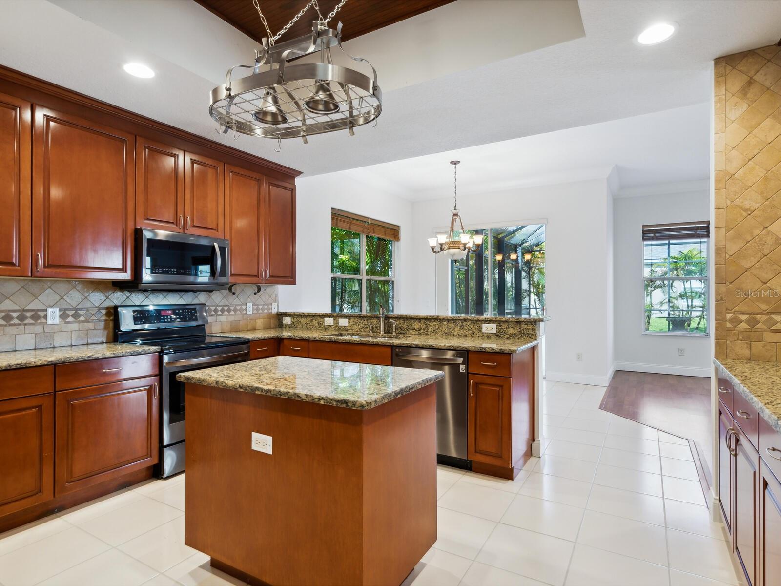 Welcome to an unparalleled blend of spacious living and refined comfort, nestled within the established neighborhood of Cascades at Sarasota. This magnificent home, sprawling over 3,411 square feet of living space under air with 5 bedrooms and 4 baths is tailored for the large or multi-generational family in mind. The home invites you into an ambiance of fashionable comfort, offering a chef's kitchen, expansive living areas, and an outdoor oasis that promises endless relaxation and entertainment opportunities. Its strategic location further enhances its allure, placing you at the heart of convenience without compromising privacy and serenity. This property is not just a home; it's a lifestyle waiting to be embraced. This home stands out with its generous 3,411 square feet of air-conditioned space, accommodating 5 bedrooms and 4 full baths. The chef's kitchen is a culinary dream, featuring wood cabinets, granite countertops, a versatile island, breakfast bar, and a cozy dinette area. The floorplan seamlessly connects the kitchen to the oversized family room, dining room, and living room, creating an inviting atmosphere for gatherings. Each area is thoughtfully designed to host memorable indoor festivities comfortably. Step outside to a private paradise featuring a heated pool and spa, complemented by a spacious deck and dual covered lanais and enormous screened lanai. The backdrop of serene lake views and gorgeous sunsets from the outdoor oasis and primary bedroom’s private balcony adds a touch of natural beauty to the outdoor. The primary bedroom is a luxurious retreat, boasting an enormous walk-in closet and ensuite bath. Each bedroom is meticulously designed, with the second bedroom offering a private bath, and the third- and fourth bedrooms sharing access to additional full bathroom. The fifth bedroom, adaptable as a home office, guest room, or studio, alongside a full bath on the ground floor, adds to the home’s versatility. Practicality is key, with an indoor utility room near the huge 3-car garage for convenience. Crown molding, tray ceilings, and a superb floor plan round off the list of impressive features. Nestled within an established subdivision, this home offers an exceptional blend of conveniences without the burden of CDD fees. The Homeowners Association (HOA) covers an impressive range of services and amenities, including lawn irrigation, cable with over 200 channels, high-speed internet, a security system, and access to a community pool just a few houses away. These thoughtful inclusions ensure a carefree lifestyle, letting residents enjoy the finer aspects of their home and community. The prime location within the University corridor positions it at the nexus of convenience and leisure. It is remarkably close to the UTC mall, offering a wide array of shopping and dining options, Restaurants and entertainment venues abound, ensuring that every day can be as lively or relaxed as you choose. For those who travel, the proximity to the airport minimizes commute times, making business trips or vacations a breeze. The area is not just a place to live; it's a hub of activity and ease, providing everything you need within a short distance. This location is ideal for families seeking a blend of suburban tranquility and urban convenience, offering the best of both worlds. Recent updates include New Roof 2024, A/C 2019, fresh interior paint, new carpet on stairway, tile and grout professionally cleaned.
